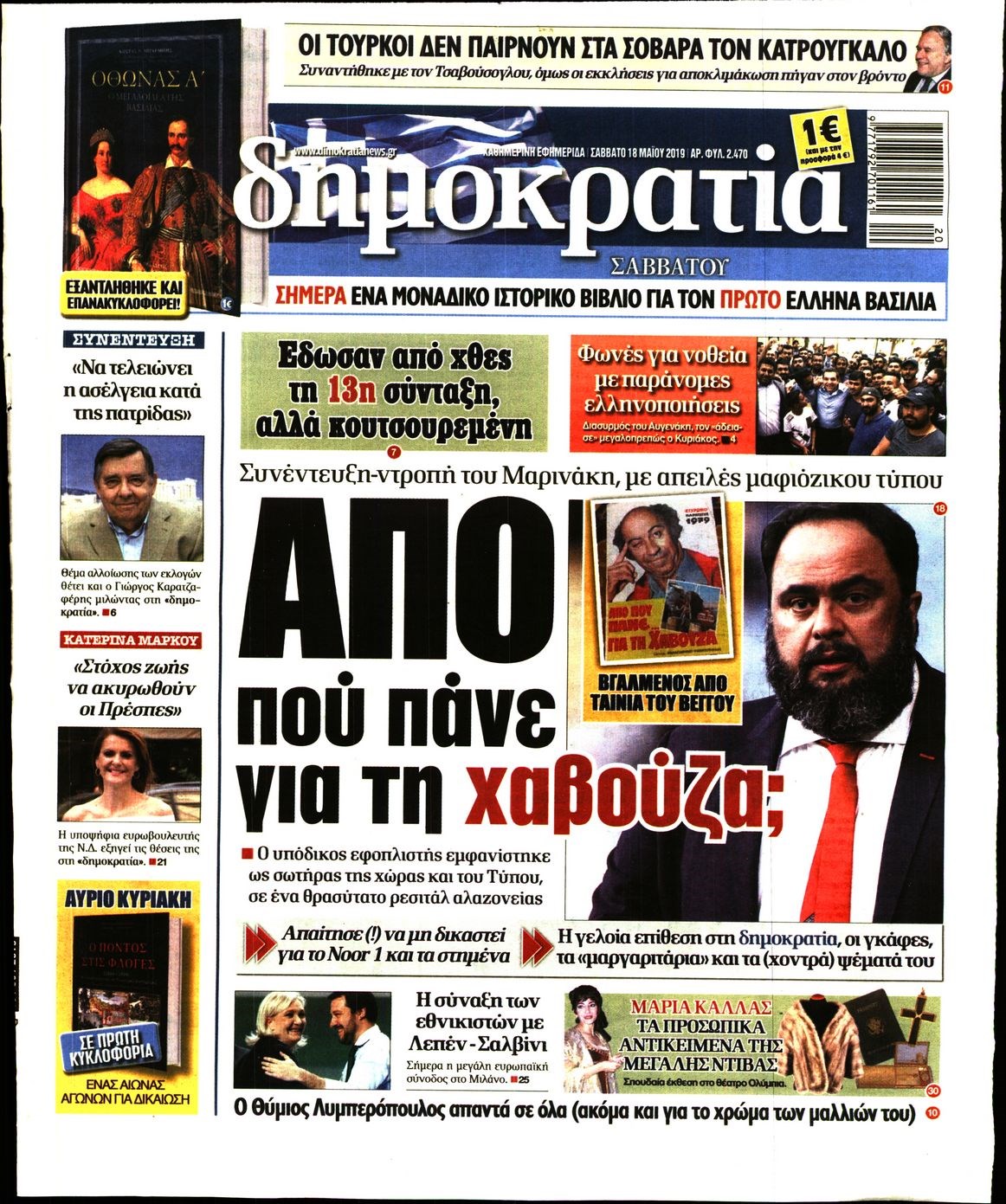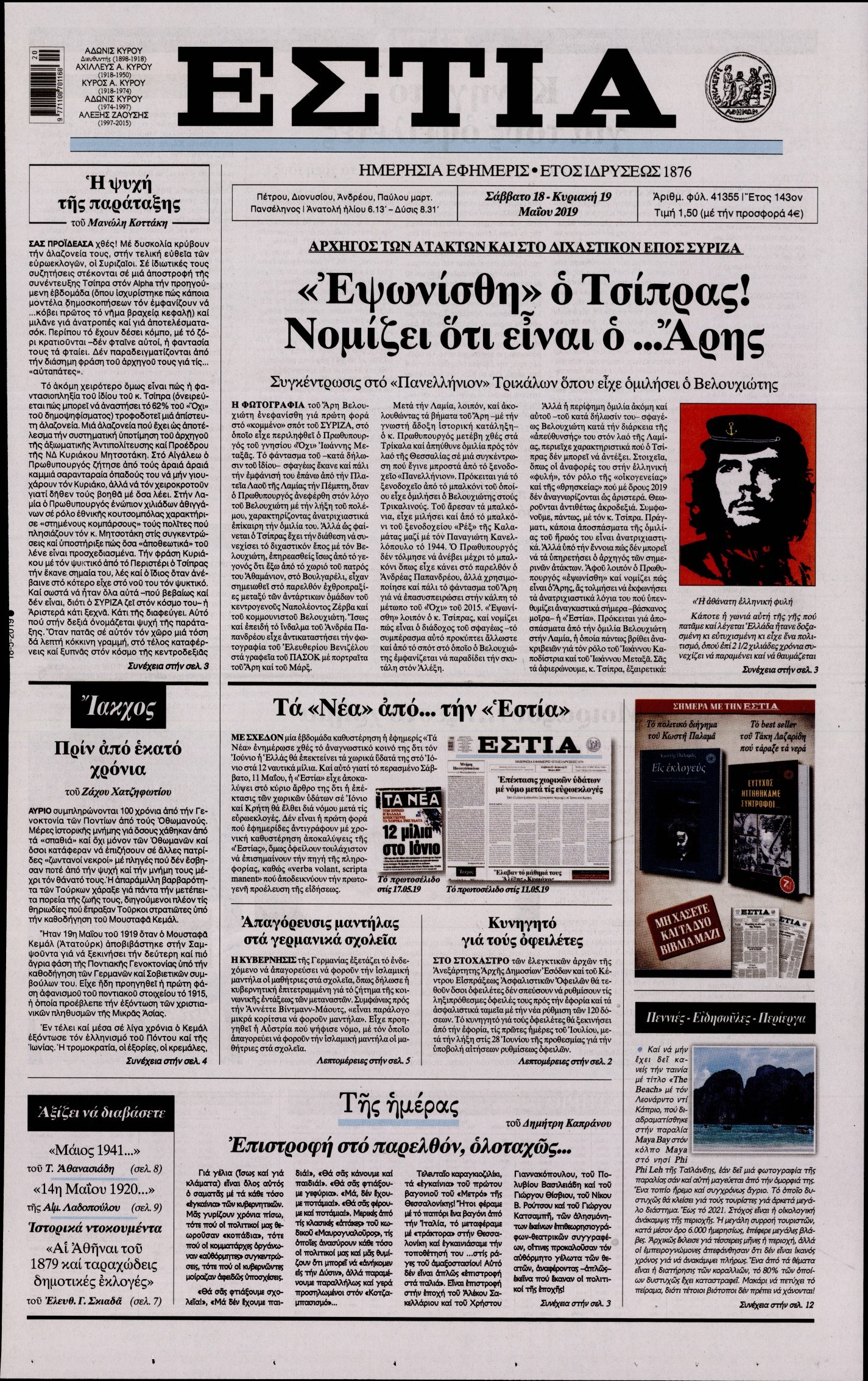 Οι πολιτικές εφημερίδες 18/5/2019 Enikos Newsroom 06:51, Σάββατο 18 Μαΐου 2019 Media Διαβάστε τα πρωτοσέλιδα των πολιτικών εφημερίδων: ΠΟΛΙΤΙΚΕΣ ΕΦΗΜΕΡΙΔΕΣ ΠΡΩΤΟΣΕΛΙΔΑ Μοιράσου το: σχολίασε κι εσύ (0 σχόλια) Ακολουθήστε το enikos.gr στο Google News και μάθετε πρώτοι όλες τις ειδήσεις Δείτε όλες τις τελευταίες ειδήσεις από την Ελλάδα και τον Κόσμο στο enikos.gr Ειδήσεις Ροή Ειδήσεων 5 ώρες πριν Χριστούγεννα στα μπλόκα: Επιμένουν στις κινητοποιήσεις τους οι αγρότες – Ανοίγουν τα διόδια το Σαββατοκύριακο 5 ώρες πριν Ουκρανία: Η άνευ προηγουμένου επίθεση σε ρωσικό τάνκερ στη Μεσόγειο και το μήνυμα προς στον Πούτιν – Το «μακρύ χέρι» του Κιέβου 4 ώρες πριν Πούτιν: Τα μηνύματα σε Ευρώπη και ΝΑΤΟ από το μαραθώνιο «σόου» του – Η απαίτηση για «σεβασμό» και η ειρήνη «με τους όρους» της Μόσχας 5 ώρες πριν Τραμπ: Δεν αποκλείει την πιθανότητα ενός πολέμου στη Βενεζουέλα – «Ο Μαδούρο ξέρει καλύτερα από τον καθένα τι ακριβώς θέλω» 6 ώρες πριν Συνεχίζει να προκαλεί ο Μίτσκοσκι: «Για μένα το όνομα Μακεδονία είναι ιερό» 4 ώρες πριν Ανακαλύφθηκαν αρχαία χρυσά νομίσματα 2.200 ετών που απεικονίζουν τον θεό Απόλλωνα – Η άγνωστη σύνδεση με τον Φίλιππο Β΄ της Μακεδονίας 5 ώρες πριν Ύπνος: Μια κρυφή κατάσταση του εγκεφάλου πριν από τον ύπνο μπορεί να είναι το “κλειδί” για υψηλή ευφυΐα και δημιουργικότητα 6 ώρες πριν Αριθμολογία: Οι άνθρωποι που έχουν γεννηθεί αυτές τις 4 ημερομηνίες, συχνά παρεξηγούνται – «Η καλοσύνη τους κρύβει τεράστια δύναμη» 7 ώρες πριν Ξεχάστε το καθάρισμα το Σαββατοκύριακο: Ο «κανόνας των 20 λεπτών» που θα σας λύσει τα χέρια 3 λεπτά πριν Ταμίλα Κουλίεβα: «Δεν θέλω να είμαι κάποια που πορεύεται συνεχώς με τις ίδιες αναφορές» 17 λεπτά πριν Η Ελλάδα προσχωρεί στη Διεθνή Επιτροπή Αποζημιώσεων για την Ουκρανία 32 λεπτά πριν GNTM: Η Ξένια Τσίρκοβα αναδείχθηκε μεγάλη νικήτρια και πήρε τις 50.000 ευρώ – Ποιος βρέθηκε σε απόσταση αναπνοής; 47 λεπτά πριν Θεσσαλονίκη: Εξαφανίστηκε 13χρονος από χώρο φιλοξενίας ασυνόδευτων ανηλίκων στο Ωραιόκαστρο 57 λεπτά πριν Ντόναλντ Τραμπ: «Πολύ βαριά αντίποινα» στη Συρία – «Πλήττουμε πολύ δυνατά οχυρά του Ισλαμικού Κράτους» ENIKOS NETWORK Το ΕΚΑΒ τιμήθηκε από την Ακαδημία Αθηνών για τα 40 χρόνια προσφοράς του Έχετε πραγματικά μεγάλη καρδιά; 10 χαρακτηριστικά όσων έχουν καλοσύνη Αναστολή μέτρων αναγκαστικής εκτέλεσης για κτηνοτρόφους που πλήττονται από την ευλογιά των αιγοπροβάτων Πλήρης επάρκεια προϊόντων στις λαϊκές της Αττικής, παρά τις αγροτικές κινητοποιήσεις – Τι απαντούν οι πωλητές Χαρτογραφώντας το «σημείο χωρίς επιστροφή»: Για πρώτη φορά αποκαλύπτεται με λεπτομέρεια το ακανθώδες όριο της ατμόσφαιρας τ... Η Google καταργεί τη λειτουργία «dark web report» – Πώς θα μπορούν οι χρήστες να διαγράφουν τα δεδομένα τους περισσότερα 02:50 , Σάββατο 20 Δεκεμβρίου 2025 GNTM: Η Ξένια Τσίρκοβα αναδείχθηκε μεγάλη νικήτρια και πήρε τις 50.000 ευρώ – Ποιος βρέθηκε σε απόσταση αναπνοής; Με φαντασμαγορικό τρόπο ολοκληρώθηκε το βράδυ της Παρασκευής ο μεγάλος τελικός του GNTM, μέσα ... 22:42 , Παρασκευή 19 Δεκεμβρίου 2025 Γιώργος Γιαννόπουλος για “Το σόι σου”: “Είναι ευτυχία και ευλογία αυτή η σειρά” «Είναι ευτυχία και ευλογία η συγκυρία αυτής της σειράς», θα πει ο Γιώργος Γιαννόπουλος -ο αγαπ... 20:37 , Παρασκευή 19 Δεκεμβρίου 2025 Don’t Forget The Lyrics: Η Έλλη Κοκκίνου υποδέχεται 4 παίκτες που θα κάνουν τα πάντα για να μη χάσουν ούτε… μισή λέξη από τους στίχους Το «Don’t Forget The Lyrics» επιστρέφει απόψε, Παρασκευή 19