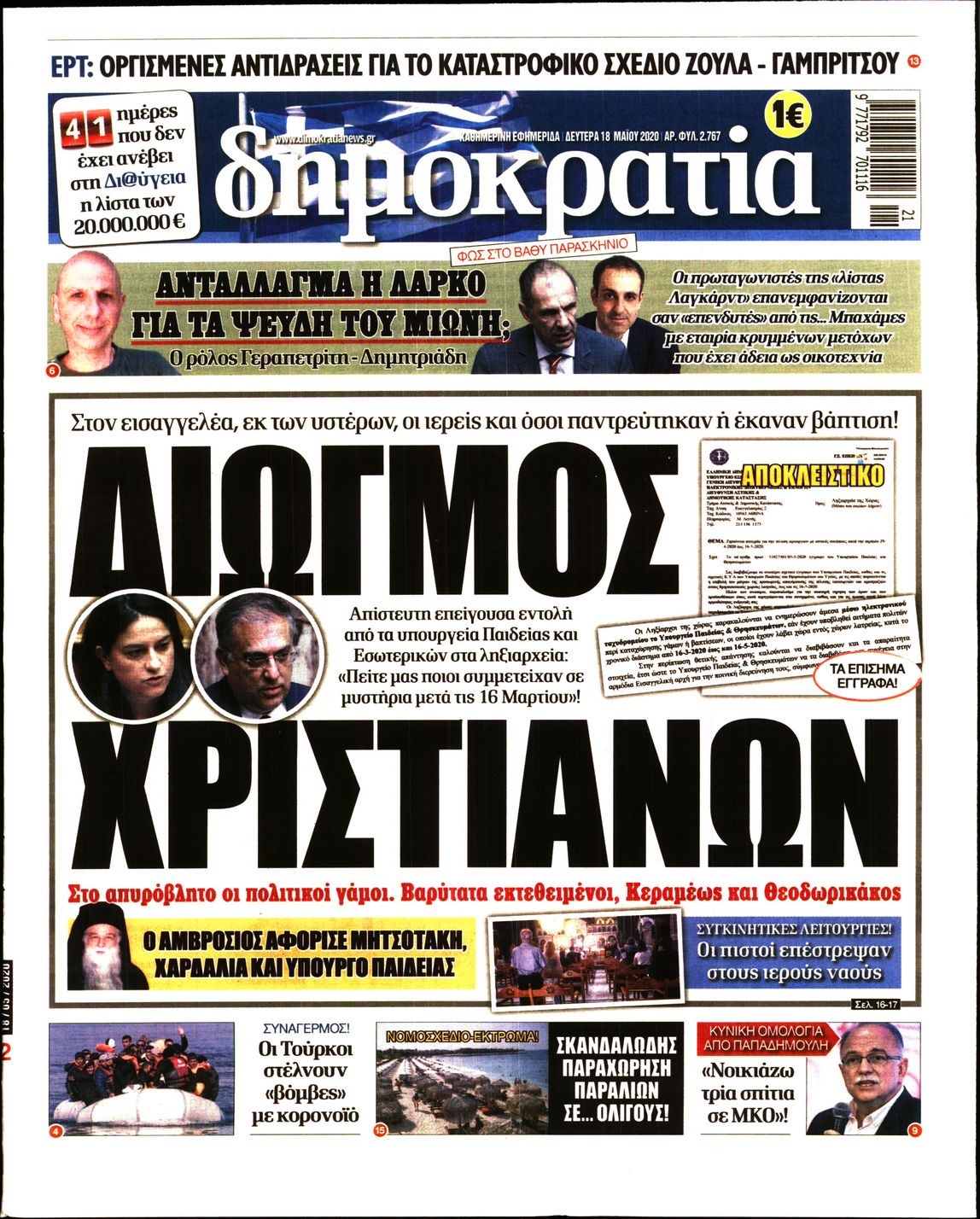Οι πολιτικές εφημερίδες 18/5/2020 Διονύσης Νίκκας 06:04, Δευτέρα 18 Μαΐου 2020 Media Διαβάστε τα πρωτοσέλιδα των πολιτικών εφημερίδων… ΠΟΛΙΤΙΚΕΣ ΕΦΗΜΕΡΙΔΕΣ ΠΡΩΤΟΣΕΛΙΔΑ Μοιράσου το: σχολίασε κι εσύ (0 σχόλια) Ακολουθήστε το enikos.gr στο Google News και μάθετε πρώτοι όλες τις ειδήσεις Δείτε όλες τις τελευταίες ειδήσεις από την Ελλάδα και τον Κόσμο στο enikos.gr Ειδήσεις Ροή Ειδήσεων 19 λεπτά πριν Χριστούγεννα στα μπλόκα: Επιμένουν στις κινητοποιήσεις τους οι αγρότες – Ανοίγουν τα διόδια το Σαββατοκύριακο 48 λεπτά πριν Τραμπ: Δεν αποκλείει την πιθανότητα ενός πολέμου στη Βενεζουέλα – «Ο Μαδούρο ξέρει καλύτερα από τον καθένα τι ακριβώς θέλω» 42 λεπτά πριν Ουκρανία: Η άνευ προηγουμένου επίθεση σε ρωσικό τάνκερ στη Μεσόγειο και το μήνυμα προς στον Πούτιν – Το «μακρύ χέρι» του Κιέβου 3 ώρες πριν Πούτιν: «Ναι, είμαι ερωτευμένος» – Βίντεο από τη σπάνια προσωπική παραδοχή του 1 ώρα πριν Συνεχίζει να προκαλεί ο Μίτσκοσκι: «Για μένα το όνομα Μακεδονία είναι ιερό» 2 ώρες πριν Αριθμολογία: Οι άνθρωποι που έχουν γεννηθεί αυτές τις 4 ημερομηνίες, συχνά παρεξηγούνται – «Η καλοσύνη τους κρύβει τεράστια δύναμη» 4 ώρες πριν Μήπως έχετε χάσει τον εαυτό σας στη σχέση σας; 7 «αθόρυβες» υποχωρήσεις που μάλλον κάνατε, χωρίς να το συνειδητοποιήσετε 3 ώρες πριν Ξεχάστε το καθάρισμα το Σαββατοκύριακο: Ο «κανόνας των 20 λεπτών» που θα σας λύσει τα χέρια 57 λεπτά πριν Ύπνος: Μια κρυφή κατάσταση του εγκεφάλου πριν από τον ύπνο μπορεί να είναι το “κλειδί” για υψηλή ευφυΐα και δημιουργικότητα 3 λεπτά πριν Νίκος Ξυλούρης: Συγκινεί η χήρα του σπουδαίου καλλιτέχνη – «Ευχαριστώ όλο τον κόσμο που τον κρατάει ζωντανό 45 χρόνια» 10 λεπτά πριν Παναθηναϊκός: «Μέσα» οι Σφιντέρσκι και Τουμπά για το ματς με τον ΠΑΟΚ – Τι έδειξε η μαγνητική του Πάντοβιτς 15 λεπτά πριν Γιώργος Γιαννόπουλος για “Το σόι σου”: “Είναι ευτυχία και ευλογία αυτή η σειρά” 19 λεπτά πριν Χριστούγεννα στα μπλόκα: Επιμένουν στις κινητοποιήσεις τους οι αγρότες – Ανοίγουν τα διόδια το Σαββατοκύριακο 31 λεπτά πριν Χάρι και Μέγκαν: Η σπάνια οικογενειακή φωτογραφία με τον Άρτσι και τη Λίλιμπετ – Τι σχεδιάζουν για τα Χριστούγεννα ENIKOS NETWORK Το ΕΚΑΒ τιμήθηκε από την Ακαδημία Αθηνών για τα 40 χρόνια προσφοράς του Έχετε πραγματικά μεγάλη καρδιά; 10 χαρακτηριστικά όσων έχουν καλοσύνη Πλήρης επάρκεια προϊόντων στις λαϊκές της Αττικής, παρά τις αγροτικές κινητοποιήσεις – Τι απαντούν οι πωλητές ΑΑΔΕ: Νέες αναβαθμίσεις στο Ψηφιακό Πελατολόγιο και την εφαρμογή myDATAapp – Τι πρέπει να γνωρίζετε Χαρτογραφώντας το «σημείο χωρίς επιστροφή»: Για πρώτη φορά αποκαλύπτεται με λεπτομέρεια το ακανθώδες όριο της ατμόσφαιρας τ... Η Google καταργεί τη λειτουργία «dark web report» – Πώς θα μπορούν οι χρήστες να διαγράφουν τα δεδομένα τους περισσότερα 22:42 , Παρασκευή 19 Δεκεμβρίου 2025 Γιώργος Γιαννόπουλος για “Το σόι σου”: “Είναι ευτυχία και ευλογία αυτή η σειρά” «Είναι ευτυχία και ευλογία η συγκυρία αυτής της σειράς», θα πει ο Γιώργος Γιαννόπουλος -ο αγαπ... 20:37 , Παρασκευή 19 Δεκεμβρίου 2025 Don’t Forget The Lyrics: Η Έλλη Κοκκίνου υποδέχεται 4 παίκτες που θα κάνουν τα πάντα για να μη χάσουν ούτε… μισή λέξη από τους στίχους Το «Don’t Forget The Lyrics» επιστρέφει απόψε, Παρασκευή 19 Δεκεμβρίου, στις 21:00 με νέο επει... 19:31 , Παρασκευή 19 Δεκεμβρίου 2025 GNTM: Απόψε ο μεγάλος τελικός για τους 4 φιναλίστ Έπειτα από μήνες γεμάτους μόδα, δημιουργία και έντονες αναμετρήσεις, το GNTM 2025 κορυφώνεται,... 18:11 , Παρασκευή 19 Δεκε