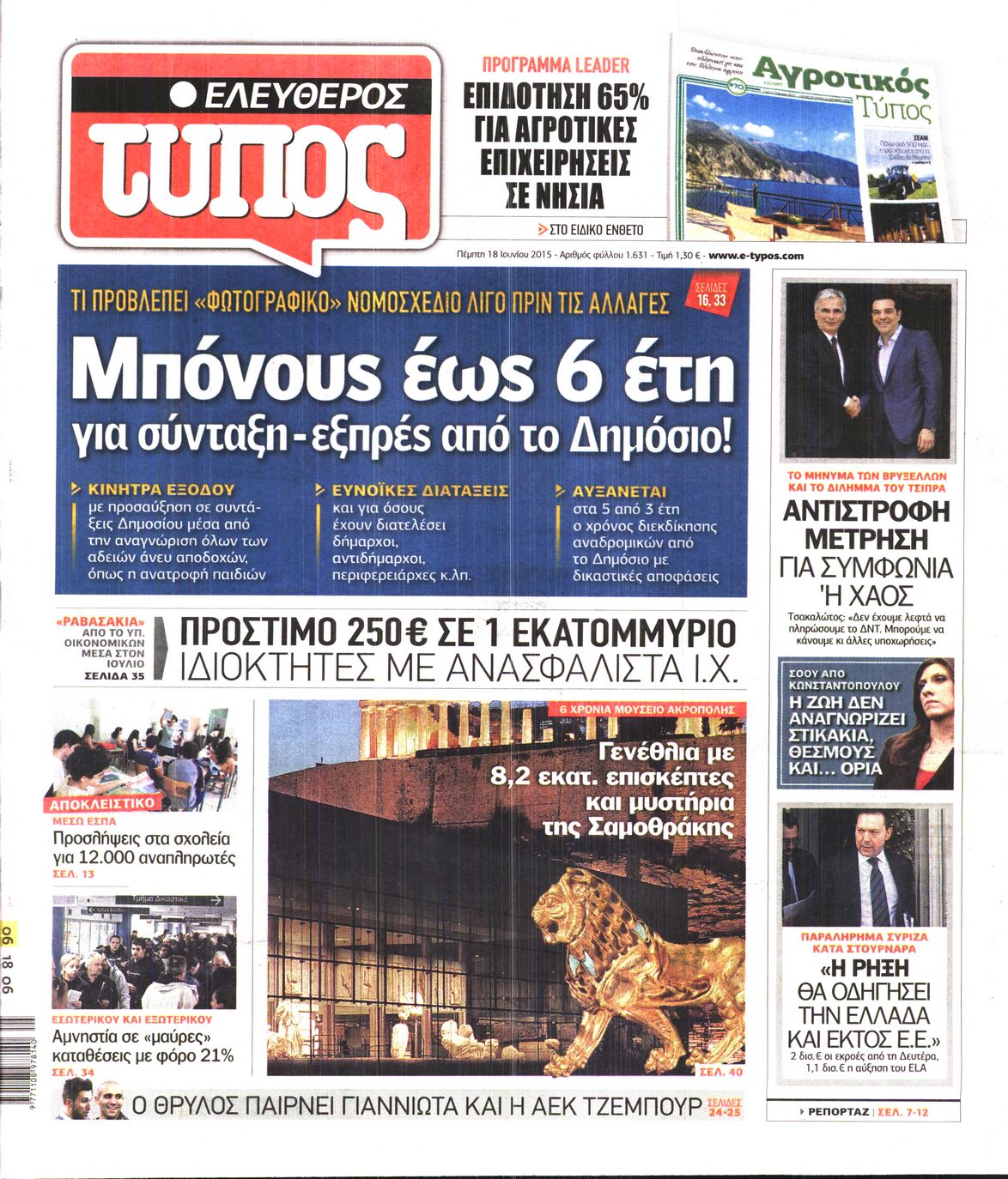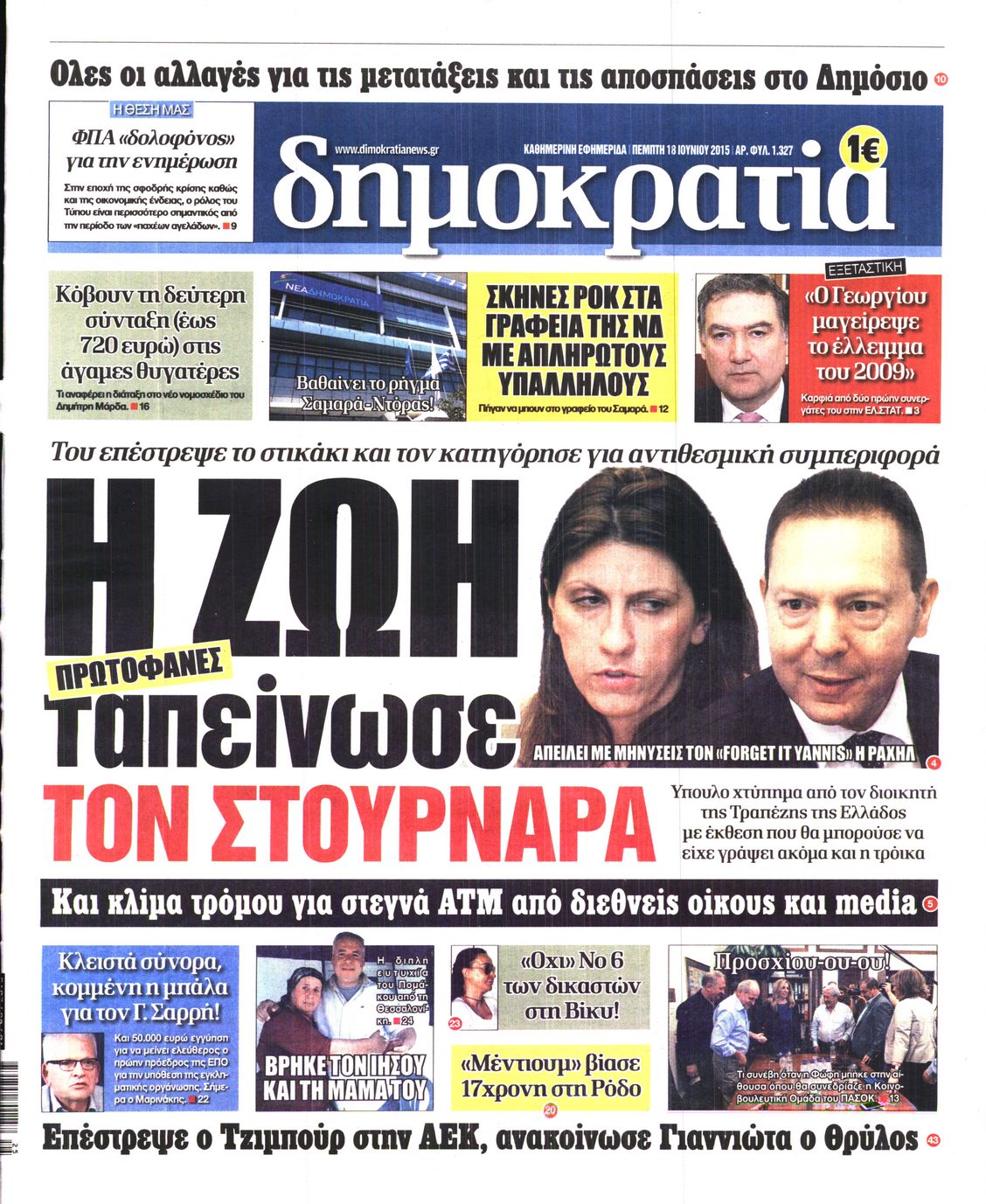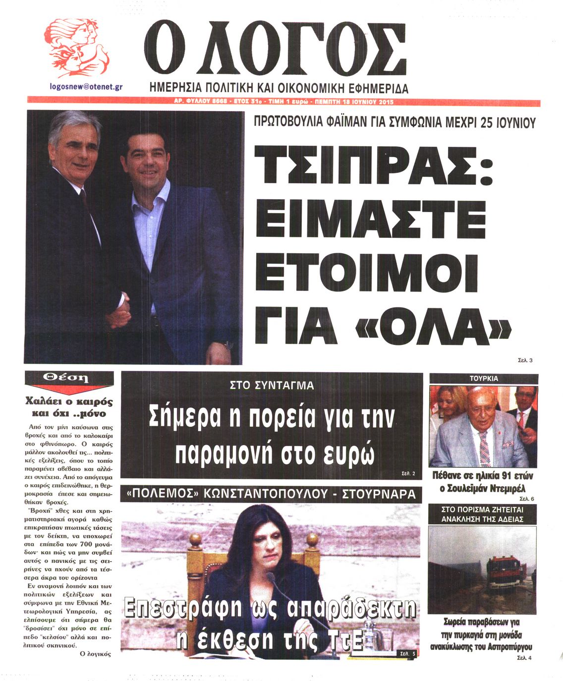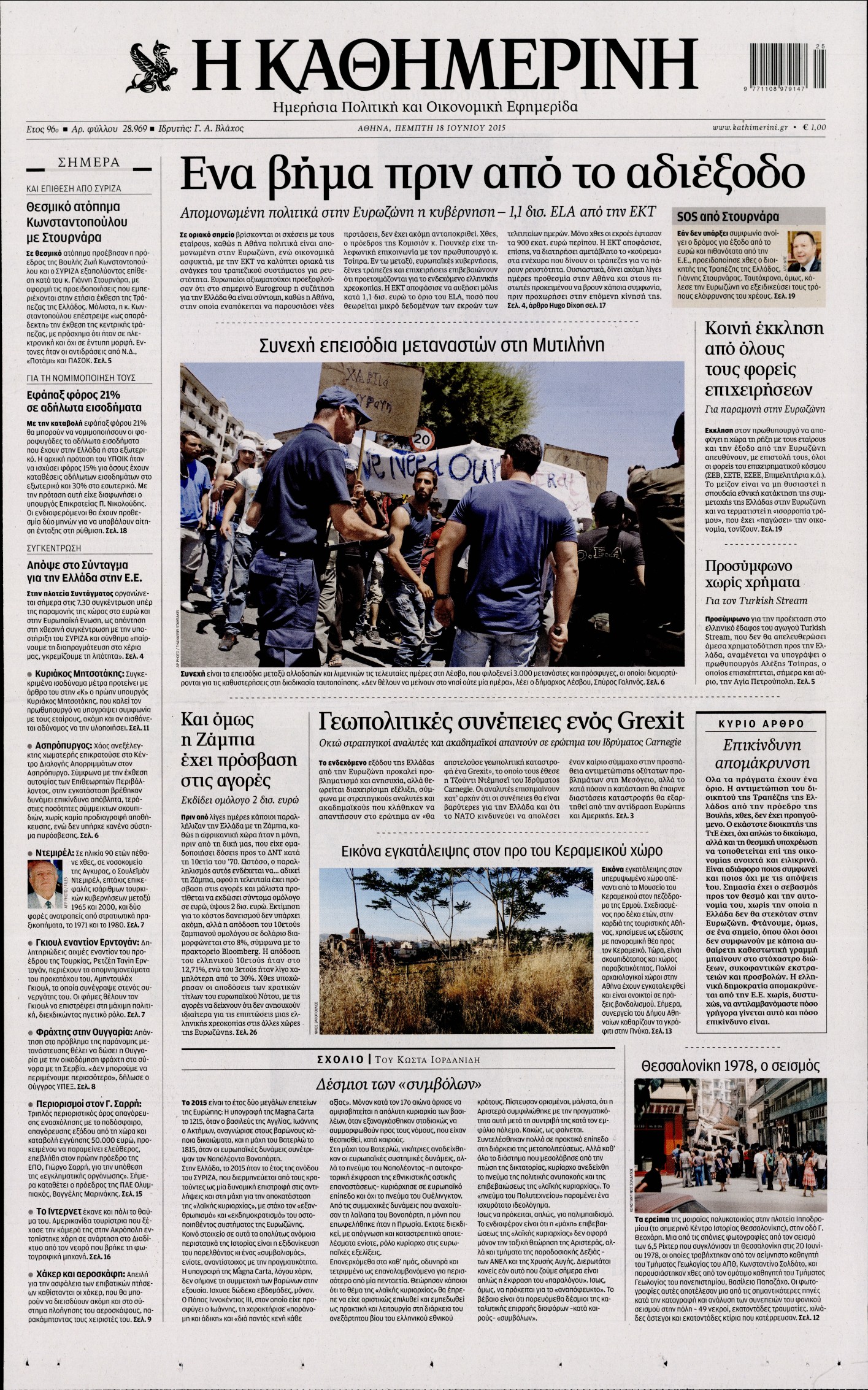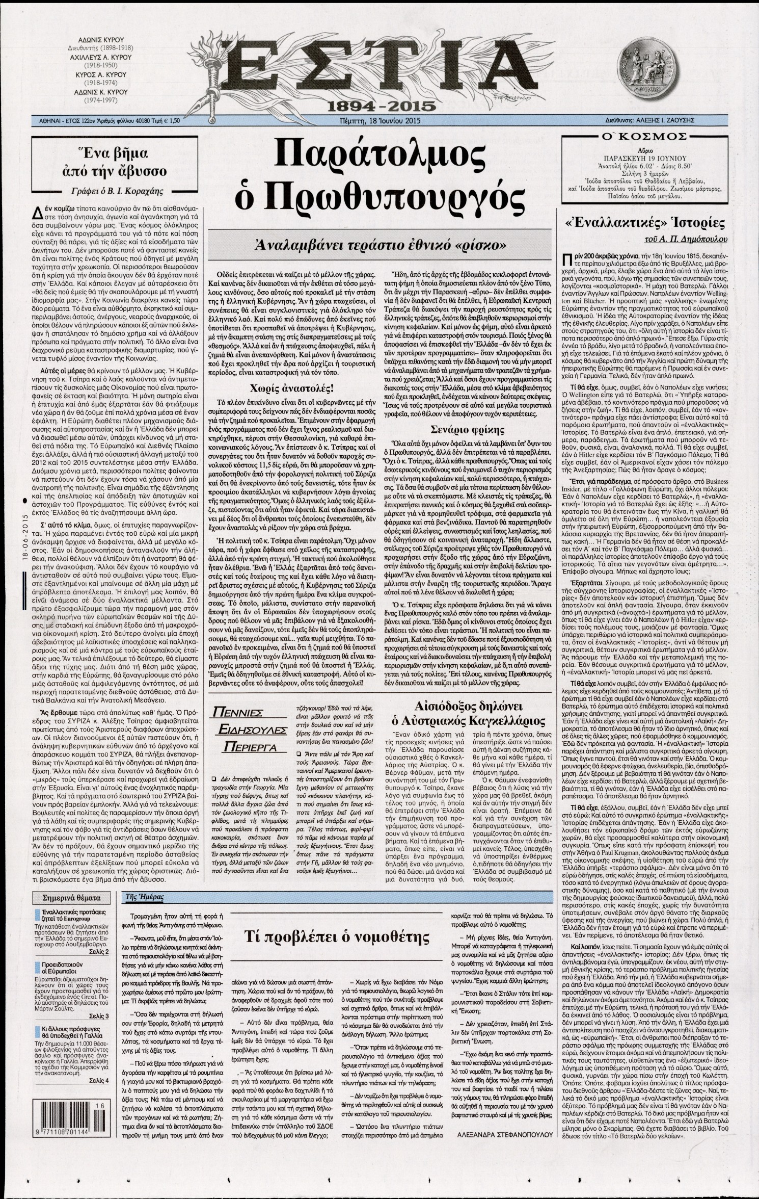 Οι πολιτικές εφημερίδες 18/6/2015 Enikos Newsroom 06:53, Πέμπτη 18 Ιουνίου 2015 Media Διαβάστε τα σημερινά πρωτοσέλιδα των πολιτικών εφημερίδων: ΠΟΛΙΤΙΚΕΣ ΕΦΗΜΕΡΙΔΕΣ ΠΡΩΤΟΣΕΛΙΔΑ Μοιράσου το: σχολίασε κι εσύ (0 σχόλια) Ακολουθήστε το enikos.gr στο Google News και μάθετε πρώτοι όλες τις ειδήσεις Δείτε όλες τις τελευταίες ειδήσεις από την Ελλάδα και τον Κόσμο στο enikos.gr Ειδήσεις Ροή Ειδήσεων 4 ώρες πριν Από το Ορμένιο ως τα Μάλγαρα κι από τη Σιάτιστα μέχρι τη Νίκαια: Μπλόκα σε όλη την Ελλάδα – Το Σάββατο ανοίγουν τα διόδια οι αγρότες 1 ώρα πριν Εμπλοκή και αερομαχίες με οπλισμένα τουρκικά F-16 στο Αιγαίο 3 ώρες πριν Αττική: Θρίλερ με νεκρό βρέφος 5 μηνών – Κοιμόταν στο ίδιο κρεβάτι με τους γονείς του 1 ώρα πριν Πούτιν: «Ναι, είμαι ερωτευμένος» – Βίντεο από τη σπάνια προσωπική παραδοχή του 3 ώρες πριν Μεσόγειος: Η διαδρομή του ρωσικού τάνκερ «Qendil» και η στοχευμένη επίθεση της Ουκρανίας με drone – Ο Πούτιν προειδοποίησε για αντίποινα 5 ώρες πριν Τα 5 ζώδια που ευνοούνται στην ερωτική ζωή τους την επόμενη εβδομάδα – «Η ενέργεια του Αιγόκερου φέρνει αγάπη και σταθερότητα» 6 ώρες πριν Αυτό το έξυπνο μαθηματικό κόλπο θα μπορούσε να αλλάξει τον τρόπο με τον οποίο οι επιστήμονες μελετούν τους σεισμούς 2 ώρες πριν Μήπως έχετε χάσει τον εαυτό σας στη σχέση σας; 7 «αθόρυβες» υποχωρήσεις που μάλλον κάνατε, χωρίς να το συνειδητοποιήσετε 4 ώρες πριν Κουίζ για την παλιά Αθήνα: Αναγνωρίζετε την περιοχή; Έχετε περάσει 100% από εκεί 8 λεπτά πριν Μπαράκ Ομπάμα: Τα βιβλία, οι ταινίες και τα τραγούδια που ξεχώρισε το 2025 – Πλήρης λίστα 13 λεπτά πριν Don’t Forget The Lyrics: Η Έλλη Κοκκίνου υποδέχεται 4 παίκτες που θα κάνουν τα πάντα για να μη χάσουν ούτε… μισή λέξη από τους στίχους 19 λεπτά πριν Πλεύρης στον ΑΝΤ1: Η βασική πολιτική που ψηφίστηκε από τους υπουργούς Μετανάστευσης είναι η δημιουργία κέντρων κράτησης μεταναστών στην Αφρική – ΒΙΝΤΕΟ 24 λεπτά πριν Η εξομολόγηση της Νίκης Σερέτη: «Δεν κρύβω ότι ήταν πάρα πολύ δύσκολο όλο αυτό που βίωσα» 29 λεπτά πριν Αγρότες: Κλειστό ξανά το ρεύμα εισόδου στα Μάλγαρα – Άνοιξαν τον κόμβο της Χαλκηδόνας ENIKOS NETWORK Έχετε πραγματικά μεγάλη καρδιά; 10 χαρακτηριστικά όσων έχουν καλοσύνη «Η σούπερ» γρίπη εξαπλώνεται στην Ευρώπη-Στοιχεία από το ECDC για την αποτελεσματικότητα του εμβολίου Επίδομα παιδιού: Πότε ανοίγει ξανά η πλατφόρμα για τις αιτήσεις Προκήρυξη ΑΣΕΠ για 397 μόνιμες προσλήψεις στο Δημόσιο: Βγήκαν τα προσωρινά αποτελέσματα – Πότε αρχίζει η υποβολή ενστάσεων Χαρτογραφώντας το «σημείο χωρίς επιστροφή»: Για πρώτη φορά αποκαλύπτεται με λεπτομέρεια το ακανθώδες όριο της ατμόσφαιρας τ... Η Google καταργεί τη λειτουργία «dark web report» – Πώς θα μπορούν οι χρήστες να διαγράφουν τα δεδομένα τους περισσότερα 20:37 , Παρασκευή 19 Δεκεμβρίου 2025 Don’t Forget The Lyrics: Η Έλλη Κοκκίνου υποδέχεται 4 παίκτες που θα κάνουν τα πάντα για να μη χάσουν ούτε… μισή λέξη από τους στίχους Το «Don’t Forget The Lyrics» επιστρέφει απόψε, Παρασκευή 19 Δεκεμβρίου, στις 21:00 με νέο επει... 19:31 , Παρασκευή 19 Δεκεμβρίου 2025 GNTM: Απόψε ο μεγάλος τελικός για τους 4 φιναλίστ Έπειτα από μήνες γεμάτους μόδα, δημιουργία και έντονες αναμετρήσεις, το GNTM 2025 κορυφώνεται,... 18:11 , Παρασκευή 19 Δεκεμβρίου 2025 Το σόι σου: Ο Άρης έρχεται στην Ελλάδα για τις γιορτές των Χριστουγέννων – Τι θα δούμε στο αποψινό εορταστικό επεισόδιο Ένα απολαυστικό, εορταστικό επεισόδιο της σειράς “Το σόι σου”, γεμάτο ευτράπελα αλ... 15:15 , Παρασκευή 19 Δεκεμβρίου 2025 Την Κυριακή μ