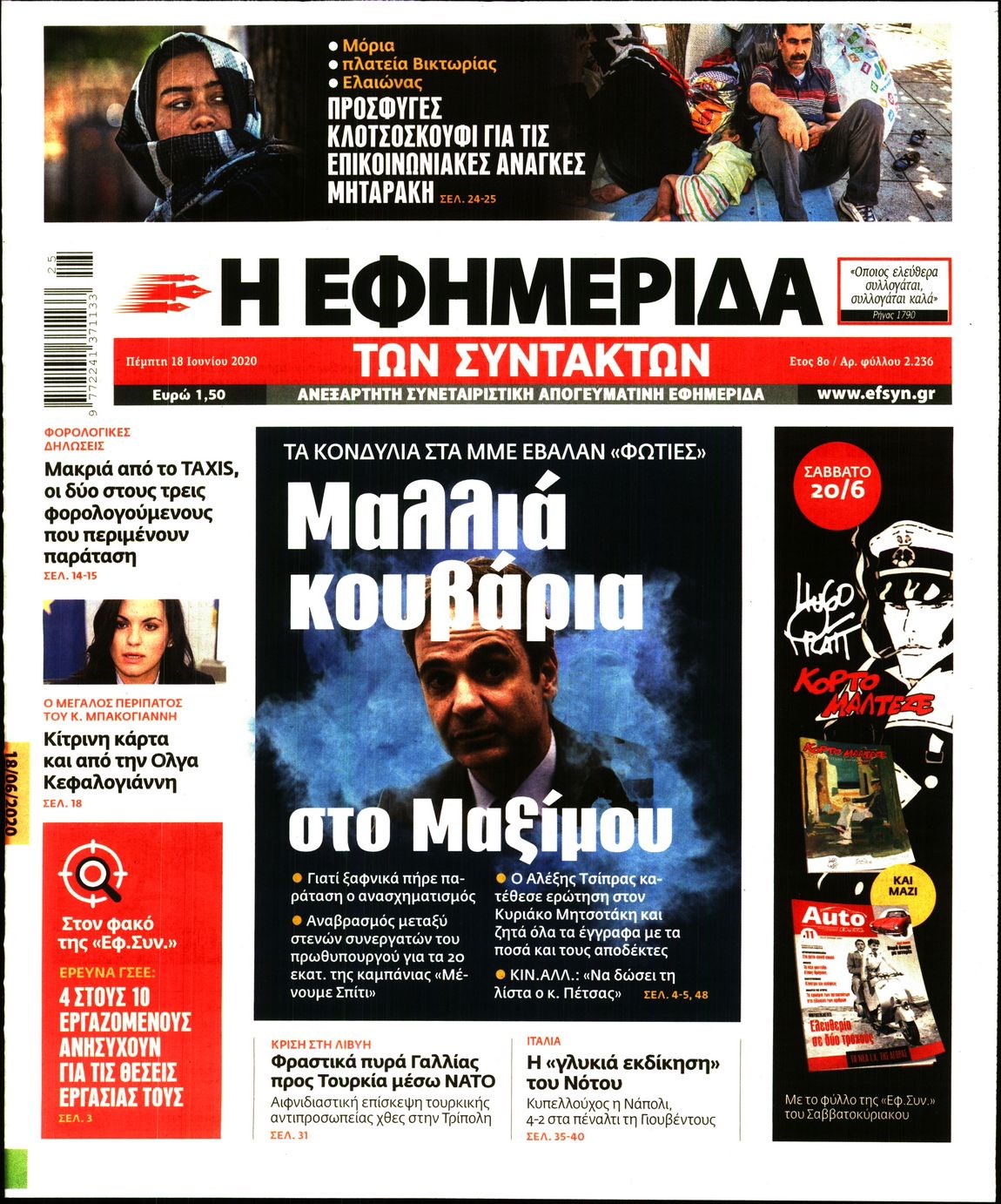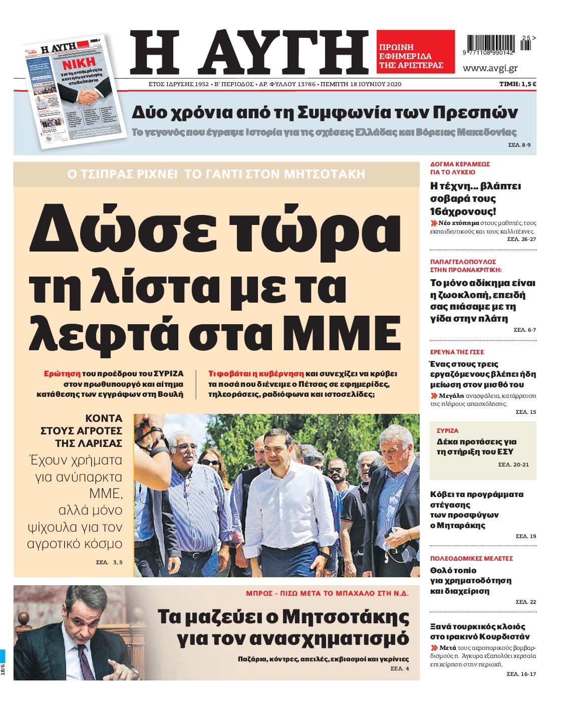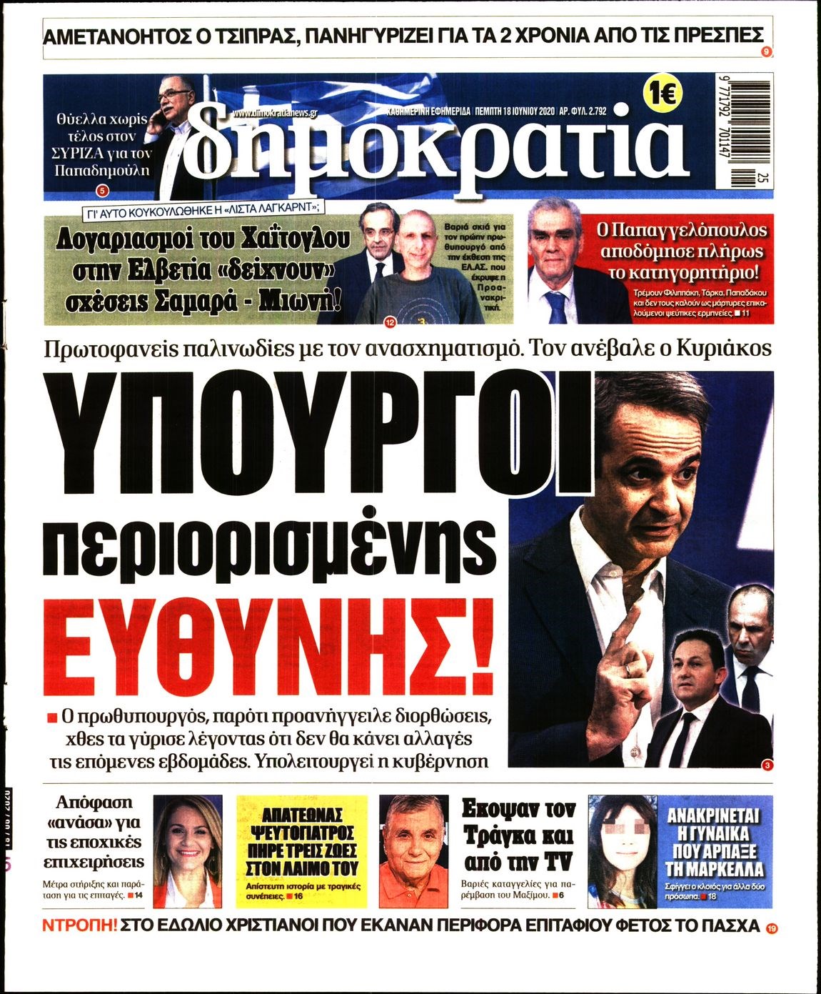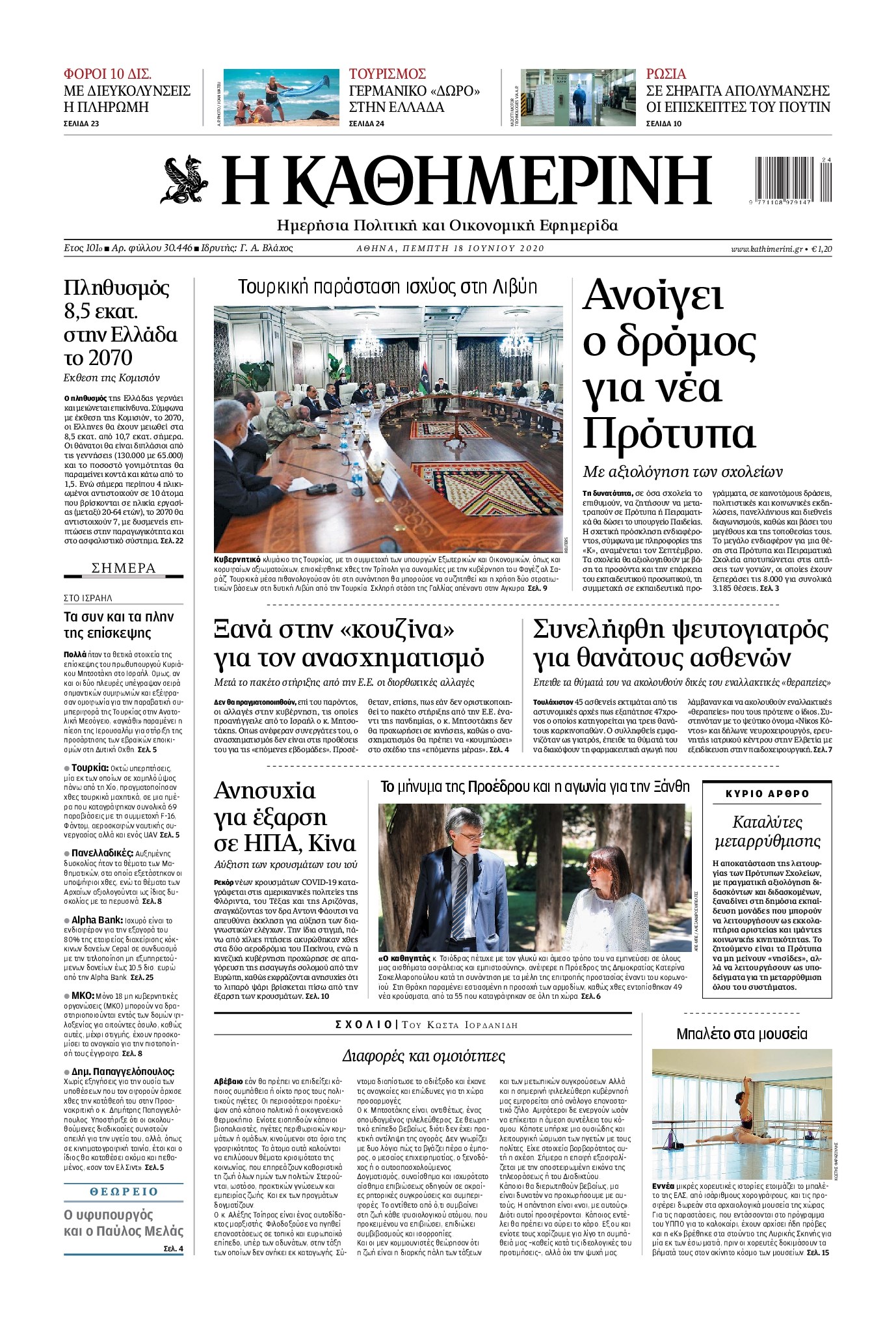 Οι πολιτικές εφημερίδες 18/6/2020 Διονύσης Νίκκας 06:09, Πέμπτη 18 Ιουνίου 2020 Media Διαβάστε τα πρωτοσέλιδα των πολιτικών εφημερίδων… ΠΟΛΙΤΙΚΕΣ ΕΦΗΜΕΡΙΔΕΣ Μοιράσου το: σχολίασε κι εσύ (0 σχόλια) Ακολουθήστε το enikos.gr στο Google News και μάθετε πρώτοι όλες τις ειδήσεις Δείτε όλες τις τελευταίες ειδήσεις από την Ελλάδα και τον Κόσμο στο enikos.gr Ειδήσεις Ροή Ειδήσεων 6 ώρες πριν Χριστούγεννα στα μπλόκα: Επιμένουν στις κινητοποιήσεις τους οι αγρότες – Ανοίγουν τα διόδια το Σαββατοκύριακο 6 ώρες πριν Ουκρανία: Η άνευ προηγουμένου επίθεση σε ρωσικό τάνκερ στη Μεσόγειο και το μήνυμα προς στον Πούτιν – Το «μακρύ χέρι» του Κιέβου 5 ώρες πριν Πούτιν: Τα μηνύματα σε Ευρώπη και ΝΑΤΟ από το μαραθώνιο «σόου» του – Η απαίτηση για «σεβασμό» και η ειρήνη «με τους όρους» της Μόσχας 6 ώρες πριν Τραμπ: Δεν αποκλείει την πιθανότητα ενός πολέμου στη Βενεζουέλα – «Ο Μαδούρο ξέρει καλύτερα από τον καθένα τι ακριβώς θέλω» 7 ώρες πριν Συνεχίζει να προκαλεί ο Μίτσκοσκι: «Για μένα το όνομα Μακεδονία είναι ιερό» 5 ώρες πριν Ανακαλύφθηκαν αρχαία χρυσά νομίσματα 2.200 ετών που απεικονίζουν τον θεό Απόλλωνα – Η άγνωστη σύνδεση με τον Φίλιππο Β΄ της Μακεδονίας 6 ώρες πριν Ύπνος: Μια κρυφή κατάσταση του εγκεφάλου πριν από τον ύπνο μπορεί να είναι το “κλειδί” για υψηλή ευφυΐα και δημιουργικότητα 7 ώρες πριν Αριθμολογία: Οι άνθρωποι που έχουν γεννηθεί αυτές τις 4 ημερομηνίες, συχνά παρεξηγούνται – «Η καλοσύνη τους κρύβει τεράστια δύναμη» 8 ώρες πριν Ξεχάστε το καθάρισμα το Σαββατοκύριακο: Ο «κανόνας των 20 λεπτών» που θα σας λύσει τα χέρια 13 λεπτά πριν Βολιβία: Μαζική διαδηλώσεις εναντίον της κατάργησης των επιδοτήσεων των τιμών των καυσίμων 28 λεπτά πριν Φως στο Τούνελ: Έφτασε η ώρα της αλήθειας για την δολοφονία της χήρας του πρώην υπουργού στο Κολωνάκι 44 λεπτά πριν Ντόναλντ Τραμπ: Προστέθηκε το όνομά του στην πρόσοψη του Κέντρου Κένεντι – Οργισμένη αντίδραση των συγγενών του JFK 59 λεπτά πριν Ταμίλα Κουλίεβα: «Δεν θέλω να είμαι κάποια που πορεύεται συνεχώς με τις ίδιες αναφορές» 1 ώρα πριν Η Ελλάδα προσχωρεί στη Διεθνή Επιτροπή Αποζημιώσεων για την Ουκρανία ENIKOS NETWORK Το ΕΚΑΒ τιμήθηκε από την Ακαδημία Αθηνών για τα 40 χρόνια προσφοράς του Έχετε πραγματικά μεγάλη καρδιά; 10 χαρακτηριστικά όσων έχουν καλοσύνη Αναστολή μέτρων αναγκαστικής εκτέλεσης για κτηνοτρόφους που πλήττονται από την ευλογιά των αιγοπροβάτων Πλήρης επάρκεια προϊόντων στις λαϊκές της Αττικής, παρά τις αγροτικές κινητοποιήσεις – Τι απαντούν οι πωλητές Χαρτογραφώντας το «σημείο χωρίς επιστροφή»: Για πρώτη φορά αποκαλύπτεται με λεπτομέρεια το ακανθώδες όριο της ατμόσφαιρας τ... Η Google καταργεί τη λειτουργία «dark web report» – Πώς θα μπορούν οι χρήστες να διαγράφουν τα δεδομένα τους περισσότερα 02:50 , Σάββατο 20 Δεκεμβρίου 2025 GNTM: Η Ξένια Τσίρκοβα αναδείχθηκε μεγάλη νικήτρια και πήρε τις 50.000 ευρώ – Ποιος βρέθηκε σε απόσταση αναπνοής; Με φαντασμαγορικό τρόπο ολοκληρώθηκε το βράδυ της Παρασκευής ο μεγάλος τελικός του GNTM, μέσα ... 22:42 , Παρασκευή 19 Δεκεμβρίου 2025 Γιώργος Γιαννόπουλος για “Το σόι σου”: “Είναι ευτυχία και ευλογία αυτή η σειρά” «Είναι ευτυχία και ευλογία η συγκυρία αυτής της σειράς», θα πει ο Γιώργος Γιαννόπουλος -ο αγαπ... 20:37 , Παρασκευή 19 Δεκεμβρίου 2025 Don’t Forget The Lyrics: Η Έλλη Κοκκίνου υποδέχεται 4 παίκτες που θα κάνουν τα πάντα για να μη χάσουν ούτε… μισή λέξη από τους στίχους Το «Don’t Forget The Lyrics» επιστρέφει απόψε, Παρασκευή 19 Δε