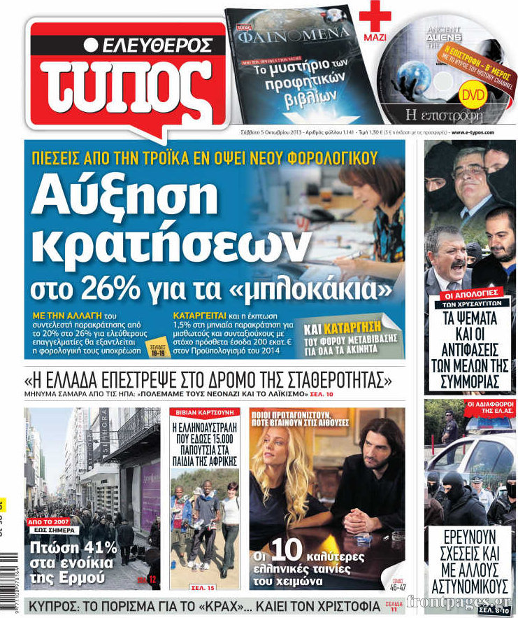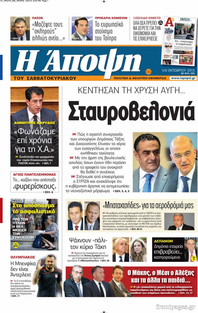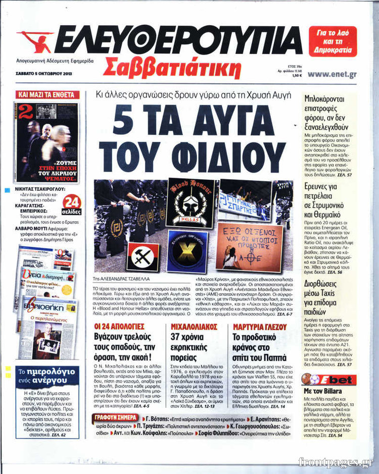 Οι πολιτικές εφημερίδες Enikos Newsroom 08:29, Σάββατο 05 Οκτωβρίου 2013 Media Οι πολιτικές εφημερίδες Διαβάστε τα πρωτοσέλιδα των πολιτικών εφημερίδων. ΕΦΗΜΕΡΙΔΕΣ ΠΟΛΙΤΙΚΕΣ ΕΦΗΜΕΡΙΔΕΣ ΠΡΩΤΟΣΕΛΙΔΑ Μοιράσου το: σχολίασε κι εσύ (0 σχόλια) Ακολουθήστε το enikos.gr στο Google News και μάθετε πρώτοι όλες τις ειδήσεις Δείτε όλες τις τελευταίες ειδήσεις από την Ελλάδα και τον Κόσμο στο enikos.gr Ειδήσεις Ροή Ειδήσεων 2 ώρες πριν Καμία «ανακωχή» για τους αγρότες: Γενική συνέλευση σήμερα στο μπλόκο της Νίκαιας – Ο σχεδιασμός για ανοιχτούς δρόμους τα Χριστούγεννα 1 ώρα πριν Γαλλία: Έτοιμοι για Χριστούγεννα στους δρόμους οι αγρότες – «Οι δεσμεύσεις της κυβέρνησης δεν είναι αρκετές» 60 λεπτά πριν Επιχείρηση διάσωσης στον Όλυμπο – Ορειβάτης εγκλωβίστηκε και έδωσε στίγμα μέσω 112 3 ώρες πριν LEGEND: Ο διάδοχος της φρεγάτας Constellation έρχεται από την ακτοφυλακή των ΗΠΑ 2 ώρες πριν Τζορτζ Κλούνεϊ: Πέθανε η αδελφή του, Άντα Ζάιντλερ – «Η ηρωίδα μου» 4 ώρες πριν Μήλο vs μπανάνα: Ποιο φρούτο έχει περισσότερες φυτικές ίνες, σύμφωνα με διαιτολόγους – Τα οφέλη τους για την υγεία 59 λεπτά πριν Οι γονείς της θέλουν να έχουν πρόσβαση στον τραπεζικό της λογαριασμό – «Επιμένουν πως στις οικογένειες δεν υπάρχουν μυστικά» 1 ώρα πριν Αρχαιολόγοι ανακάλυψαν κάτι που δεν περίμεναν: Τα μαθηματικά υπήρχαν πριν από τους αριθμούς – Το μυστικό που κρύβεται πίσω από περίεργα αγγεία 8.000 ετών 1 ημέρα πριν Enerwave: Το νέο «ρεύμα» στη λιανική ενέργειας που αλλάζει την εμπειρία του καταναλωτή 2 λεπτά πριν Γρίπη: «Καμπανάκι» από τους επιστήμονες για έξαρση κρουσμάτων στις γιορτές – Ποιοι κινδυνεύουν και πώς προστατευόμαστε 10 λεπτά πριν Πυροβολισμοί στη Νότια Αφρική: Τουλάχιστον εννέα άνθρωποι σκοτώθηκαν κοντά στο Γιοχάνεσμπουργκ 18 λεπτά πριν Το λάθος στην ταινία Die Hard που άφησε άναυδους τους θαυμαστές του Μπρους Γουίλις 26 λεπτά πριν Κόντρα Τζάκρη – Μυλωνάκη: «Θα περίμενε κανείς να απολογείται για τον ΟΠΕΚΕΠΕ» – «Κάθε λέξη της και ένα νέο ψέμα, είναι γυρολόγος της πολιτικής» 33 λεπτά πριν Η οικογενειακή διαμάχη των Μπέκαμ: Το block από τον Μπρούκλιν και η απόφαση να περάσει τα Χριστούγεννα με τους δισεκατομμυριούχους γονείς της συζύγου του ENIKOS NETWORK Έχετε καταρροή και φαγούρα στα μάτια στις γιορτές; Μπορεί να ευθύνεται το σύνδρομο χριστουγεννιάτικου δέντρου Η Danielle Fishel μετά τη διάγνωση καρκίνου του μαστού: «Είμαι καλά και νιώθω ευγνωμοσύνη» Πρωτοχρονιά 2026: Πόσο θα κοστίσει φέτος η βασιλόπιτα – Οι τιμές σε ζαχαροπλαστεία, φούρνους και σούπερ μάρκετ «Πολεμική» προετοιμασία από την ευρωπαϊκή βιομηχανία ενέργειας – Η Eurelectric ζητεί «ομπρέλα» προστασίας για τις υποδομές Χαρτογραφώντας το «σημείο χωρίς επιστροφή»: Για πρώτη φορά αποκαλύπτεται με λεπτομέρεια το ακανθώδες όριο της ατμόσφαιρας τ... Η Google καταργεί τη λειτουργία «dark web report» – Πώς θα μπορούν οι χρήστες να διαγράφουν τα δεδομένα τους περισσότερα 09:43 , Κυριακή 21 Δεκεμβρίου 2025 Το λάθος στην ταινία Die Hard που άφησε άναυδους τους θαυμαστές του Μπρους Γουίλις Ένας φανατικός των ταινιών άφησε άναυδους τους θαυμαστές του Die Hard, επισημαίνοντας τρία βασ... 08:13 , Κυριακή 21 Δεκεμβρίου 2025 Άγιος έρωτας: Ένας καταστροφικός σεισμός χτυπά τη Στέρνα Καταιγιστικές είναι οι εξελίξεις στα δυο τελευταία, συγκλονιστικά επεισόδια του 2025 της σειρά... 08:00 , Κυριακή 21 Δεκεμβρίου 2025 Σήμερα με τη Realnews: Ό,τι και αν αγοράσεις, σκανάρεις και κερδίζεις! Σήμερα με τη Realnews: Ό,τι και αν αγοράσεις, σκανά