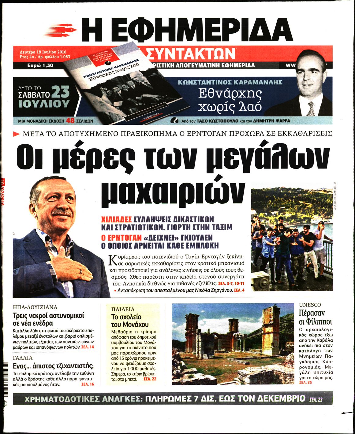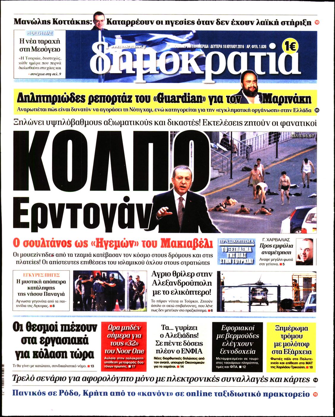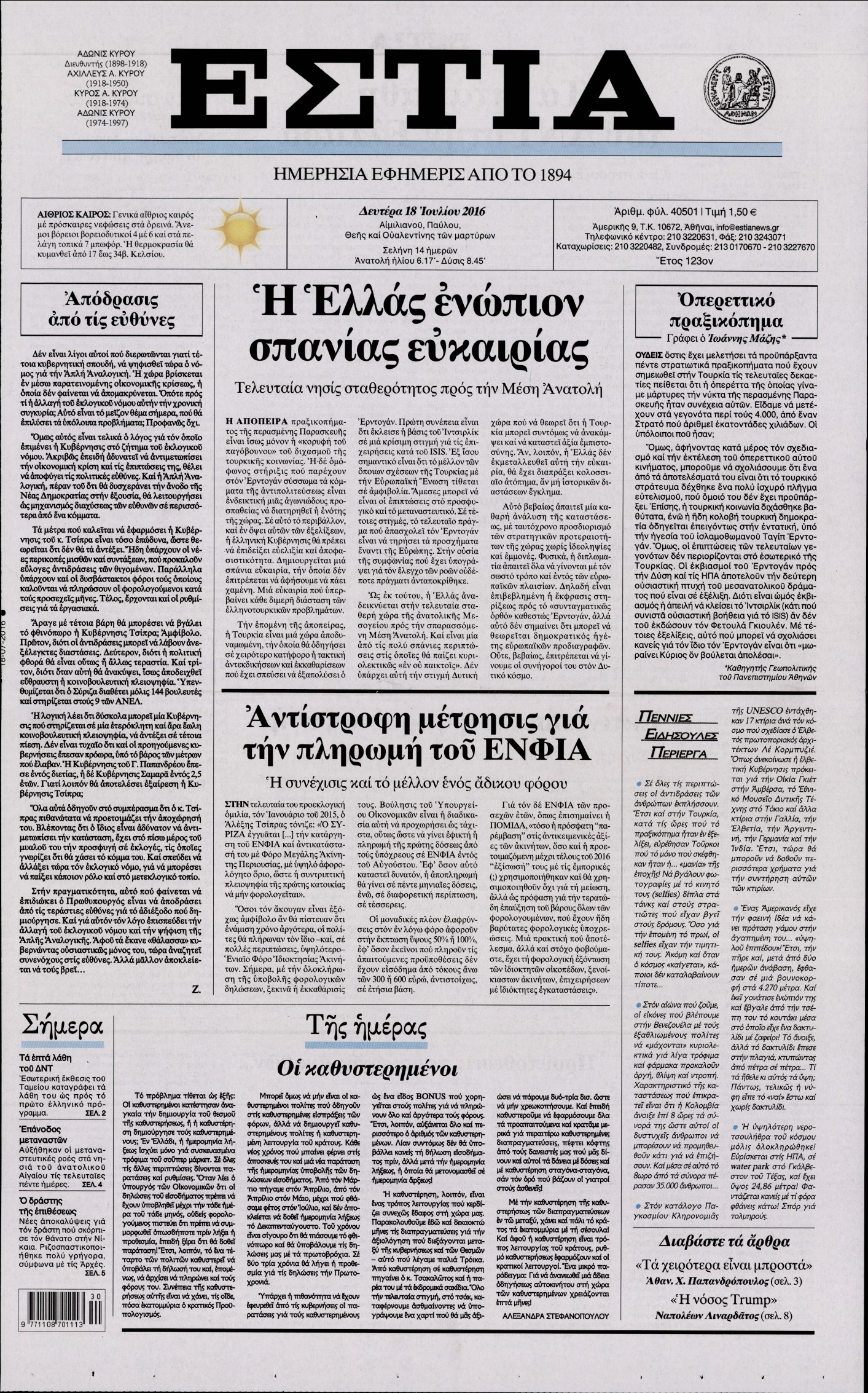 Οι πολιτικές εφημερίδες 18/7/2016 Enikos Newsroom 06:06, Δευτέρα 18 Ιουλίου 2016 Media Διαβάστε τα σημερινά πρωτοσέλιδα των πολιτικών εφημερίδων: ΠΟΛΙΤΙΚΕΣ ΕΦΗΜΕΡΙΔΕΣ ΠΡΩΤΟΣΕΛΙΔΑ Μοιράσου το: σχολίασε κι εσύ (0 σχόλια) Ακολουθήστε το enikos.gr στο Google News και μάθετε πρώτοι όλες τις ειδήσεις Δείτε όλες τις τελευταίες ειδήσεις από την Ελλάδα και τον Κόσμο στο enikos.gr Ειδήσεις Ροή Ειδήσεων 1 ώρα πριν Εκτός ευρωομάδας ΣΥΡΙΖΑ ο Νίκος Παππάς μετά την επίθεση στον δημοσιογράφο Νίκο Γιαννόπουλο – Η μήνυση και οι νέες δηλώσεις 2 ώρες πριν «Αγριεύουν» οι αγρότες: «Δεν συντρέχει λόγος συνάντησης με τον πρωθυπουργό» – Ώρα αποφάσεων στη σύσκεψη της Πέμπτης 2 ώρες πριν Κυψέλη: Χωρίς την οικογένειά της δίπλα της απολογήθηκε η 16χρονη – «Της είχε επιτεθεί κάποιος για να την βιάσει, φοβήθηκε και κυκλοφορούσε με μαχαίρι» 1 ώρα πριν Politico: Το πρόβλημα της Ευρώπης δεν είναι το Βέλγιο αλλά ο Ντόναλντ Τραμπ 3 ώρες πριν Αλεξανδρούπολη: Πολυοργανική ανεπάρκεια λόγω υποσιτισμού η αιτία θανάτου του 3χρονου αγοριού 2 ώρες πριν Μυστήριο με τεράστιες κυκλικές πέτρες 200 κιλών – Ανακαλύφθηκαν τυχαία κατά τη διάρκεια οδικών έργων και κανείς δεν ξέρει από πού προέρχονται 3 ώρες πριν Ύπνος: Ειδικός εξηγεί τον πραγματικό λόγο που ξυπνάτε στις 4 τα ξημερώματα – Ο ρόλος των ορμονών και του κιρκάδιου ρυθμού 4 ώρες πριν Αριθμολογία: Οι άνθρωποι που έχουν γεννηθεί αυτές τις 4 ημερομηνίες, είναι τρυφεροί και αγαπούν ανιδιοτελώς 15 ώρες πριν 20 χρόνια τα Χριστούγεννα ξεκινούν στα Public με μεγάλη ποικιλία σε δώρα! 4 λεπτά πριν Βέλγους πολιτικούς και επικεφαλής χρηματοπιστωτικών ιδρυμάτων στοχοποιεί η Μόσχα για τα κατασχεθέντα περιουσιακά στοιχεία 19 λεπτά πριν ΗΠΑ: Αναζητείται δεύτερος ύποπτος για την επίθεση στο πανεπιστήμιο Μπράουν 34 λεπτά πριν Λεωφόρος Αλεξάνδρας: Δεν εντοπίστηκε βόμβα έξω από το κολλέγιο – Προσήχθη άνδρας για το προειδοποιητικό σημείωμα 51 λεπτά πριν Ελένη Κρίτα για το reunion του «Παρά Πέντε»: «Ήταν πραγματικά σαν να μην είχαμε χαθεί ποτέ» 1 ώρα πριν Κύπελλο Ελλάδας: Αυτά είναι τα ζευγάρια στα νοκ-άουτ, οι διασταυρώσεις στους «8» κι ο δρόμος προς τον τελικό ENIKOS NETWORK Αϋπνία: Το κόλπο που θα σας βοηθήσει να κοιμηθείτε απόψε – Είναι απλό και έχει αποτέλεσμα 2,6 εκατομμύρια πολίτες έχουν ήδη εμβολιαστεί κατά της γρίπης ΕΛΣΤΑΤ: Τι δείχνουν τα νέα στοιχεία για τις ηλεκτρονικές παραγγελίες των επιχειρήσεων ΚΕΠΕ: Οι 3 διακριτές συμβολές των ΜμΕ και της μεταποίησης στην ελληνική οικονομία Χαρτογραφώντας το «σημείο χωρίς επιστροφή»: Για πρώτη φορά αποκαλύπτεται με λεπτομέρεια το ακανθώδες όριο της ατμόσφαιρας τ... Η Google καταργεί τη λειτουργία «dark web report» – Πώς θα μπορούν οι χρήστες να διαγράφουν τα δεδομένα τους περισσότερα 22:24 , Τετάρτη 17 Δεκεμβρίου 2025 Το Σπίτι Δίπλα Στο Ποτάμι: Σε κίνδυνο η υγεία του Απόστολου – Τι θα δούμε απόψε “Το Σπίτι Δίπλα στο Ποτάμι” ξετυλίγει το νήμα της ζωής των πέντε αδελφών με καταισ... 21:14 , Τετάρτη 17 Δεκεμβρίου 2025 Παιχνίδια Εκδίκησης: Θα καταφέρει ο Χρήστος να κλονίσει την εμπιστοσύνη της Μάγιας απέναντι στον Άγη; Τα «Παιχνίδια Εκδίκησης» έρχονται απόψε στις 22:30, στον Αντ1, με το τελευταίο επεισόδιο της χ... 20:57 , Τετάρτη 17 Δεκεμβρίου 2025 Άγιος Έρωτας: Η Χλόη καταθέτει εναντίον του πατέρα της και ο Χάρης αποκαλύπτει στον Κλεάνθη ότι δεν είναι ο βιολογικός του πατέρας. Γεμάτο αποκαλύψεις είναι το νέο επεισόδιο της σειράς “Άγιος Έρωτας” απόψε στις 21:... 20:15 , Τετάρτη 17 Δεκεμβρίου