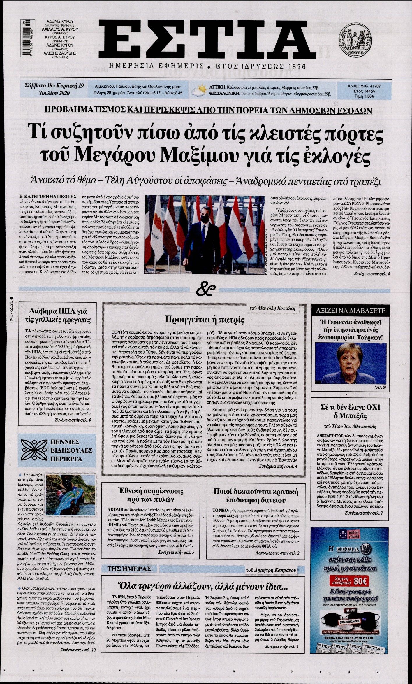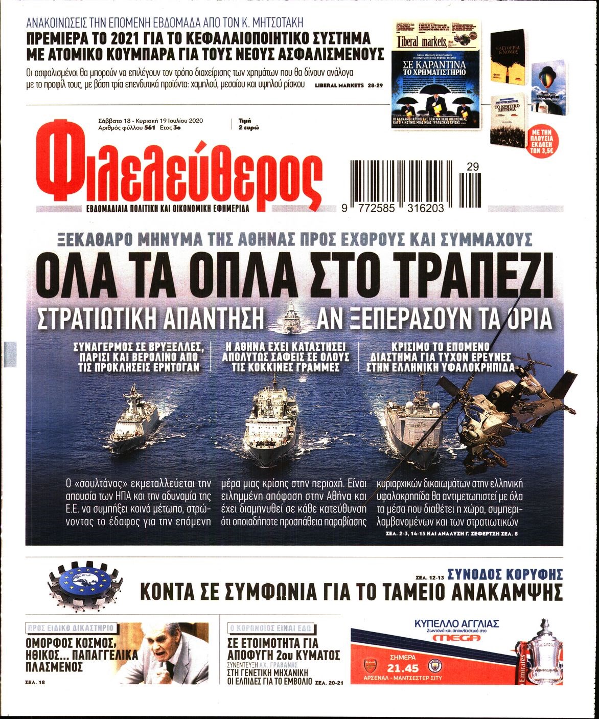 Οι πολιτικές εφημερίδες 18/7/2020 Διονύσης Νίκκας 07:14, Σάββατο 18 Ιουλίου 2020 Media Διαβάστε τα πρωτοσέλιδα των πολιτικών εφημερίδων… ΠΟΛΙΤΙΚΕΣ ΕΦΗΜΕΡΙΔΕΣ Μοιράσου το: σχολίασε κι εσύ (0 σχόλια) Ακολουθήστε το enikos.gr στο Google News και μάθετε πρώτοι όλες τις ειδήσεις Δείτε όλες τις τελευταίες ειδήσεις από την Ελλάδα και τον Κόσμο στο enikos.gr Ειδήσεις Ροή Ειδήσεων 2 ώρες πριν Χριστούγεννα στα μπλόκα: Επιμένουν στις κινητοποιήσεις τους οι αγρότες – Ανοίγουν τα διόδια το Σαββατοκύριακο 2 ώρες πριν Ουκρανία: Η άνευ προηγουμένου επίθεση σε ρωσικό τάνκερ στη Μεσόγειο και το μήνυμα προς στον Πούτιν – Το «μακρύ χέρι» του Κιέβου 2 ώρες πριν Πούτιν: Τα μηνύματα σε Ευρώπη και ΝΑΤΟ από το μαραθώνιο «σόου» του – Η απαίτηση για «σεβασμό» και η ειρήνη «με τους όρους» της Μόσχας 3 ώρες πριν Τραμπ: Δεν αποκλείει την πιθανότητα ενός πολέμου στη Βενεζουέλα – «Ο Μαδούρο ξέρει καλύτερα από τον καθένα τι ακριβώς θέλω» 3 ώρες πριν Συνεχίζει να προκαλεί ο Μίτσκοσκι: «Για μένα το όνομα Μακεδονία είναι ιερό» 2 ώρες πριν Ανακαλύφθηκαν αρχαία χρυσά νομίσματα 2.200 ετών που απεικονίζουν τον θεό Απόλλωνα – Η άγνωστη σύνδεση με τον Φίλιππο Β΄ της Μακεδονίας 3 ώρες πριν Ύπνος: Μια κρυφή κατάσταση του εγκεφάλου πριν από τον ύπνο μπορεί να είναι το “κλειδί” για υψηλή ευφυΐα και δημιουργικότητα 4 ώρες πριν Αριθμολογία: Οι άνθρωποι που έχουν γεννηθεί αυτές τις 4 ημερομηνίες, συχνά παρεξηγούνται – «Η καλοσύνη τους κρύβει τεράστια δύναμη» 5 ώρες πριν Ξεχάστε το καθάρισμα το Σαββατοκύριακο: Ο «κανόνας των 20 λεπτών» που θα σας λύσει τα χέρια 14 λεπτά πριν Φαίη Σκορδά: «Παλιότερα τα κομπλιμέντα τα προσπερνούσα, τώρα τα έχω ανάγκη» 30 λεπτά πριν Βασίλης Σπανούλης: Δεν εμφανίστηκε ούτε ένας δημοσιογράφος στην συνέντευξη Τύπου – «Καλησπέρα στον… κανέναν», δείτε βίντεο 41 λεπτά πριν Πόλεμος στην Ουκρανία: Εφτά νεκροί από ρωσική πυραυλική επίθεση στο λιμάνι της Οδησσού 44 λεπτά πριν ΗΠΑ: Η κυβέρνηση του Ντόναλντ Τραμπ άρχισε να δημοσιοποιεί τα αρχεία Έπσταϊν 56 λεπτά πριν Σάμος: Άνοιξε το μπλόκο των αγροτών στον κόμβο Κοκκαρίου – Σε νέα συνεδρίαση θα καθορίσουν την στάση τους ENIKOS NETWORK Το ΕΚΑΒ τιμήθηκε από την Ακαδημία Αθηνών για τα 40 χρόνια προσφοράς του Έχετε πραγματικά μεγάλη καρδιά; 10 χαρακτηριστικά όσων έχουν καλοσύνη Αναστολή μέτρων αναγκαστικής εκτέλεσης για κτηνοτρόφους που πλήττονται από την ευλογιά των αιγοπροβάτων Πλήρης επάρκεια προϊόντων στις λαϊκές της Αττικής, παρά τις αγροτικές κινητοποιήσεις – Τι απαντούν οι πωλητές Χαρτογραφώντας το «σημείο χωρίς επιστροφή»: Για πρώτη φορά αποκαλύπτεται με λεπτομέρεια το ακανθώδες όριο της ατμόσφαιρας τ... Η Google καταργεί τη λειτουργία «dark web report» – Πώς θα μπορούν οι χρήστες να διαγράφουν τα δεδομένα τους περισσότερα 22:42 , Παρασκευή 19 Δεκεμβρίου 2025 Γιώργος Γιαννόπουλος για “Το σόι σου”: “Είναι ευτυχία και ευλογία αυτή η σειρά” «Είναι ευτυχία και ευλογία η συγκυρία αυτής της σειράς», θα πει ο Γιώργος Γιαννόπουλος -ο αγαπ... 20:37 , Παρασκευή 19 Δεκεμβρίου 2025 Don’t Forget The Lyrics: Η Έλλη Κοκκίνου υποδέχεται 4 παίκτες που θα κάνουν τα πάντα για να μη χάσουν ούτε… μισή λέξη από τους στίχους Το «Don’t Forget The Lyrics» επιστρέφει απόψε, Παρασκευή 19 Δεκεμβρίου, στις 21:00 με νέο επει... 19:31 , Παρασκευή 19 Δεκεμβρίου 2025 GNTM: Απόψε ο μεγάλος τελικός για τους 4 φιναλίστ Έπειτα από μήνες γεμάτους μόδα, δημιουργία και έντονες αναμετρήσεις, το GNTM 2025 κορυφώνεται,... 18:11 , Παρασκευή 19 Δεκεμ
