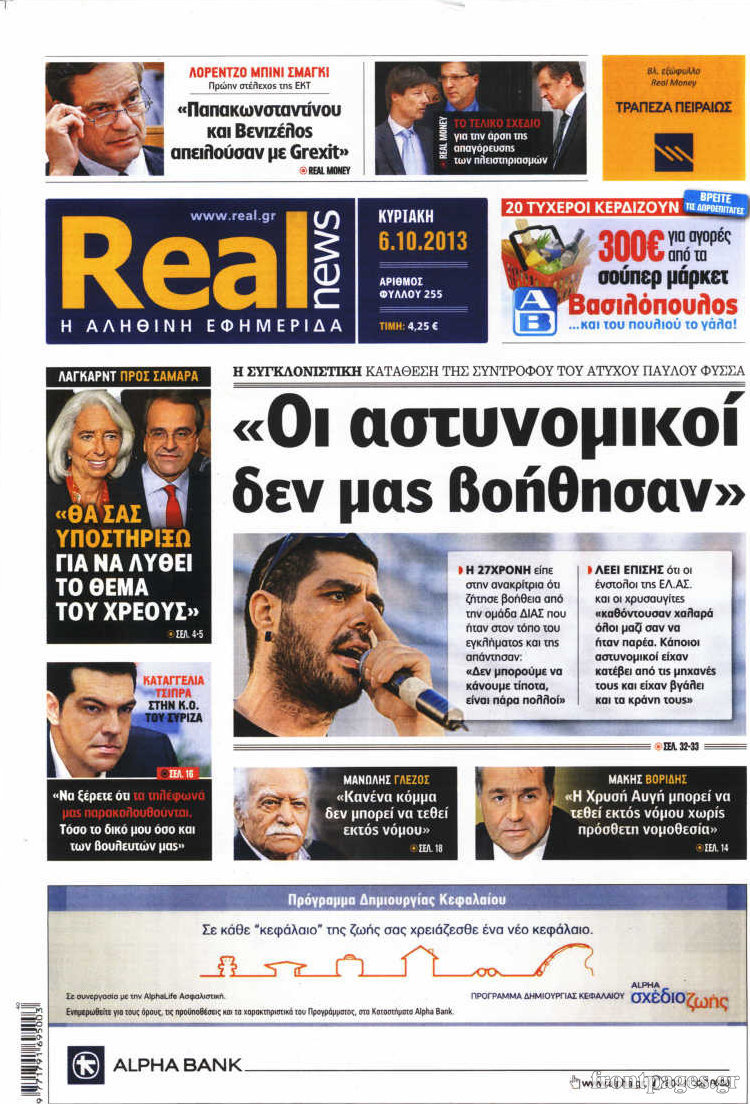 Οι πολιτικές εφημερίδες Enikos Newsroom 08:49, Κυριακή 06 Οκτωβρίου 2013 Media Οι πολιτικές εφημερίδες Διαβάστε τα πρωτοσέλιδα των πολιτικών εφημερίδων. ΠΟΛΙΤΙΚΕΣ ΕΦΗΜΕΡΙΔΕΣ ΠΡΩΤΟΣΕΛΙΔΑ Μοιράσου το: σχολίασε κι εσύ (0 σχόλια) Ακολουθήστε το enikos.gr στο Google News και μάθετε πρώτοι όλες τις ειδήσεις Δείτε όλες τις τελευταίες ειδήσεις από την Ελλάδα και τον Κόσμο στο enikos.gr Ειδήσεις Ροή Ειδήσεων 6 ώρες πριν Κύκλωμα διακίνησης ναρκωτικών σε σχολεία: Βίντεο ντοκουμέντο από τα βασανιστήρια στους ανήλικους – Συζητούσαν για το πώς θα κάνουν «ξέπλυμα χρήματος» 5 ώρες πριν Κλιμακώνουν τις κινητοποιήσεις τους οι αγρότες: Κλείνουν τη Δευτέρα τις σήραγγες των Τεμπών για τα φορτηγά – Ανοίγουν την Τρίτη τους δρόμους για τους εκδρομείς 6 ώρες πριν Αιματηρό επεισόδιο στον Άγιο Παντελεήμονα – Δύο τραυματίες, αναζητείται ο δράστης 5 ώρες πριν ΗΠΑ: Αυξάνουν την πίεση στην Βενεζουέλα – Το νέο ρεσάλτο σε τάνκερ και ο στόχος του Τραμπ 5 ώρες πριν Κασσελάκης για παραίτηση Μάλαμα: «Η πορεία μας δεν θα καθοριστεί από μεμονωμένα πρόσωπα, μηχανισμούς και προσωπικές ατζέντες» 4 ώρες πριν Αρχαιολογικό θρίλερ στην καρδιά της Ευρώπης: Παράξενο θραύσμα με ανάγλυφα και σφηνοειδή γραφή ανακαλύφθηκε σε μέρος που δεν περίμενε κανείς 5 ώρες πριν Ύπνος: Τι είναι ο «κανόνας 3-3-3» που χρησιμοποιεί ένας γιατρός για να ξεχωρίσει την κόπωση από την αϋπνία 6 ώρες πριν Αριθμολογία: Οι άνθρωποι που έχουν γεννηθεί αυτές τις 4 ημερομηνίες, είναι οι πιο πιστοί και αφοσιωμένοι σύντροφοι 2 ημέρες πριν Enerwave: Το νέο «ρεύμα» στη λιανική ενέργειας που αλλάζει την εμπειρία του καταναλωτή 12 λεπτά πριν Συνοικισμός Κορίνθου: Αυτοκίνητο τυλίχτηκε στις φλόγες – Συναγερμός στην Πυροσβεστική 27 λεπτά πριν ΗΠΑ: Υπέρ των στρατιωτικών επιχειρήσεων κατά της Χαμάς και της Χεζμπολάχ αν δεν αφοπλιστούν, ρεπουμπλικάνος γερουσιαστής 43 λεπτά πριν Ξέσπασε ο Γιώργος Μαζωνάκης μετά τις καταγγελίες: «Εκπομπές στην τηλεόραση ξεφτιλίζουν ανθρώπους» 57 λεπτά πριν Κολομβία: Μονομερής εκεχειρία από τον ELN για την περίοδο των εορτών 1 ώρα πριν ΗΠΑ: Επιχείρηση αναχαίτισης τάνκερ που συνδέεται με το Ιράν και κατευθυνόταν στη Βενεζουέλα ENIKOS NETWORK Οι γυναίκες έχουν βρει μια νέα απόλαυση στην κρεβατοκάμαρα που οι περισσότεροι άνδρες αγνοούν Christmas glow: 5 χρυσές συμβουλές για επιδερμίδα που λάμπει από ομορφιά τα Χριστούγεννα Νέο έτος ρεκόρ για τον ελληνικό τουρισμό το 2025: «Είμαστε μέσα στους 10 πλέον επισκέψιμους προορισμούς παγκοσμίως» λέει η ... Τιμές καυσίμων: Πόσο θα πληρώσουν οι εκδρομείς των Χριστουγέννων – Το κόστος μετακινήσεων σε δημοφιλείς προορισμούς Χαρτογραφώντας το «σημείο χωρίς επιστροφή»: Για πρώτη φορά αποκαλύπτεται με λεπτομέρεια το ακανθώδες όριο της ατμόσφαιρας τ... Η Google καταργεί τη λειτουργία «dark web report» – Πώς θα μπορούν οι χρήστες να διαγράφουν τα δεδομένα τους περισσότερα 02:45 , Δευτέρα 22 Δεκεμβρίου 2025 Ξέσπασε ο Γιώργος Μαζωνάκης μετά τις καταγγελίες: «Εκπομπές στην τηλεόραση ξεφτιλίζουν ανθρώπους» Στο προσκήνιο της επικαιρότητας βρέθηκε ξανά ο Γιώργος Μαζωνάκης, για δεύτερη φορά μέσα σε λίγ... 00:13 , Δευτέρα 22 Δεκεμβρίου 2025 MasterChef: Στον… αέρα το τρέιλερ του 10ου κύκλου – ΒΙΝΤΕΟ Κυκλοφόρησε το τρέιλερ για τον 10ο κύκλο του MasterChef, σηματοδοτώντας την επιστροφή του δημο... 21:30 , Κυριακή 21 Δεκεμβρίου 2025 Ο Δικαστής: Στα χέρια της Αστυνομίας βίντεο, που ανατρέπει όλα τα δεδομένα – Στενεύει ο κλοιός γύρω από τον Δικαστή Καταιγιστι