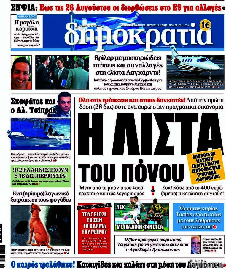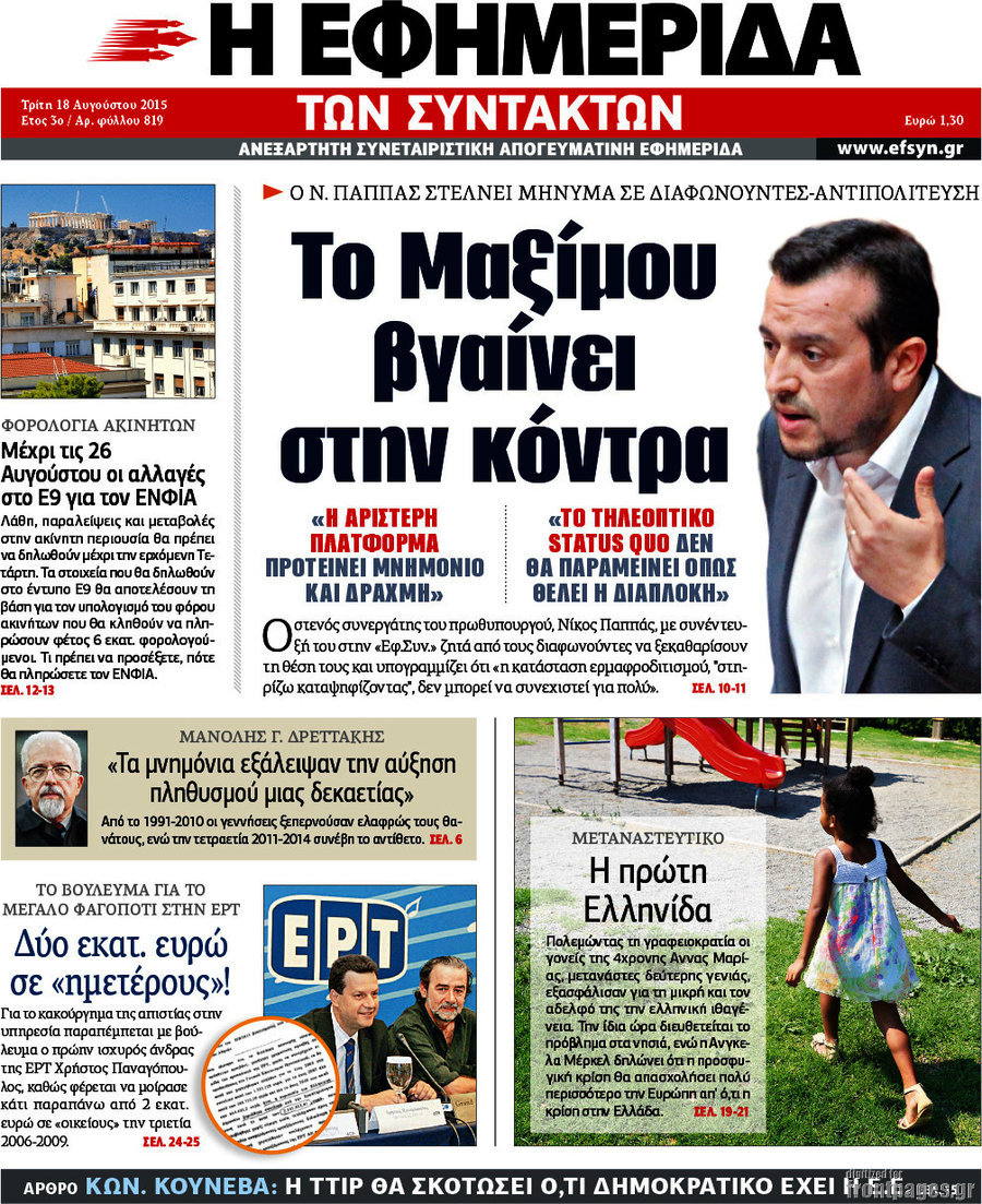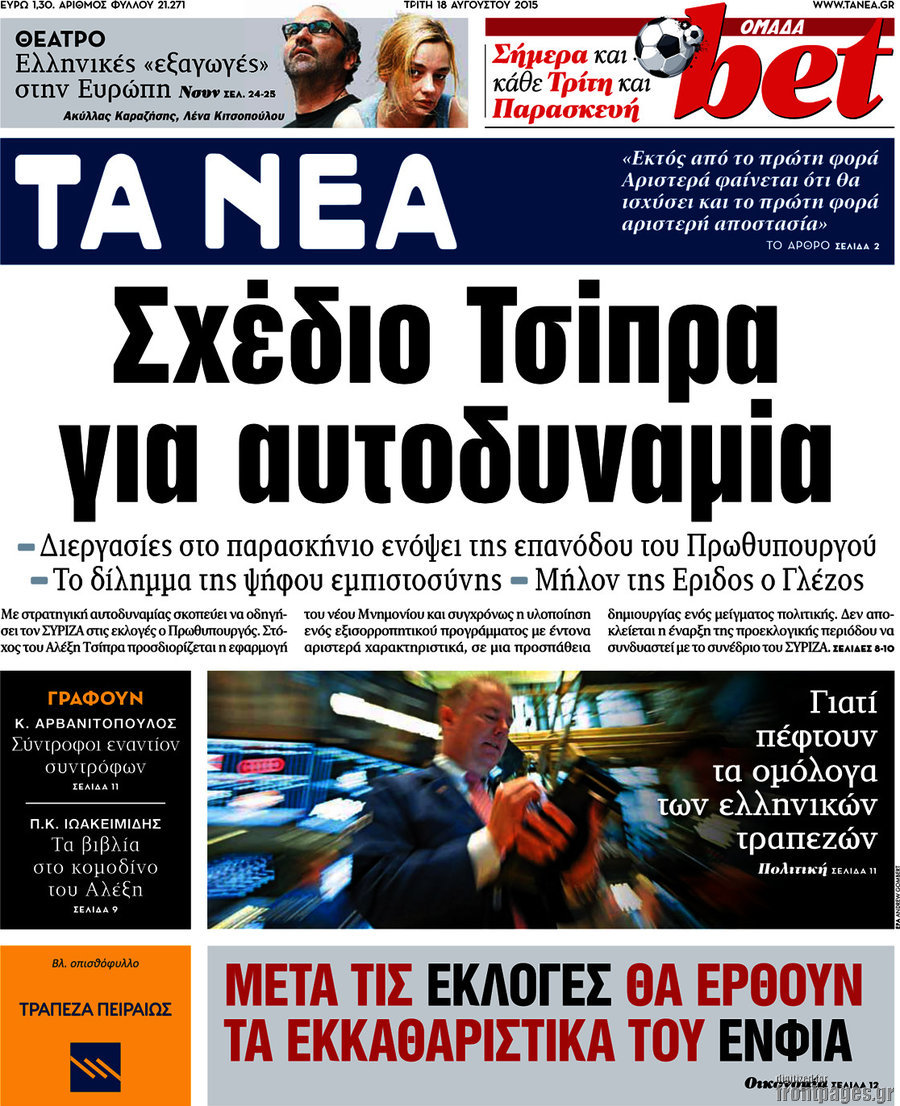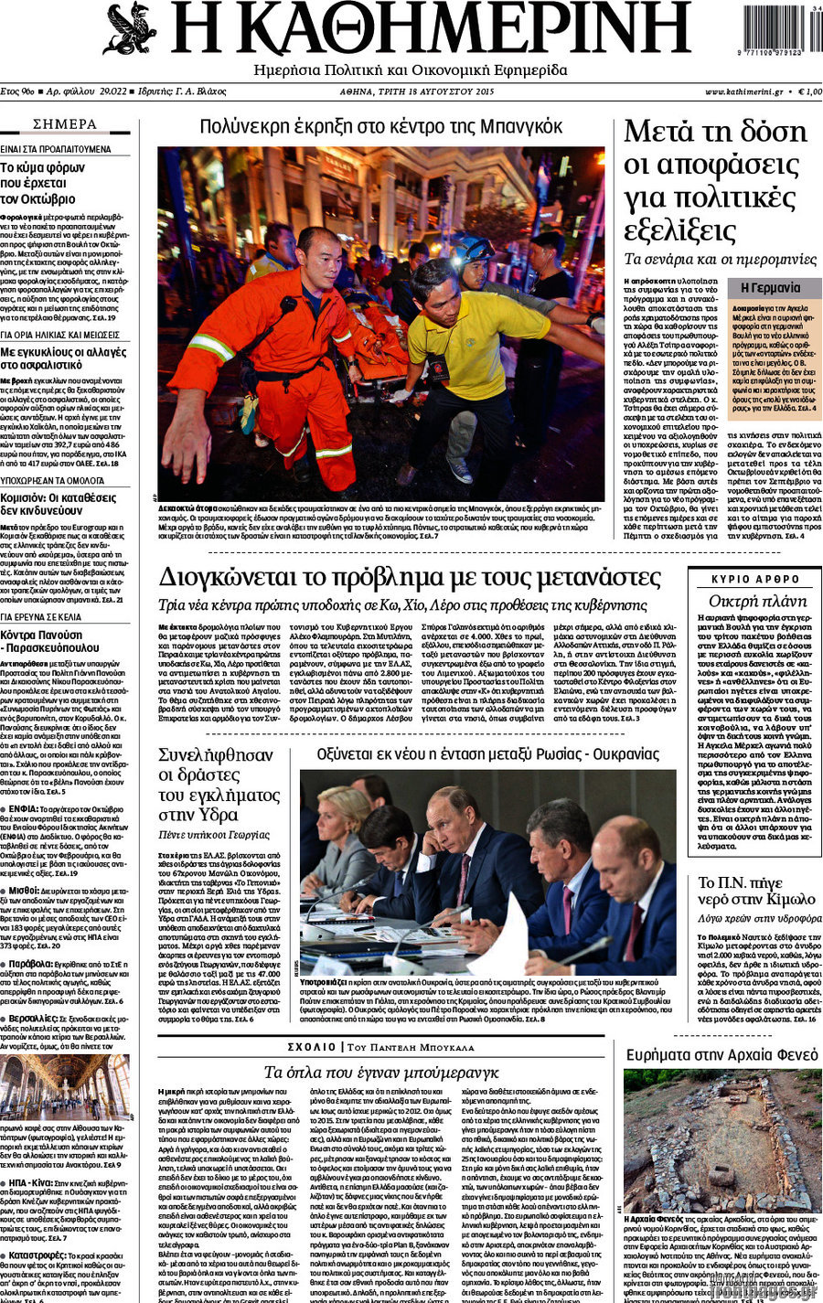 Οι πολιτικές εφημερίδες 18/8/2015 Enikos Newsroom 07:35, Τρίτη 18 Αυγούστου 2015 Media Διαβάστε τα σημερινά πρωτοσέλιδα των πολιτικών εφημερίδων: ΠΟΛΙΤΙΚΕΣ ΕΦΗΜΕΡΙΔΕΣ ΠΡΩΤΟΣΕΛΙΔΑ Μοιράσου το: σχολίασε κι εσύ (0 σχόλια) Ακολουθήστε το enikos.gr στο Google News και μάθετε πρώτοι όλες τις ειδήσεις Δείτε όλες τις τελευταίες ειδήσεις από την Ελλάδα και τον Κόσμο στο enikos.gr Ειδήσεις Ροή Ειδήσεων 4 ώρες πριν Πώς δρούσε το κύκλωμα που διακινούσε ναρκωτικά σε σχολεία – Υπέβαλαν σε βασανιστήρια όσους δεν τηρούσαν τους «κανόνες πειθαρχίας» 4 ώρες πριν Αγρότες: Γιορτές στα μπλόκα με ανοιχτά διόδια – Δικογραφία στα Ιωάννινα για το σήκωμα των μπαρών 4 ώρες πριν Ζελένσκι: Οι Αμερικανοί πρότειναν συνάντηση Ουκρανίας, ΗΠΑ, Ρωσίας στο Μαϊάμι 2 ώρες πριν Τραμπ: Πώς περνάει τις γιορτές των Χριστουγέννων – Τα δώρα που κάνει στα εγγόνια του 3 ώρες πριν Μικαέλα Μπέντχαους: Ο πρώτος άνθρωπος σε αναπηρικό αμαξίδιο που ταξίδεψε στο διάστημα – ΒΙΝΤΕΟ 5 ώρες πριν Η τύχη χαμογελά σε 3 ζώδια έως τις 28 Δεκεμβρίου – «Προσέξτε τις επιλογές σας και η επιμονή σας θα ανταμειφθεί» 6 ώρες πριν Μία ανεκμετάλλευτη πηγή θα μπορούσε να προσφέρει ανεξάντλητη ενέργεια – Οι επιστήμονες ίσως γνωρίζουν πώς να την ξεκλειδώσουν 2 ώρες πριν Μήπως οι γιορτές σας δεν είναι τόσο τέλειες; 7 χριστουγεννιάτικες συνήθειες που μαρτυρούν ότι μια οικογένεια είναι δυσλειτουργική 12 ώρες πριν Enerwave: Το νέο «ρεύμα» στη λιανική ενέργειας που αλλάζει την εμπειρία του καταναλωτή 7 λεπτά πριν Super League: Ο Σιαμπάνης «κατέβασε ρολά» και ο Βόλος νίκησε 1-0 τον Παναιτωλικό 17 λεπτά πριν Αυτή την Κυριακή με τη Realnews: Instyle, μαζί Drive και Realnews Geopolitics 19 λεπτά πριν Ο ΑΝΤ1 γεμίζει τις γιορτές με μουσική – Ποιους καλλιτέχνες θα απολαύσουμε 29 λεπτά πριν Πάπας Λέων: Όταν έχει αϋπνίες επενδύει παραγωγικά τον χρόνο του – Ποιο παιχνίδι παίζει στο κινητό 37 λεπτά πριν Πέθανε η σπουδαία αρχαιολόγος Λίλα Μαραγκού ENIKOS NETWORK Οι γυναίκες αποκαλύπτουν το πιο ελκυστικό πράγμα που μπορεί να κάνει ένας άνδρας Ομορφιά και αντιγήρανση: Ειδικοί μιλούν για συσκευές περιποίησης του δέρματος Πορτοκαλί τιμολόγια ρεύματος: Τα σημεία που πρέπει να προσέξουν οι καταναλωτές – Πότε θα εφαρμοστούν Θεοδωρικάκος: Εθνική στρατηγική για τους ημιαγωγούς – Πρώτο βήμα η χρηματοδότηση του πρώτου Κέντρου Ικανοτήτων, με 3,63 εκα... Χαρτογραφώντας το «σημείο χωρίς επιστροφή»: Για πρώτη φορά αποκαλύπτεται με λεπτομέρεια το ακανθώδες όριο της ατμόσφαιρας τ... Η Google καταργεί τη λειτουργία «dark web report» – Πώς θα μπορούν οι χρήστες να διαγράφουν τα δεδομένα τους περισσότερα 20:30 , Σάββατο 20 Δεκεμβρίου 2025 Αυτή την Κυριακή με τη Realnews: Instyle, μαζί Drive και Realnews Geopolitics Αυτή την Κυριακή με τη Realnews: Instyle, μαζί Drive και Realnews Geopolitics Instyle Η Άννα Ρ... 20:28 , Σάββατο 20 Δεκεμβρίου 2025 Ο ΑΝΤ1 γεμίζει τις γιορτές με μουσική – Ποιους καλλιτέχνες θα απολαύσουμε Φέτος στον ΑΝΤ1 γιορτάζουμε τις νύχτες μας παρέα με αγαπημένους καλλιτέχνες και μεγάλες μουσι... 18:19 , Σάββατο 20 Δεκεμβρίου 2025 HOTΕΛ ΕΛVIRA: Η Ελβίρα μαθαίνει πως ο Χάρι μένει κρυφά στο ξενοδοχείο του Παντελή Συνεχίζονται οι εκλογές για πρόεδρο, στο νέο επεισόδιο της κωμικής σειράς του MEGA, HOTΕΛ ΕΛVI... 14:04 , Σάββατο 20 Δεκεμβρίου 2025 Η Realnews αυτής της Κυριακής (21/12/2025) Με τίτλο: «Ασπίδα προστασίας για την Ελλάδα» κυκλοφορεί, αυτήν την Κυριακή, η Realnews. Σημαντ... ΤΕΛΕΥΤΑΙΕΣ ΕΙΔΗΣΕΙΣ 7 λεπτά πριν Super League: Ο Σιαμπάνης «κατέβασε ρολά» και ο Βόλος νίκησε... 17 λεπτά πριν Αυτή την Κυριακή με τη Realnews: 