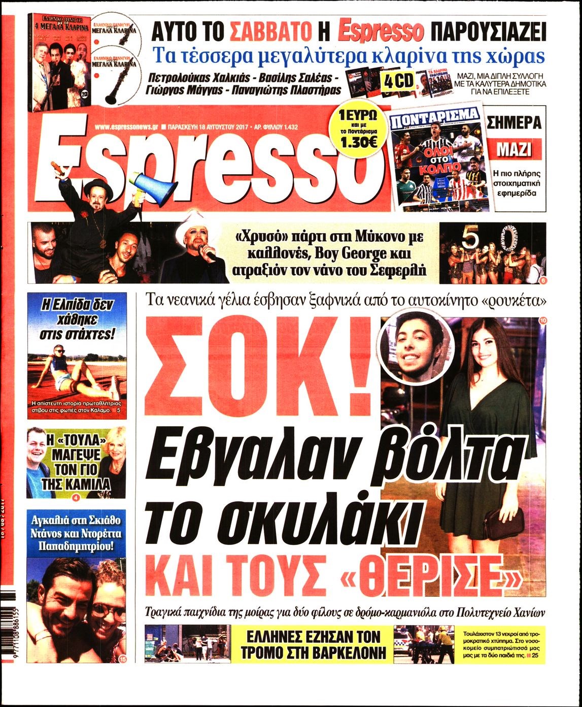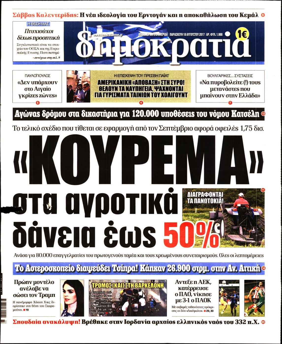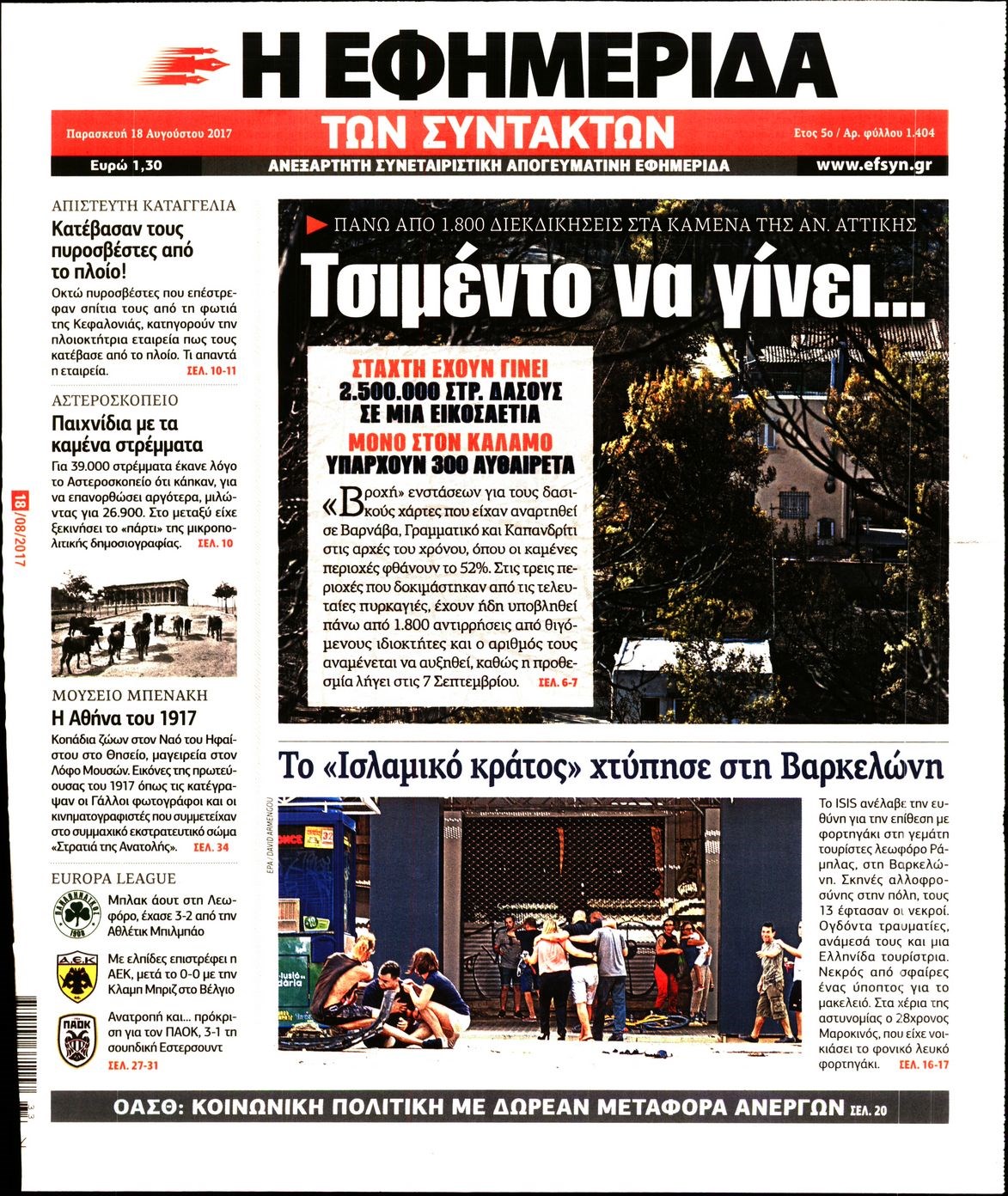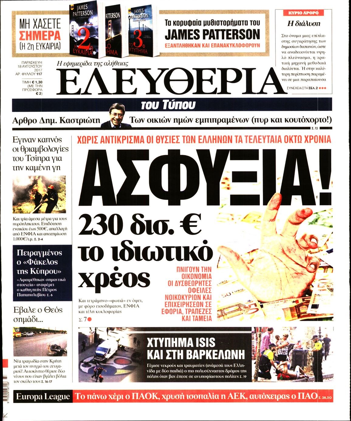 Οι πολιτικές εφημερίδες 18/8/2017 Enikos Newsroom 07:30, Παρασκευή 18 Αυγούστου 2017 Media Διαβάστε τα σημερινά πρωτοσέλιδα των πολιτικών εφημερίδων: ΠΟΛΙΤΙΚΕΣ ΕΦΗΜΕΡΙΔΕΣ ΠΡΩΤΟΣΕΛΙΔΑ Μοιράσου το: σχολίασε κι εσύ (0 σχόλια) Ακολουθήστε το enikos.gr στο Google News και μάθετε πρώτοι όλες τις ειδήσεις Δείτε όλες τις τελευταίες ειδήσεις από την Ελλάδα και τον Κόσμο στο enikos.gr Ειδήσεις Ροή Ειδήσεων 2 λεπτά πριν Καμία «ανακωχή» για τους αγρότες: Γενική συνέλευση σήμερα στο μπλόκο της Νίκαιας – Ο σχεδιασμός για ανοιχτούς δρόμους τα Χριστούγεννα 8 ώρες πριν Ρετζέπ Ταγίπ Ερντογάν: Δεν έχουμε καμία βλέψη στα εδάφη ή την κυριαρχία κανενός – Δεν θα επιτρέψουμε να παραβιαστούν τα δικαιώματά μας 55 λεπτά πριν LEGEND: Ο διάδοχος της φρεγάτας Constellation έρχεται από την ακτοφυλακή των ΗΠΑ 23 λεπτά πριν Τζορτζ Κλούνεϊ: Πέθανε η αδελφή του, Άντα Ζάιντλερ – «Η ηρωίδα μου» 9 ώρες πριν Αρχεία Επστάιν: Οι 500 σελίδες που λείπουν, τα αναπάντητα ερωτήματα και οι επώνυμοι – Τι έπεται 2 ώρες πριν Οπτική ψευδαίσθηση: Μόνο το 2% των ανθρώπων θα βρει την πεταλούδα σε 15 δευτερόλεπτα 2 ώρες πριν Μήλο vs μπανάνα: Ποιο φρούτο έχει περισσότερες φυτικές ίνες, σύμφωνα με διαιτολόγους – Τα οφέλη τους για την υγεία 3 ώρες πριν Τα ζώδια σήμερα, Κυριακή 21 Δεκεμβρίου: Αιγόκεροι, αποφασίζετε για το επόμενο κεφάλαιο της ζωής σας 23 ώρες πριν Enerwave: Το νέο «ρεύμα» στη λιανική ενέργειας που αλλάζει την εμπειρία του καταναλωτή 2 λεπτά πριν Καμία «ανακωχή» για τους αγρότες: Γενική συνέλευση σήμερα στο μπλόκο της Νίκαιας – Ο σχεδιασμός για ανοιχτούς δρόμους τα Χριστούγεννα 4 λεπτά πριν Άγιος έρωτας: Ένας καταστροφικός σεισμός χτυπά τη Στέρνα 12 λεπτά πριν Συνταγή για σκορδόψωμο – Πώς να φτιάξετε δύο συνοδευτικά με τσένταρ και πιπεριές 17 λεπτά πριν Σήμερα με τη Realnews: Ό,τι και αν αγοράσεις, σκανάρεις και κερδίζεις! 23 λεπτά πριν Τζορτζ Κλούνεϊ: Πέθανε η αδελφή του, Άντα Ζάιντλερ – «Η ηρωίδα μου» ENIKOS NETWORK Λίπος στο συκώτι: Τα καλύτερα και τα χειρότερα ροφήματα για το λιπώδες ήπαρ Τεστ προσωπικότητας: Είναι το πρόσωπό σας οβάλ, τετράγωνο, στρογγυλό ή σε σχήμα καρδιάς – Τι σημαίνει; Πρωτοχρονιά 2026: Πόσο κοστίζει φέτος η βασιλόπιτα «Πολεμική» προετοιμασία από την ευρωπαϊκή βιομηχανία ενέργειας – Η Eurelectric ζητεί «ομπρέλα» προστασίας για τις υποδομές Χαρτογραφώντας το «σημείο χωρίς επιστροφή»: Για πρώτη φορά αποκαλύπτεται με λεπτομέρεια το ακανθώδες όριο της ατμόσφαιρας τ... Η Google καταργεί τη λειτουργία «dark web report» – Πώς θα μπορούν οι χρήστες να διαγράφουν τα δεδομένα τους περισσότερα 08:13 , Κυριακή 21 Δεκεμβρίου 2025 Άγιος έρωτας: Ένας καταστροφικός σεισμός χτυπά τη Στέρνα Καταιγιστικές είναι οι εξελίξεις στα δυο τελευταία, συγκλονιστικά επεισόδια του 2025 της σειρά... 08:00 , Κυριακή 21 Δεκεμβρίου 2025 Σήμερα με τη Realnews: Ό,τι και αν αγοράσεις, σκανάρεις και κερδίζεις! Σήμερα με τη Realnews: Ό,τι και αν αγοράσεις, σκανάρεις και κερδίζεις! Με το PADU app, το κορυ... 07:00 , Κυριακή 21 Δεκεμβρίου 2025 Σήμερα με τη Realnews: Instyle, μαζί Drive και Realnews Geopolitics Σήμερα με τη Realnews: Instyle, μαζί Drive και Realnews Geopolitics Instyle Η Άννα Ρεζάν, η Ch... 06:55 , Κυριακή 21 Δεκεμβρίου 2025 Η Realnews στο www.pressreader.com Διαβάστε την ψηφιακή έκδοση της εφημερίδας στην οθόνη του κινητού, του tablet και του υπολογισ... ΤΕΛΕΥΤΑΙΕΣ ΕΙΔΗΣΕΙΣ 4 λεπτά πριν Άγιος έρωτας: Ένας καταστροφικός σεισμός χτυπά τη... 12 λεπτά πριν Συνταγή για σκορδόψωμο – Πώς να φτιάξετε δύο... 17 λεπτά πριν Σήμερα με τη Realnews: Ό,τι και αν αγοράσεις, σκανάρεις και... 23 λεπτ