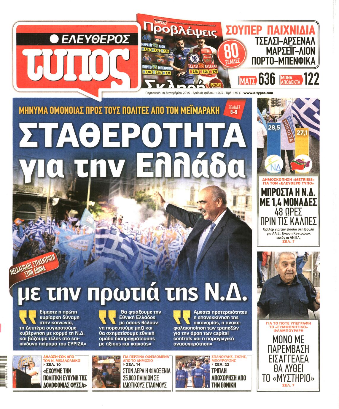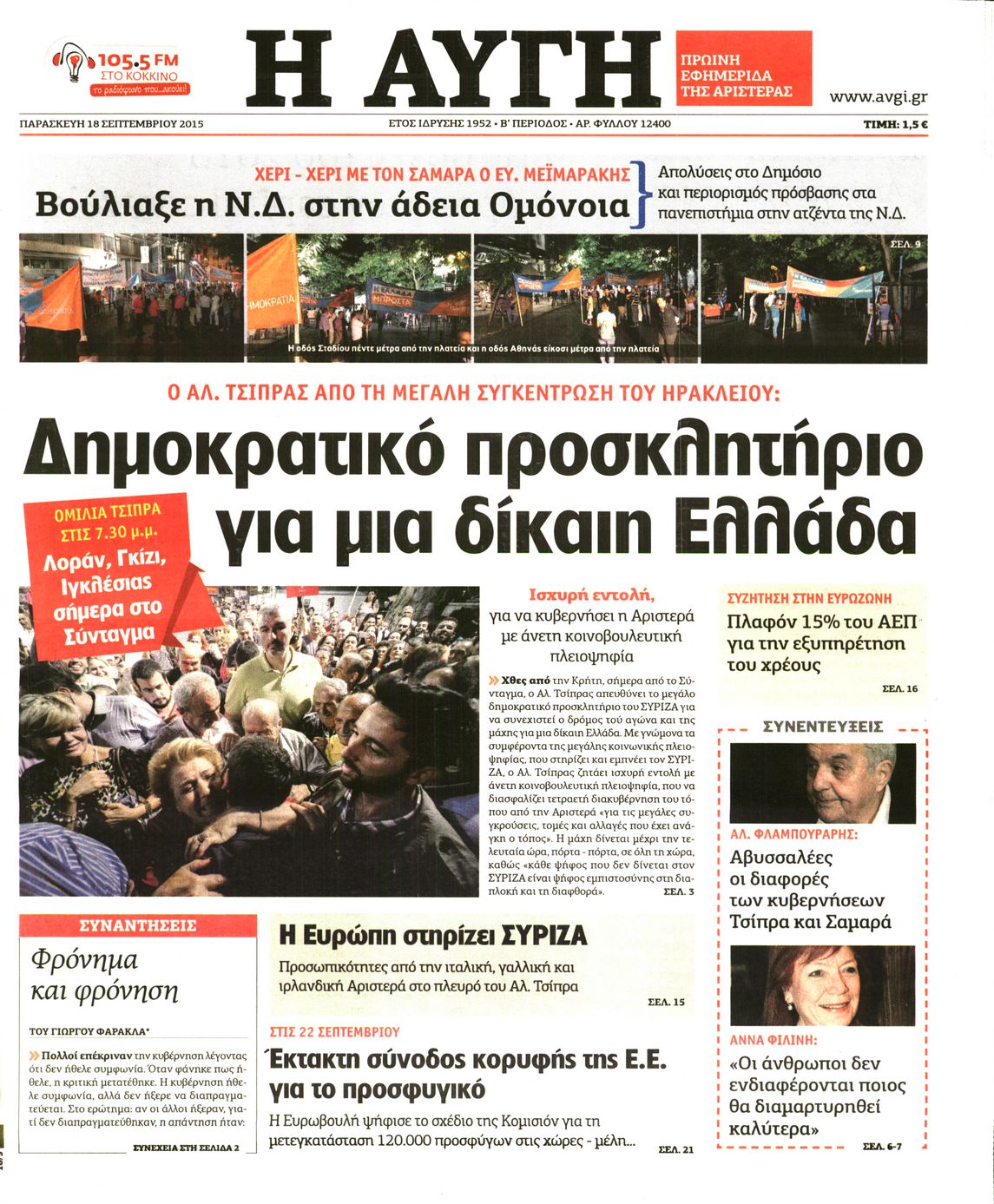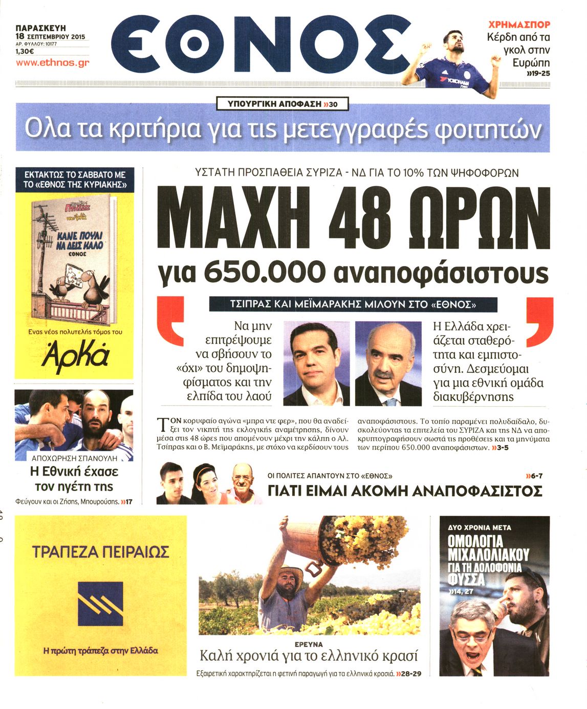 Oι πολιτικές εφημερίδες 18/9/2015 Enikos Newsroom 07:22, Παρασκευή 18 Σεπτεμβρίου 2015 Media Διαβάστε τα σημερινά πρωτοσέλιδα των πολιτικών εφημερίδων: ΠΟΛΙΤΙΚΕΣ ΕΦΗΜΕΡΙΔΕΣ ΠΡΩΤΟΣΕΛΙΔΑ Μοιράσου το: σχολίασε κι εσύ (0 σχόλια) Ακολουθήστε το enikos.gr στο Google News και μάθετε πρώτοι όλες τις ειδήσεις Δείτε όλες τις τελευταίες ειδήσεις από την Ελλάδα και τον Κόσμο στο enikos.gr Ειδήσεις Ροή Ειδήσεων 2 ώρες πριν Χριστούγεννα στα μπλόκα: Επιμένουν στις κινητοποιήσεις τους οι αγρότες – Ανοίγουν τα διόδια το Σαββατοκύριακο 2 ώρες πριν Ουκρανία: Η άνευ προηγουμένου επίθεση σε ρωσικό τάνκερ στη Μεσόγειο και το μήνυμα προς στον Πούτιν – Το «μακρύ χέρι» του Κιέβου 1 ώρα πριν Πούτιν: Τα μηνύματα σε Ευρώπη και ΝΑΤΟ από το μαραθώνιο «σόου» του – Η απαίτηση για «σεβασμό» και η ειρήνη «με τους όρους» της Μόσχας 2 ώρες πριν Τραμπ: Δεν αποκλείει την πιθανότητα ενός πολέμου στη Βενεζουέλα – «Ο Μαδούρο ξέρει καλύτερα από τον καθένα τι ακριβώς θέλω» 3 ώρες πριν Συνεχίζει να προκαλεί ο Μίτσκοσκι: «Για μένα το όνομα Μακεδονία είναι ιερό» 1 ώρα πριν Ανακαλύφθηκαν αρχαία χρυσά νομίσματα 2.200 ετών που απεικονίζουν τον θεό Απόλλωνα – Η άγνωστη σύνδεση με τον Φίλιππο Β΄ της Μακεδονίας 2 ώρες πριν Ύπνος: Μια κρυφή κατάσταση του εγκεφάλου πριν από τον ύπνο μπορεί να είναι το “κλειδί” για υψηλή ευφυΐα και δημιουργικότητα 3 ώρες πριν Αριθμολογία: Οι άνθρωποι που έχουν γεννηθεί αυτές τις 4 ημερομηνίες, συχνά παρεξηγούνται – «Η καλοσύνη τους κρύβει τεράστια δύναμη» 4 ώρες πριν Ξεχάστε το καθάρισμα το Σαββατοκύριακο: Ο «κανόνας των 20 λεπτών» που θα σας λύσει τα χέρια 1 λεπτό πριν Βασίλης Σπανούλης: Δεν εμφανίστηκε ούτε ένας δημοσιογράφος στην συνέντευξη Τύπου – «Καλησπέρα στον… κανέναν», δείτε βίντεο 12 λεπτά πριν Πόλεμος στην Ουκρανία: Εφτά νεκροί από ρωσική πυραυλική επίθεση στο λιμάνι της Οδησσού 16 λεπτά πριν ΗΠΑ: Η κυβέρνηση του Ντόναλντ Τραμπ άρχισε να δημοσιοποιεί τα αρχεία Έπσταϊν 28 λεπτά πριν Σάμος: Άνοιξε το μπλόκο των αγροτών στον κόμβο Κοκκαρίου – Σε νέα συνεδρίαση θα καθορίσουν την στάση τους 36 λεπτά πριν Άνω Λιόσια: Πυροβολισμοί σε επιχείρηση με χαλιά – Εντοπίστηκαν 10 κάλυκες ENIKOS NETWORK Το ΕΚΑΒ τιμήθηκε από την Ακαδημία Αθηνών για τα 40 χρόνια προσφοράς του Έχετε πραγματικά μεγάλη καρδιά; 10 χαρακτηριστικά όσων έχουν καλοσύνη Αναστολή μέτρων αναγκαστικής εκτέλεσης για κτηνοτρόφους που πλήττονται από την ευλογιά των αιγοπροβάτων Πλήρης επάρκεια προϊόντων στις λαϊκές της Αττικής, παρά τις αγροτικές κινητοποιήσεις – Τι απαντούν οι πωλητές Χαρτογραφώντας το «σημείο χωρίς επιστροφή»: Για πρώτη φορά αποκαλύπτεται με λεπτομέρεια το ακανθώδες όριο της ατμόσφαιρας τ... Η Google καταργεί τη λειτουργία «dark web report» – Πώς θα μπορούν οι χρήστες να διαγράφουν τα δεδομένα τους περισσότερα 22:42 , Παρασκευή 19 Δεκεμβρίου 2025 Γιώργος Γιαννόπουλος για “Το σόι σου”: “Είναι ευτυχία και ευλογία αυτή η σειρά” «Είναι ευτυχία και ευλογία η συγκυρία αυτής της σειράς», θα πει ο Γιώργος Γιαννόπουλος -ο αγαπ... 20:37 , Παρασκευή 19 Δεκεμβρίου 2025 Don’t Forget The Lyrics: Η Έλλη Κοκκίνου υποδέχεται 4 παίκτες που θα κάνουν τα πάντα για να μη χάσουν ούτε… μισή λέξη από τους στίχους Το «Don’t Forget The Lyrics» επιστρέφει απόψε, Παρασκευή 19 Δεκεμβρίου, στις 21:00 με νέο επει... 19:31 , Παρασκευή 19 Δεκεμβρίου 2025 GNTM: Απόψε ο μεγάλος τελικός για τους 4 φιναλίστ Έπειτα από μήνες γεμάτους μόδα, δημιουργία και έντονες αναμετρήσεις, το GNTM 2025 κορυφώνεται,... 18:11 , Παρ