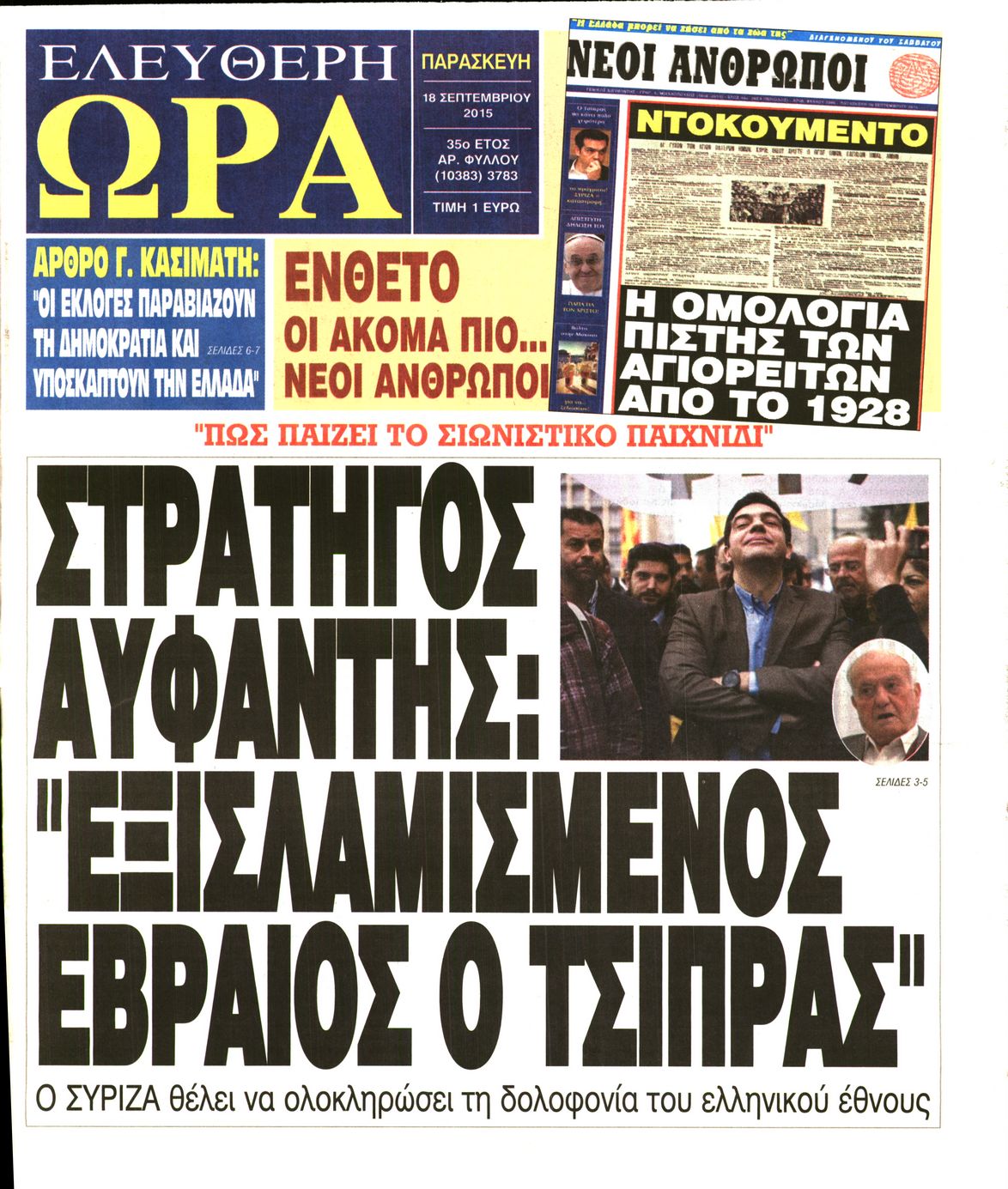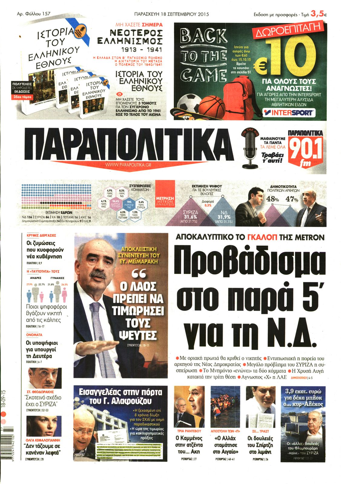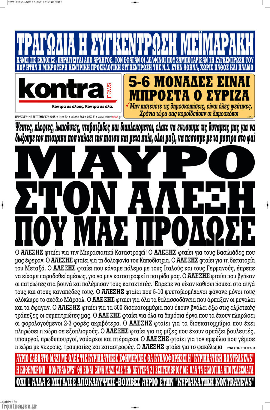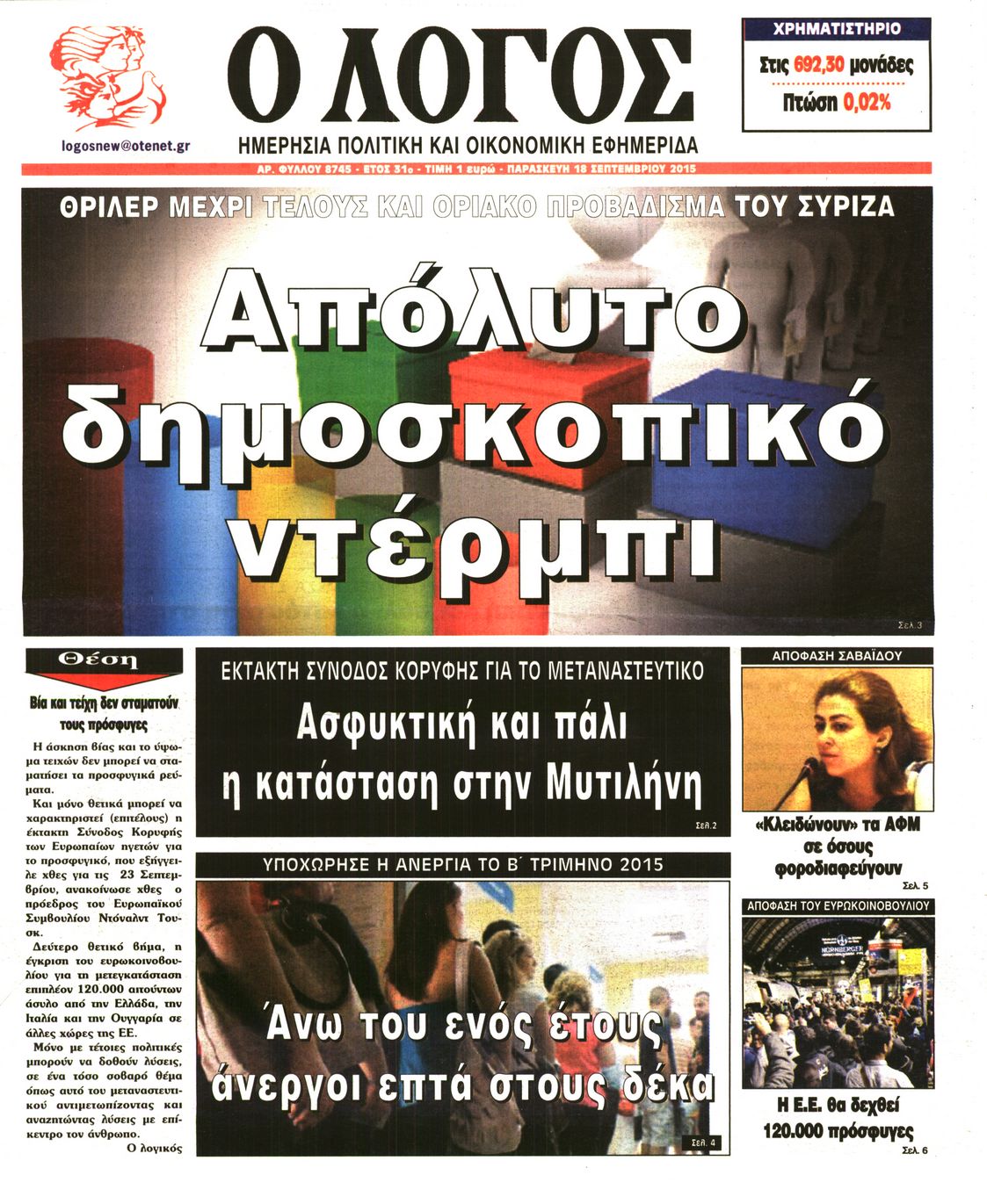 Oι πολιτικές εφημερίδες 18/9/2015 Enikos Newsroom 07:22, Παρασκευή 18 Σεπτεμβρίου 2015 Media Διαβάστε τα σημερινά πρωτοσέλιδα των πολιτικών εφημερίδων: ΠΟΛΙΤΙΚΕΣ ΕΦΗΜΕΡΙΔΕΣ ΠΡΩΤΟΣΕΛΙΔΑ Μοιράσου το: σχολίασε κι εσύ (0 σχόλια) Ακολουθήστε το enikos.gr στο Google News και μάθετε πρώτοι όλες τις ειδήσεις Δείτε όλες τις τελευταίες ειδήσεις από την Ελλάδα και τον Κόσμο στο enikos.gr Ειδήσεις Ροή Ειδήσεων 2 ώρες πριν Χριστούγεννα στα μπλόκα: Επιμένουν στις κινητοποιήσεις τους οι αγρότες – Ανοίγουν τα διόδια το Σαββατοκύριακο 2 ώρες πριν Ουκρανία: Η άνευ προηγουμένου επίθεση σε ρωσικό τάνκερ στη Μεσόγειο και το μήνυμα προς στον Πούτιν – Το «μακρύ χέρι» του Κιέβου 1 ώρα πριν Πούτιν: Τα μηνύματα σε Ευρώπη και ΝΑΤΟ από το μαραθώνιο «σόου» του – Η απαίτηση για «σεβασμό» και η ειρήνη «με τους όρους» της Μόσχας 2 ώρες πριν Τραμπ: Δεν αποκλείει την πιθανότητα ενός πολέμου στη Βενεζουέλα – «Ο Μαδούρο ξέρει καλύτερα από τον καθένα τι ακριβώς θέλω» 3 ώρες πριν Συνεχίζει να προκαλεί ο Μίτσκοσκι: «Για μένα το όνομα Μακεδονία είναι ιερό» 1 ώρα πριν Ανακαλύφθηκαν αρχαία χρυσά νομίσματα 2.200 ετών που απεικονίζουν τον θεό Απόλλωνα – Η άγνωστη σύνδεση με τον Φίλιππο Β΄ της Μακεδονίας 2 ώρες πριν Ύπνος: Μια κρυφή κατάσταση του εγκεφάλου πριν από τον ύπνο μπορεί να είναι το “κλειδί” για υψηλή ευφυΐα και δημιουργικότητα 3 ώρες πριν Αριθμολογία: Οι άνθρωποι που έχουν γεννηθεί αυτές τις 4 ημερομηνίες, συχνά παρεξηγούνται – «Η καλοσύνη τους κρύβει τεράστια δύναμη» 4 ώρες πριν Ξεχάστε το καθάρισμα το Σαββατοκύριακο: Ο «κανόνας των 20 λεπτών» που θα σας λύσει τα χέρια 1 λεπτό πριν Βασίλης Σπανούλης: Δεν εμφανίστηκε ούτε ένας δημοσιογράφος στην συνέντευξη Τύπου – «Καλησπέρα στον… κανέναν», δείτε βίντεο 12 λεπτά πριν Πόλεμος στην Ουκρανία: Εφτά νεκροί από ρωσική πυραυλική επίθεση στο λιμάνι της Οδησσού 16 λεπτά πριν ΗΠΑ: Η κυβέρνηση του Ντόναλντ Τραμπ άρχισε να δημοσιοποιεί τα αρχεία Έπσταϊν 28 λεπτά πριν Σάμος: Άνοιξε το μπλόκο των αγροτών στον κόμβο Κοκκαρίου – Σε νέα συνεδρίαση θα καθορίσουν την στάση τους 36 λεπτά πριν Άνω Λιόσια: Πυροβολισμοί σε επιχείρηση με χαλιά – Εντοπίστηκαν 10 κάλυκες ENIKOS NETWORK Το ΕΚΑΒ τιμήθηκε από την Ακαδημία Αθηνών για τα 40 χρόνια προσφοράς του Έχετε πραγματικά μεγάλη καρδιά; 10 χαρακτηριστικά όσων έχουν καλοσύνη Αναστολή μέτρων αναγκαστικής εκτέλεσης για κτηνοτρόφους που πλήττονται από την ευλογιά των αιγοπροβάτων Πλήρης επάρκεια προϊόντων στις λαϊκές της Αττικής, παρά τις αγροτικές κινητοποιήσεις – Τι απαντούν οι πωλητές Χαρτογραφώντας το «σημείο χωρίς επιστροφή»: Για πρώτη φορά αποκαλύπτεται με λεπτομέρεια το ακανθώδες όριο της ατμόσφαιρας τ... Η Google καταργεί τη λειτουργία «dark web report» – Πώς θα μπορούν οι χρήστες να διαγράφουν τα δεδομένα τους περισσότερα 22:42 , Παρασκευή 19 Δεκεμβρίου 2025 Γιώργος Γιαννόπουλος για “Το σόι σου”: “Είναι ευτυχία και ευλογία αυτή η σειρά” «Είναι ευτυχία και ευλογία η συγκυρία αυτής της σειράς», θα πει ο Γιώργος Γιαννόπουλος -ο αγαπ... 20:37 , Παρασκευή 19 Δεκεμβρίου 2025 Don’t Forget The Lyrics: Η Έλλη Κοκκίνου υποδέχεται 4 παίκτες που θα κάνουν τα πάντα για να μη χάσουν ούτε… μισή λέξη από τους στίχους Το «Don’t Forget The Lyrics» επιστρέφει απόψε, Παρασκευή 19 Δεκεμβρίου, στις 21:00 με νέο επει... 19:31 , Παρασκευή 19 Δεκεμβρίου 2025 GNTM: Απόψε ο μεγάλος τελικός για τους 4 φιναλίστ Έπειτα από μήνες γεμάτους μόδα, δημιουργία και έντονες αναμετρήσεις, το GNTM 2025 κορυφώνεται,... 18:11 , Παρ