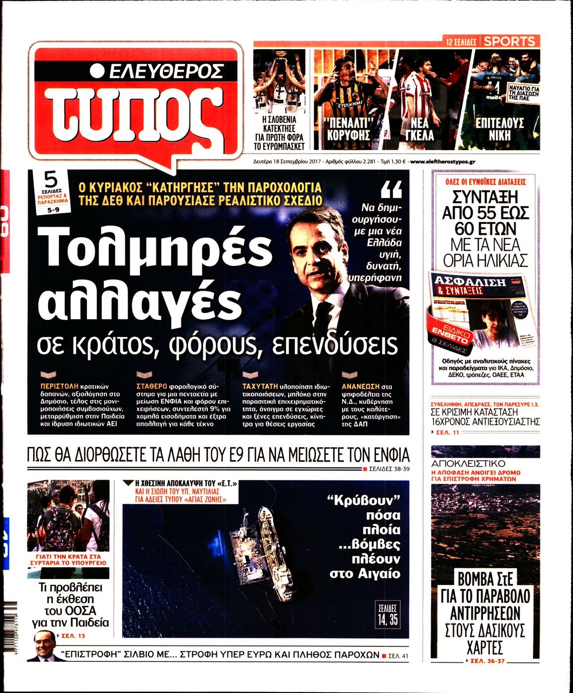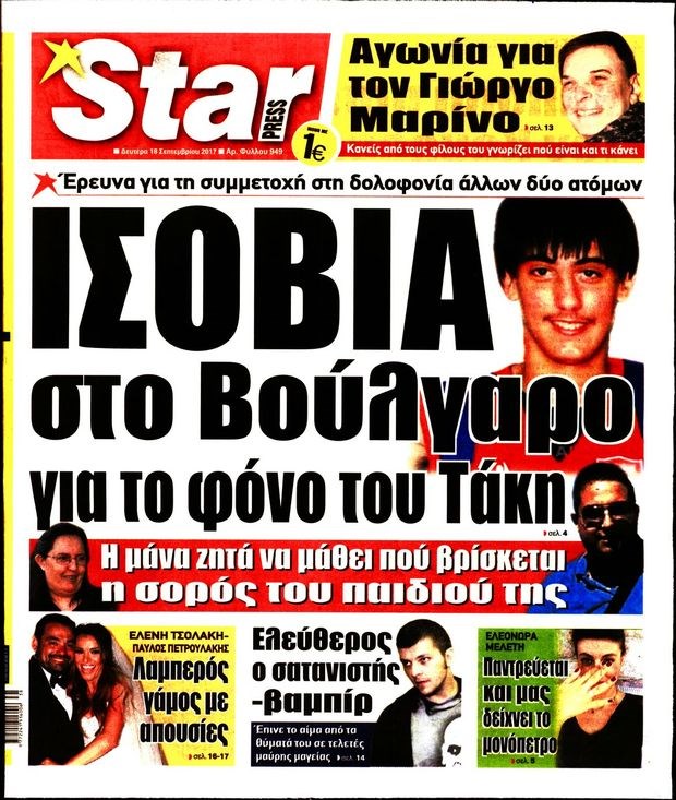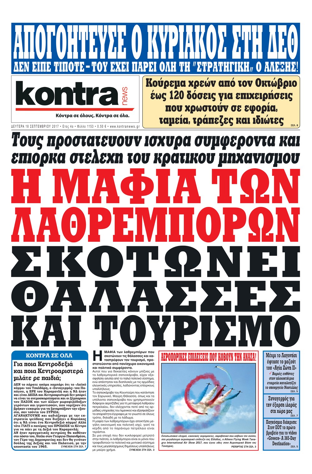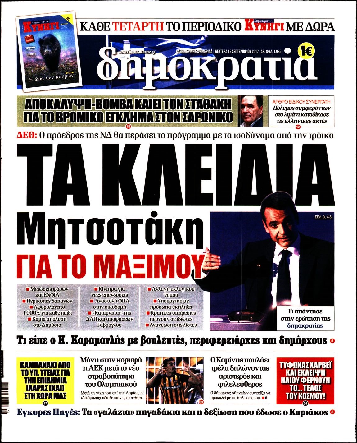 Οι πολιτικές εφημερίδες 18/9/2017 Κώστας Τεό 06:28, Δευτέρα 18 Σεπτεμβρίου 2017 Media Διαβάστε τα σημερινά πρωτοσέλιδα των πολιτικών εφημερίδων: ΠΟΛΙΤΙΚΕΣ ΕΦΗΜΕΡΙΔΕΣ ΠΡΩΤΟΣΕΛΙΔΑ Μοιράσου το: σχολίασε κι εσύ (0 σχόλια) Ακολουθήστε το enikos.gr στο Google News και μάθετε πρώτοι όλες τις ειδήσεις Δείτε όλες τις τελευταίες ειδήσεις από την Ελλάδα και τον Κόσμο στο enikos.gr Ειδήσεις Ροή Ειδήσεων 3 ώρες πριν Χριστούγεννα στα μπλόκα: Επιμένουν στις κινητοποιήσεις τους οι αγρότες – Ανοίγουν τα διόδια το Σαββατοκύριακο 4 ώρες πριν Ουκρανία: Η άνευ προηγουμένου επίθεση σε ρωσικό τάνκερ στη Μεσόγειο και το μήνυμα προς στον Πούτιν – Το «μακρύ χέρι» του Κιέβου 3 ώρες πριν Πούτιν: Τα μηνύματα σε Ευρώπη και ΝΑΤΟ από το μαραθώνιο «σόου» του – Η απαίτηση για «σεβασμό» και η ειρήνη «με τους όρους» της Μόσχας 4 ώρες πριν Τραμπ: Δεν αποκλείει την πιθανότητα ενός πολέμου στη Βενεζουέλα – «Ο Μαδούρο ξέρει καλύτερα από τον καθένα τι ακριβώς θέλω» 5 ώρες πριν Συνεχίζει να προκαλεί ο Μίτσκοσκι: «Για μένα το όνομα Μακεδονία είναι ιερό» 3 ώρες πριν Ανακαλύφθηκαν αρχαία χρυσά νομίσματα 2.200 ετών που απεικονίζουν τον θεό Απόλλωνα – Η άγνωστη σύνδεση με τον Φίλιππο Β΄ της Μακεδονίας 4 ώρες πριν Ύπνος: Μια κρυφή κατάσταση του εγκεφάλου πριν από τον ύπνο μπορεί να είναι το “κλειδί” για υψηλή ευφυΐα και δημιουργικότητα 5 ώρες πριν Αριθμολογία: Οι άνθρωποι που έχουν γεννηθεί αυτές τις 4 ημερομηνίες, συχνά παρεξηγούνται – «Η καλοσύνη τους κρύβει τεράστια δύναμη» 6 ώρες πριν Ξεχάστε το καθάρισμα το Σαββατοκύριακο: Ο «κανόνας των 20 λεπτών» που θα σας λύσει τα χέρια 21 λεπτά πριν Πρόταση γάμου στο ΣΕΦ κατά την διάρκεια του αγώνα Ολυμπιακός-Βιλερμπάν – Δείτε βίντεο 36 λεπτά πριν Euroleague: Επέστρεψε στις νίκες ο Ολυμπιακός, πήρε την ματσάρα της χρονιάς η Μπάρτσα – Τα αποτελέσματα και η βαθμολογία 51 λεπτά πριν Συρία: Μαζικά πλήγματα των ΗΠΑ σε θέσεις του Ισλαμικού Κράτους – Χέγκσεθ: «Δεν είναι αρχή πολέμου, είναι μια δήλωση εκδίκησης» για το θάνατο των στρατιωτών μας 1 ώρα πριν Ουκρανία: Ολοκληρώθηκαν οι συνομιλίες με τους Αμερικανούς κι Ευρωπαίους διαπραγματευτές 1 ώρα πριν Μπαρτσελόνα – Μπασκόνια 134-124: Οι «μπλαουγκράνα» πήραν το ματς της χρονιάς ύστερα από τρεις παρατάσεις ENIKOS NETWORK Το ΕΚΑΒ τιμήθηκε από την Ακαδημία Αθηνών για τα 40 χρόνια προσφοράς του Έχετε πραγματικά μεγάλη καρδιά; 10 χαρακτηριστικά όσων έχουν καλοσύνη Αναστολή μέτρων αναγκαστικής εκτέλεσης για κτηνοτρόφους που πλήττονται από την ευλογιά των αιγοπροβάτων Πλήρης επάρκεια προϊόντων στις λαϊκές της Αττικής, παρά τις αγροτικές κινητοποιήσεις – Τι απαντούν οι πωλητές Χαρτογραφώντας το «σημείο χωρίς επιστροφή»: Για πρώτη φορά αποκαλύπτεται με λεπτομέρεια το ακανθώδες όριο της ατμόσφαιρας τ... Η Google καταργεί τη λειτουργία «dark web report» – Πώς θα μπορούν οι χρήστες να διαγράφουν τα δεδομένα τους περισσότερα 22:42 , Παρασκευή 19 Δεκεμβρίου 2025 Γιώργος Γιαννόπουλος για “Το σόι σου”: “Είναι ευτυχία και ευλογία αυτή η σειρά” «Είναι ευτυχία και ευλογία η συγκυρία αυτής της σειράς», θα πει ο Γιώργος Γιαννόπουλος -ο αγαπ... 20:37 , Παρασκευή 19 Δεκεμβρίου 2025 Don’t Forget The Lyrics: Η Έλλη Κοκκίνου υποδέχεται 4 παίκτες που θα κάνουν τα πάντα για να μη χάσουν ούτε… μισή λέξη από τους στίχους Το «Don’t Forget The Lyrics» επιστρέφει απόψε, Παρασκευή 19 Δεκεμβρίου, στις 21:00 με νέο επει... 19:31 , Παρασκευή 19 Δεκεμβρίου 2025 GNTM: Απόψε ο μεγάλος τελικός για τους 4 φιναλίστ Έπειτα από μήνες 
