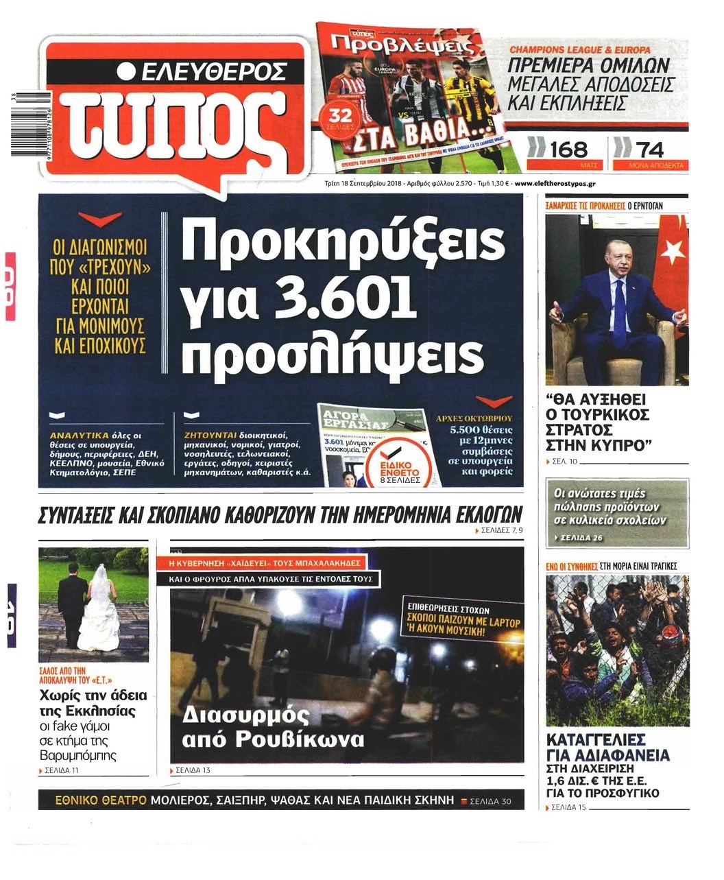 Οι πολιτικές εφημερίδες 18/9/2018 Enikos Newsroom 06:45, Τρίτη 18 Σεπτεμβρίου 2018 Media Διαβάστε τα πρωτοσέλιδα ΠΟΛΙΤΙΚΕΣ ΕΦΗΜΕΡΙΔΕΣ Μοιράσου το: σχολίασε κι εσύ (0 σχόλια) Ακολουθήστε το enikos.gr στο Google News και μάθετε πρώτοι όλες τις ειδήσεις Δείτε όλες τις τελευταίες ειδήσεις από την Ελλάδα και τον Κόσμο στο enikos.gr Ειδήσεις Ροή Ειδήσεων 22 λεπτά πριν Ζελένσκι: Μόνο οι ΗΠΑ και ο Τραμπ μπορούν να πιέσουν τη Ρωσία να βάλει τέλος στον πόλεμο 40 λεπτά πριν Φοινικούντα: Προφυλακιστέος ο 30χρονος για συνέργεια στη διπλή δολοφονία – Και άλλα πρόσωπα στο «μικροσκόπιο» 2 ώρες πριν Κυριάκος Μητσοτάκης: Στην Ιερουσαλήμ την Τρίτη ο Πρωθυπουργός για την τριμερή Ελλάδας, Κύπρου, Ισραήλ – Θα συναντηθεί και με τον Αμπάς 5 ώρες πριν Πώς δρούσε το κύκλωμα που διακινούσε ναρκωτικά σε σχολεία – Υπέβαλαν σε βασανιστήρια όσους δεν τηρούσαν τους «κανόνες πειθαρχίας» 1 ώρα πριν Πάπας Λέων: Όταν έχει αϋπνίες επενδύει παραγωγικά τον χρόνο του – Ποιο παιχνίδι παίζει στο κινητό 32 λεπτά πριν Αριθμολογία: Ο αριθμός του φύλακα αγγέλου σας, με βάση τον μήνα γέννησής σας – «Έτσι σας στέλνει σημάδια το σύμπαν» 2 ώρες πριν Πώς να απαλλαγείτε από τη μυρωδιά του τηγανητού φαγητού: Το μυστικό βρίσκεται στην κουζίνα σας 3 ώρες πριν Μήπως οι γιορτές σας δεν είναι τόσο τέλειες; 7 χριστουγεννιάτικες συνήθειες που μαρτυρούν ότι μια οικογένεια είναι δυσλειτουργική 13 ώρες πριν Enerwave: Το νέο «ρεύμα» στη λιανική ενέργειας που αλλάζει την εμπειρία του καταναλωτή 14 λεπτά πριν Εριέττα Μανούρη: «Έχω νιώσει ανταγωνισμό από άντρες, μύθος αυτό που λένε για τις γυναίκες» 22 λεπτά πριν Ζελένσκι: Μόνο οι ΗΠΑ και ο Τραμπ μπορούν να πιέσουν τη Ρωσία να βάλει τέλος στον πόλεμο 32 λεπτά πριν Αριθμολογία: Ο αριθμός του φύλακα αγγέλου σας, με βάση τον μήνα γέννησής σας – «Έτσι σας στέλνει σημάδια το σύμπαν» 40 λεπτά πριν Φοινικούντα: Προφυλακιστέος ο 30χρονος για συνέργεια στη διπλή δολοφονία – Και άλλα πρόσωπα στο «μικροσκόπιο» 51 λεπτά πριν Super League: Ο Σιαμπάνης «κατέβασε ρολά» και ο Βόλος νίκησε 1-0 τον Παναιτωλικό ENIKOS NETWORK Οι γυναίκες αποκαλύπτουν το πιο ελκυστικό πράγμα που μπορεί να κάνει ένας άνδρας Ομορφιά και αντιγήρανση: Ειδικοί μιλούν για συσκευές περιποίησης του δέρματος Εφορία: 7 αλλαγές σε δηλώσεις και ελέγχους ακινήτων – Όλα όσα πρέπει να γνωρίζετε Πορτοκαλί τιμολόγια ρεύματος: Τα σημεία που πρέπει να προσέξουν οι καταναλωτές – Πότε θα εφαρμοστούν Χαρτογραφώντας το «σημείο χωρίς επιστροφή»: Για πρώτη φορά αποκαλύπτεται με λεπτομέρεια το ακανθώδες όριο της ατμόσφαιρας τ... Η Google καταργεί τη λειτουργία «dark web report» – Πώς θα μπορούν οι χρήστες να διαγράφουν τα δεδομένα τους περισσότερα 20:30 , Σάββατο 20 Δεκεμβρίου 2025 Αυτή την Κυριακή με τη Realnews: Instyle, μαζί Drive και Realnews Geopolitics Αυτή την Κυριακή με τη Realnews: Instyle, μαζί Drive και Realnews Geopolitics Instyle Η Άννα Ρ... 20:28 , Σάββατο 20 Δεκεμβρίου 2025 Ο ΑΝΤ1 γεμίζει τις γιορτές με μουσική – Ποιους καλλιτέχνες θα απολαύσουμε Φέτος στον ΑΝΤ1 γιορτάζουμε τις νύχτες μας παρέα με αγαπημένους καλλιτέχνες και μεγάλες μουσι... 18:19 , Σάββατο 20 Δεκεμβρίου 2025 HOTΕΛ ΕΛVIRA: Η Ελβίρα μαθαίνει πως ο Χάρι μένει κρυφά στο ξενοδοχείο του Παντελή Συνεχίζονται οι εκλογές για πρόεδρο, στο νέο επεισόδιο της κωμικής σειράς του MEGA, HOTΕΛ ΕΛVI... 14:04 , Σάββατο 20 Δεκεμβρίου 2025 Η Realnews αυτής της Κυριακής (21/12/2025) Με τίτλο: «Ασπίδα προστασίας για την Ελλάδα» κυκλοφορεί, αυτήν την Κυριακή, η Realnews. Σημαντ... ΤΕΛΕΥΤΑΙΕΣ ΕΙΔΗΣΕΙΣ 14 λεπτά πριν Ερ