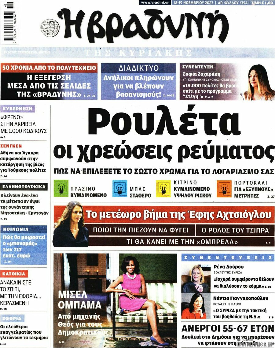 Οι πολιτικές εφημερίδες 19/11/2023 Σταύρος Ιωακείμ 07:15, Κυριακή 19 Νοεμβρίου 2023 Media πολιτικές εφημερίδες Διαβάστε τα πρωτοσέλιδα από τις πολιτικές εφημερίδες, σήμερα 19/11/2023. ΕΦΗΜΕΡΙΔΕΣ ΠΟΛΙΤΙΚΕΣ ΕΦΗΜΕΡΙΔΕΣ ΠΡΩΤΟΣΕΛΙΔΑ Μοιράσου το: Λευκός Οίκος: Δεν έχει επιτευχθεί ακόμα συμφωνία για κατάπαυση πυρός μεταξύ Ισραήλ και Χαμάς Μαρία Ηλιάκη: Στόλισε με την μικρή της κόρη – ΒΙΝΤΕΟ Κοντά σε συμφωνία για απελευθέρωση δεκάδων ομήρων από τη Χαμάς σε αντάλλαγμα για «πενθήμερη παύση πυρός» σχολίασε κι εσύ (0 σχόλια) Ακολουθήστε το enikos.gr στο Google News και μάθετε πρώτοι όλες τις ειδήσεις Δείτε όλες τις τελευταίες ειδήσεις από την Ελλάδα και τον Κόσμο στο enikos.gr Ειδήσεις Ροή Ειδήσεων 12 λεπτά πριν Αγρότες: Στις σήραγγες των Τεμπών έφτασαν τα τρακτέρ – Ξεκινά ο 48ωρος αποκλεισμός – ΦΩΤΟ και ΒΙΝΤΕΟ 3 ώρες πριν Το «τελευταίο αντίο» στον Γιώργο Παπαδάκη – Θλίψη και βουβός πόνος στο αποτεφρωτήριο της Ριτσώνας 2 ώρες πριν Γαλλία: Τρακτέρ στον Πύργο του Άιφελ και την Αψίδα του Θριάμβου – «Δεν θα φύγουμε αν δεν μας ακούσουν», διαμηνύουν οι αγρότες 2 ώρες πριν Φρίκη στην Κρήτη: Καταγγελίες για βιασμούς παιδιών από τους γονείς τους διερευνά η αστυνομία 60 λεπτά πριν Φαραντούρης στον Realfm 97,8: Εγώ δεν προεξόφλησα τη συμμετοχή μου σε κάποιο κόμμα – Τι είπε για την Μαρία Καρυστιανού, τον ΣΥΡΙΖΑ και τον Αλέξη Τσίπρα 4 ώρες πριν Τα 4 ζώδια που παίρνουν το «δώρο» που δικαιούνται – «Το σύμπαν σας επιβραβεύει για τις σωστές επιλογές σας» 5 ώρες πριν Έκανε δώρο μονόπετρο 28 καρατίων στη σύζυγό του για τα γενέθλιά της – «Μου είπε πως είναι άσχημο και ότι δεν πρόκειται να το φορέσει ποτέ στη ζωή της» 3 ώρες πριν Είστε πάντα συνεπείς στα ραντεβού σας; Αυτά είναι τα 9 μοναδικά χαρακτηριστικά των ανθρώπων που φτάνουν «ακριβώς στην ώρα τους» 2 ώρες πριν Μητέρα πίστευε ότι ο πόνος που ένιωθε οφειλόταν στο στρες, ώσπου διαγνώστηκε με καρκίνο του παγκρέατος – «Νόμιζα ότι δεν ήταν κάτι σοβαρό» 5 λεπτά πριν Γερμανία: Οργή για τους ηγέτες σε Βερολίνο και Βρανδεμβούργο – Τένις στο μπλακ-άουτ και διακοπές εν μέσω κατάρρευσης κυβέρνησης 10 λεπτά πριν Κορινθία: Τραγωδία με δύο νέους νεκρούς στο τροχαίο στα Εξαμίλια – Το αυτοκίνητό τους «καρφώθηκε» σε σπίτι – ΒΙΝΤΕΟ 12 λεπτά πριν Αγρότες: Στις σήραγγες των Τεμπών έφτασαν τα τρακτέρ – Ξεκινά ο 48ωρος αποκλεισμός – ΦΩΤΟ και ΒΙΝΤΕΟ 15 λεπτά πριν Δρογώσης για Καρυστιανού: «Η μάνα Φύσσα δεν έκανε κόμμα, οι γονείς του Συλλόγου των Τεμπών δεν θέλουν κόμμα – Ποιοι κύκλοι την στηρίζουν;» 20 λεπτά πριν Βουλή: Στην Ολομέλεια η απόφαση για διακομματική επιτροπή για τον πρωτογενή τομέα – Για τις διεθνείς εξελίξεις θα ενημερώσει την Επιτροπή Εξωτερικών και Άμυνας ο Γεραπετρίτης ENIKOS NETWORK Βιταμίνη D + ασβέστιο: Πώς να τα παίρνετε για να ενισχύσετε τα οστά σας – Σε ποιες τροφές υπάρχουν; Ζωζώ Σαπουντζάκη: Εκτάκτως στο νοσοκομείο μετά από αδιαθεσία Bitcoin: Κάτω από τα 91.000 δολάρια η τιμή του – Τι λένε οι αναλυτές Νέο πρόγραμμα ανακαίνισης σπιτιών: Πότε θα κάνει τελικά πρεμιέρα και τι διευκρίνισε η Μιχαηλίδου Ο Google Assistant θα παραμείνει λίγο περισσότερο για ορισμένους χρήστες Android Τεστ προσωπικότητας: Το βάζο που θα επιλέξετε αποκαλύπτει πώς λύνετε προβλήματα στη ζωή σας περισσότερα 12:40 , Πέμπτη 08 Ιανουαρίου 2026 Ακούστε την εκπομπή του Νίκου Χατζηνικολάου 8/1/2026 Ακούστε την εκπομπή του Νίκου Χατζηνικολάου στον ραδιοφωνικό σταθμό RealFm 97,8, την Πέμπτη 8 ... 10:05 , Πέμπτη 08 Ιανουαρίου 2026 Ρεκ