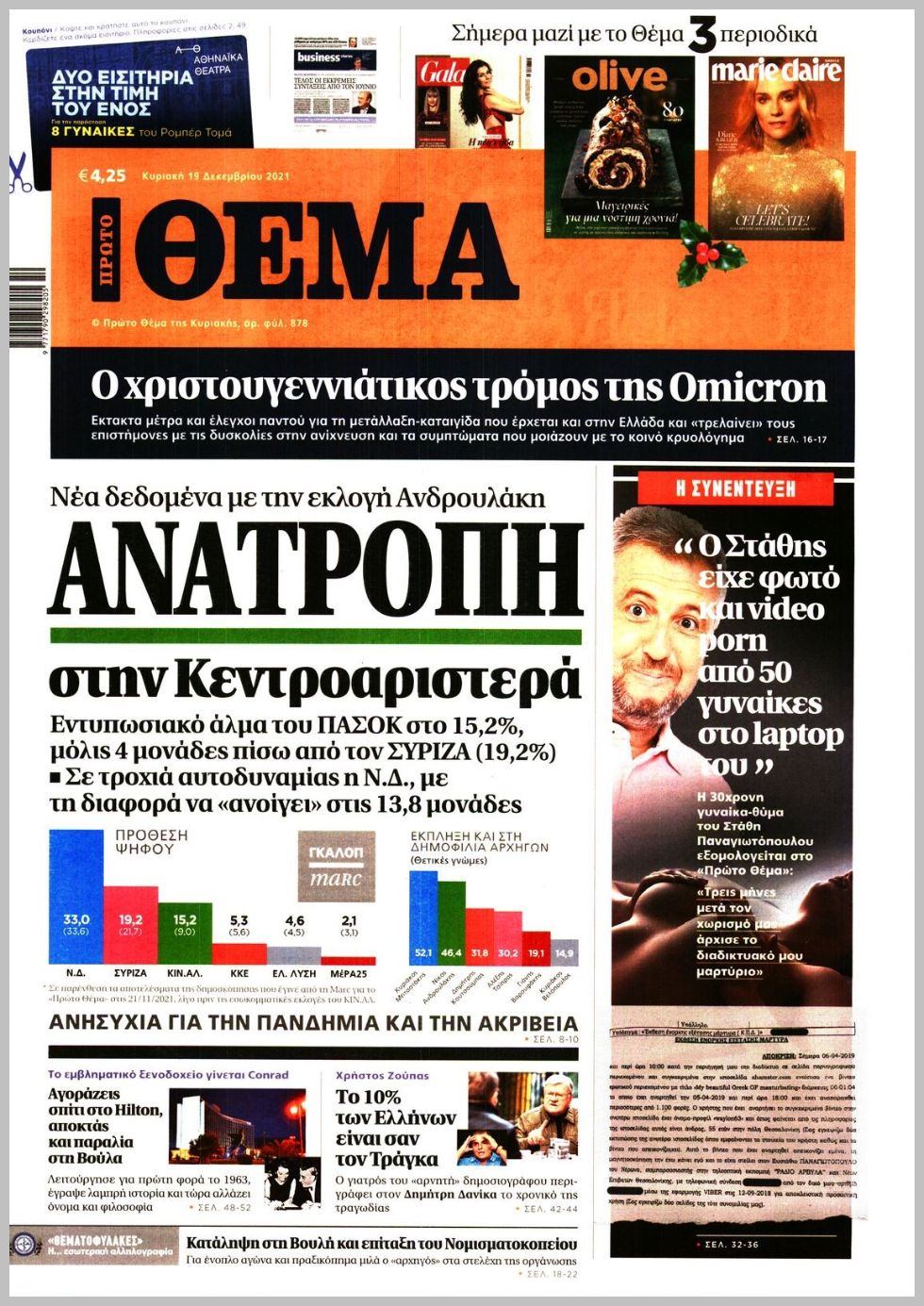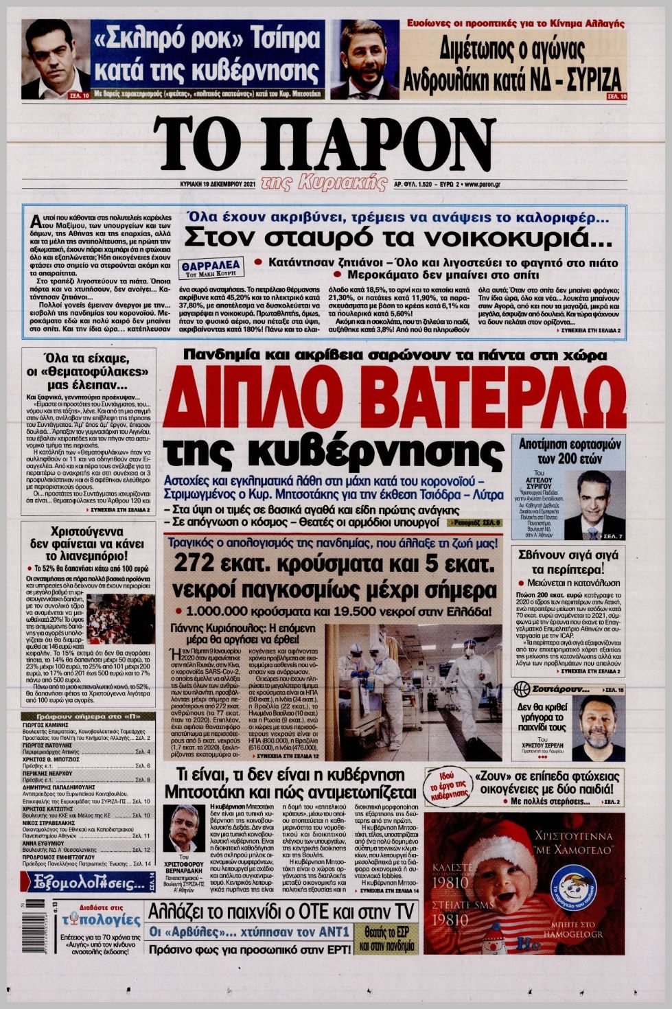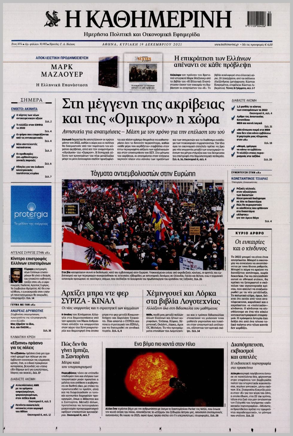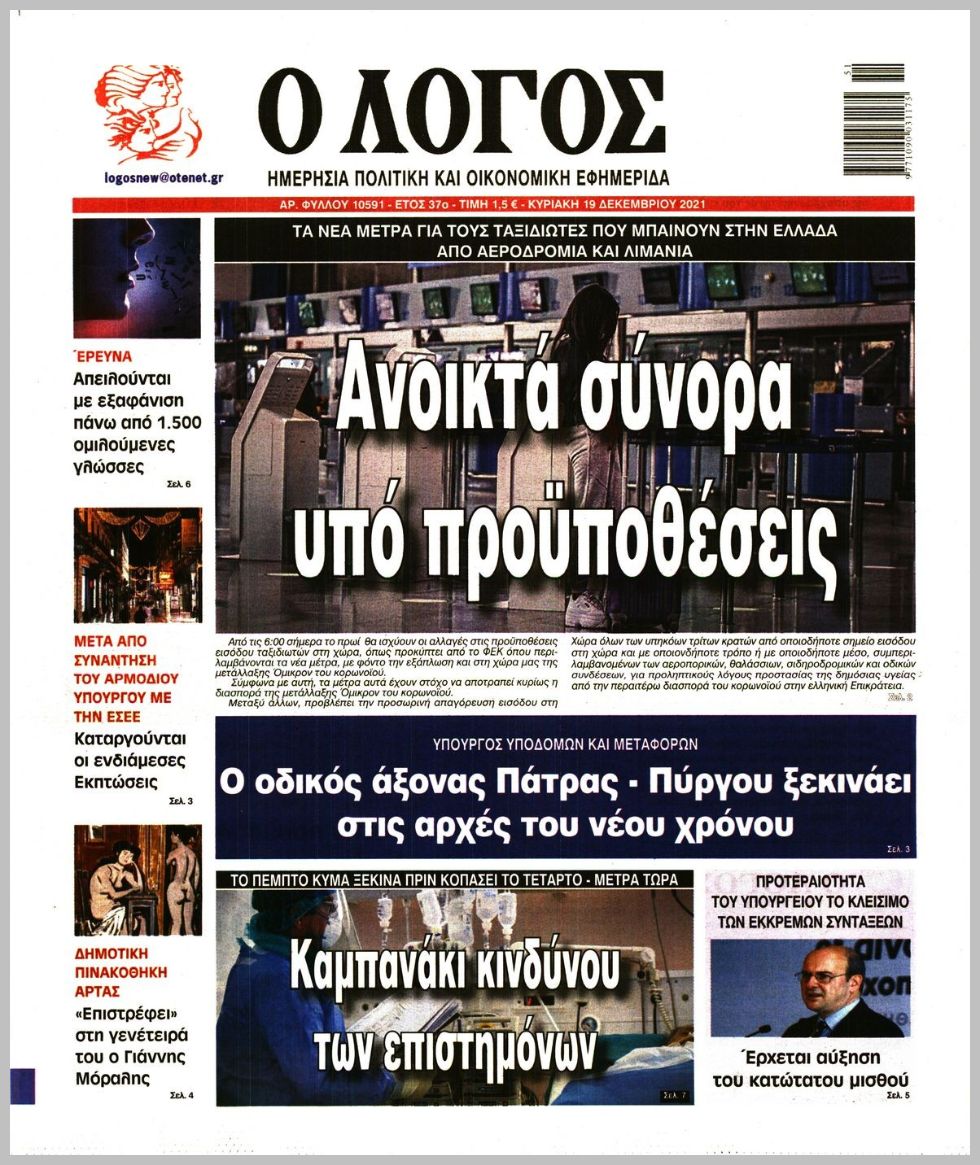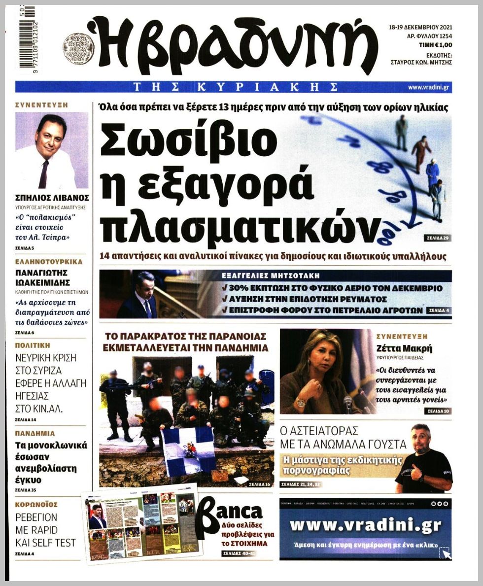 Οι πολιτικές εφημερίδες 19/12/2021 Διονύσης Νίκκας 07:10, Κυριακή 19 Δεκεμβρίου 2021 Media Διαβάστε τα πρωτοσέλιδα από τις πολιτικές εφημερίδες… ΕΦΗΜΕΡΙΔΕΣ ΠΟΛΙΤΙΚΕΣ ΕΦΗΜΕΡΙΔΕΣ ΠΡΩΤΟΣΕΛΙΔΑ Μοιράσου το: σχολίασε κι εσύ (0 σχόλια) Ακολουθήστε το enikos.gr στο Google News και μάθετε πρώτοι όλες τις ειδήσεις Δείτε όλες τις τελευταίες ειδήσεις από την Ελλάδα και τον Κόσμο στο enikos.gr Ειδήσεις Ροή Ειδήσεων 50 λεπτά πριν Θεσσαλονίκη: Σύσκεψη εκπροσώπων αγροτών από 18 μπλόκα – Ανοιχτοί στον διάλογο με την κυβέρνηση, οι προϋποθέσεις 4 ώρες πριν Τραγωδία στα Βαρδούσια: Ποιοι ήταν οι 4 ορειβάτες που έχασαν τη ζωή τους – Η 31χρονη δασκάλα αποφάσισε να ανέβει στο βουνό την τελευταία στιγμή 5 ώρες πριν Δολοφονία Ελένης Παπαδοπούλου: Ούτε στην κηδεία της μητέρας του είχε πάει ο 60χρονος γιος της – Τα χρέη, το σπίτι στο Κολωνάκι και ο σχεδιασμός του εγκλήματος 3 ώρες πριν Εξαφάνιση στις Σέρρες: Δεν ανήκει στον 45χρονο πυροσβέστη το αυτοκίνητο που εντόπισαν κυνηγοί στο όρος Μπέλλες 2 ώρες πριν Ζελένσκι: Καθ΄ οδόν προς τις ΗΠΑ για τη συνάντηση με τον Τραμπ – Ελπίζει να βρεθεί συμβιβασμός για ένα νέο ειρηνευτικό πλαίσιο 7 ώρες πριν Τα 3 ζώδια που θα δουν αισθητή βελτίωση στη ζωή τους – «Κάνετε έξυπνες επιλογές και αποφεύγετε τις παγίδες» 6 ώρες πριν Άνδρας μιλάει για τη διάγνωση που του άλλαξε τη ζωή: «Είχα ένα βουητό στα αυτιά μου για χρόνια – Αυτό που βρήκαν οι γιατροί με συγκλόνισε» 5 ώρες πριν Οι άνθρωποι που χρησιμοποιούν αυτές τις 9 φράσεις, συνήθως έχουν πολύ ισχυρή προσωπικότητα 2 ώρες πριν Πώς η Γη άντεξε σε συνθήκες απόλυτης πύρινης κόλασης: Το άγνωστο «θησαυροφυλάκιο» νερού που βρίσκεται κάτω από τα πόδια μας 7 λεπτά πριν Γιώτα Τσιμπρικίδου: Διαβάζω πικρόχολα σχόλια για εμένα και για άλλες γυναίκες που αποφασίζουν να γίνουν μητέρες σε μεγαλύτερη ηλικία 16 λεπτά πριν Βαρδούσια: Ολοκληρώθηκε υπό εξαιρετικά δύσκολες συνθήκες η επιχείρηση ανάσυρσης των σορών των ορειβατών – Μεταφέρθηκαν με ελικόπτερο στην Ιτέα 24 λεπτά πριν Συναγερμός για τη γρίπη Α: Μεγάλη έξαρση τις τελευταίες ημέρες – Αυξημένα τα παιδιατρικά περιστατικά 32 λεπτά πριν Μητέρα και τα 6χρονα δίδυμα παιδιά της βρέθηκαν νεκροί σε έπαυλη – Η ανατριχιαστική ανακάλυψη λίγες μέρες μετά 40 λεπτά πριν Τι καιρό θα κάνει την Πρωτοχρονιά – Τα δύο σενάρια ENIKOS NETWORK Νέα μελέτη ανατρέπει ό,τι ξέραμε για την κρέμα γάλακτος και τα λιπαρά τυριά – Μπορεί να προστατεύσουν από την άνοια Κοινό φάρμακο για τον διαβήτη συνδέεται με «εξαιρετική μακροζωία» στις γυναίκες Έρχεται προκήρυξη ΑΣΕΠ για νέες προσλήψεις στο Δημόσιο – Όλες οι λεπτομέρειες Yπουργείο Ανάπτυξης: Έρχεται Ομάδα εργασίας για την εφαρμογή του Net Zero Industry Act – Τι είναι και πώς θα λειτουργεί Ο Google Assistant θα παραμείνει λίγο περισσότερο για ορισμένους χρήστες Android Τεστ προσωπικότητας: Το βάζο που θα επιλέξετε αποκαλύπτει πώς λύνετε προβλήματα στη ζωή σας περισσότερα 15:33 , Σάββατο 27 Δεκεμβρίου 2025 Αυτή την Κυριακή με τη Realnews: Το μυστήριο των Χριστουγέννων της Vicki Delany – Μαζί αστυνομικά μυθιστορήματα Αυτή την Κυριακή με τη Realnews: Το μυστήριο των Χριστουγέννων της Vicki Delany – Μαζί α... 14:02 , Σάββατο 27 Δεκεμβρίου 2025 Η Realnews αυτής της Κυριακής (28/12/2025) Με τίτλο: «Οι προκλήσεις του 2026 για την οικονομία» κυκλοφορεί, αυτήν την Κυριακή, η Realnews... 11:03 , Σάββατο 27 Δεκεμβρίου 2025 Την Κυριακή με τη Realnews: Ό,τι και αν αγοράσεις, σκανάρεις και κερδίζεις! Την Κυριακή με τη Realnews: Ό,τι και αν αγοράσεις, σκανάρ