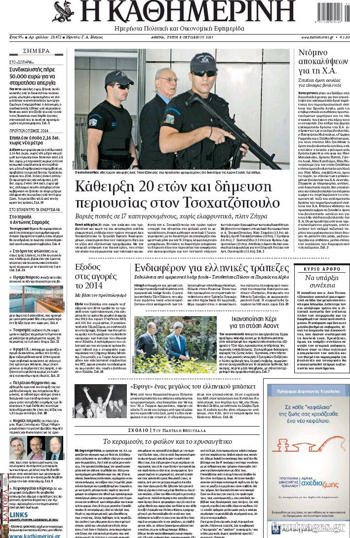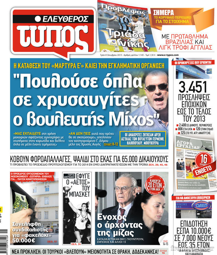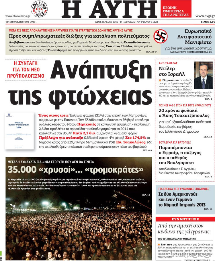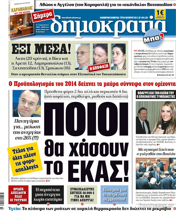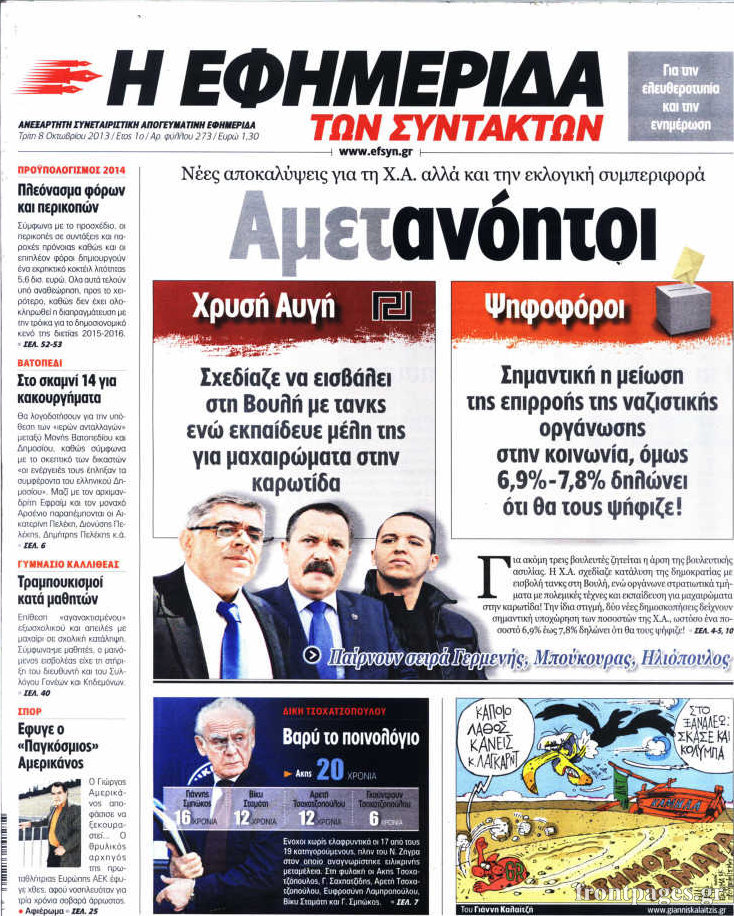 Οι πολιτικές εφημερίδες Enikos Newsroom 08:19, Τρίτη 08 Οκτωβρίου 2013 Media Οι πολιτικές εφημερίδες Διαβάστε τα πρωτοσέλιδα των πολιτικών εφημερίδων: ΕΦΗΜΕΡΙΔΕΣ ΠΟΛΙΤΙΚΕΣ ΕΦΗΜΕΡΙΔΕΣ ΠΡΩΤΟΣΕΛΙΔΑ Μοιράσου το: σχολίασε κι εσύ (0 σχόλια) Ακολουθήστε το enikos.gr στο Google News και μάθετε πρώτοι όλες τις ειδήσεις Δείτε όλες τις τελευταίες ειδήσεις από την Ελλάδα και τον Κόσμο στο enikos.gr Ειδήσεις Ροή Ειδήσεων 7 ώρες πριν Εκτός ευρωομάδας ΣΥΡΙΖΑ ο Νίκος Παππάς μετά την επίθεση στον δημοσιογράφο Νίκο Γιαννόπουλο – Η μήνυση και οι νέες δηλώσεις 7 ώρες πριν «Αγριεύουν» οι αγρότες: «Δεν συντρέχει λόγος συνάντησης με τον πρωθυπουργό» – Ώρα αποφάσεων στη σύσκεψη της Πέμπτης 7 ώρες πριν Κυψέλη: Χωρίς την οικογένειά της δίπλα της απολογήθηκε η 16χρονη – «Της είχε επιτεθεί κάποιος για να την βιάσει, φοβήθηκε και κυκλοφορούσε με μαχαίρι» 7 ώρες πριν Politico: Το πρόβλημα της Ευρώπης δεν είναι το Βέλγιο αλλά ο Ντόναλντ Τραμπ 8 ώρες πριν Αλεξανδρούπολη: Πολυοργανική ανεπάρκεια λόγω υποσιτισμού η αιτία θανάτου του 3χρονου αγοριού 7 ώρες πριν Μυστήριο με τεράστιες κυκλικές πέτρες 200 κιλών – Ανακαλύφθηκαν τυχαία κατά τη διάρκεια οδικών έργων και κανείς δεν ξέρει από πού προέρχονται 8 ώρες πριν Ύπνος: Ειδικός εξηγεί τον πραγματικό λόγο που ξυπνάτε στις 4 τα ξημερώματα – Ο ρόλος των ορμονών και του κιρκάδιου ρυθμού 9 ώρες πριν Αριθμολογία: Οι άνθρωποι που έχουν γεννηθεί αυτές τις 4 ημερομηνίες, είναι τρυφεροί και αγαπούν ανιδιοτελώς 21 ώρες πριν 20 χρόνια τα Χριστούγεννα ξεκινούν στα Public με μεγάλη ποικιλία σε δώρα! 5 λεπτά πριν Σαν σήμερα 18 Δεκεμβρίου: Τα σημαντικότερα γεγονότα της ημέρας 10 λεπτά πριν Οι οικονομικές εφημερίδες 18/12/2025 15 λεπτά πριν Οι αθλητικές εφημερίδες 18/12/2025 20 λεπτά πριν Οι πολιτικές εφημερίδες 18/12/2025 28 λεπτά πριν Τα ζώδια σήμερα, Πέμπτη 18 Δεκεμβρίου: Λέοντες, η καρδιά σας θέλει να εκφραστεί ENIKOS NETWORK Αϋπνία: Το κόλπο που θα σας βοηθήσει να κοιμηθείτε απόψε – Είναι απλό και έχει αποτέλεσμα 2,6 εκατομμύρια πολίτες έχουν ήδη εμβολιαστεί κατά της γρίπης ΕΛΣΤΑΤ: Τι δείχνουν τα νέα στοιχεία για τις ηλεκτρονικές παραγγελίες των επιχειρήσεων ΚΕΠΕ: Οι 3 διακριτές συμβολές των ΜμΕ και της μεταποίησης στην ελληνική οικονομία Χαρτογραφώντας το «σημείο χωρίς επιστροφή»: Για πρώτη φορά αποκαλύπτεται με λεπτομέρεια το ακανθώδες όριο της ατμόσφαιρας τ... Η Google καταργεί τη λειτουργία «dark web report» – Πώς θα μπορούν οι χρήστες να διαγράφουν τα δεδομένα τους περισσότερα 05:48 , Πέμπτη 18 Δεκεμβρίου 2025 Οι οικονομικές εφημερίδες 18/12/2025 Διαβάστε τα πρωτοσέλιδα από τις οικονομικές εφημερίδες, σήμερα 18/12/2025. 05:43 , Πέμπτη 18 Δεκεμβρίου 2025 Οι αθλητικές εφημερίδες 18/12/2025 Διαβάστε τα πρωτοσέλιδα από τις αθλητικές εφημερίδες, σήμερα 18/12/2025. 05:38 , Πέμπτη 18 Δεκεμβρίου 2025 Οι πολιτικές εφημερίδες 18/12/2025 Διαβάστε τα πρωτοσέλιδα από τις πολιτικές εφημερίδες, σήμερα 18/12/2025. 05:22 , Πέμπτη 18 Δεκεμβρίου 2025 Το Ποντίκι σήμερα Πέμπτη 18/12/2025 Διαβάστε το πρωτοσέλιδο της εφημερίδας «Το Ποντίκι» σήμερα 18/12/2025. ΤΕΛΕΥΤΑΙΕΣ ΕΙΔΗΣΕΙΣ 5 λεπτά πριν Σαν σήμερα 18 Δεκεμβρίου: Τα σημαντικότερα γεγονότα... 10 λεπτά πριν Οι οικονομικές εφημερίδες 18/12/2025 15 λεπτά πριν Οι αθλητικές εφημερίδες 18/12/2025 20 λεπτά πριν Οι πολιτικές εφημερίδες 18/12/2025 28 λεπτά πριν Τα ζώδια σήμερα, Πέμπτη 18 Δεκεμβρίου: Λέοντες, η καρδιά... 36 λεπτά πριν Το Ποντίκι σήμερα Πέμπτη 18/12/2025 40 λεπτά πριν Εφημερεύοντα φαρμακεία σε Αθήνα και Θεσσαλονίκη (18/12) 43 λεπτά πριν Αλεξάνδρα Ούστα: «Α
