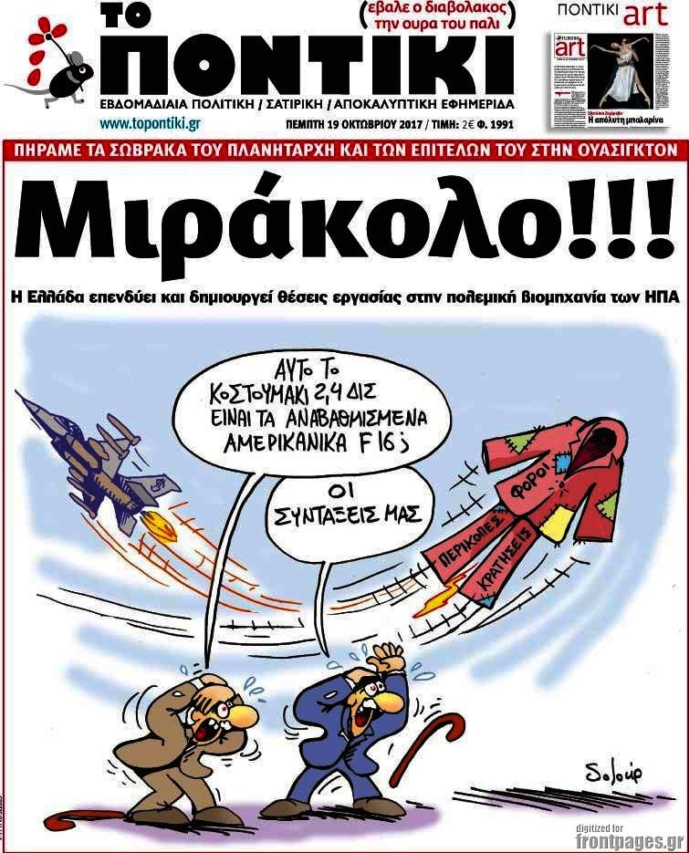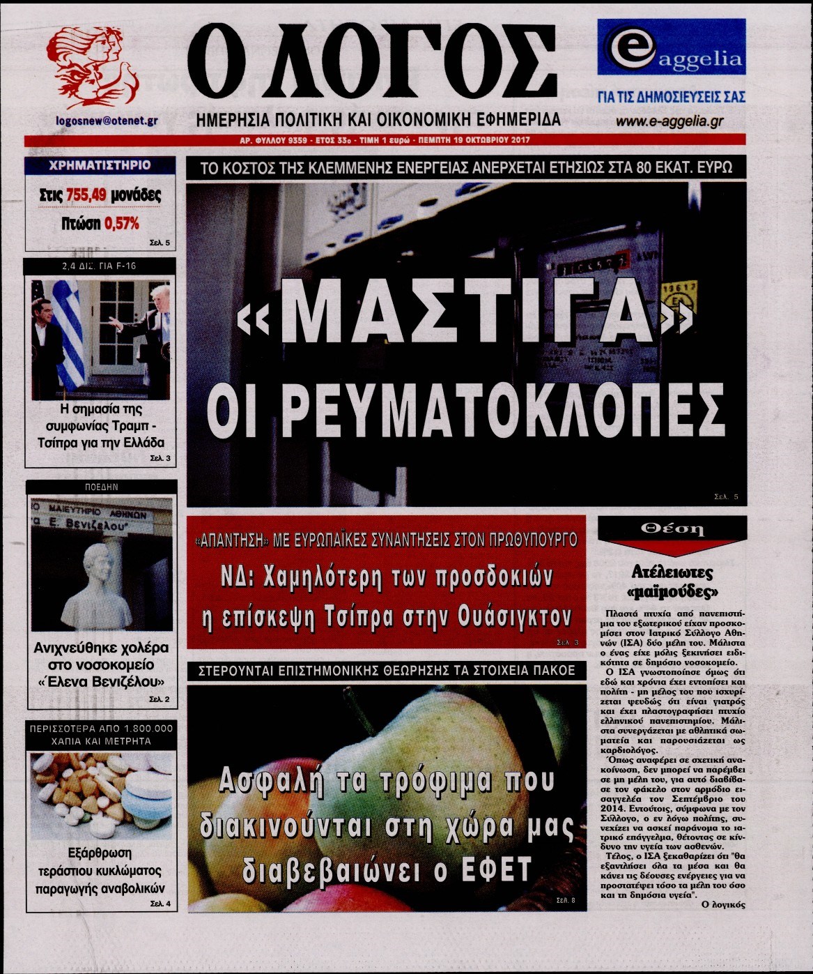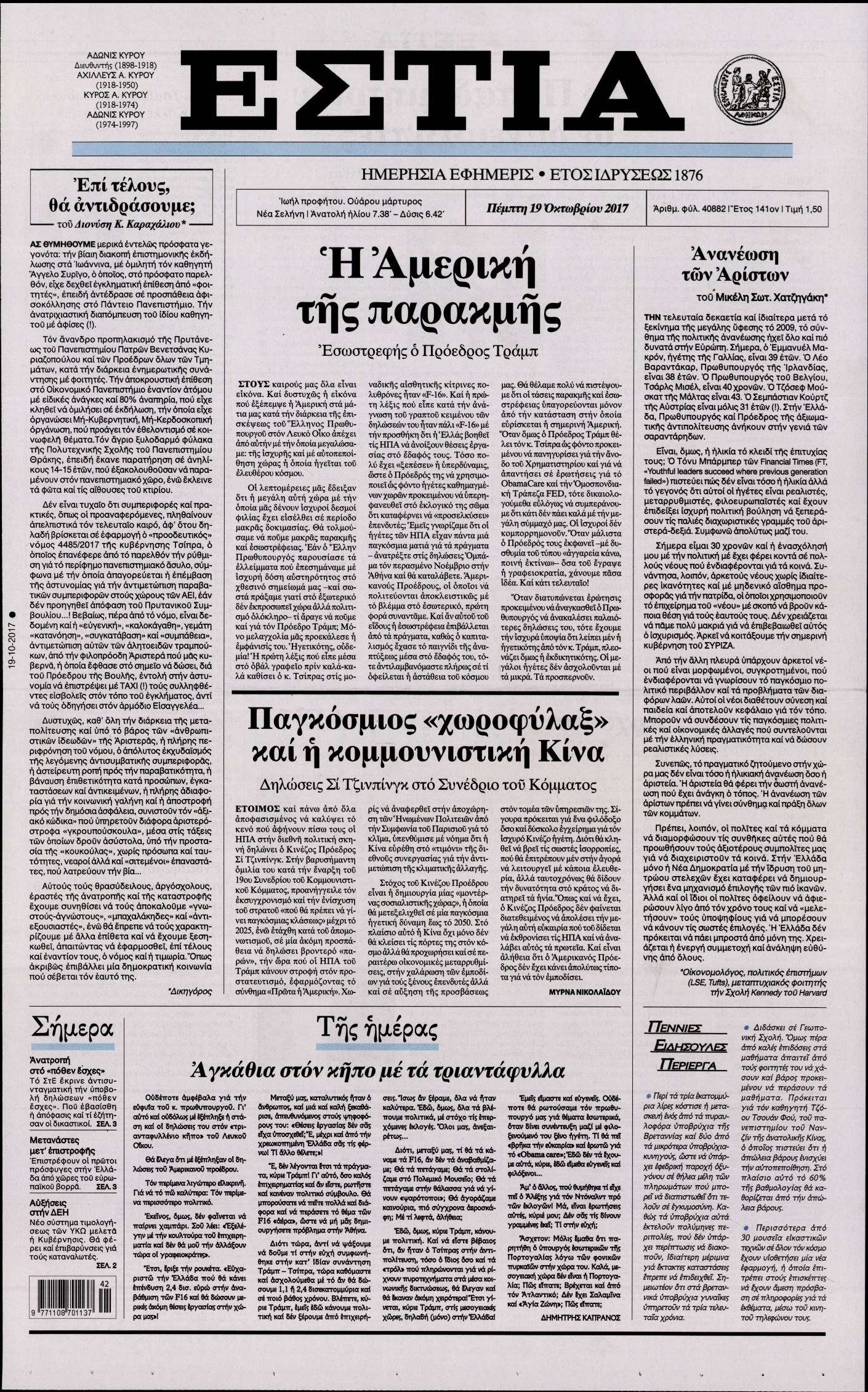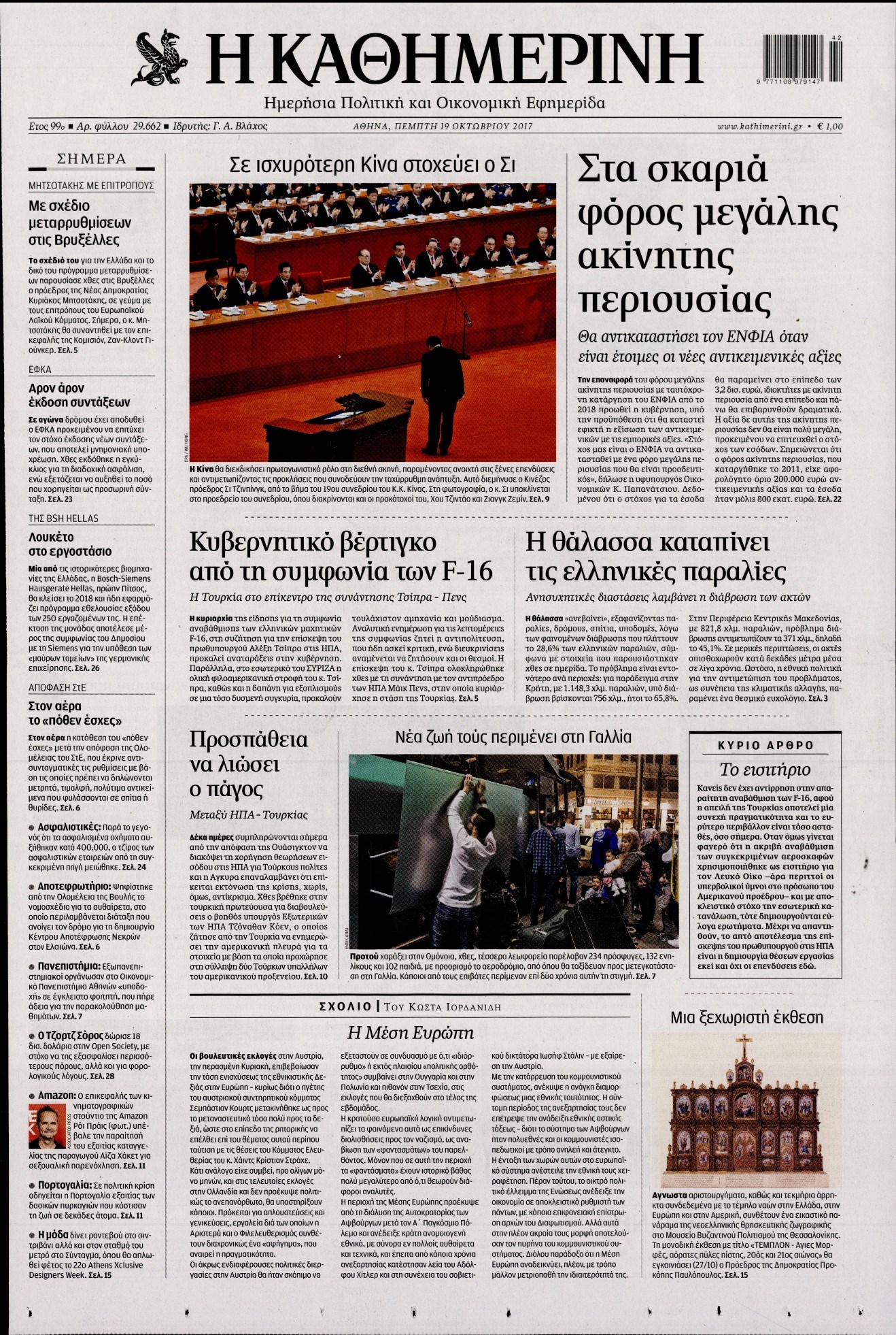 Οι πολιτικές εφημερίδες 19/10/2017 Enikos Newsroom 07:57, Πέμπτη 19 Οκτωβρίου 2017 Media Διαβάστε τα σημερινά πρωτοσέλιδα των πολιτικών εφημερίδων: ΠΟΛΙΤΙΚΕΣ ΕΦΗΜΕΡΙΔΕΣ ΠΡΩΤΟΣΕΛΙΔΑ Μοιράσου το: σχολίασε κι εσύ (0 σχόλια) Ακολουθήστε το enikos.gr στο Google News και μάθετε πρώτοι όλες τις ειδήσεις Δείτε όλες τις τελευταίες ειδήσεις από την Ελλάδα και τον Κόσμο στο enikos.gr Ειδήσεις Ροή Ειδήσεων 23 λεπτά πριν Χριστούγεννα στα μπλόκα: Επιμένουν στις κινητοποιήσεις τους οι αγρότες – Ανοίγουν τα διόδια το Σαββατοκύριακο 51 λεπτά πριν Τραμπ: Δεν αποκλείει την πιθανότητα ενός πολέμου στη Βενεζουέλα – «Ο Μαδούρο ξέρει καλύτερα από τον καθένα τι ακριβώς θέλω» 45 λεπτά πριν Ουκρανία: Η άνευ προηγουμένου επίθεση σε ρωσικό τάνκερ στη Μεσόγειο και το μήνυμα προς στον Πούτιν – Το «μακρύ χέρι» του Κιέβου 3 ώρες πριν Πούτιν: «Ναι, είμαι ερωτευμένος» – Βίντεο από τη σπάνια προσωπική παραδοχή του 2 ώρες πριν Συνεχίζει να προκαλεί ο Μίτσκοσκι: «Για μένα το όνομα Μακεδονία είναι ιερό» 2 ώρες πριν Αριθμολογία: Οι άνθρωποι που έχουν γεννηθεί αυτές τις 4 ημερομηνίες, συχνά παρεξηγούνται – «Η καλοσύνη τους κρύβει τεράστια δύναμη» 4 ώρες πριν Μήπως έχετε χάσει τον εαυτό σας στη σχέση σας; 7 «αθόρυβες» υποχωρήσεις που μάλλον κάνατε, χωρίς να το συνειδητοποιήσετε 3 ώρες πριν Ξεχάστε το καθάρισμα το Σαββατοκύριακο: Ο «κανόνας των 20 λεπτών» που θα σας λύσει τα χέρια 1 ώρα πριν Ύπνος: Μια κρυφή κατάσταση του εγκεφάλου πριν από τον ύπνο μπορεί να είναι το “κλειδί” για υψηλή ευφυΐα και δημιουργικότητα 4 δευτερόλεπτα πριν Πούτιν: Τα μηνύματα σε Ευρώπη και ΝΑΤΟ από το μαραθώνιο «σόου» του – Η απαίτηση για «σεβασμό» και η ειρήνη «με τους όρους» της Μόσχας 1 λεπτό πριν Ανακαλύφθηκαν αρχαία χρυσά νομίσματα 2.200 ετών που απεικονίζουν τον θεό Απόλλωνα – Η άγνωστη σύνδεση με τον Φίλιππο Β΄ της Μακεδονίας 6 λεπτά πριν Νίκος Ξυλούρης: Συγκινεί η χήρα του σπουδαίου καλλιτέχνη – «Ευχαριστώ όλο τον κόσμο που τον κρατάει ζωντανό 45 χρόνια» 13 λεπτά πριν Παναθηναϊκός: «Μέσα» οι Σφιντέρσκι και Τουμπά για το ματς με τον ΠΑΟΚ – Τι έδειξε η μαγνητική του Πάντοβιτς 18 λεπτά πριν Γιώργος Γιαννόπουλος για “Το σόι σου”: “Είναι ευτυχία και ευλογία αυτή η σειρά” ENIKOS NETWORK Το ΕΚΑΒ τιμήθηκε από την Ακαδημία Αθηνών για τα 40 χρόνια προσφοράς του Έχετε πραγματικά μεγάλη καρδιά; 10 χαρακτηριστικά όσων έχουν καλοσύνη Πλήρης επάρκεια προϊόντων στις λαϊκές της Αττικής, παρά τις αγροτικές κινητοποιήσεις – Τι απαντούν οι πωλητές ΑΑΔΕ: Νέες αναβαθμίσεις στο Ψηφιακό Πελατολόγιο και την εφαρμογή myDATAapp – Τι πρέπει να γνωρίζετε Χαρτογραφώντας το «σημείο χωρίς επιστροφή»: Για πρώτη φορά αποκαλύπτεται με λεπτομέρεια το ακανθώδες όριο της ατμόσφαιρας τ... Η Google καταργεί τη λειτουργία «dark web report» – Πώς θα μπορούν οι χρήστες να διαγράφουν τα δεδομένα τους περισσότερα 22:42 , Παρασκευή 19 Δεκεμβρίου 2025 Γιώργος Γιαννόπουλος για “Το σόι σου”: “Είναι ευτυχία και ευλογία αυτή η σειρά” «Είναι ευτυχία και ευλογία η συγκυρία αυτής της σειράς», θα πει ο Γιώργος Γιαννόπουλος -ο αγαπ... 20:37 , Παρασκευή 19 Δεκεμβρίου 2025 Don’t Forget The Lyrics: Η Έλλη Κοκκίνου υποδέχεται 4 παίκτες που θα κάνουν τα πάντα για να μη χάσουν ούτε… μισή λέξη από τους στίχους Το «Don’t Forget The Lyrics» επιστρέφει απόψε, Παρασκευή 19 Δεκεμβρίου, στις 21:00 με νέο επει... 19:31 , Παρασκευή 19 Δεκεμβρίου 2025 GNTM: Απόψε ο μεγάλος τελικός για τους 4 φιναλίστ Έπειτα από μήνες γεμάτους μόδα, δημιουργία και έντονες αναμετρή