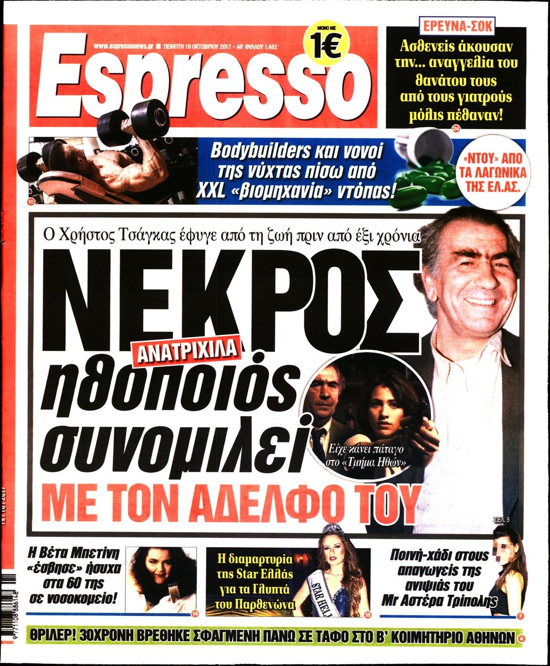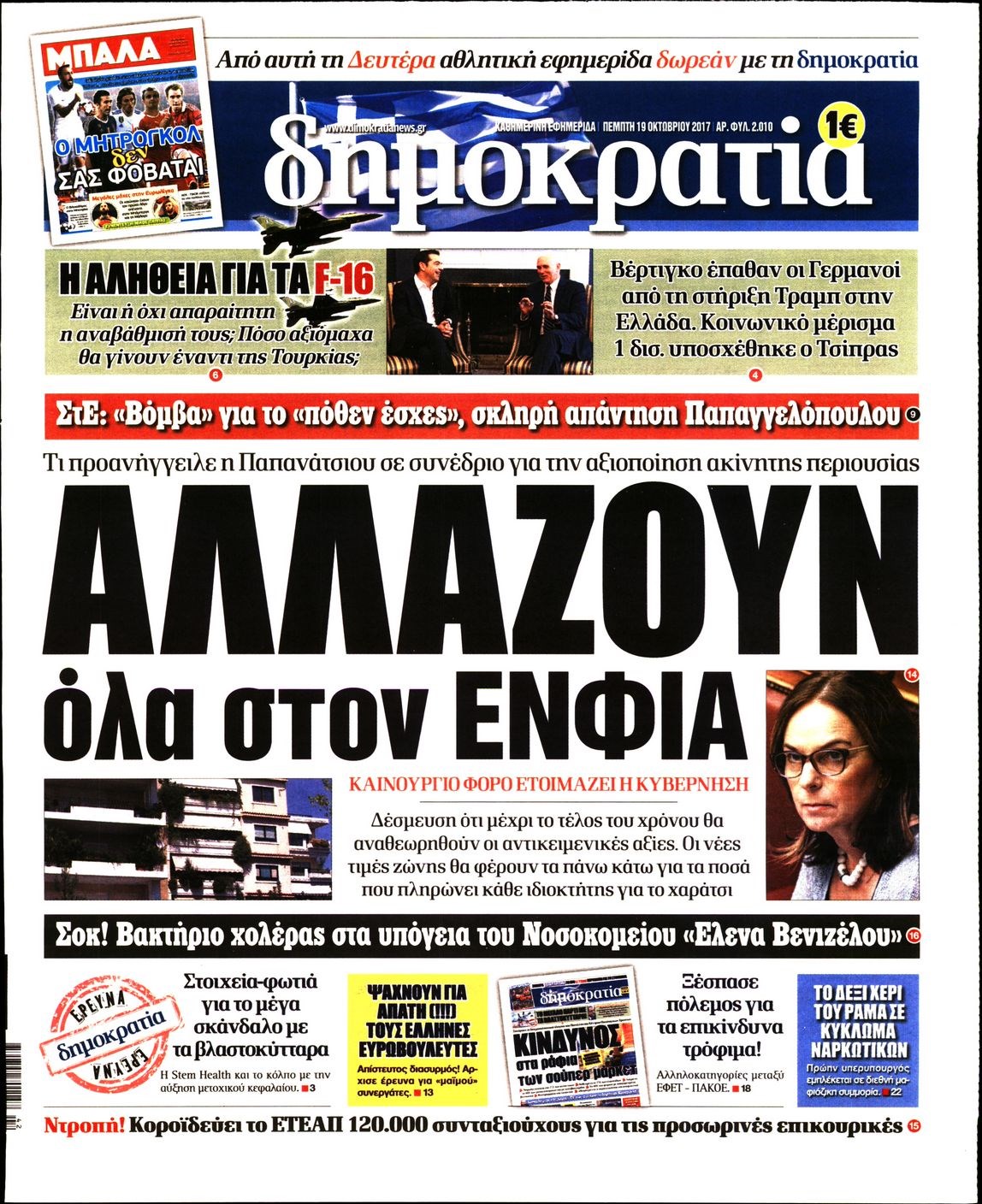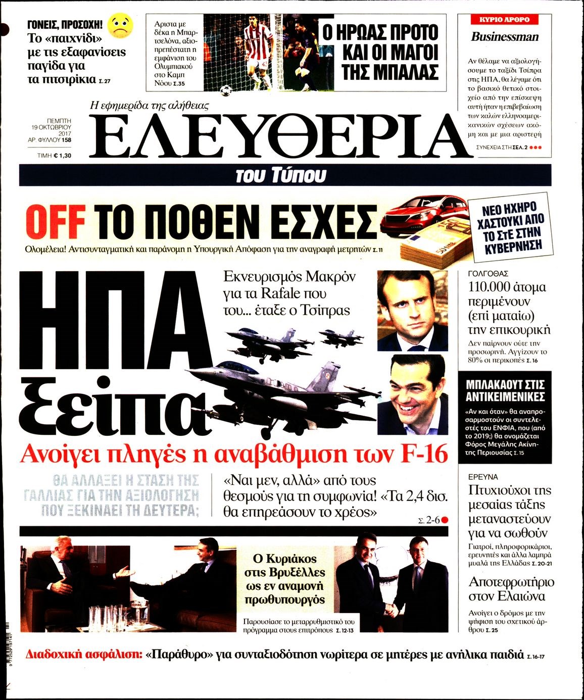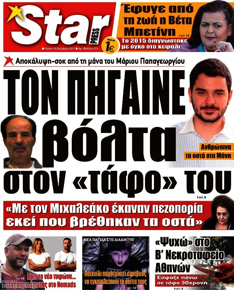 Οι πολιτικές εφημερίδες 19/10/2017 Enikos Newsroom 07:57, Πέμπτη 19 Οκτωβρίου 2017 Media Διαβάστε τα σημερινά πρωτοσέλιδα των πολιτικών εφημερίδων: ΠΟΛΙΤΙΚΕΣ ΕΦΗΜΕΡΙΔΕΣ ΠΡΩΤΟΣΕΛΙΔΑ Μοιράσου το: σχολίασε κι εσύ (0 σχόλια) Ακολουθήστε το enikos.gr στο Google News και μάθετε πρώτοι όλες τις ειδήσεις Δείτε όλες τις τελευταίες ειδήσεις από την Ελλάδα και τον Κόσμο στο enikos.gr Ειδήσεις Ροή Ειδήσεων 23 λεπτά πριν Χριστούγεννα στα μπλόκα: Επιμένουν στις κινητοποιήσεις τους οι αγρότες – Ανοίγουν τα διόδια το Σαββατοκύριακο 51 λεπτά πριν Τραμπ: Δεν αποκλείει την πιθανότητα ενός πολέμου στη Βενεζουέλα – «Ο Μαδούρο ξέρει καλύτερα από τον καθένα τι ακριβώς θέλω» 45 λεπτά πριν Ουκρανία: Η άνευ προηγουμένου επίθεση σε ρωσικό τάνκερ στη Μεσόγειο και το μήνυμα προς στον Πούτιν – Το «μακρύ χέρι» του Κιέβου 3 ώρες πριν Πούτιν: «Ναι, είμαι ερωτευμένος» – Βίντεο από τη σπάνια προσωπική παραδοχή του 2 ώρες πριν Συνεχίζει να προκαλεί ο Μίτσκοσκι: «Για μένα το όνομα Μακεδονία είναι ιερό» 2 ώρες πριν Αριθμολογία: Οι άνθρωποι που έχουν γεννηθεί αυτές τις 4 ημερομηνίες, συχνά παρεξηγούνται – «Η καλοσύνη τους κρύβει τεράστια δύναμη» 4 ώρες πριν Μήπως έχετε χάσει τον εαυτό σας στη σχέση σας; 7 «αθόρυβες» υποχωρήσεις που μάλλον κάνατε, χωρίς να το συνειδητοποιήσετε 3 ώρες πριν Ξεχάστε το καθάρισμα το Σαββατοκύριακο: Ο «κανόνας των 20 λεπτών» που θα σας λύσει τα χέρια 1 ώρα πριν Ύπνος: Μια κρυφή κατάσταση του εγκεφάλου πριν από τον ύπνο μπορεί να είναι το “κλειδί” για υψηλή ευφυΐα και δημιουργικότητα 4 δευτερόλεπτα πριν Πούτιν: Τα μηνύματα σε Ευρώπη και ΝΑΤΟ από το μαραθώνιο «σόου» του – Η απαίτηση για «σεβασμό» και η ειρήνη «με τους όρους» της Μόσχας 1 λεπτό πριν Ανακαλύφθηκαν αρχαία χρυσά νομίσματα 2.200 ετών που απεικονίζουν τον θεό Απόλλωνα – Η άγνωστη σύνδεση με τον Φίλιππο Β΄ της Μακεδονίας 6 λεπτά πριν Νίκος Ξυλούρης: Συγκινεί η χήρα του σπουδαίου καλλιτέχνη – «Ευχαριστώ όλο τον κόσμο που τον κρατάει ζωντανό 45 χρόνια» 13 λεπτά πριν Παναθηναϊκός: «Μέσα» οι Σφιντέρσκι και Τουμπά για το ματς με τον ΠΑΟΚ – Τι έδειξε η μαγνητική του Πάντοβιτς 18 λεπτά πριν Γιώργος Γιαννόπουλος για “Το σόι σου”: “Είναι ευτυχία και ευλογία αυτή η σειρά” ENIKOS NETWORK Το ΕΚΑΒ τιμήθηκε από την Ακαδημία Αθηνών για τα 40 χρόνια προσφοράς του Έχετε πραγματικά μεγάλη καρδιά; 10 χαρακτηριστικά όσων έχουν καλοσύνη Πλήρης επάρκεια προϊόντων στις λαϊκές της Αττικής, παρά τις αγροτικές κινητοποιήσεις – Τι απαντούν οι πωλητές ΑΑΔΕ: Νέες αναβαθμίσεις στο Ψηφιακό Πελατολόγιο και την εφαρμογή myDATAapp – Τι πρέπει να γνωρίζετε Χαρτογραφώντας το «σημείο χωρίς επιστροφή»: Για πρώτη φορά αποκαλύπτεται με λεπτομέρεια το ακανθώδες όριο της ατμόσφαιρας τ... Η Google καταργεί τη λειτουργία «dark web report» – Πώς θα μπορούν οι χρήστες να διαγράφουν τα δεδομένα τους περισσότερα 22:42 , Παρασκευή 19 Δεκεμβρίου 2025 Γιώργος Γιαννόπουλος για “Το σόι σου”: “Είναι ευτυχία και ευλογία αυτή η σειρά” «Είναι ευτυχία και ευλογία η συγκυρία αυτής της σειράς», θα πει ο Γιώργος Γιαννόπουλος -ο αγαπ... 20:37 , Παρασκευή 19 Δεκεμβρίου 2025 Don’t Forget The Lyrics: Η Έλλη Κοκκίνου υποδέχεται 4 παίκτες που θα κάνουν τα πάντα για να μη χάσουν ούτε… μισή λέξη από τους στίχους Το «Don’t Forget The Lyrics» επιστρέφει απόψε, Παρασκευή 19 Δεκεμβρίου, στις 21:00 με νέο επει... 19:31 , Παρασκευή 19 Δεκεμβρίου 2025 GNTM: Απόψε ο μεγάλος τελικός για τους 4 φιναλίστ Έπειτα από μήνες γεμάτους μόδα, δημιουργία και έντονες αναμετρή