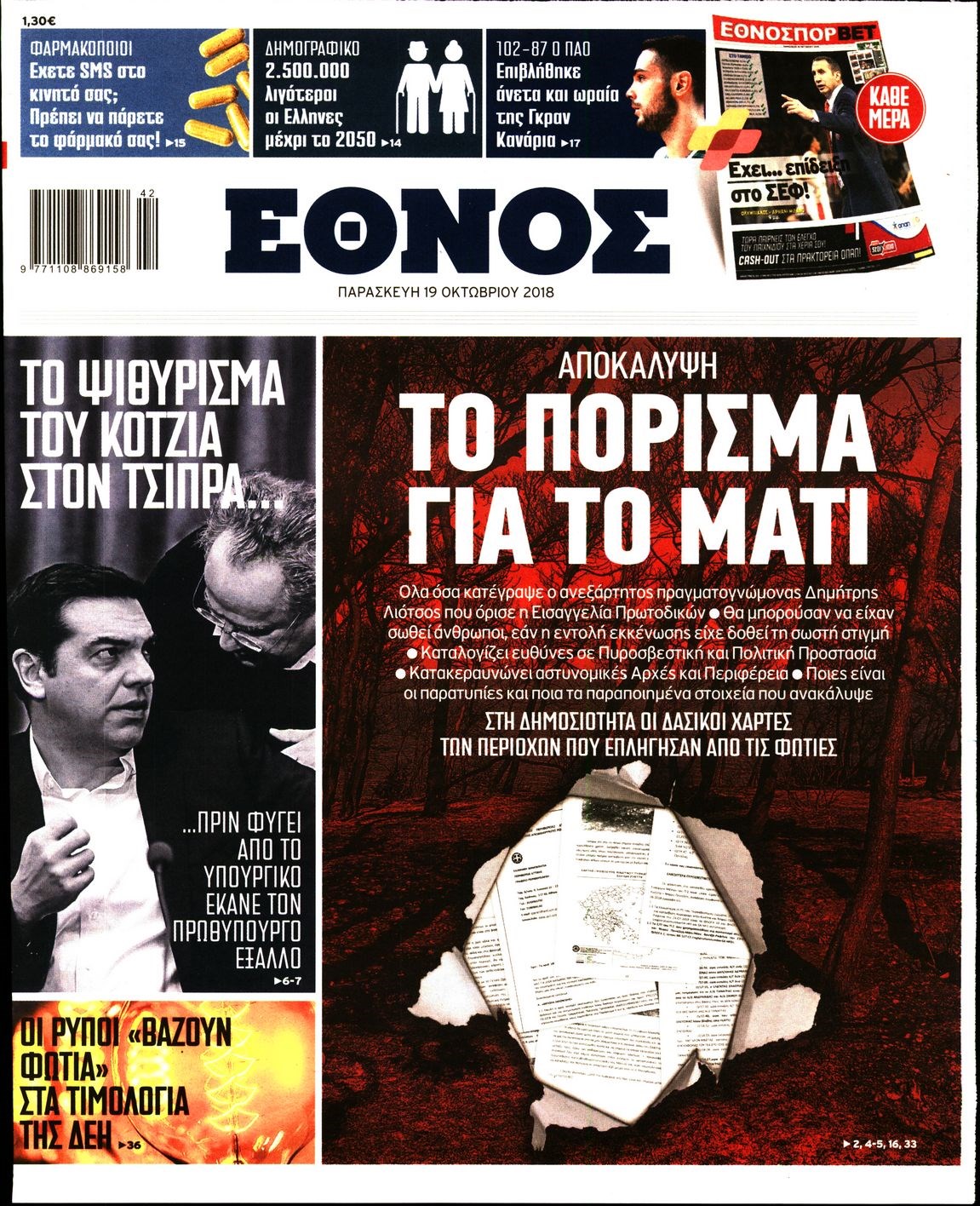 Οι πολιτικές εφημερίδες 19/10/2018 Enikos Newsroom 06:28, Παρασκευή 19 Οκτωβρίου 2018 Media Διαβάστε τα πρωτοσέλιδα: ΠΟΛΙΤΙΚΕΣ ΕΦΗΜΕΡΙΔΕΣ ΠΡΩΤΟΣΕΛΙΔΑ Μοιράσου το: σχολίασε κι εσύ (0 σχόλια) Ακολουθήστε το enikos.gr στο Google News και μάθετε πρώτοι όλες τις ειδήσεις Δείτε όλες τις τελευταίες ειδήσεις από την Ελλάδα και τον Κόσμο στο enikos.gr Ειδήσεις Ροή Ειδήσεων 1 ώρα πριν Γιορτές με μπλόκα για τους αγρότες: Ανοίγουν διόδια και μοιράζουν προϊόντα στους ταξιδιώτες 2 ώρες πριν Τα αρχεία του Έπσταϊν αποκαλύπτουν φωτογραφία του έκπτωτου πρίγκιπα Άντριου – Είναι ξαπλωμένος στην αγκαλιά 5 γυναικών 43 λεπτά πριν Νέες ταυτότητες: Μεγάλη αναμονή για ραντεβού στην Αττική – Τέλος τα ταξίδια εκτός Ελλάδος από τον Αύγουστο για όσους δεν έχουν αλλάξει 2 ώρες πριν Εξαφάνιση 33χρονου γιατρού στην Κρήτη: «Άναψα τα φώτα, τρόμαξε και άρχισε να τρέχει στα χωράφια» – Η τελευταία διαδρομή και η μαρτυρία «κλειδί» 3 ώρες πριν Ο «χάρτης» με τις αυξήσεις και τις φοροελαφρύνσεις του 2026 – Ποιοι και πόσα κερδίζουν 2 ώρες πριν Μία νέα «χρυσή» περίοδος αρχίζει για 3 ζώδια από σήμερα – «Μία αναπάντεχη ευκαιρία οδηγεί στην επιτυχία» 6 ώρες πριν Αυγά: Πόσα μπορείτε να τρώτε την ημέρα με ασφάλεια για μέγιστη πρόσληψη πρωτεΐνης 4 ώρες πριν Αρχαιολόγοι ανακάλυψαν σε χωράφι απεικόνιση 600 ετών ενός Αγίου – Τα στοιχεία που δείχνουν ότι μαρτύρησε 3 ώρες πριν Αγχώνεται για το χριστουγεννιάτικο δώρο που πήρε στην πλούσια σύντροφό του – «Φοβάμαι πως θα το βρει φθηνιάρικο, φοράει βραχιόλια Cartier» 3 λεπτά πριν Βούλα: Συνελήφθη 24χρονος με 69 κιλά ακατέργαστης κάνναβης – Κυκλοφορούσε με κλεμμένο αυτοκίνητο 12 λεπτά πριν «Η αγάπη δεν χάνεται ποτέ»: Η μικρού μήκους ταινία κινουμένων σχεδίων που θέτει ερωτήματα για τη ζωή και τον θάνατο 20 λεπτά πριν Στέφανος Παπαδόπουλος: Η συνέντευξη μετά τη μήνυση στον Γιώργο Μαζωνάκη – «Δεν θέλω να τα βρούμε εξωδικαστικά» 27 λεπτά πριν Τραγωδία στην άσφαλτο στα Χανιά: Νεκρός 37χρονος οδηγός ΙΧ – Τον βρήκαν ώρες μετά το τροχαίο 35 λεπτά πριν Τα Labubu «μετακομίζουν» στο Χόλιγουντ: Η Sony Pictures ετοιμάζει live-action ταινία με τον σκηνοθέτη του «Wonka» ENIKOS NETWORK Είστε μόνιμα απρόσεκτοι; 3 σημάδια που δείχνουν ότι μπορεί να είναι σύμπτωμα πάθησης Πόσα κιλά παίρνουμε πραγματικά τα Χριστούγεννα, σύμφωνα με την επιστήμη – Πώς να το αποτρέψουμε; e-ΕΦΚΑ και ΔΥΠΑ: Έρχονται νέες πληρωμές έως τις 24 Δεκεμβρίου – Ποιοι πάνε ταμείο Επίδομα παιδιού: Τι αλλάζει από το 2026 – Το όφελος από τις φορολογικές ελαφρύνσεις Χαρτογραφώντας το «σημείο χωρίς επιστροφή»: Για πρώτη φορά αποκαλύπτεται με λεπτομέρεια το ακανθώδες όριο της ατμόσφαιρας τ... Η Google καταργεί τη λειτουργία «dark web report» – Πώς θα μπορούν οι χρήστες να διαγράφουν τα δεδομένα τους περισσότερα 11:41 , Σάββατο 20 Δεκεμβρίου 2025 «Η αγάπη δεν χάνεται ποτέ»: Η μικρού μήκους ταινία κινουμένων σχεδίων που θέτει ερωτήματα για τη ζωή και τον θάνατο Ο θάνατος είναι ένα από τα πιο σκληρά θέματα που καλείται να διαχειριστεί κάποιος στη διάρκεια... 09:30 , Σάββατο 20 Δεκεμβρίου 2025 «Porto Leone: Στη γειτονιά με τα κόκκινα φανάρια» – Ο Χρόνης αποκαλύπτει στην Αλεξάνδρα το μυστικό για το παιδί της Λένας Η μεγάλη δραματική σειρά του Apha «Porto Leone: Στη γειτονιά με τα κόκκινα φανάρια» μας μεταφέ... 08:14 , Σάββατο 20 Δεκεμβρίου 2025 Τρομεροί γονείς: Η Μαρία Καβογιάννη εισβάλλει στο σπίτι της οικογένειας Στεφανίδη Όσα θα δούμε στο νέο διπλό επεισόδιο της σειράς «Τρομεροί γονείς», σήμερα Σάββατο 20 Δεκεμβ