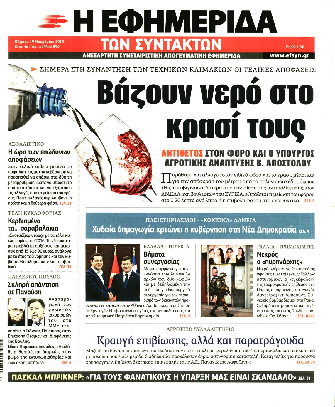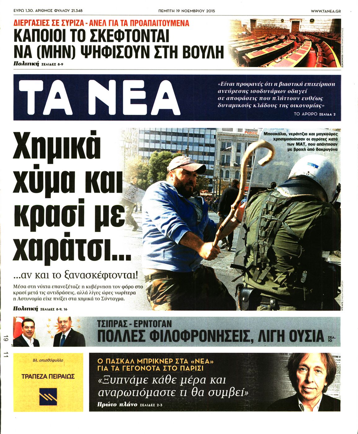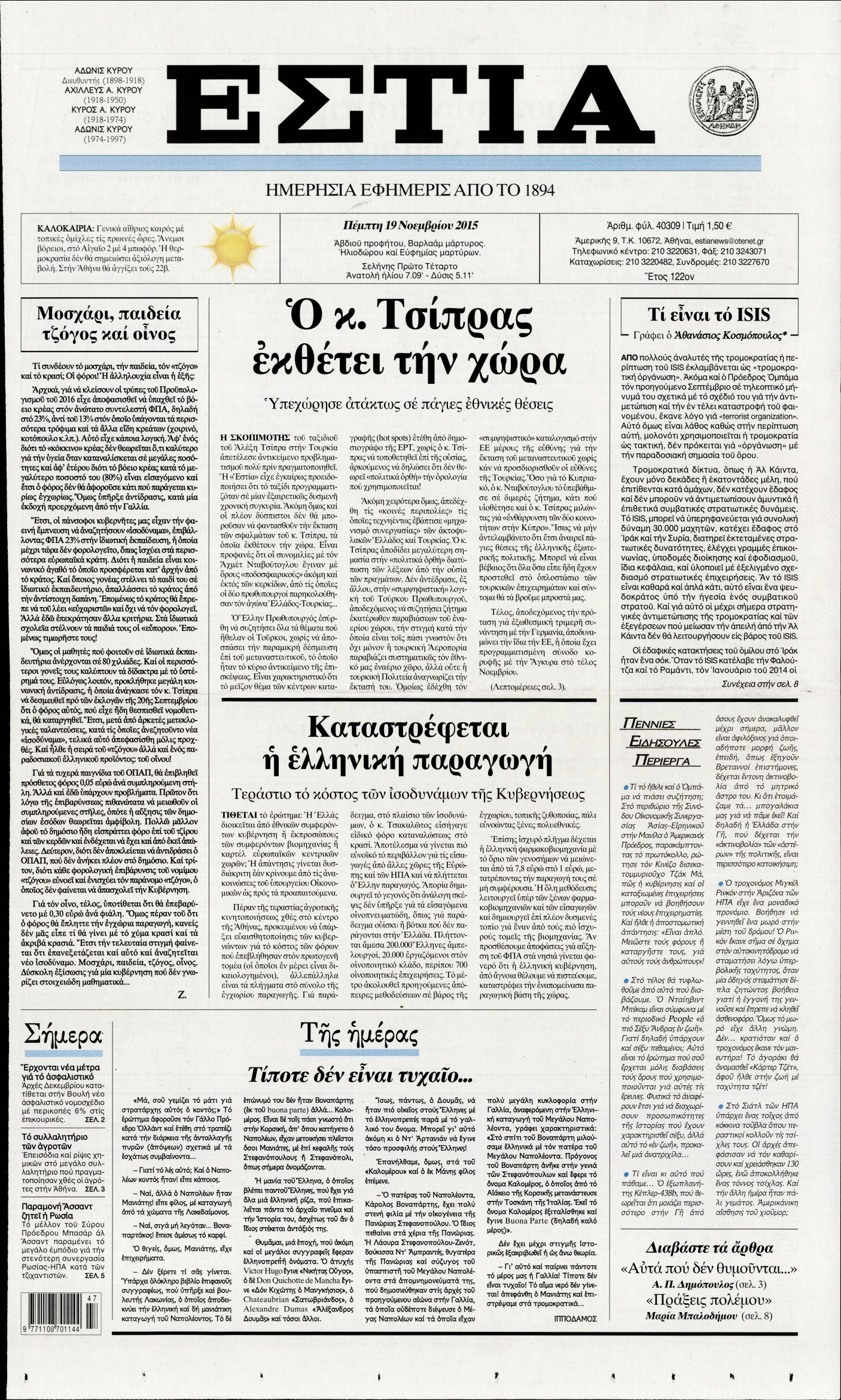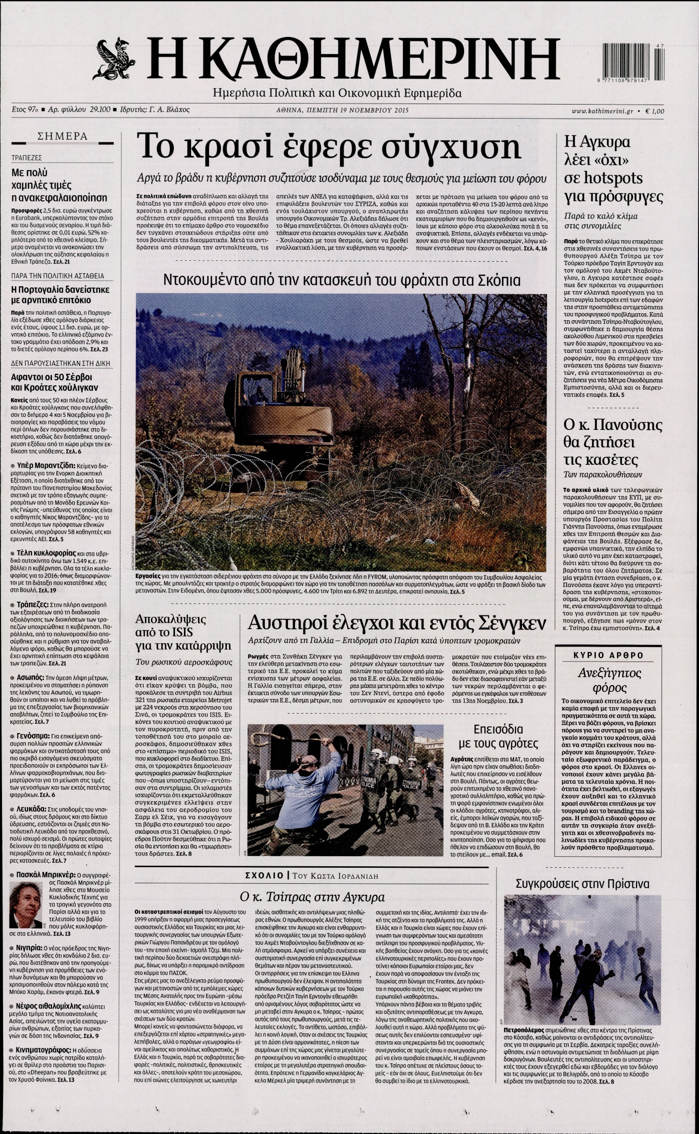 Οι πολιτικές εφημερίδες 19/11/2015 Enikos Newsroom 06:21, Πέμπτη 19 Νοεμβρίου 2015 Media Διαβάστε τα σημερινά πρωτοσέλιδα των πολιτικών εφημερίδων: ΠΟΛΙΤΙΚΕΣ ΕΦΗΜΕΡΙΔΕΣ ΠΡΩΤΟΣΕΛΙΔΑ Μοιράσου το: σχολίασε κι εσύ (0 σχόλια) Ακολουθήστε το enikos.gr στο Google News και μάθετε πρώτοι όλες τις ειδήσεις Δείτε όλες τις τελευταίες ειδήσεις από την Ελλάδα και τον Κόσμο στο enikos.gr Ειδήσεις Ροή Ειδήσεων 1 ώρα πριν Χριστούγεννα στα μπλόκα: Επιμένουν στις κινητοποιήσεις τους οι αγρότες – Ανοίγουν τα διόδια το Σαββατοκύριακο 2 ώρες πριν Ουκρανία: Η άνευ προηγουμένου επίθεση σε ρωσικό τάνκερ στη Μεσόγειο και το μήνυμα προς στον Πούτιν – Το «μακρύ χέρι» του Κιέβου 1 ώρα πριν Πούτιν: Τα μηνύματα σε Ευρώπη και ΝΑΤΟ από το μαραθώνιο «σόου» του – Η απαίτηση για «σεβασμό» και η ειρήνη «με τους όρους» της Μόσχας 2 ώρες πριν Τραμπ: Δεν αποκλείει την πιθανότητα ενός πολέμου στη Βενεζουέλα – «Ο Μαδούρο ξέρει καλύτερα από τον καθένα τι ακριβώς θέλω» 3 ώρες πριν Συνεχίζει να προκαλεί ο Μίτσκοσκι: «Για μένα το όνομα Μακεδονία είναι ιερό» 1 ώρα πριν Ανακαλύφθηκαν αρχαία χρυσά νομίσματα 2.200 ετών που απεικονίζουν τον θεό Απόλλωνα – Η άγνωστη σύνδεση με τον Φίλιππο Β΄ της Μακεδονίας 2 ώρες πριν Ύπνος: Μια κρυφή κατάσταση του εγκεφάλου πριν από τον ύπνο μπορεί να είναι το “κλειδί” για υψηλή ευφυΐα και δημιουργικότητα 3 ώρες πριν Αριθμολογία: Οι άνθρωποι που έχουν γεννηθεί αυτές τις 4 ημερομηνίες, συχνά παρεξηγούνται – «Η καλοσύνη τους κρύβει τεράστια δύναμη» 4 ώρες πριν Ξεχάστε το καθάρισμα το Σαββατοκύριακο: Ο «κανόνας των 20 λεπτών» που θα σας λύσει τα χέρια 4 λεπτά πριν Πόλεμος στην Ουκρανία: Εφτά νεκροί από ρωσική πυραυλική επίθεση στο λιμάνι της Οδησσού 7 λεπτά πριν ΗΠΑ: Η κυβέρνηση του Ντόναλντ Τραμπ άρχισε να δημοσιοποιεί τα αρχεία Έπσταϊν 19 λεπτά πριν Σάμος: Άνοιξε το μπλόκο των αγροτών στον κόμβο Κοκκαρίου – Σε νέα συνεδρίαση θα καθορίσουν την στάση τους 27 λεπτά πριν Άνω Λιόσια: Πυροβολισμοί σε επιχείρηση με χαλιά – Εντοπίστηκαν 10 κάλυκες 34 λεπτά πριν Γάζα: Ισραηλινό πλήγμα σε σχολείο που είχαν καταφύγει εκτοπισμένοι – Τουλάχιστον έξι νεκροί ENIKOS NETWORK Το ΕΚΑΒ τιμήθηκε από την Ακαδημία Αθηνών για τα 40 χρόνια προσφοράς του Έχετε πραγματικά μεγάλη καρδιά; 10 χαρακτηριστικά όσων έχουν καλοσύνη Αναστολή μέτρων αναγκαστικής εκτέλεσης για κτηνοτρόφους που πλήττονται από την ευλογιά των αιγοπροβάτων Πλήρης επάρκεια προϊόντων στις λαϊκές της Αττικής, παρά τις αγροτικές κινητοποιήσεις – Τι απαντούν οι πωλητές Χαρτογραφώντας το «σημείο χωρίς επιστροφή»: Για πρώτη φορά αποκαλύπτεται με λεπτομέρεια το ακανθώδες όριο της ατμόσφαιρας τ... Η Google καταργεί τη λειτουργία «dark web report» – Πώς θα μπορούν οι χρήστες να διαγράφουν τα δεδομένα τους περισσότερα 22:42 , Παρασκευή 19 Δεκεμβρίου 2025 Γιώργος Γιαννόπουλος για “Το σόι σου”: “Είναι ευτυχία και ευλογία αυτή η σειρά” «Είναι ευτυχία και ευλογία η συγκυρία αυτής της σειράς», θα πει ο Γιώργος Γιαννόπουλος -ο αγαπ... 20:37 , Παρασκευή 19 Δεκεμβρίου 2025 Don’t Forget The Lyrics: Η Έλλη Κοκκίνου υποδέχεται 4 παίκτες που θα κάνουν τα πάντα για να μη χάσουν ούτε… μισή λέξη από τους στίχους Το «Don’t Forget The Lyrics» επιστρέφει απόψε, Παρασκευή 19 Δεκεμβρίου, στις 21:00 με νέο επει... 19:31 , Παρασκευή 19 Δεκεμβρίου 2025 GNTM: Απόψε ο μεγάλος τελικός για τους 4 φιναλίστ Έπειτα από μήνες γεμάτους μόδα, δημιουργία και έντονες αναμετρήσεις, το GNTM 2025 κορυφώνεται,... 18:11 , Παρασκευή 19 Δεκεμβρίου 2025 Το σόι σου: Ο Άρ