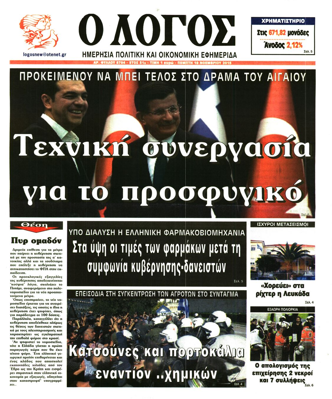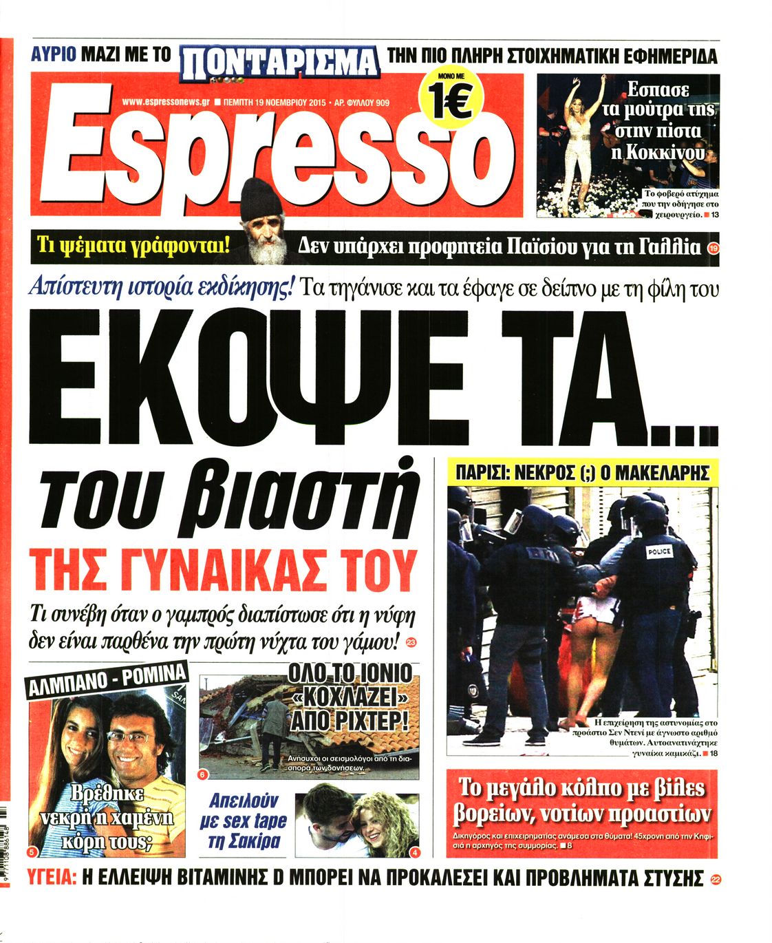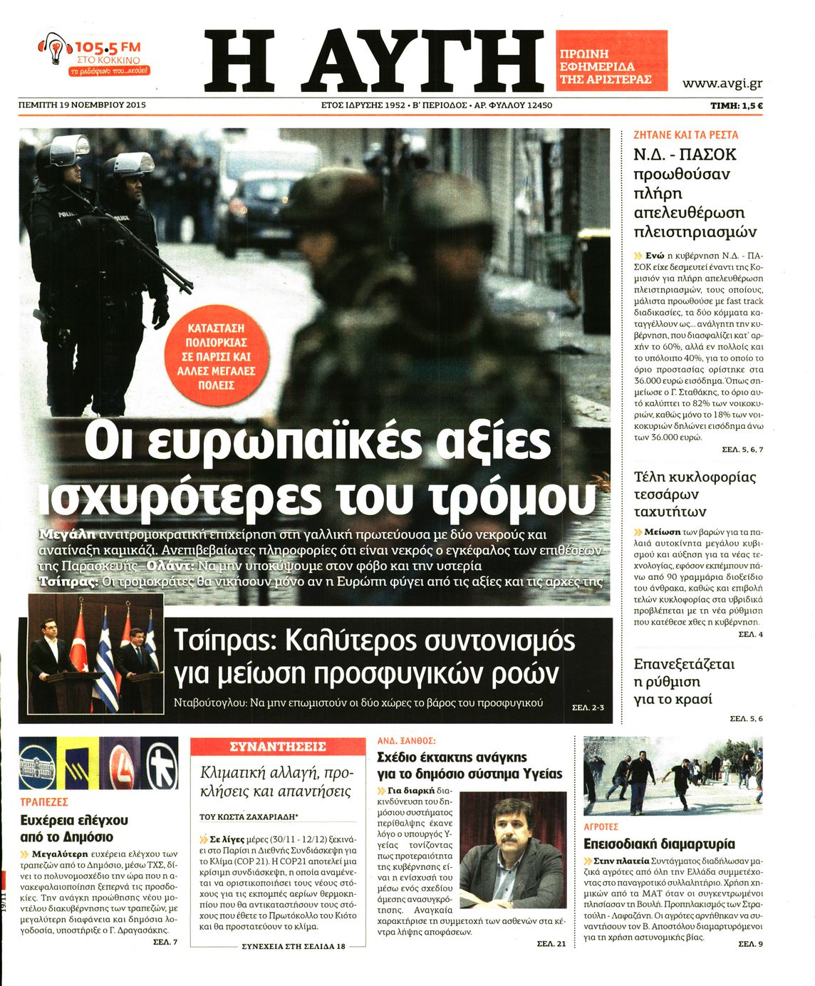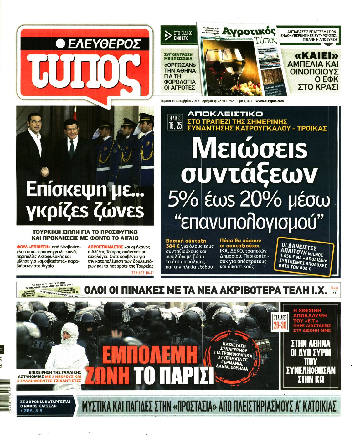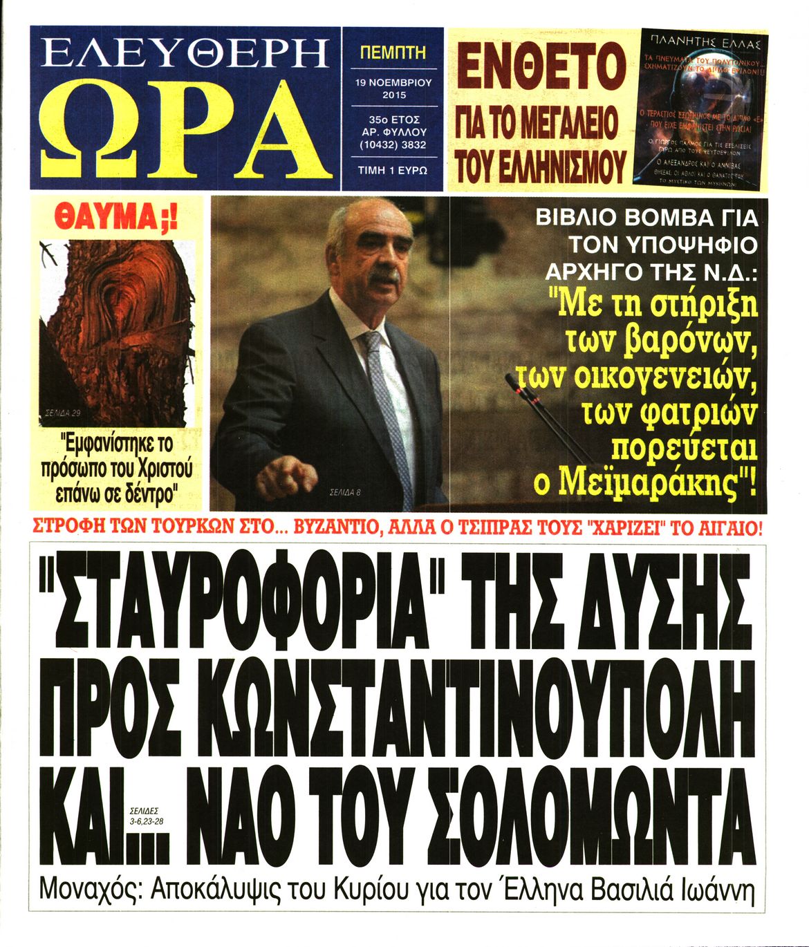 Οι πολιτικές εφημερίδες 19/11/2015 Enikos Newsroom 06:21, Πέμπτη 19 Νοεμβρίου 2015 Media Διαβάστε τα σημερινά πρωτοσέλιδα των πολιτικών εφημερίδων: ΠΟΛΙΤΙΚΕΣ ΕΦΗΜΕΡΙΔΕΣ ΠΡΩΤΟΣΕΛΙΔΑ Μοιράσου το: σχολίασε κι εσύ (0 σχόλια) Ακολουθήστε το enikos.gr στο Google News και μάθετε πρώτοι όλες τις ειδήσεις Δείτε όλες τις τελευταίες ειδήσεις από την Ελλάδα και τον Κόσμο στο enikos.gr Ειδήσεις Ροή Ειδήσεων 1 ώρα πριν Χριστούγεννα στα μπλόκα: Επιμένουν στις κινητοποιήσεις τους οι αγρότες – Ανοίγουν τα διόδια το Σαββατοκύριακο 2 ώρες πριν Ουκρανία: Η άνευ προηγουμένου επίθεση σε ρωσικό τάνκερ στη Μεσόγειο και το μήνυμα προς στον Πούτιν – Το «μακρύ χέρι» του Κιέβου 1 ώρα πριν Πούτιν: Τα μηνύματα σε Ευρώπη και ΝΑΤΟ από το μαραθώνιο «σόου» του – Η απαίτηση για «σεβασμό» και η ειρήνη «με τους όρους» της Μόσχας 2 ώρες πριν Τραμπ: Δεν αποκλείει την πιθανότητα ενός πολέμου στη Βενεζουέλα – «Ο Μαδούρο ξέρει καλύτερα από τον καθένα τι ακριβώς θέλω» 3 ώρες πριν Συνεχίζει να προκαλεί ο Μίτσκοσκι: «Για μένα το όνομα Μακεδονία είναι ιερό» 1 ώρα πριν Ανακαλύφθηκαν αρχαία χρυσά νομίσματα 2.200 ετών που απεικονίζουν τον θεό Απόλλωνα – Η άγνωστη σύνδεση με τον Φίλιππο Β΄ της Μακεδονίας 2 ώρες πριν Ύπνος: Μια κρυφή κατάσταση του εγκεφάλου πριν από τον ύπνο μπορεί να είναι το “κλειδί” για υψηλή ευφυΐα και δημιουργικότητα 3 ώρες πριν Αριθμολογία: Οι άνθρωποι που έχουν γεννηθεί αυτές τις 4 ημερομηνίες, συχνά παρεξηγούνται – «Η καλοσύνη τους κρύβει τεράστια δύναμη» 4 ώρες πριν Ξεχάστε το καθάρισμα το Σαββατοκύριακο: Ο «κανόνας των 20 λεπτών» που θα σας λύσει τα χέρια 4 λεπτά πριν Πόλεμος στην Ουκρανία: Εφτά νεκροί από ρωσική πυραυλική επίθεση στο λιμάνι της Οδησσού 7 λεπτά πριν ΗΠΑ: Η κυβέρνηση του Ντόναλντ Τραμπ άρχισε να δημοσιοποιεί τα αρχεία Έπσταϊν 19 λεπτά πριν Σάμος: Άνοιξε το μπλόκο των αγροτών στον κόμβο Κοκκαρίου – Σε νέα συνεδρίαση θα καθορίσουν την στάση τους 27 λεπτά πριν Άνω Λιόσια: Πυροβολισμοί σε επιχείρηση με χαλιά – Εντοπίστηκαν 10 κάλυκες 34 λεπτά πριν Γάζα: Ισραηλινό πλήγμα σε σχολείο που είχαν καταφύγει εκτοπισμένοι – Τουλάχιστον έξι νεκροί ENIKOS NETWORK Το ΕΚΑΒ τιμήθηκε από την Ακαδημία Αθηνών για τα 40 χρόνια προσφοράς του Έχετε πραγματικά μεγάλη καρδιά; 10 χαρακτηριστικά όσων έχουν καλοσύνη Αναστολή μέτρων αναγκαστικής εκτέλεσης για κτηνοτρόφους που πλήττονται από την ευλογιά των αιγοπροβάτων Πλήρης επάρκεια προϊόντων στις λαϊκές της Αττικής, παρά τις αγροτικές κινητοποιήσεις – Τι απαντούν οι πωλητές Χαρτογραφώντας το «σημείο χωρίς επιστροφή»: Για πρώτη φορά αποκαλύπτεται με λεπτομέρεια το ακανθώδες όριο της ατμόσφαιρας τ... Η Google καταργεί τη λειτουργία «dark web report» – Πώς θα μπορούν οι χρήστες να διαγράφουν τα δεδομένα τους περισσότερα 22:42 , Παρασκευή 19 Δεκεμβρίου 2025 Γιώργος Γιαννόπουλος για “Το σόι σου”: “Είναι ευτυχία και ευλογία αυτή η σειρά” «Είναι ευτυχία και ευλογία η συγκυρία αυτής της σειράς», θα πει ο Γιώργος Γιαννόπουλος -ο αγαπ... 20:37 , Παρασκευή 19 Δεκεμβρίου 2025 Don’t Forget The Lyrics: Η Έλλη Κοκκίνου υποδέχεται 4 παίκτες που θα κάνουν τα πάντα για να μη χάσουν ούτε… μισή λέξη από τους στίχους Το «Don’t Forget The Lyrics» επιστρέφει απόψε, Παρασκευή 19 Δεκεμβρίου, στις 21:00 με νέο επει... 19:31 , Παρασκευή 19 Δεκεμβρίου 2025 GNTM: Απόψε ο μεγάλος τελικός για τους 4 φιναλίστ Έπειτα από μήνες γεμάτους μόδα, δημιουργία και έντονες αναμετρήσεις, το GNTM 2025 κορυφώνεται,... 18:11 , Παρασκευή 19 Δεκεμβρίου 2025 Το σόι σου: Ο Άρ