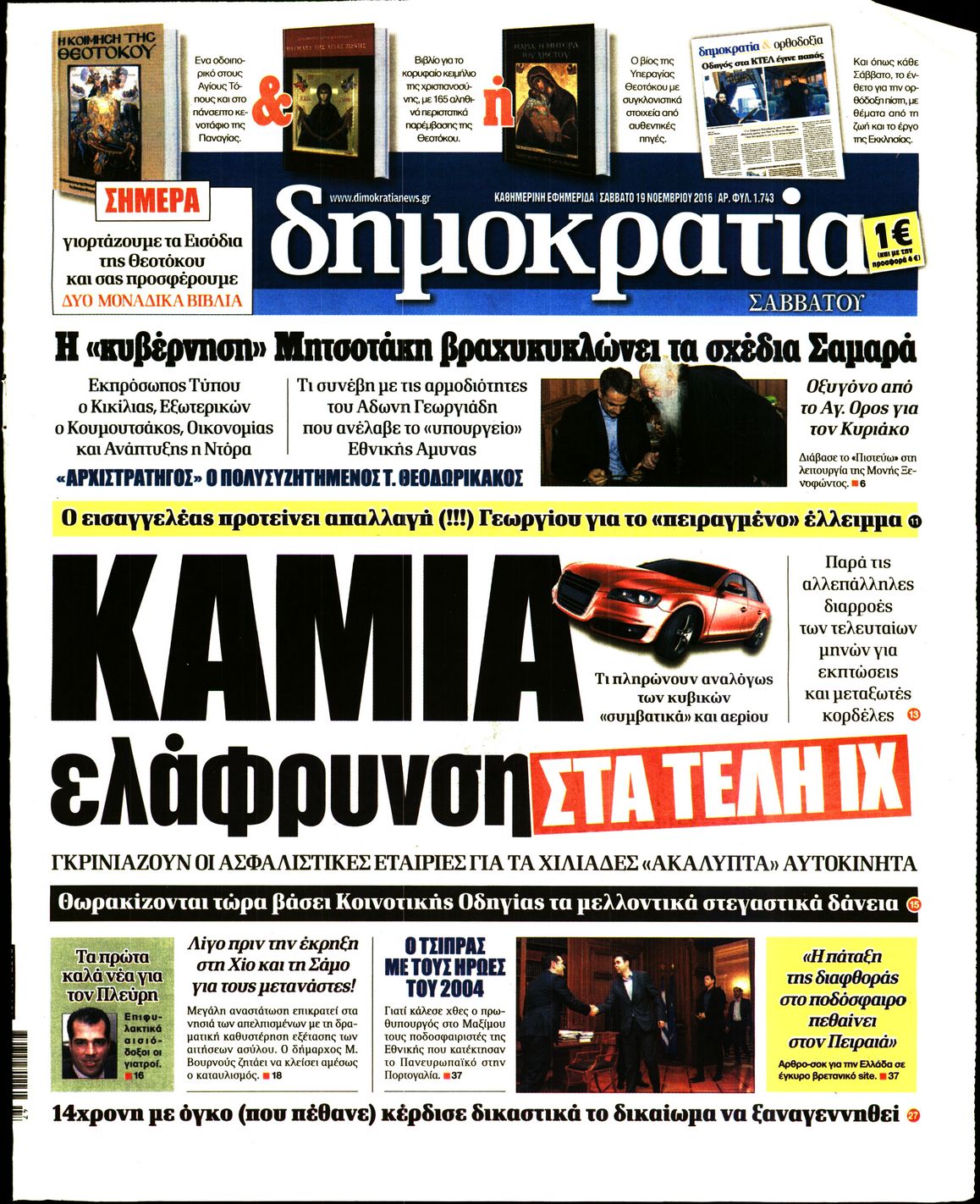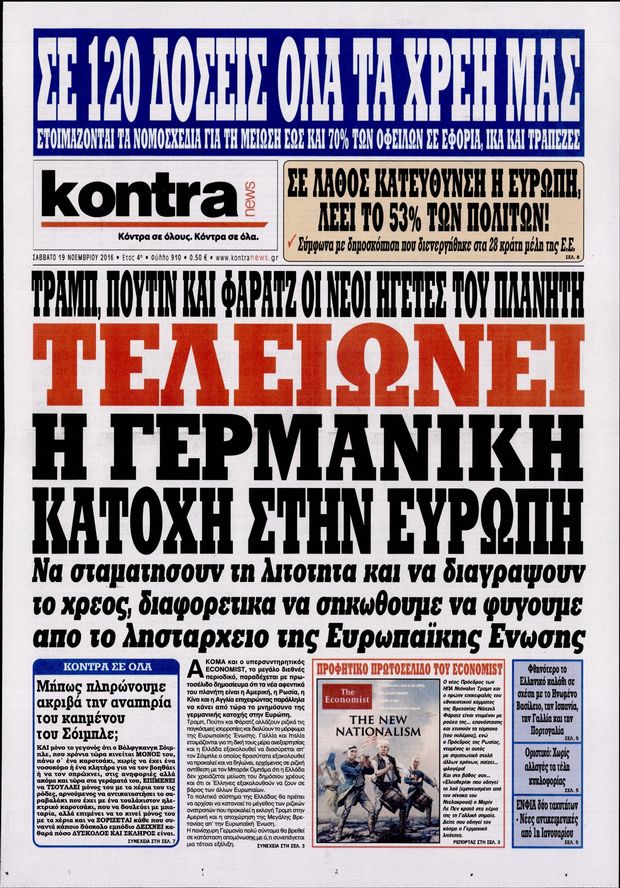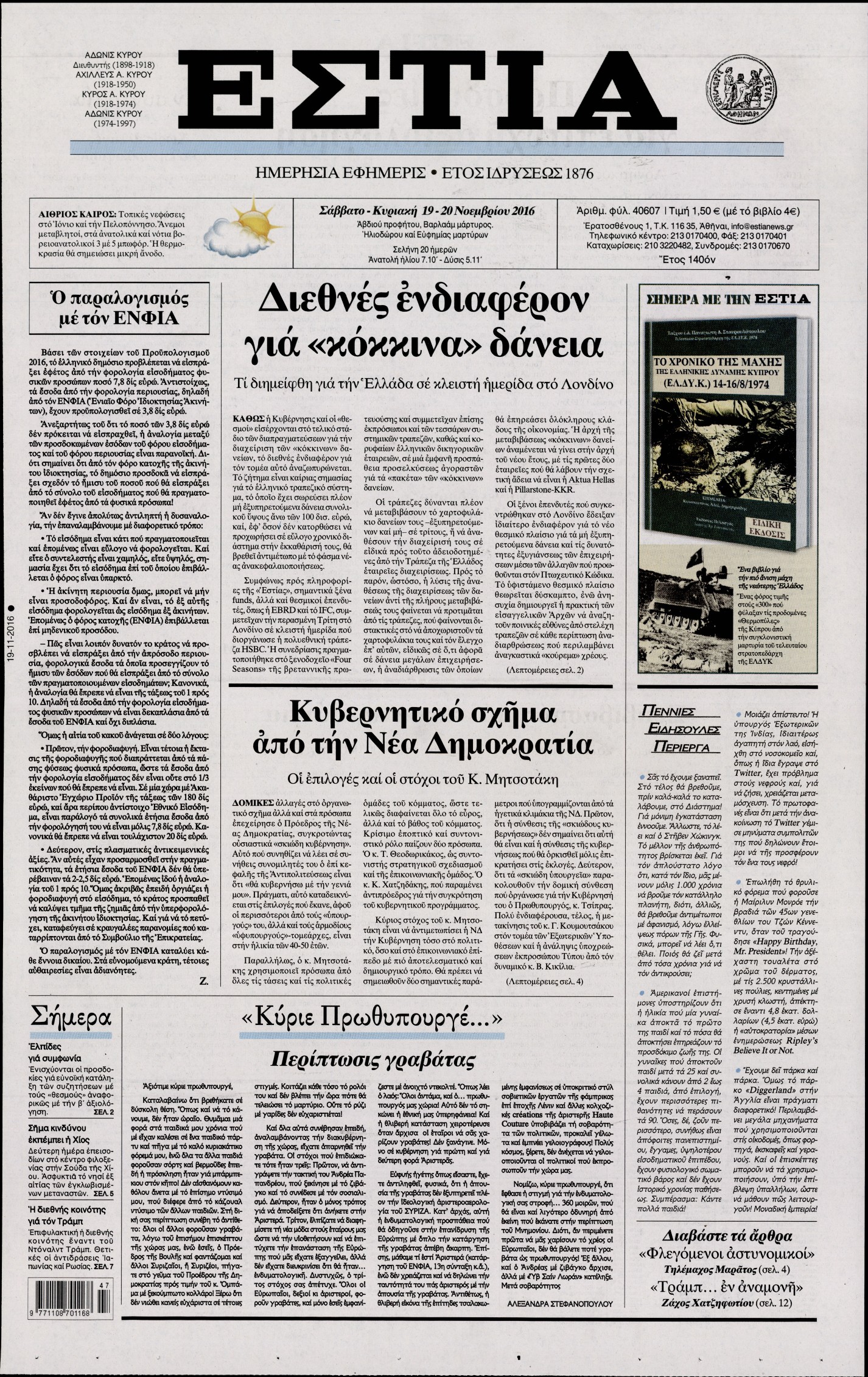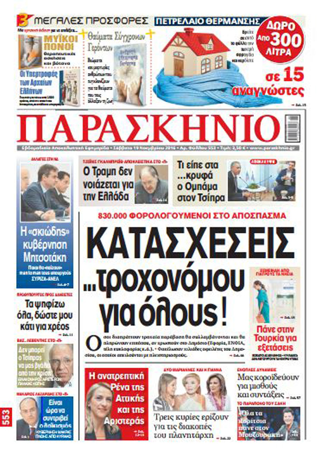 Οι πολιτικές εφημερίδες 19/11/2016 Κώστας Τεό 04:57, Σάββατο 19 Νοεμβρίου 2016 Media Διαβάστε τα σημερινά πρωτοσέλιδα των πολιτικών εφημερίδων: ΠΟΛΙΤΙΚΕΣ ΕΦΗΜΕΡΙΔΕΣ ΠΡΩΤΟΣΕΛΙΔΑ Μοιράσου το: σχολίασε κι εσύ (0 σχόλια) Ακολουθήστε το enikos.gr στο Google News και μάθετε πρώτοι όλες τις ειδήσεις Δείτε όλες τις τελευταίες ειδήσεις από την Ελλάδα και τον Κόσμο στο enikos.gr Ειδήσεις Ροή Ειδήσεων 49 λεπτά πριν ΑΑΔΕ: Στον Εισαγγελέα οι πρώτες 50 μαζικές διαγραφές αγρών στο Ε9 – Εξετάζονται συνολικά 3.000 περιπτώσεις 4 ώρες πριν Καιρός: Νέο έκτακτο δελτίο επιδείνωσης από την ΕΜΥ – Ποιες περιοχές θα «χτυπήσει» η κακοκαιρία τα Χριστούγεννα 41 λεπτά πριν Ζελένσκι: Πέρασε στην αντεπίθεση με το σχέδιο ειρήνης – Ζητεί συνάντηση με Τραμπ για το εδαφικό 5 ώρες πριν Live – Έξοδος Χριστουγέννων: Αυξημένη η κίνηση στις Εθνικές Οδούς – Εικόνα αποσυμφόρησης με νέες λωρίδες κυκλοφορίας στα αγροτικά μπλόκα 5 ώρες πριν Αεροπορικό δυστύχημα στην Τουρκία: Στο μικροσκόπιο ο καταγραφέας ήχου και το μαύρο κουτί – Η αεροσυνοδός Maria Pappa ανάμεσα στα θύματα 32 λεπτά πριν Τα 5 ζώδια που έχουν μεγάλες πιθανότητες να πλουτίσουν το 2026 – «Οι οικονομικές δυσκολίες ανήκουν στο παρελθόν» 2 ώρες πριν Επιστήμονες ανακάλυψαν κάτι συγκλονιστικό – Η μάζα μπορεί να προέρχεται από αόρατες διαστάσεις 5 ώρες πριν Γυναίκα που έχασε 30 κιλά αποκαλύπτει τα μυστικά της επιτυχίας της – «Οι υδατάνθρακες είναι καύσιμο του οργανισμού, όχι εχθρός» 4 ώρες πριν Οι άνθρωποι που αποφεύγουν να γιορτάσουν τα Χριστούγεννα με την οικογένειά τους, συνήθως είχαν αυτές τις 8 εμπειρίες στην παιδική ηλικία 6 λεπτά πριν Φωτιά σε αυτοκίνητο στην Αττική Οδό – Πού υπάρχουν καθυστερήσεις – ΦΩΤΟ αναγνώστη 13 λεπτά πριν Τουρκία: Συζητήσεις Φιντάν με αξιωματούχους της Χαμάς για τη δεύτερη φάση της συμφωνίας εκεχειρίας στη Γάζα 20 λεπτά πριν ALPHA: Παραμονή Χριστουγέννων με τον Κωνσταντίνο Αργυρό 27 λεπτά πριν Κίμπερλι Γκίλφοϊλ: «Ο Θεός να ευλογεί την Ελλάδα και τις ΗΠΑ» – Οι ευχές της για τα Χριστούγεννα 32 λεπτά πριν Τα 5 ζώδια που έχουν μεγάλες πιθανότητες να πλουτίσουν το 2026 – «Οι οικονομικές δυσκολίες ανήκουν στο παρελθόν» ENIKOS NETWORK New Year’s Resolutions: Μικρές αποφάσεις για μια καλή χρονιά 14χρονη βγήκε να πει τα κάλαντα και βρέθηκε τραυματισμένη στο δρόμο-Νοσηλεύεται στο Παίδων «Αγία Σοφία» Αλλάζουν οι διατάξεις του Κτιριοδομικού του Κτιριοδομικού Κανονισμού – Τι είπε ο Ταγαράς Επίδομα θέρμανσης: Πότε θα δοθεί η επόμενη δόση Ο Google Assistant θα παραμείνει λίγο περισσότερο για ορισμένους χρήστες Android Τεστ προσωπικότητας: Το βάζο που θα επιλέξετε αποκαλύπτει πώς λύνετε προβλήματα στη ζωή σας περισσότερα 16:12 , Τετάρτη 24 Δεκεμβρίου 2025 ALPHA: Παραμονή Χριστουγέννων με τον Κωνσταντίνο Αργυρό Ο Alpha παρουσιάζει απόψε σε πρώτη τηλεοπτική μετάδοση τη συναρπαστική και sold out εμφάνιση ... 15:51 , Τετάρτη 24 Δεκεμβρίου 2025 ‘Αγιος Έρωτας: Ο σεισμός που έκοψε την ανάσα – Δείτε τις συγκλονιστικές σκηνές Με έναν συγκλονιστικό τρόπο έκλεισε χθες βράδυ το τελευταίο επεισόδιο του 2025 της σειράς R... 13:27 , Τετάρτη 24 Δεκεμβρίου 2025 Ο Χριστουγεννιάτικος Τηλεμαραθώνιος του ΑΝΤ1 ένωσε τους πολιτικούς αρχηγούς – Τα εγκωμιαστικά σχόλια για τον Θοδωρή Κυριακού Σπάνια ομοφωνία: Όλοι οι πολιτικοί αρχηγοί αποθεώνουν τον Θοδωρή Κυριακού Ο Χριστουγεννιάτικος... 12:05 , Τετάρτη 24 Δεκεμβρίου 2025 Έξοδος εκδρομέων για τα Χριστούγεννα: Στείλε βίντεο ή φωτογραφίες στο enikos.gr – Αποθήκευσε τον αριθμό 6944 05 05 