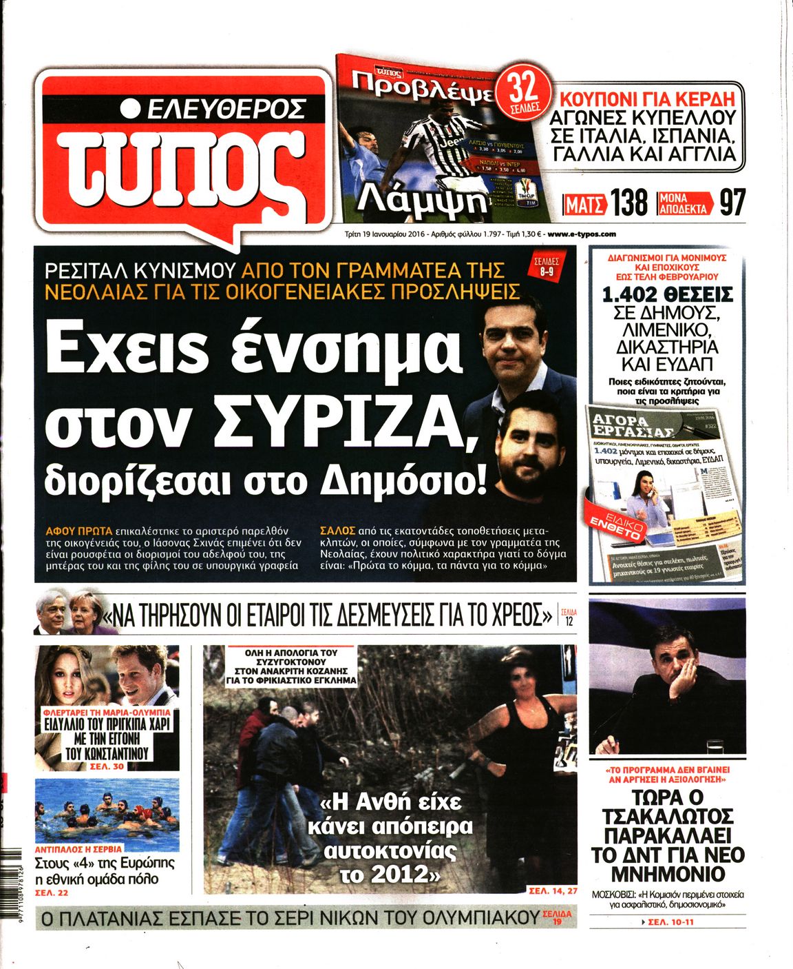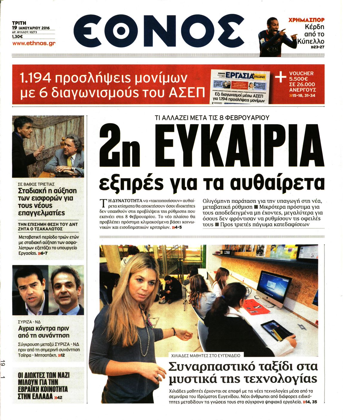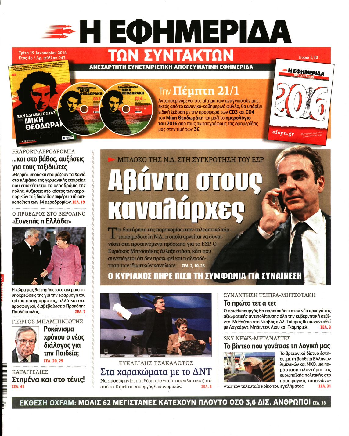 Οι πολιτικές εφημερίδες 19/1/2016 Enikos Newsroom 06:14, Τρίτη 19 Ιανουαρίου 2016 Media Διαβάστε τα σημερινά πρωτοσέλιδα των πολιτικών εφημερίδων: ΠΟΛΙΤΙΚΕΣ ΕΦΗΜΕΡΙΔΕΣ ΠΡΩΤΟΣΕΛΙΔΑ Μοιράσου το: σχολίασε κι εσύ (0 σχόλια) Ακολουθήστε το enikos.gr στο Google News και μάθετε πρώτοι όλες τις ειδήσεις Δείτε όλες τις τελευταίες ειδήσεις από την Ελλάδα και τον Κόσμο στο enikos.gr Ειδήσεις Ροή Ειδήσεων 2 ώρες πριν Μπλόκα: Οι αγρότες σηκώνουν τις μπάρες σε διόδια για τους εκδρομείς των Χριστουγέννων και μοιράζουν προϊόντα – Βίντεο 2 ώρες πριν Τσιάρας προς αγρότες: Τα μπλόκα και τα πείσματα δεν ωφελούν – Οι λύσεις περνούν μέσα από τον διάλογο 3 ώρες πριν Αρχεία Έπσταϊν: Οι συγκλονιστικές φωτογραφίες – Ο Μάικλ Τζάκσον, ο Μικ Τζάγκερ και ο Κέβιν Σπέισι ανάμεσα στους διάσημους που απεικονίζονται 59 λεπτά πριν Μαθητές διακινούσαν κοκαΐνη και χασίς σε σχολείο της Αττικής – 12 συλλήψεις 1 ώρα πριν Βέλγιο: Άγνωστοι έριξαν κόκκινη μπογιά στο προξενείο της Πολωνίας στις Βρυξέλλες 5 ώρες πριν Μία νέα «χρυσή» περίοδος αρχίζει για 3 ζώδια από σήμερα – «Μία αναπάντεχη ευκαιρία οδηγεί στην επιτυχία» 4 ώρες πριν Διαιτολόγος αποκαλύπτει 9 πρωινές συνήθειες που «λιώνουν» το κοιλιακό λίπος – «Υποστηρίζουν την υγιεινή απώλεια βάρους» 5 ώρες πριν Οι 7 φράσεις που δεν λένε ποτέ οι συναισθηματικά έξυπνοι άνθρωποι κατά τη διάρκεια ενός καβγά 7 ώρες πριν Enerwave: Το νέο «ρεύμα» στη λιανική ενέργειας που αλλάζει την εμπειρία του καταναλωτή 7 λεπτά πριν Μαρινάκης στον Realfm 97,8: Η κυβέρνηση σέβεται κάθε λογική διεκδίκηση των αγροτών, αλλά και το αίτημα των πολιτών να μην ταλαιπωρούνται 14 λεπτά πριν O Πάντερ MVP της 17ης αγωνιστικής στην Euroleague 22 λεπτά πριν Πέθανε η τραγουδίστρια Κλαούντια Ντελμέρ 30 λεπτά πριν Μία ανεκμετάλλευτη πηγή θα μπορούσε να προσφέρει ανεξάντλητη ενέργεια – Οι επιστήμονες ίσως γνωρίζουν πώς να την ξεκλειδώσουν 39 λεπτά πριν Θεσσαλονίκη: Ανήλικος που είχε εξαφανιστεί βρέθηκε στο σπίτι Τούρκων μετά από αστυνομική επιχείρηση ENIKOS NETWORK Η αποχή από την αναπαραγωγή παρατείνει τη ζωή στα ζώα, σύμφωνα με μελέτη – Τι ισχύει για τους ανθρώπους; Σημαντικές επαφές στις ΗΠΑ είχε ο υπουργός Υγείας Άδωνις Γεωργιάδης Ευλογιά αιγοπροβάτων: Παρατεταμένη επιζωοτία, αυστηρά μέτρα – Τι ισχύει για τον εμβολιασμό και την ανασύσταση του ζωικού κε... Τσιάρας προς αγρότες: Έχει ικανοποιηθεί το 74% των αιτημάτων – Τα μπλόκα και τα πείσματα δεν ωφελούν Χαρτογραφώντας το «σημείο χωρίς επιστροφή»: Για πρώτη φορά αποκαλύπτεται με λεπτομέρεια το ακανθώδες όριο της ατμόσφαιρας τ... Η Google καταργεί τη λειτουργία «dark web report» – Πώς θα μπορούν οι χρήστες να διαγράφουν τα δεδομένα τους περισσότερα 14:04 , Σάββατο 20 Δεκεμβρίου 2025 Η Realnews αυτής της Κυριακής (21/12/2025) Με τίτλο: «Ασπίδα προστασίας για την Ελλάδα» κυκλοφορεί, αυτήν την Κυριακή, η Realnews. Σημαντ... 12:53 , Σάββατο 20 Δεκεμβρίου 2025 Να μ’ αγαπάς: Το παρελθόν έρχεται στο φως – Καταιγιστικές εξελίξεις στα τελευταία επεισόδια του 2025 Ο Άγγελος αποκαλύπτεται, η Φωτεινή ανησυχεί για τον Λευτέρη και η Ζωή έρχεται αντιμέτωπη με το... 11:41 , Σάββατο 20 Δεκεμβρίου 2025 «Η αγάπη δεν χάνεται ποτέ»: Η μικρού μήκους ταινία κινουμένων σχεδίων που θέτει ερωτήματα για τη ζωή και τον θάνατο Ο θάνατος είναι ένα από τα πιο σκληρά θέματα που καλείται να διαχειριστεί κάποιος στη διάρκεια... 09:30 , Σάββατο 20 Δεκεμβρίου 2025 «Porto Leone: Στη γειτονιά με τα κόκκινα φανάρια» – Ο Χρόνης αποκαλύπτει στην Αλεξάνδρα το μυστικό