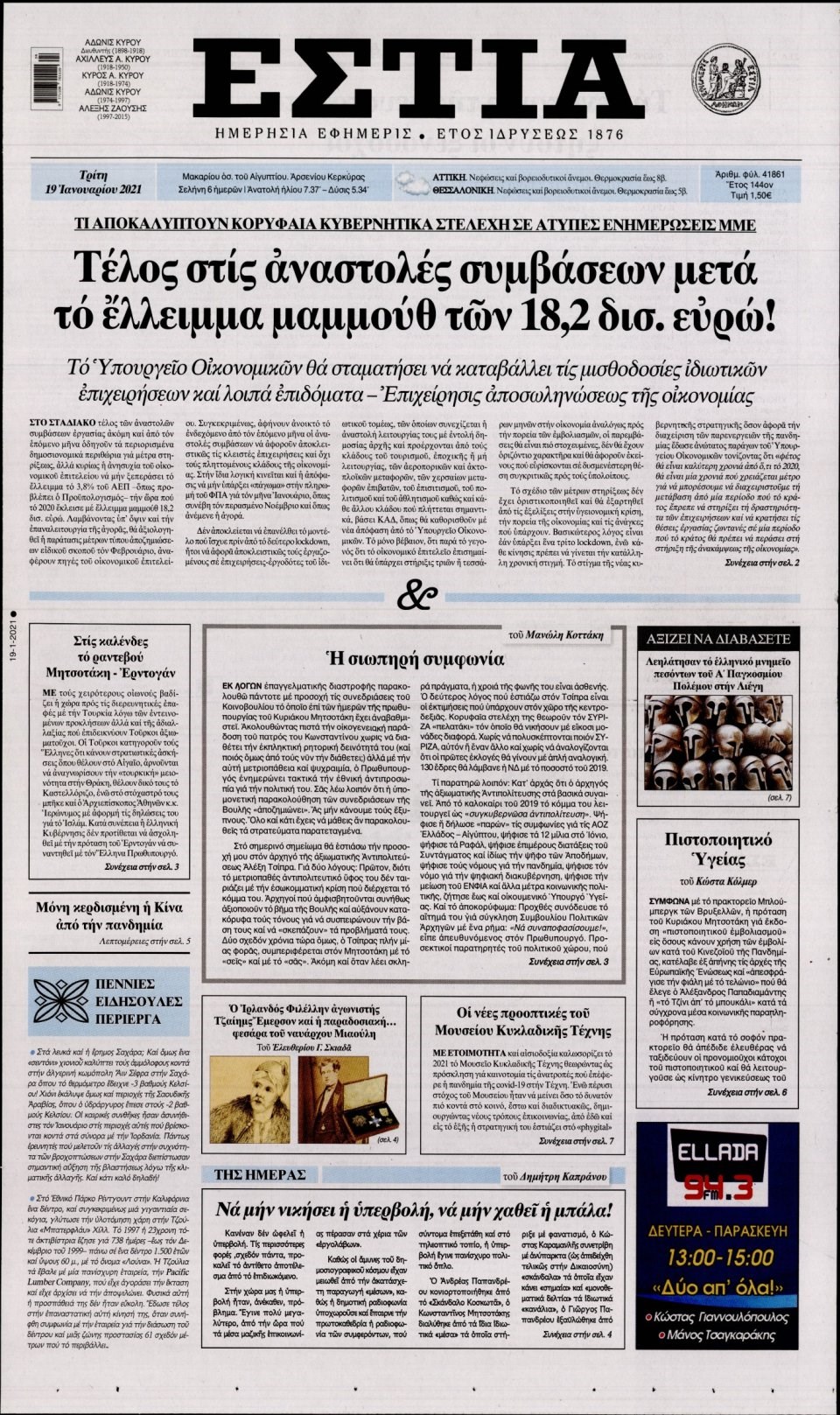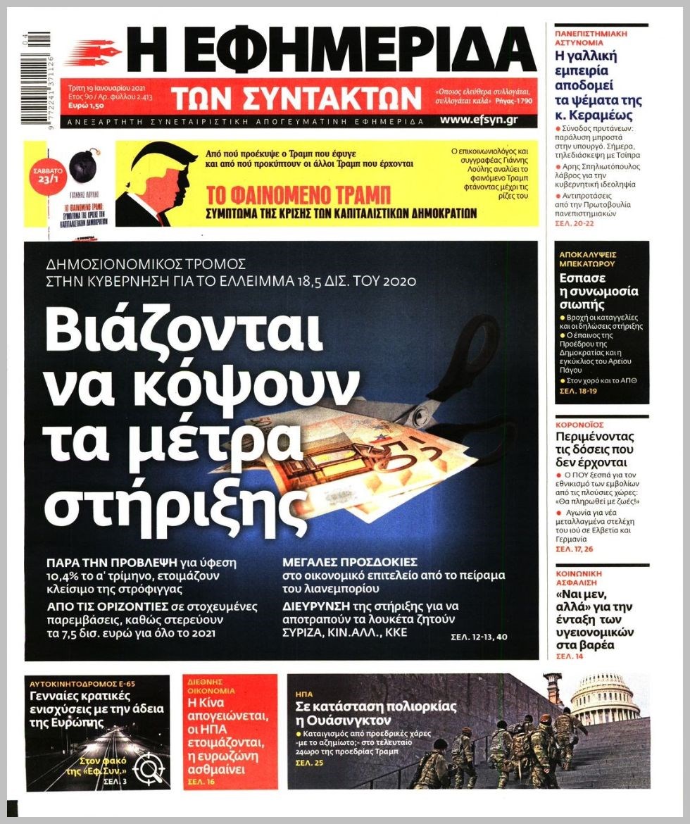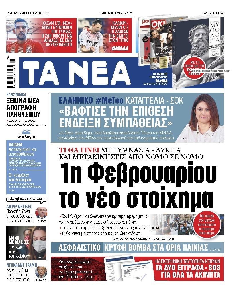 Οι πολιτικές εφημερίδες 19/1/2021 Διονύσης Νίκκας 06:07, Τρίτη 19 Ιανουαρίου 2021 Media Διαβάστε τα πρωτοσέλιδα των πολιτικών εφημερίδων… ΕΦΗΜΕΡΙΔΕΣ ΠΟΛΙΤΙΚΕΣ ΕΦΗΜΕΡΙΔΕΣ ΠΡΩΤΟΣΕΛΙΔΑ Μοιράσου το: σχολίασε κι εσύ (0 σχόλια) Ακολουθήστε το enikos.gr στο Google News και μάθετε πρώτοι όλες τις ειδήσεις Δείτε όλες τις τελευταίες ειδήσεις από την Ελλάδα και τον Κόσμο στο enikos.gr Ειδήσεις Ροή Ειδήσεων 2 ώρες πριν Υπόθεση Έπσταϊν: Το Υπουργείο Δικαιοσύνης δημοσιοποίησε μια σειρά από εξαιρετικά επεξεργασμένα αρχεία – «Λείπουν τα πιο σημαντικά έγγραφα», λένε οι Δημοκρατικοί 1 ώρα πριν Ο «χάρτης» με τις αυξήσεις και τις φοροελαφρύνσεις του 2026 – Ποιοι και πόσα κερδίζουν 11 ώρες πριν Χριστούγεννα στα μπλόκα: Επιμένουν στις κινητοποιήσεις τους οι αγρότες – Ανοίγουν τα διόδια το Σαββατοκύριακο 2 ώρες πριν ΟΝΕΧ – MEGATUGS: Ξεκίνησε η ναυπήγηση ρυμουλκών στην Ελλάδα – Προθάλαμος πολεμικών πλοίων – Δείτε φωτογραφίες και βίντεο 2 ώρες πριν Καιρός: Αλλαγή σκηνικού σήμερα με βροχές και πτώση της θερμοκρασίας – Οι προβλέψεις των μετεωρολόγων για τα Χριστούγεννα 4 ώρες πριν Αυγά: Πόσα μπορείτε να τρώτε την ημέρα με ασφάλεια για μέγιστη πρόσληψη πρωτεΐνης 4 ώρες πριν Οπτική ψευδαίσθηση: Μόνο αν είσαι ο Σέρλοκ Χολμς θα βρεις τον αριθμό «87» σε 7 δευτερόλεπτα 2 ώρες πριν Αρχαιολόγοι ανακάλυψαν σε χωράφι απεικόνιση 600 ετών ενός Αγίου – Τα στοιχεία που δείχνουν ότι μαρτύρησε 57 λεπτά πριν Αγχώνεται για το χριστουγεννιάτικο δώρο που πήρε στην πλούσια σύντροφό του – «Φοβάμαι πως θα το βρει φθηνιάρικο, φοράει βραχιόλια Cartier» 8 λεπτά πριν Κρήτη: «Πίεση διαρκείας» με νέες αφίξεις μεταναστών – Τρεις επιχειρήσεις διάσωσης νότια του νησιού 16 λεπτά πριν Η χήνα… που πέρασαν για κλέφτη: Έσπασε την πόρτα προκαλώντας πανικό 24 λεπτά πριν Θεσσαλονίκη: 24ωρη λειτουργία σήμερα σε μετρό και 6 λεωφορειακές γραμμές 31 λεπτά πριν «Porto Leone: Στη γειτονιά με τα κόκκινα φανάρια» – Ο Χρόνης αποκαλύπτει στην Αλεξάνδρα το μυστικό για το παιδί της Λένας 39 λεπτά πριν Νέες αιτήσεις για ίδρυση μη κρατικών πανεπιστημίων στο πρώτο δίμηνο του 2026 – Τι είπε η Ζαχαράκη ENIKOS NETWORK Είστε μόνιμα απρόσεκτοι; 3 σημάδια που δείχνουν ότι μπορεί να είναι σύμπτωμα πάθησης Πόσα κιλά παίρνουμε πραγματικά τα Χριστούγεννα, σύμφωνα με την επιστήμη – Πώς να το αποτρέψουμε; Mega χριστουγεννιάτικη φορολοταρία: «Κλείδωσε» η ημερομηνία για την κλήρωση – Ερωτήσεις και απαντήσεις Αναστολή μέτρων αναγκαστικής εκτέλεσης για κτηνοτρόφους που πλήττονται από την ευλογιά των αιγοπροβάτων Χαρτογραφώντας το «σημείο χωρίς επιστροφή»: Για πρώτη φορά αποκαλύπτεται με λεπτομέρεια το ακανθώδες όριο της ατμόσφαιρας τ... Η Google καταργεί τη λειτουργία «dark web report» – Πώς θα μπορούν οι χρήστες να διαγράφουν τα δεδομένα τους περισσότερα 09:30 , Σάββατο 20 Δεκεμβρίου 2025 «Porto Leone: Στη γειτονιά με τα κόκκινα φανάρια» – Ο Χρόνης αποκαλύπτει στην Αλεξάνδρα το μυστικό για το παιδί της Λένας Η μεγάλη δραματική σειρά του Apha «Porto Leone: Στη γειτονιά με τα κόκκινα φανάρια» μας μεταφέ... 08:14 , Σάββατο 20 Δεκεμβρίου 2025 Τρομεροί γονείς: Η Μαρία Καβογιάννη εισβάλλει στο σπίτι της οικογένειας Στεφανίδη Όσα θα δούμε στο νέο διπλό επεισόδιο της σειράς «Τρομεροί γονείς», σήμερα Σάββατο 20 Δεκεμβρίο... 05:48 , Σάββατο 20 Δεκεμβρίου 2025 Οι οικονομικές εφημερίδες 20/12/2025 Διαβάστε τα πρωτοσέλιδα από τις οικονομικές εφημερίδες, σήμερα 20/12/2025. 05:43 , Σάββατο 20 Δεκεμβρίου 2025 Οι αθλητικές εφημερίδες 20/12/2025 Δια
