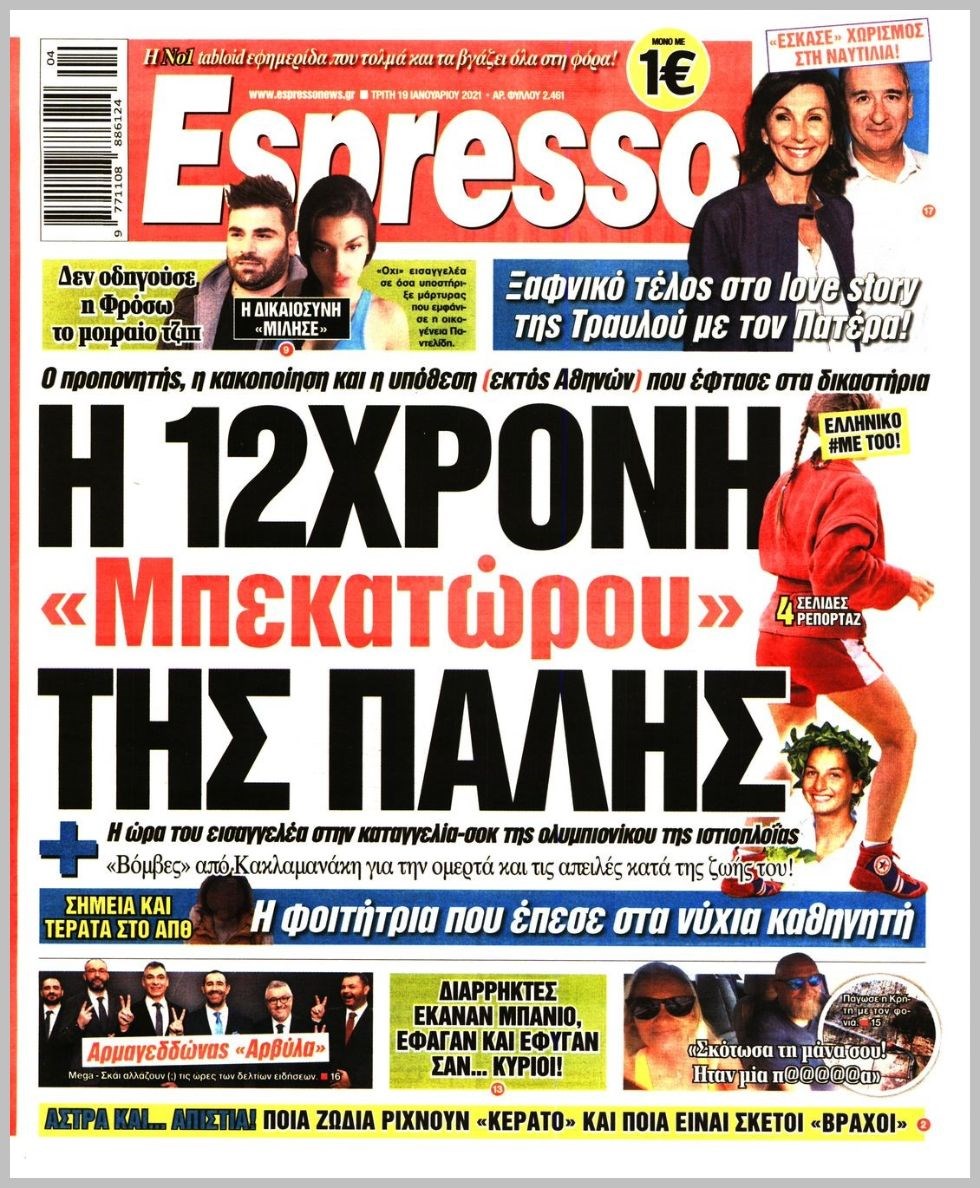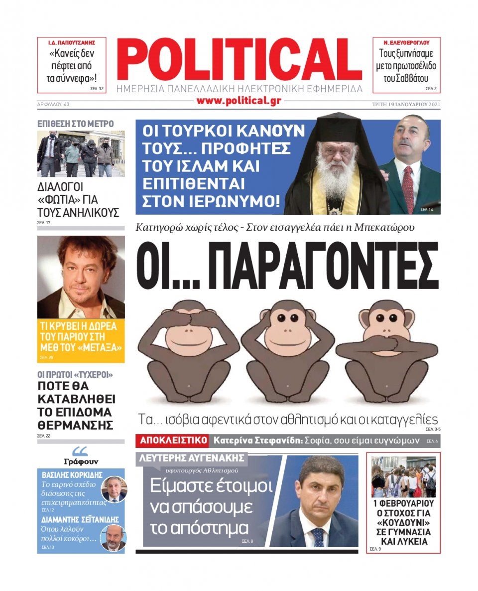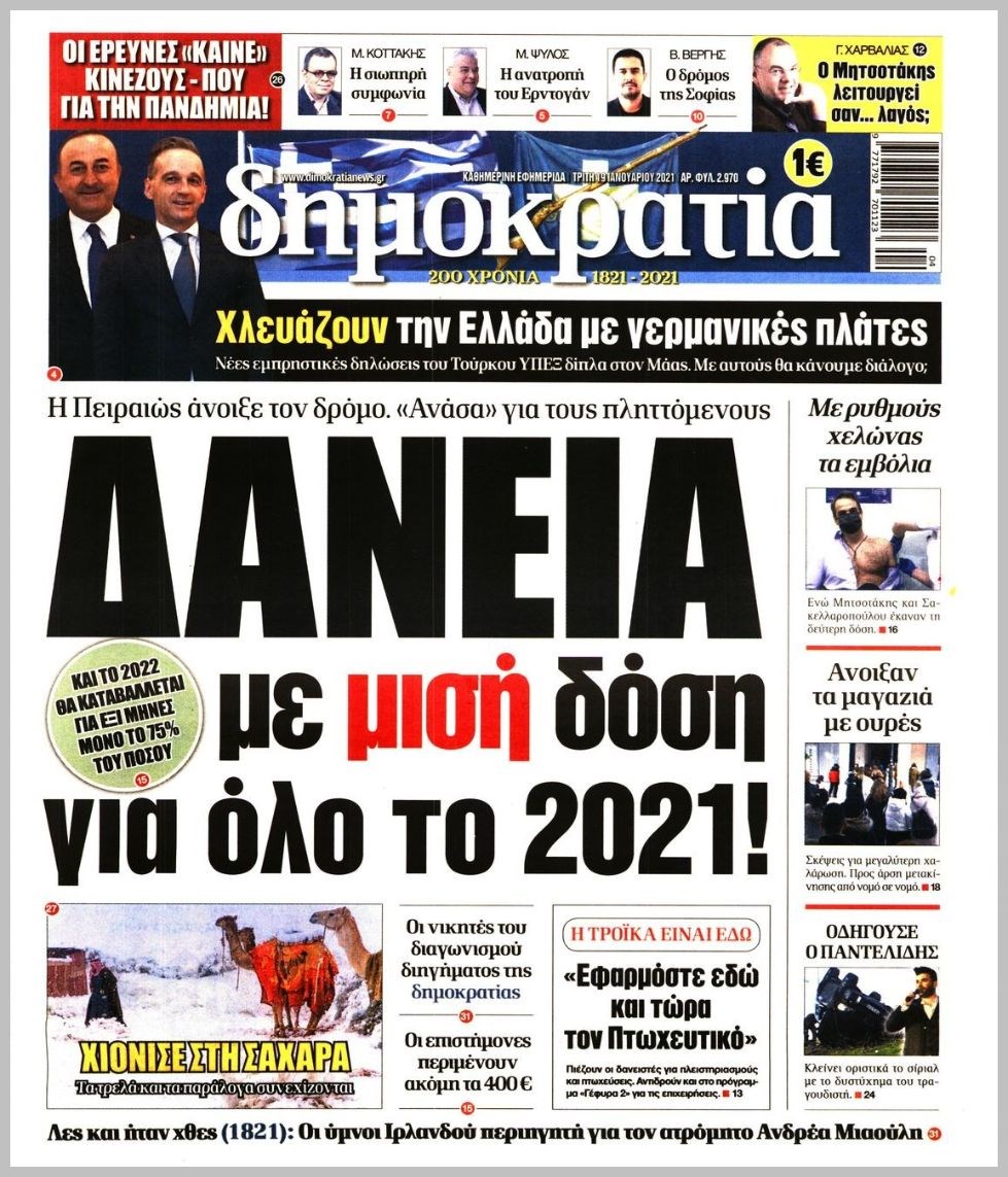 Οι πολιτικές εφημερίδες 19/1/2021 Διονύσης Νίκκας 06:07, Τρίτη 19 Ιανουαρίου 2021 Media Διαβάστε τα πρωτοσέλιδα των πολιτικών εφημερίδων… ΕΦΗΜΕΡΙΔΕΣ ΠΟΛΙΤΙΚΕΣ ΕΦΗΜΕΡΙΔΕΣ ΠΡΩΤΟΣΕΛΙΔΑ Μοιράσου το: σχολίασε κι εσύ (0 σχόλια) Ακολουθήστε το enikos.gr στο Google News και μάθετε πρώτοι όλες τις ειδήσεις Δείτε όλες τις τελευταίες ειδήσεις από την Ελλάδα και τον Κόσμο στο enikos.gr Ειδήσεις Ροή Ειδήσεων 2 ώρες πριν Υπόθεση Έπσταϊν: Το Υπουργείο Δικαιοσύνης δημοσιοποίησε μια σειρά από εξαιρετικά επεξεργασμένα αρχεία – «Λείπουν τα πιο σημαντικά έγγραφα», λένε οι Δημοκρατικοί 1 ώρα πριν Ο «χάρτης» με τις αυξήσεις και τις φοροελαφρύνσεις του 2026 – Ποιοι και πόσα κερδίζουν 11 ώρες πριν Χριστούγεννα στα μπλόκα: Επιμένουν στις κινητοποιήσεις τους οι αγρότες – Ανοίγουν τα διόδια το Σαββατοκύριακο 2 ώρες πριν ΟΝΕΧ – MEGATUGS: Ξεκίνησε η ναυπήγηση ρυμουλκών στην Ελλάδα – Προθάλαμος πολεμικών πλοίων – Δείτε φωτογραφίες και βίντεο 2 ώρες πριν Καιρός: Αλλαγή σκηνικού σήμερα με βροχές και πτώση της θερμοκρασίας – Οι προβλέψεις των μετεωρολόγων για τα Χριστούγεννα 4 ώρες πριν Αυγά: Πόσα μπορείτε να τρώτε την ημέρα με ασφάλεια για μέγιστη πρόσληψη πρωτεΐνης 4 ώρες πριν Οπτική ψευδαίσθηση: Μόνο αν είσαι ο Σέρλοκ Χολμς θα βρεις τον αριθμό «87» σε 7 δευτερόλεπτα 2 ώρες πριν Αρχαιολόγοι ανακάλυψαν σε χωράφι απεικόνιση 600 ετών ενός Αγίου – Τα στοιχεία που δείχνουν ότι μαρτύρησε 57 λεπτά πριν Αγχώνεται για το χριστουγεννιάτικο δώρο που πήρε στην πλούσια σύντροφό του – «Φοβάμαι πως θα το βρει φθηνιάρικο, φοράει βραχιόλια Cartier» 8 λεπτά πριν Κρήτη: «Πίεση διαρκείας» με νέες αφίξεις μεταναστών – Τρεις επιχειρήσεις διάσωσης νότια του νησιού 16 λεπτά πριν Η χήνα… που πέρασαν για κλέφτη: Έσπασε την πόρτα προκαλώντας πανικό 24 λεπτά πριν Θεσσαλονίκη: 24ωρη λειτουργία σήμερα σε μετρό και 6 λεωφορειακές γραμμές 31 λεπτά πριν «Porto Leone: Στη γειτονιά με τα κόκκινα φανάρια» – Ο Χρόνης αποκαλύπτει στην Αλεξάνδρα το μυστικό για το παιδί της Λένας 39 λεπτά πριν Νέες αιτήσεις για ίδρυση μη κρατικών πανεπιστημίων στο πρώτο δίμηνο του 2026 – Τι είπε η Ζαχαράκη ENIKOS NETWORK Είστε μόνιμα απρόσεκτοι; 3 σημάδια που δείχνουν ότι μπορεί να είναι σύμπτωμα πάθησης Πόσα κιλά παίρνουμε πραγματικά τα Χριστούγεννα, σύμφωνα με την επιστήμη – Πώς να το αποτρέψουμε; Mega χριστουγεννιάτικη φορολοταρία: «Κλείδωσε» η ημερομηνία για την κλήρωση – Ερωτήσεις και απαντήσεις Αναστολή μέτρων αναγκαστικής εκτέλεσης για κτηνοτρόφους που πλήττονται από την ευλογιά των αιγοπροβάτων Χαρτογραφώντας το «σημείο χωρίς επιστροφή»: Για πρώτη φορά αποκαλύπτεται με λεπτομέρεια το ακανθώδες όριο της ατμόσφαιρας τ... Η Google καταργεί τη λειτουργία «dark web report» – Πώς θα μπορούν οι χρήστες να διαγράφουν τα δεδομένα τους περισσότερα 09:30 , Σάββατο 20 Δεκεμβρίου 2025 «Porto Leone: Στη γειτονιά με τα κόκκινα φανάρια» – Ο Χρόνης αποκαλύπτει στην Αλεξάνδρα το μυστικό για το παιδί της Λένας Η μεγάλη δραματική σειρά του Apha «Porto Leone: Στη γειτονιά με τα κόκκινα φανάρια» μας μεταφέ... 08:14 , Σάββατο 20 Δεκεμβρίου 2025 Τρομεροί γονείς: Η Μαρία Καβογιάννη εισβάλλει στο σπίτι της οικογένειας Στεφανίδη Όσα θα δούμε στο νέο διπλό επεισόδιο της σειράς «Τρομεροί γονείς», σήμερα Σάββατο 20 Δεκεμβρίο... 05:48 , Σάββατο 20 Δεκεμβρίου 2025 Οι οικονομικές εφημερίδες 20/12/2025 Διαβάστε τα πρωτοσέλιδα από τις οικονομικές εφημερίδες, σήμερα 20/12/2025. 05:43 , Σάββατο 20 Δεκεμβρίου 2025 Οι αθλητικές εφημερίδες 20/12/2025 Δια