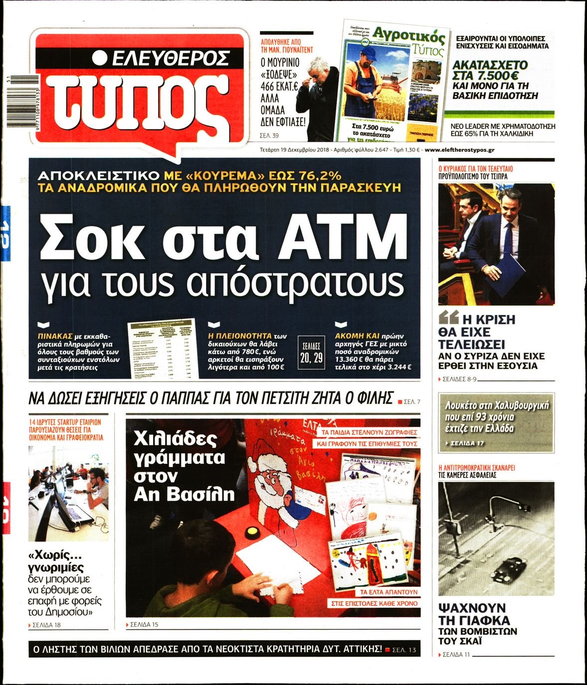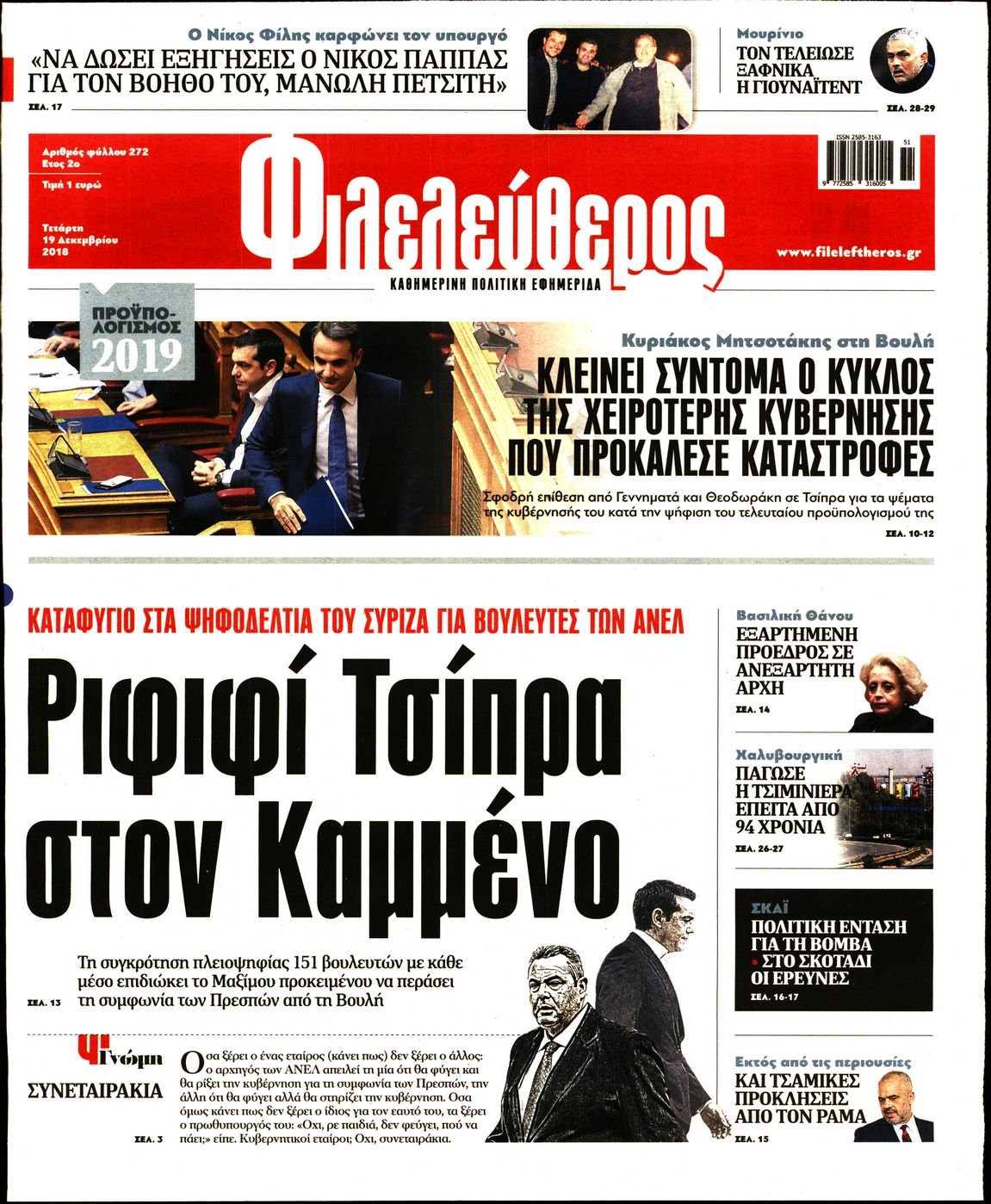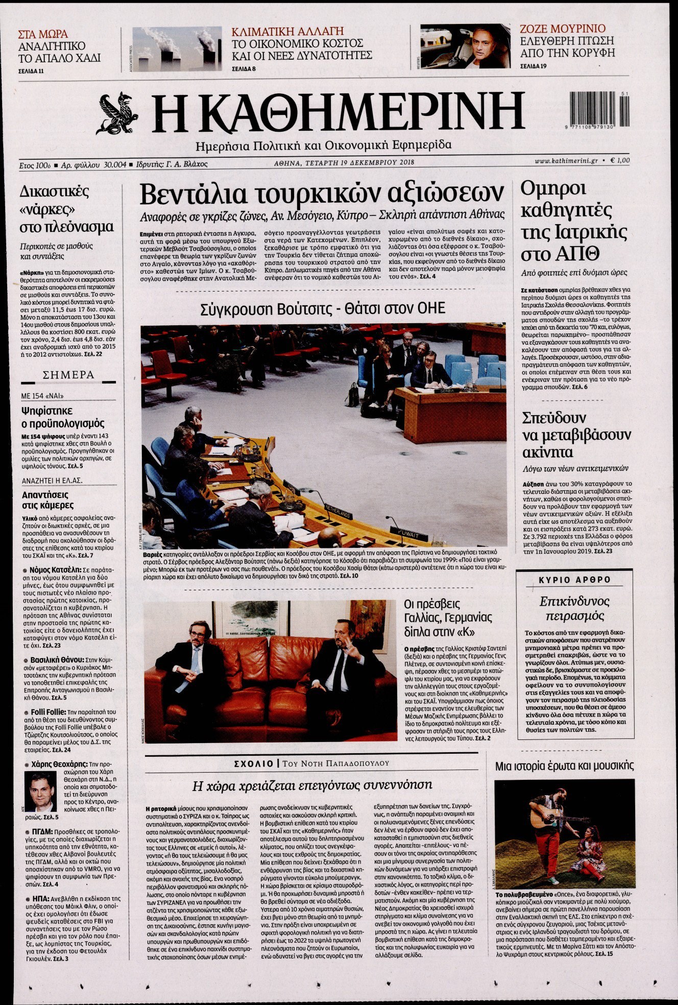 Οι πολιτικές εφημερίδες 19/12/18 Enikos Newsroom 06:13, Τετάρτη 19 Δεκεμβρίου 2018 Media Διαβάστε τα πρωτοσέλιδα: ΠΟΛΙΤΙΚΕΣ ΕΦΗΜΕΡΙΔΕΣ ΠΡΩΤΟΣΕΛΙΔΑ Μοιράσου το: σχολίασε κι εσύ (0 σχόλια) Ακολουθήστε το enikos.gr στο Google News και μάθετε πρώτοι όλες τις ειδήσεις Δείτε όλες τις τελευταίες ειδήσεις από την Ελλάδα και τον Κόσμο στο enikos.gr Ειδήσεις Ροή Ειδήσεων 2 ώρες πριν Μπλόκα: Οι αγρότες σηκώνουν τις μπάρες σε διόδια για τους εκδρομείς των Χριστουγέννων και μοιράζουν προϊόντα – Βίντεο 3 ώρες πριν Τσιάρας προς αγρότες: Τα μπλόκα και τα πείσματα δεν ωφελούν – Οι λύσεις περνούν μέσα από τον διάλογο 4 ώρες πριν Αρχεία Έπσταϊν: Οι συγκλονιστικές φωτογραφίες – Ο Μάικλ Τζάκσον, ο Μικ Τζάγκερ και ο Κέβιν Σπέισι ανάμεσα στους διάσημους που απεικονίζονται 2 ώρες πριν Μαθητές διακινούσαν κοκαΐνη και χασίς σε σχολείο της Αττικής – 12 συλλήψεις 2 ώρες πριν Βέλγιο: Άγνωστοι έριξαν κόκκινη μπογιά στο προξενείο της Πολωνίας στις Βρυξέλλες 6 ώρες πριν Μία νέα «χρυσή» περίοδος αρχίζει για 3 ζώδια από σήμερα – «Μία αναπάντεχη ευκαιρία οδηγεί στην επιτυχία» 4 ώρες πριν Διαιτολόγος αποκαλύπτει 9 πρωινές συνήθειες που «λιώνουν» το κοιλιακό λίπος – «Υποστηρίζουν την υγιεινή απώλεια βάρους» 5 ώρες πριν Οι 7 φράσεις που δεν λένε ποτέ οι συναισθηματικά έξυπνοι άνθρωποι κατά τη διάρκεια ενός καβγά 7 ώρες πριν Enerwave: Το νέο «ρεύμα» στη λιανική ενέργειας που αλλάζει την εμπειρία του καταναλωτή 57 δευτερόλεπτα πριν Η τύχη χαμογελά σε 3 ζώδια έως τις 28 Δεκεμβρίου – «Προσέξτε τις επιλογές σας και η επιμονή σας θα ανταμειφθεί» 15 λεπτά πριν Στο νοσοκομείο ο Λευτέρης Πανταζής – Τι συνέβη 25 λεπτά πριν Super League: Με Κηφισιά ο Ολυμπιακός για να «κλείσει» το 2025 στην κορυφή – Αναλυτικά το πρόγραμμα της 15ης αγωνιστικής 30 λεπτά πριν ΕΛΑΣ: Συνελήφθησαν Υπαρχιπυροσβέστης και δύο ακόμη άτομα για κατοχή και διακίνηση ναρκωτικών ουσιών – Η καταγγελία και ο τιμοκατάλογος 38 λεπτά πριν Πακιστάν: Σε κάθειρξη 17 ετών καταδικάστηκαν ο πρώην πρωθυπουργός Ίμραν Χαν και η σύζυγός του ENIKOS NETWORK Η αποχή από την αναπαραγωγή παρατείνει τη ζωή στα ζώα, σύμφωνα με μελέτη – Τι ισχύει για τους ανθρώπους; Σημαντικές επαφές στις ΗΠΑ είχε ο υπουργός Υγείας Άδωνις Γεωργιάδης Επιτροπή Ανταγωνισμού: Στο μικροσκόπιο σχολικές τσάντες και επώνυμα brands – Τι ερευνάται Ευλογιά αιγοπροβάτων: Παρατεταμένη επιζωοτία, αυστηρά μέτρα – Τι ισχύει για τον εμβολιασμό και την ανασύσταση του ζωικού κε... Χαρτογραφώντας το «σημείο χωρίς επιστροφή»: Για πρώτη φορά αποκαλύπτεται με λεπτομέρεια το ακανθώδες όριο της ατμόσφαιρας τ... Η Google καταργεί τη λειτουργία «dark web report» – Πώς θα μπορούν οι χρήστες να διαγράφουν τα δεδομένα τους περισσότερα 14:04 , Σάββατο 20 Δεκεμβρίου 2025 Η Realnews αυτής της Κυριακής (21/12/2025) Με τίτλο: «Ασπίδα προστασίας για την Ελλάδα» κυκλοφορεί, αυτήν την Κυριακή, η Realnews. Σημαντ... 12:53 , Σάββατο 20 Δεκεμβρίου 2025 Να μ’ αγαπάς: Το παρελθόν έρχεται στο φως – Καταιγιστικές εξελίξεις στα τελευταία επεισόδια του 2025 Ο Άγγελος αποκαλύπτεται, η Φωτεινή ανησυχεί για τον Λευτέρη και η Ζωή έρχεται αντιμέτωπη με το... 11:41 , Σάββατο 20 Δεκεμβρίου 2025 «Η αγάπη δεν χάνεται ποτέ»: Η μικρού μήκους ταινία κινουμένων σχεδίων που θέτει ερωτήματα για τη ζωή και τον θάνατο Ο θάνατος είναι ένα από τα πιο σκληρά θέματα που καλείται να διαχειριστεί κάποιος στη διάρκεια... 09:30 , Σάββατο 20 Δεκεμβρίου 2025 «Porto Leone: Στη γειτονιά με τα κόκκινα φανάρια» – Ο Χρόνης αποκαλύπτει στην Αλε