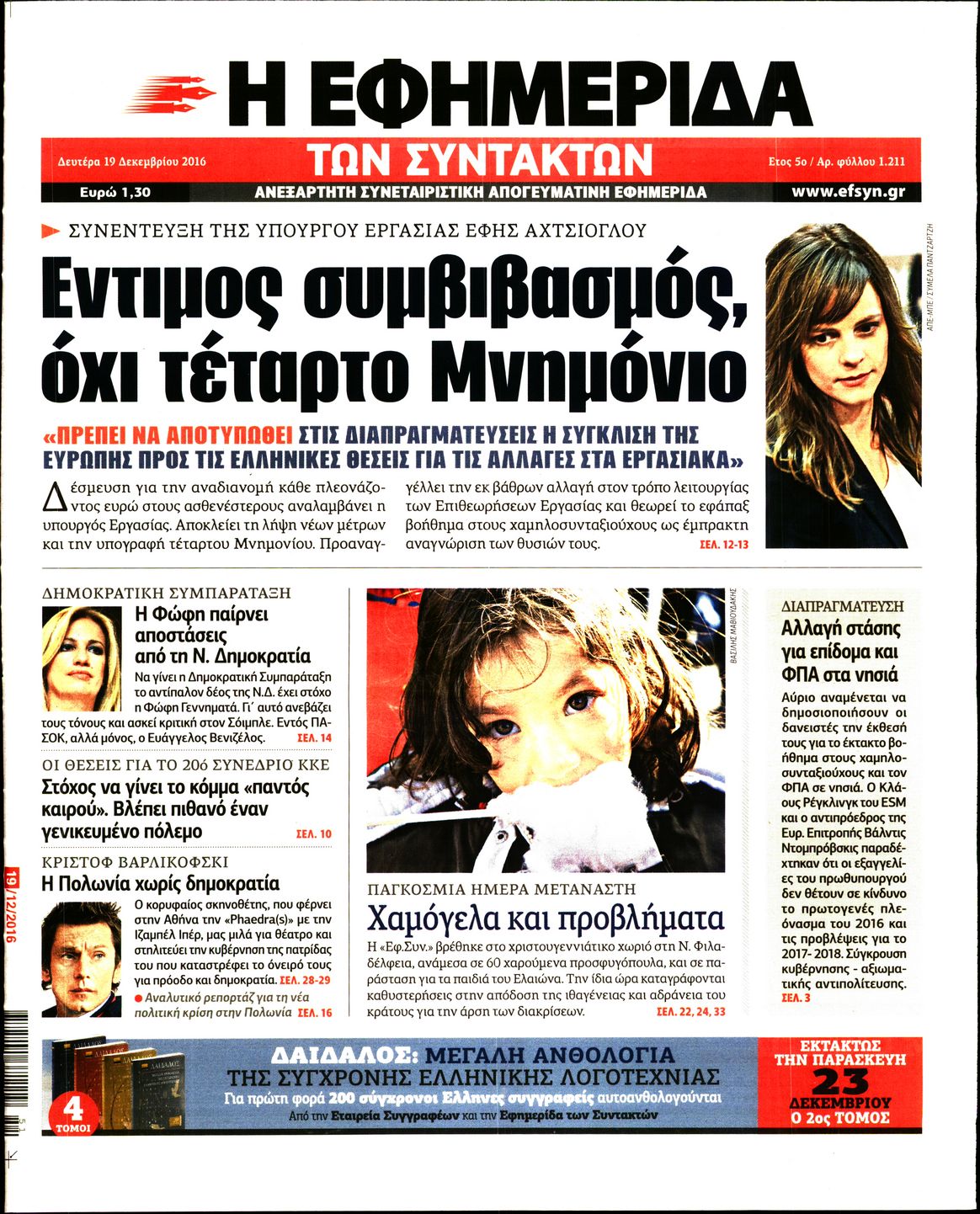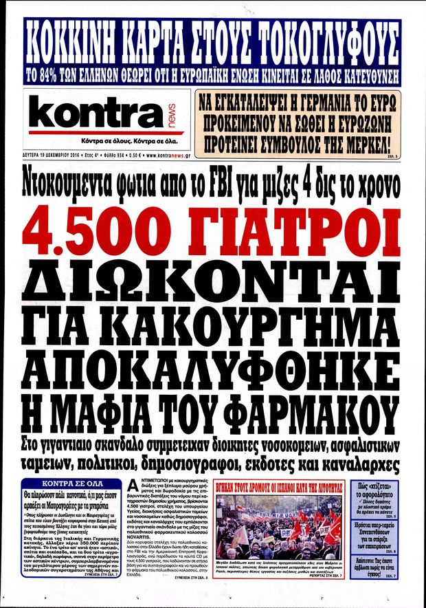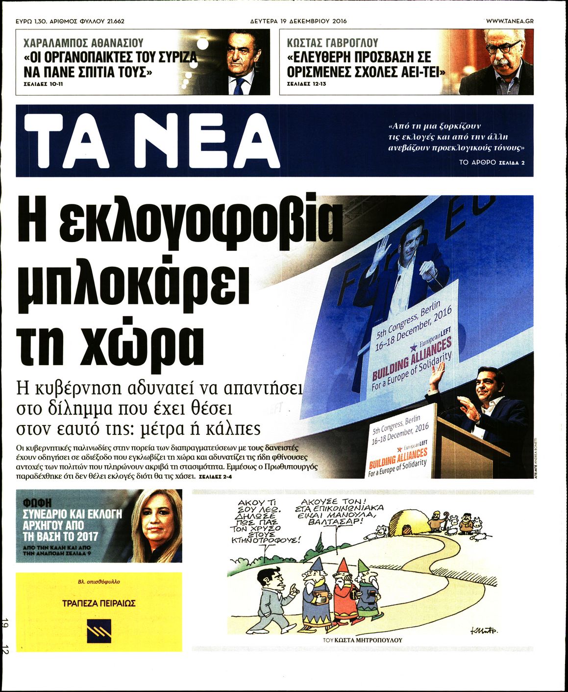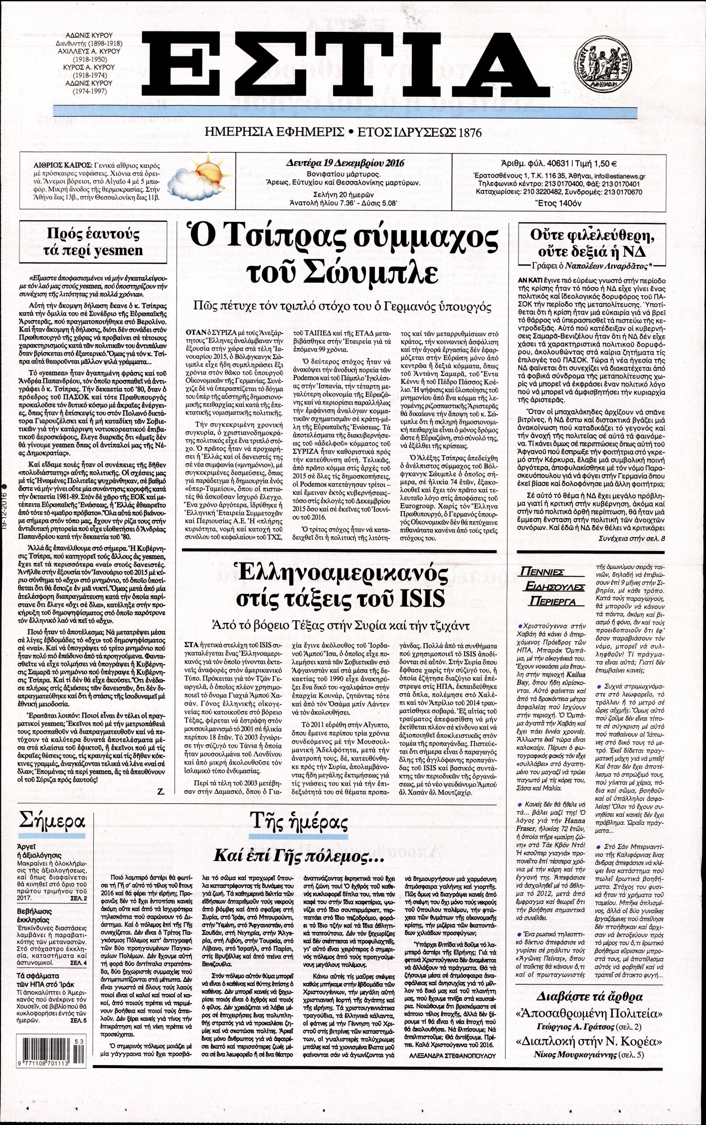 Οι πολιτικές εφημερίδες 19/12/2016 Κώστας Τεό 05:12, Δευτέρα 19 Δεκεμβρίου 2016 Media Διαβάστε τα σημερινά πρωτοσέλιδα των πολιτικών εφημερίδων: ΠΟΛΙΤΙΚΕΣ ΕΦΗΜΕΡΙΔΕΣ ΠΡΩΤΟΣΕΛΙΔΑ Μοιράσου το: σχολίασε κι εσύ (0 σχόλια) Ακολουθήστε το enikos.gr στο Google News και μάθετε πρώτοι όλες τις ειδήσεις Δείτε όλες τις τελευταίες ειδήσεις από την Ελλάδα και τον Κόσμο στο enikos.gr Ειδήσεις Ροή Ειδήσεων 8 ώρες πριν Εκτός ευρωομάδας ΣΥΡΙΖΑ ο Νίκος Παππάς μετά την επίθεση στον δημοσιογράφο Νίκο Γιαννόπουλο – Η μήνυση και οι νέες δηλώσεις 8 ώρες πριν «Αγριεύουν» οι αγρότες: «Δεν συντρέχει λόγος συνάντησης με τον πρωθυπουργό» – Ώρα αποφάσεων στη σύσκεψη της Πέμπτης 8 ώρες πριν Κυψέλη: Χωρίς την οικογένειά της δίπλα της απολογήθηκε η 16χρονη – «Της είχε επιτεθεί κάποιος για να την βιάσει, φοβήθηκε και κυκλοφορούσε με μαχαίρι» 8 ώρες πριν Politico: Το πρόβλημα της Ευρώπης δεν είναι το Βέλγιο αλλά ο Ντόναλντ Τραμπ 10 ώρες πριν Αλεξανδρούπολη: Πολυοργανική ανεπάρκεια λόγω υποσιτισμού η αιτία θανάτου του 3χρονου αγοριού 1 ώρα πριν Καούρα: Το μπαχαρικό που είναι «εξίσου αποτελεσματικό» με την ομεπραζόλη, σύμφωνα με ειδικούς 2 ώρες πριν Τα ζώδια σήμερα, Πέμπτη 18 Δεκεμβρίου: Λέοντες, η καρδιά σας θέλει να εκφραστεί 8 ώρες πριν Μυστήριο με τεράστιες κυκλικές πέτρες 200 κιλών – Ανακαλύφθηκαν τυχαία κατά τη διάρκεια οδικών έργων και κανείς δεν ξέρει από πού προέρχονται 22 ώρες πριν 20 χρόνια τα Χριστούγεννα ξεκινούν στα Public με μεγάλη ποικιλία σε δώρα! 8 λεπτά πριν Επιχειρήσεις: Έρχονται νέα μέτρα φορολογικών ελαφρύνσεων – Τα σχέδια για την προκαταβολή φόρου και το τέλος επιτηδεύματος 16 λεπτά πριν ΗΠΑ: Οριστική άρση κυρώσεων κατά της Συρίας – Ανοίγει ο δρόμος για επενδύσεις 24 λεπτά πριν Οι τελευταίες εξελίξεις στην εμπορική συμφωνία Ευρωπαϊκής Ένωσης – Mercosur 28 λεπτά πριν Ρεκόρ εσόδων για τον Παναμά από τα τέλη διέλευσης της Διώρυγας 32 λεπτά πριν ΔΕΔΔΗΕ: Διακοπές ρεύματος σήμερα (18/12) στην Αθήνα και σε άλλες 11 περιοχές της Αττικής ENIKOS NETWORK Μπορείτε να εντοπίσετε το ποντικάκι που κρύβεται πίσω από όλα τα μανιτάρια; Μόνο όσοι έχουν τα μάτια γερακιού μπορούν να λύ... Το «λουλούδι σκαντζόχοιρος» που μπορεί να ενισχύσει το ανοσοποιητικό, να μειώσει τη φλεγμονή και να ρυθμίσει το σάκχαρο ΕΛΣΤΑΤ: Τι δείχνουν τα νέα στοιχεία για τις ηλεκτρονικές παραγγελίες των επιχειρήσεων ΚΕΠΕ: Οι 3 διακριτές συμβολές των ΜμΕ και της μεταποίησης στην ελληνική οικονομία Χαρτογραφώντας το «σημείο χωρίς επιστροφή»: Για πρώτη φορά αποκαλύπτεται με λεπτομέρεια το ακανθώδες όριο της ατμόσφαιρας τ... Η Google καταργεί τη λειτουργία «dark web report» – Πώς θα μπορούν οι χρήστες να διαγράφουν τα δεδομένα τους περισσότερα 05:48 , Πέμπτη 18 Δεκεμβρίου 2025 Οι οικονομικές εφημερίδες 18/12/2025 Διαβάστε τα πρωτοσέλιδα από τις οικονομικές εφημερίδες, σήμερα 18/12/2025. 05:43 , Πέμπτη 18 Δεκεμβρίου 2025 Οι αθλητικές εφημερίδες 18/12/2025 Διαβάστε τα πρωτοσέλιδα από τις αθλητικές εφημερίδες, σήμερα 18/12/2025. 05:38 , Πέμπτη 18 Δεκεμβρίου 2025 Οι πολιτικές εφημερίδες 18/12/2025 Διαβάστε τα πρωτοσέλιδα από τις πολιτικές εφημερίδες, σήμερα 18/12/2025. 05:22 , Πέμπτη 18 Δεκεμβρίου 2025 Το Ποντίκι σήμερα Πέμπτη 18/12/2025 Διαβάστε το πρωτοσέλιδο της εφημερίδας «Το Ποντίκι» σήμερα 18/12/2025. ΤΕΛΕΥΤΑΙΕΣ ΕΙΔΗΣΕΙΣ 8 λεπτά πριν Επιχειρήσεις: Έρχονται νέα μέτρα φορολογικών... 16 λεπτά πριν ΗΠΑ: Οριστική άρση κυρώσεων κατά της Συρίας – Ανοίγει... 24 λεπτά πριν Οι τελευταίες εξελίξεις στην εμπορική συμφωνία... 28 λεπτ