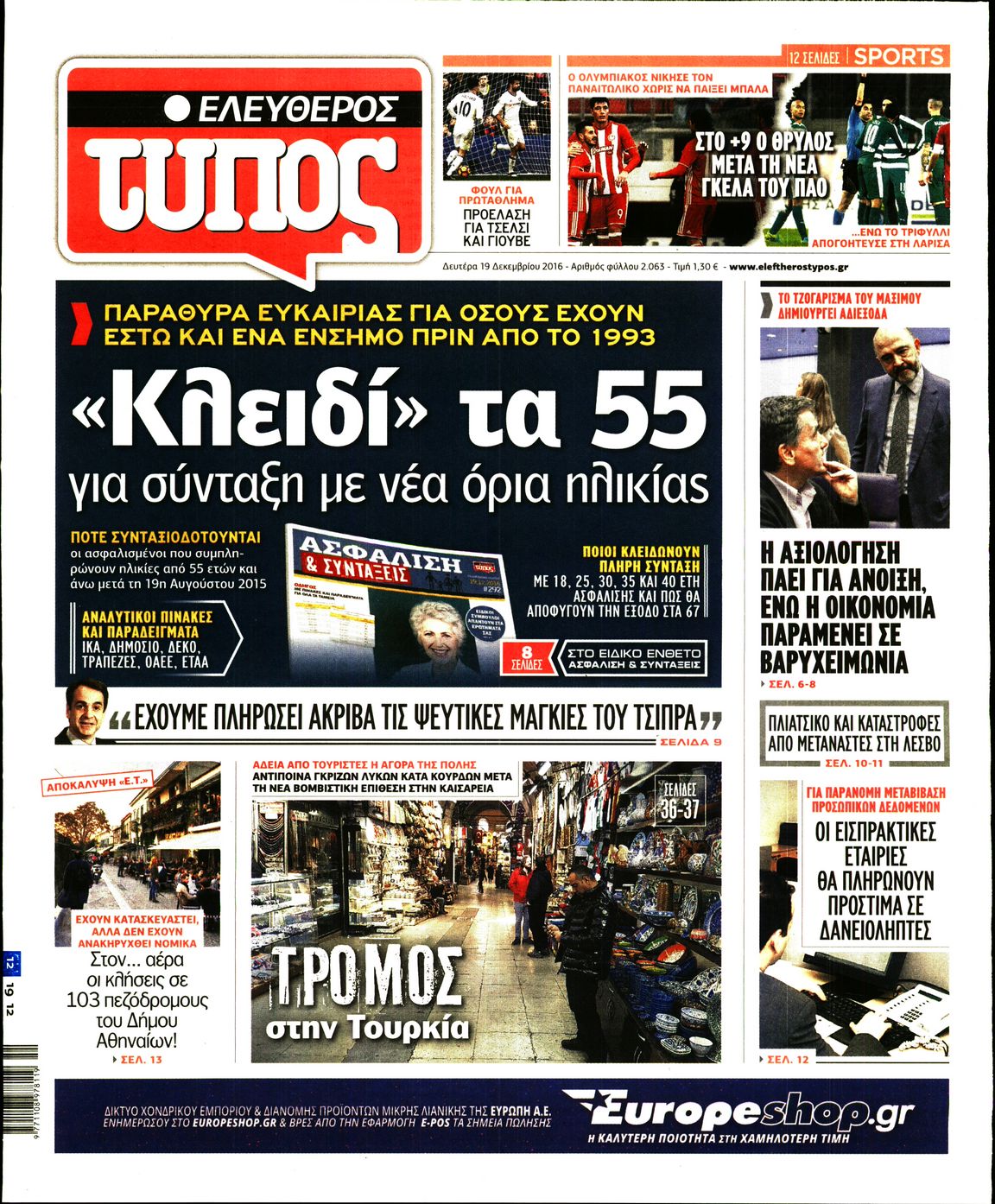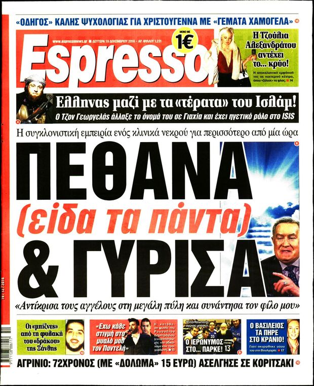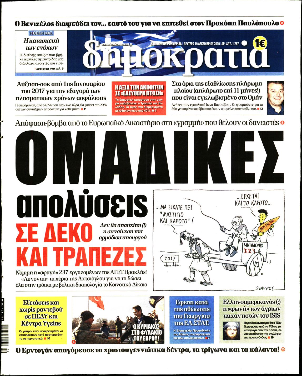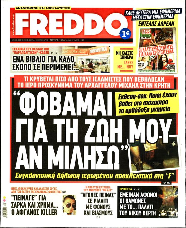 Οι πολιτικές εφημερίδες 19/12/2016 Κώστας Τεό 05:12, Δευτέρα 19 Δεκεμβρίου 2016 Media Διαβάστε τα σημερινά πρωτοσέλιδα των πολιτικών εφημερίδων: ΠΟΛΙΤΙΚΕΣ ΕΦΗΜΕΡΙΔΕΣ ΠΡΩΤΟΣΕΛΙΔΑ Μοιράσου το: σχολίασε κι εσύ (0 σχόλια) Ακολουθήστε το enikos.gr στο Google News και μάθετε πρώτοι όλες τις ειδήσεις Δείτε όλες τις τελευταίες ειδήσεις από την Ελλάδα και τον Κόσμο στο enikos.gr Ειδήσεις Ροή Ειδήσεων 8 ώρες πριν Εκτός ευρωομάδας ΣΥΡΙΖΑ ο Νίκος Παππάς μετά την επίθεση στον δημοσιογράφο Νίκο Γιαννόπουλο – Η μήνυση και οι νέες δηλώσεις 8 ώρες πριν «Αγριεύουν» οι αγρότες: «Δεν συντρέχει λόγος συνάντησης με τον πρωθυπουργό» – Ώρα αποφάσεων στη σύσκεψη της Πέμπτης 8 ώρες πριν Κυψέλη: Χωρίς την οικογένειά της δίπλα της απολογήθηκε η 16χρονη – «Της είχε επιτεθεί κάποιος για να την βιάσει, φοβήθηκε και κυκλοφορούσε με μαχαίρι» 8 ώρες πριν Politico: Το πρόβλημα της Ευρώπης δεν είναι το Βέλγιο αλλά ο Ντόναλντ Τραμπ 10 ώρες πριν Αλεξανδρούπολη: Πολυοργανική ανεπάρκεια λόγω υποσιτισμού η αιτία θανάτου του 3χρονου αγοριού 1 ώρα πριν Καούρα: Το μπαχαρικό που είναι «εξίσου αποτελεσματικό» με την ομεπραζόλη, σύμφωνα με ειδικούς 2 ώρες πριν Τα ζώδια σήμερα, Πέμπτη 18 Δεκεμβρίου: Λέοντες, η καρδιά σας θέλει να εκφραστεί 8 ώρες πριν Μυστήριο με τεράστιες κυκλικές πέτρες 200 κιλών – Ανακαλύφθηκαν τυχαία κατά τη διάρκεια οδικών έργων και κανείς δεν ξέρει από πού προέρχονται 22 ώρες πριν 20 χρόνια τα Χριστούγεννα ξεκινούν στα Public με μεγάλη ποικιλία σε δώρα! 8 λεπτά πριν Επιχειρήσεις: Έρχονται νέα μέτρα φορολογικών ελαφρύνσεων – Τα σχέδια για την προκαταβολή φόρου και το τέλος επιτηδεύματος 16 λεπτά πριν ΗΠΑ: Οριστική άρση κυρώσεων κατά της Συρίας – Ανοίγει ο δρόμος για επενδύσεις 24 λεπτά πριν Οι τελευταίες εξελίξεις στην εμπορική συμφωνία Ευρωπαϊκής Ένωσης – Mercosur 28 λεπτά πριν Ρεκόρ εσόδων για τον Παναμά από τα τέλη διέλευσης της Διώρυγας 32 λεπτά πριν ΔΕΔΔΗΕ: Διακοπές ρεύματος σήμερα (18/12) στην Αθήνα και σε άλλες 11 περιοχές της Αττικής ENIKOS NETWORK Μπορείτε να εντοπίσετε το ποντικάκι που κρύβεται πίσω από όλα τα μανιτάρια; Μόνο όσοι έχουν τα μάτια γερακιού μπορούν να λύ... Το «λουλούδι σκαντζόχοιρος» που μπορεί να ενισχύσει το ανοσοποιητικό, να μειώσει τη φλεγμονή και να ρυθμίσει το σάκχαρο ΕΛΣΤΑΤ: Τι δείχνουν τα νέα στοιχεία για τις ηλεκτρονικές παραγγελίες των επιχειρήσεων ΚΕΠΕ: Οι 3 διακριτές συμβολές των ΜμΕ και της μεταποίησης στην ελληνική οικονομία Χαρτογραφώντας το «σημείο χωρίς επιστροφή»: Για πρώτη φορά αποκαλύπτεται με λεπτομέρεια το ακανθώδες όριο της ατμόσφαιρας τ... Η Google καταργεί τη λειτουργία «dark web report» – Πώς θα μπορούν οι χρήστες να διαγράφουν τα δεδομένα τους περισσότερα 05:48 , Πέμπτη 18 Δεκεμβρίου 2025 Οι οικονομικές εφημερίδες 18/12/2025 Διαβάστε τα πρωτοσέλιδα από τις οικονομικές εφημερίδες, σήμερα 18/12/2025. 05:43 , Πέμπτη 18 Δεκεμβρίου 2025 Οι αθλητικές εφημερίδες 18/12/2025 Διαβάστε τα πρωτοσέλιδα από τις αθλητικές εφημερίδες, σήμερα 18/12/2025. 05:38 , Πέμπτη 18 Δεκεμβρίου 2025 Οι πολιτικές εφημερίδες 18/12/2025 Διαβάστε τα πρωτοσέλιδα από τις πολιτικές εφημερίδες, σήμερα 18/12/2025. 05:22 , Πέμπτη 18 Δεκεμβρίου 2025 Το Ποντίκι σήμερα Πέμπτη 18/12/2025 Διαβάστε το πρωτοσέλιδο της εφημερίδας «Το Ποντίκι» σήμερα 18/12/2025. ΤΕΛΕΥΤΑΙΕΣ ΕΙΔΗΣΕΙΣ 8 λεπτά πριν Επιχειρήσεις: Έρχονται νέα μέτρα φορολογικών... 16 λεπτά πριν ΗΠΑ: Οριστική άρση κυρώσεων κατά της Συρίας – Ανοίγει... 24 λεπτά πριν Οι τελευταίες εξελίξεις στην εμπορική συμφωνία... 28 λεπτ