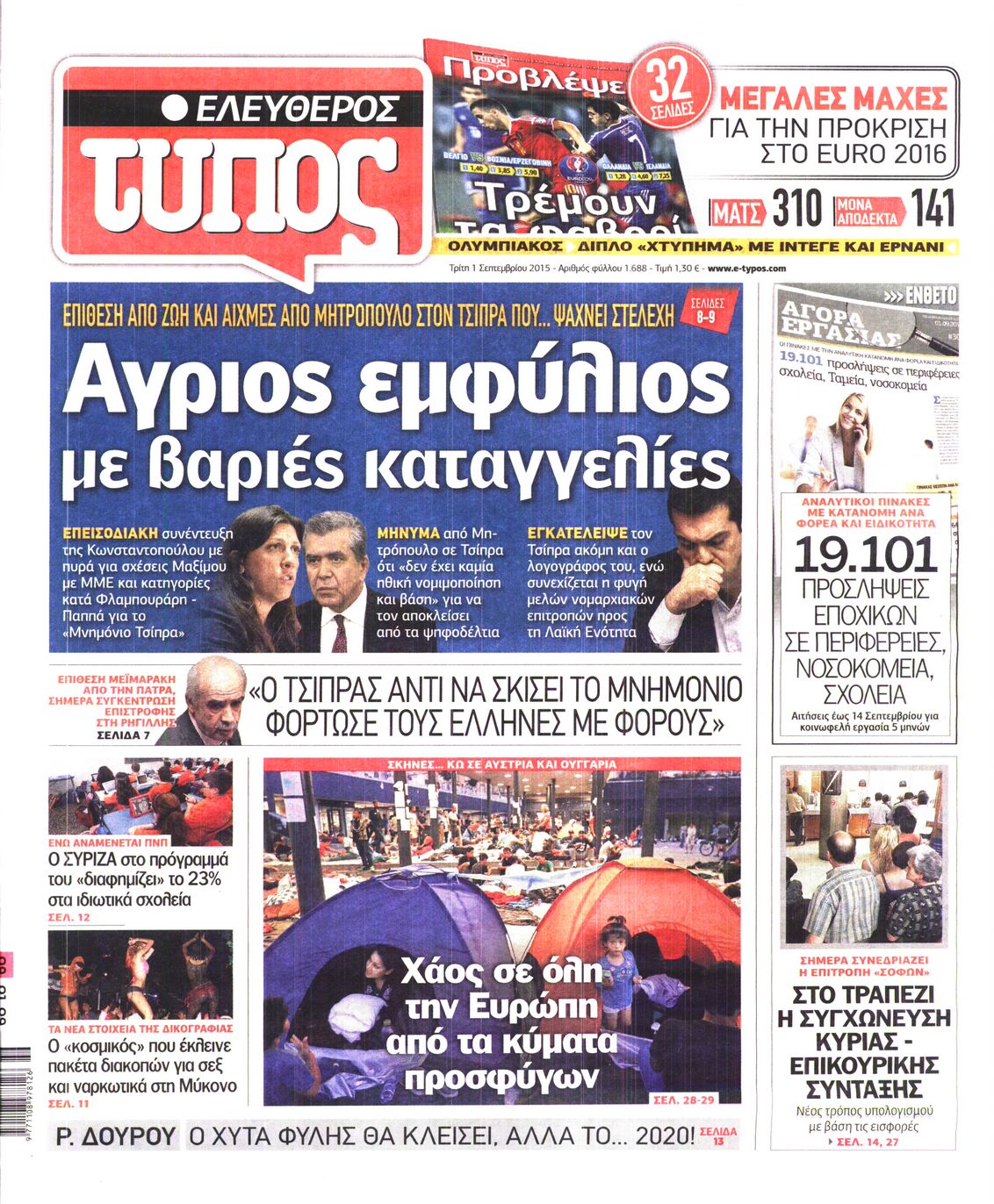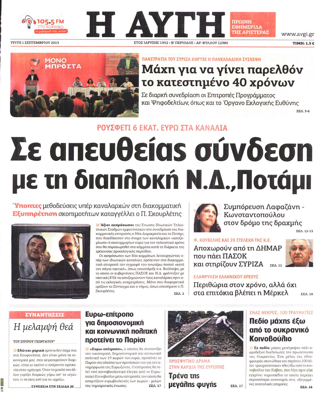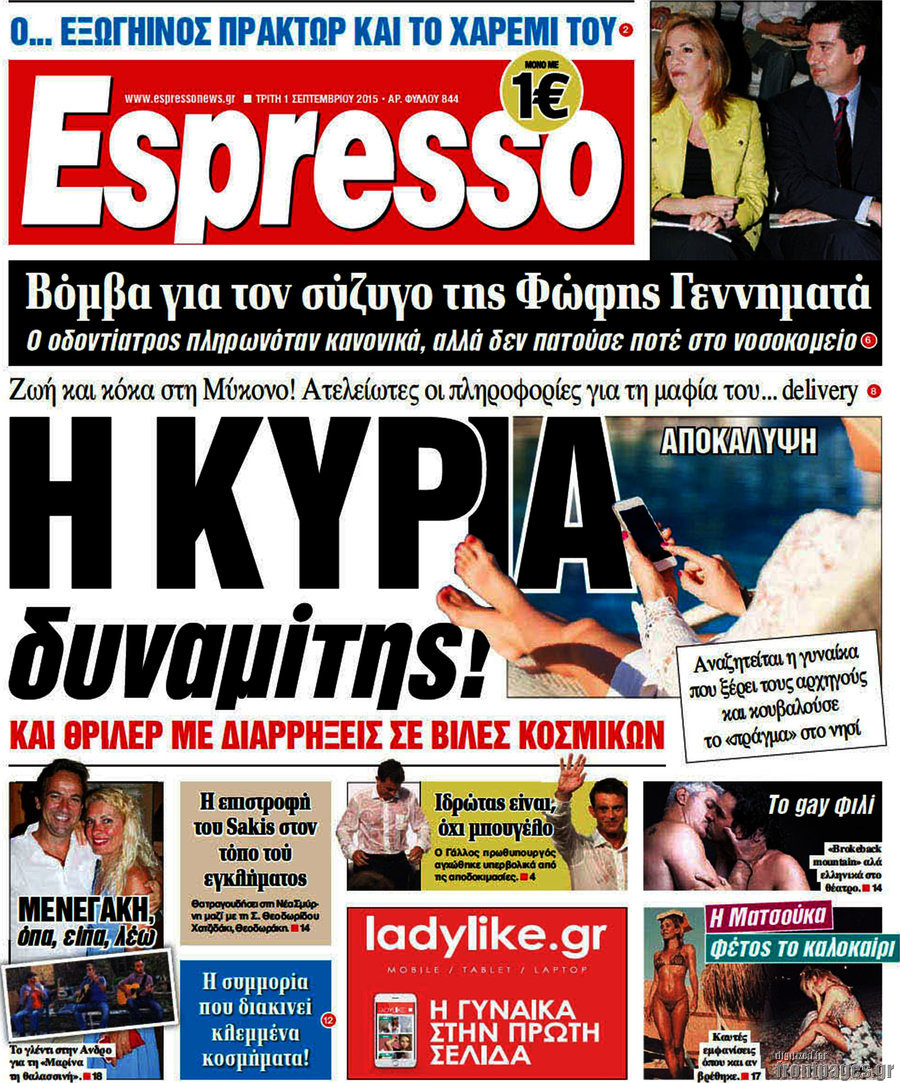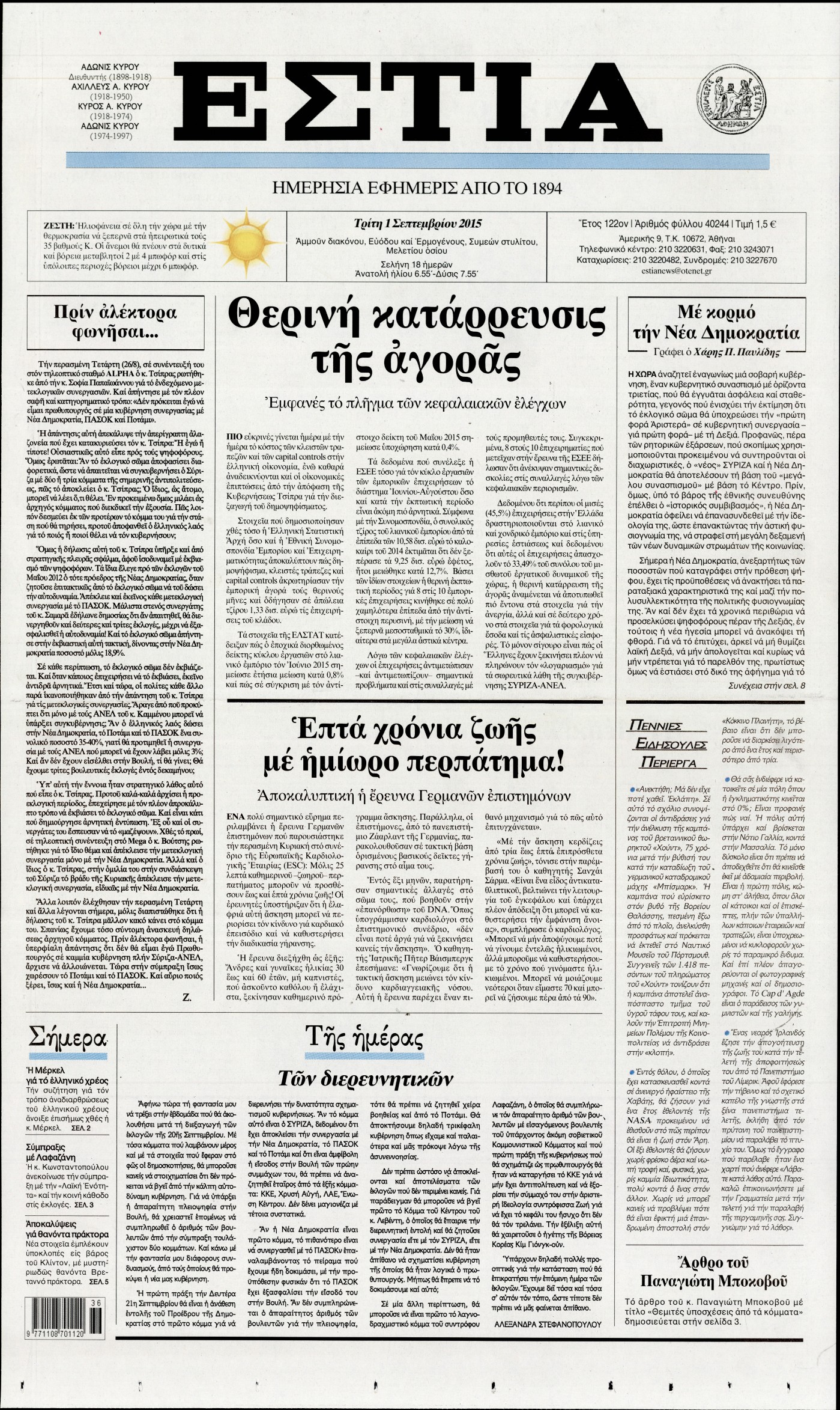 Οι πολιτικές εφημερίδες 1/9/2015 Enikos Newsroom 08:03, Τρίτη 01 Σεπτεμβρίου 2015 Media Διαβάστε τα σημερινά πρωτοσέλιδα των πολιτικών εφημερίδων. ΠΟΛΙΤΙΚΕΣ ΕΦΗΜΕΡΙΔΕΣ ΠΡΩΤΟΣΕΛΙΔΑ Μοιράσου το: σχολίασε κι εσύ (0 σχόλια) Ακολουθήστε το enikos.gr στο Google News και μάθετε πρώτοι όλες τις ειδήσεις Δείτε όλες τις τελευταίες ειδήσεις από την Ελλάδα και τον Κόσμο στο enikos.gr Ειδήσεις Ροή Ειδήσεων 4 ώρες πριν Χριστούγεννα στα μπλόκα: Επιμένουν στις κινητοποιήσεις τους οι αγρότες – Ανοίγουν τα διόδια το Σαββατοκύριακο 5 ώρες πριν Ουκρανία: Η άνευ προηγουμένου επίθεση σε ρωσικό τάνκερ στη Μεσόγειο και το μήνυμα προς στον Πούτιν – Το «μακρύ χέρι» του Κιέβου 4 ώρες πριν Πούτιν: Τα μηνύματα σε Ευρώπη και ΝΑΤΟ από το μαραθώνιο «σόου» του – Η απαίτηση για «σεβασμό» και η ειρήνη «με τους όρους» της Μόσχας 5 ώρες πριν Τραμπ: Δεν αποκλείει την πιθανότητα ενός πολέμου στη Βενεζουέλα – «Ο Μαδούρο ξέρει καλύτερα από τον καθένα τι ακριβώς θέλω» 5 ώρες πριν Συνεχίζει να προκαλεί ο Μίτσκοσκι: «Για μένα το όνομα Μακεδονία είναι ιερό» 4 ώρες πριν Ανακαλύφθηκαν αρχαία χρυσά νομίσματα 2.200 ετών που απεικονίζουν τον θεό Απόλλωνα – Η άγνωστη σύνδεση με τον Φίλιππο Β΄ της Μακεδονίας 5 ώρες πριν Ύπνος: Μια κρυφή κατάσταση του εγκεφάλου πριν από τον ύπνο μπορεί να είναι το “κλειδί” για υψηλή ευφυΐα και δημιουργικότητα 6 ώρες πριν Αριθμολογία: Οι άνθρωποι που έχουν γεννηθεί αυτές τις 4 ημερομηνίες, συχνά παρεξηγούνται – «Η καλοσύνη τους κρύβει τεράστια δύναμη» 7 ώρες πριν Ξεχάστε το καθάρισμα το Σαββατοκύριακο: Ο «κανόνας των 20 λεπτών» που θα σας λύσει τα χέρια 15 λεπτά πριν Θεσσαλονίκη: Εξαφανίστηκε 13χρονος από χώρο φιλοξενίας ασυνόδευτων ανηλίκων στο Ωραιόκαστρο 26 λεπτά πριν Ντόναλντ Τραμπ: «Πολύ βαριά αντίποινα» στη Συρία – «Πλήττουμε πολύ δυνατά οχυρά του Ισλαμικού Κράτους» 40 λεπτά πριν Εξάρχεια: Ένταση με μολότοφ, χημικά και κρότου λάμψης 56 λεπτά πριν ΗΠΑ: Τραγωδία στην Αλαμπάμα – Σκότωσε την δημοσιογράφο σύζυγό του και αυτοκτόνησε μπροστά στον 3χρονο γιο τους 1 ώρα πριν Πρόταση γάμου στο ΣΕΦ κατά την διάρκεια του αγώνα Ολυμπιακός-Βιλερμπάν – Δείτε βίντεο ENIKOS NETWORK Το ΕΚΑΒ τιμήθηκε από την Ακαδημία Αθηνών για τα 40 χρόνια προσφοράς του Έχετε πραγματικά μεγάλη καρδιά; 10 χαρακτηριστικά όσων έχουν καλοσύνη Αναστολή μέτρων αναγκαστικής εκτέλεσης για κτηνοτρόφους που πλήττονται από την ευλογιά των αιγοπροβάτων Πλήρης επάρκεια προϊόντων στις λαϊκές της Αττικής, παρά τις αγροτικές κινητοποιήσεις – Τι απαντούν οι πωλητές Χαρτογραφώντας το «σημείο χωρίς επιστροφή»: Για πρώτη φορά αποκαλύπτεται με λεπτομέρεια το ακανθώδες όριο της ατμόσφαιρας τ... Η Google καταργεί τη λειτουργία «dark web report» – Πώς θα μπορούν οι χρήστες να διαγράφουν τα δεδομένα τους περισσότερα 22:42 , Παρασκευή 19 Δεκεμβρίου 2025 Γιώργος Γιαννόπουλος για “Το σόι σου”: “Είναι ευτυχία και ευλογία αυτή η σειρά” «Είναι ευτυχία και ευλογία η συγκυρία αυτής της σειράς», θα πει ο Γιώργος Γιαννόπουλος -ο αγαπ... 20:37 , Παρασκευή 19 Δεκεμβρίου 2025 Don’t Forget The Lyrics: Η Έλλη Κοκκίνου υποδέχεται 4 παίκτες που θα κάνουν τα πάντα για να μη χάσουν ούτε… μισή λέξη από τους στίχους Το «Don’t Forget The Lyrics» επιστρέφει απόψε, Παρασκευή 19 Δεκεμβρίου, στις 21:00 με νέο επει... 19:31 , Παρασκευή 19 Δεκεμβρίου 2025 GNTM: Απόψε ο μεγάλος τελικός για τους 4 φιναλίστ Έπειτα από μήνες γεμάτους μόδα, δημιουργία και έντονες αναμετρήσεις, το GNTM 2025 κορυφώνεται,... 18:11 , Παρασκευή 19 Δεκεμβρίου 2025 Τ