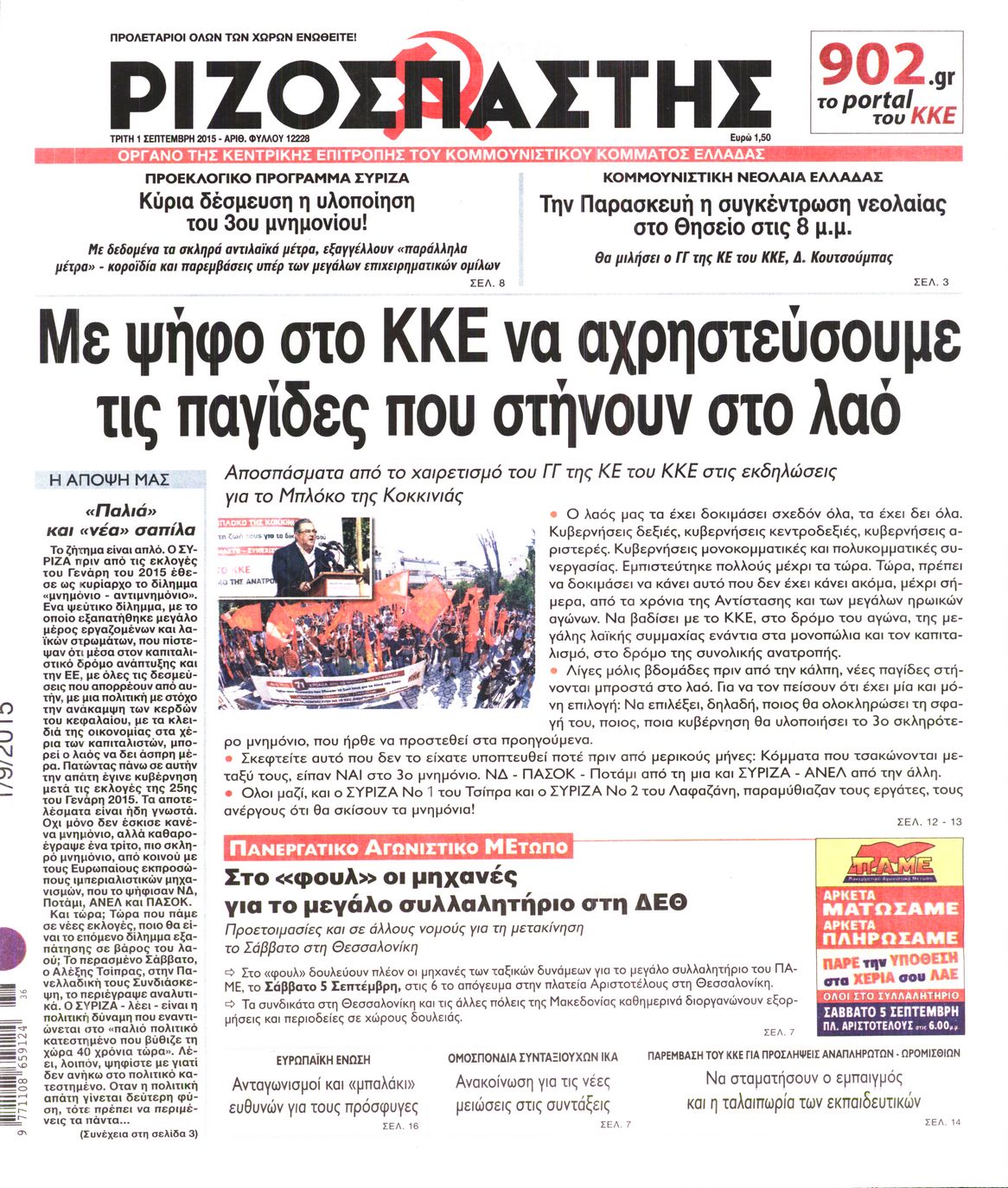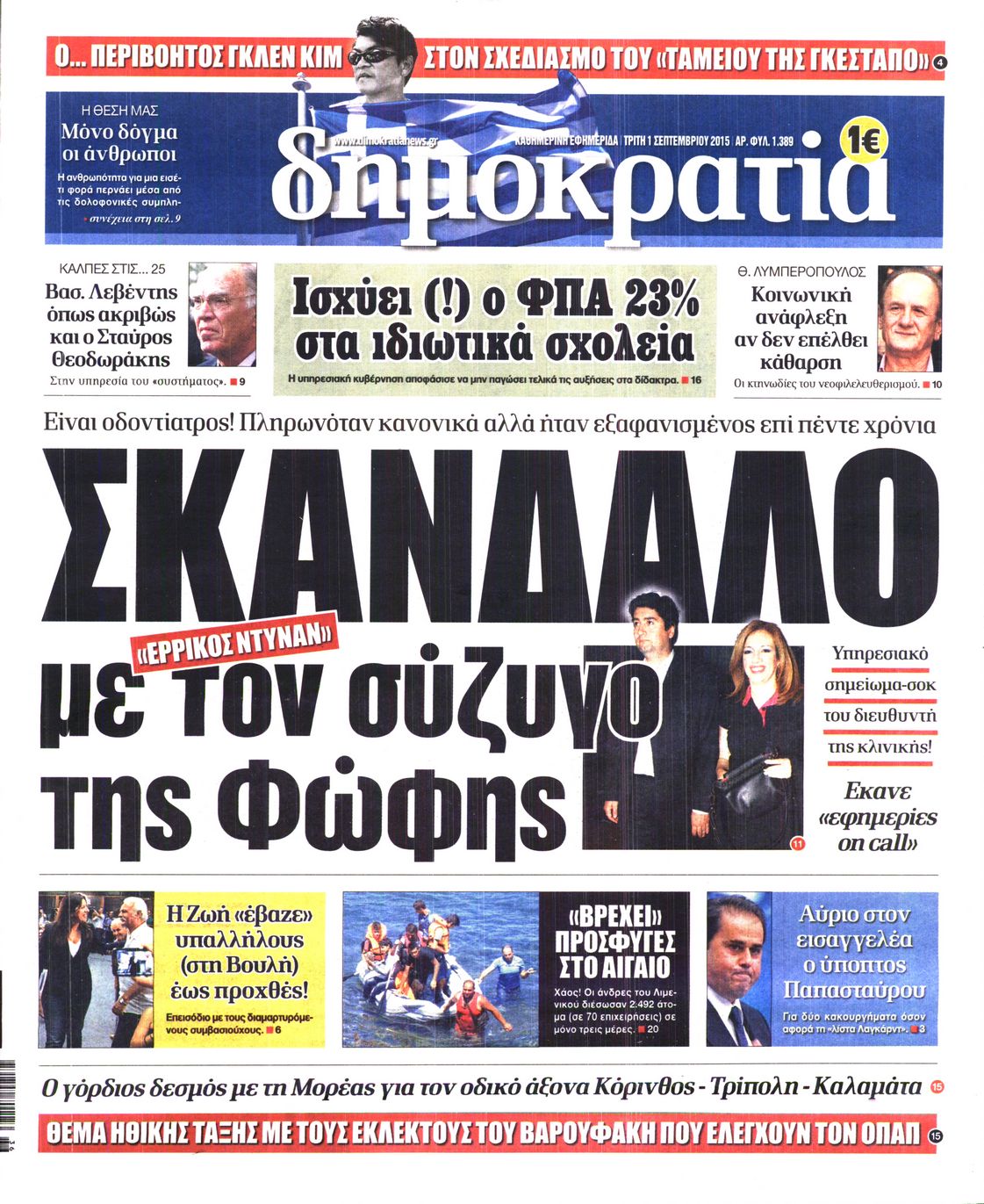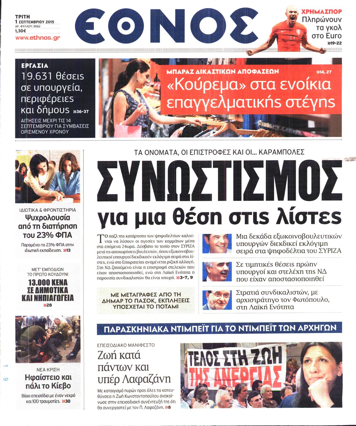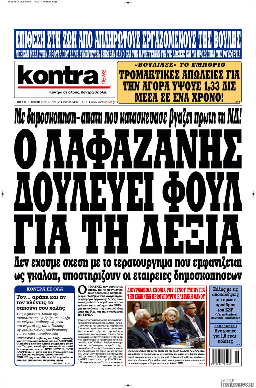 Οι πολιτικές εφημερίδες 1/9/2015 Enikos Newsroom 08:03, Τρίτη 01 Σεπτεμβρίου 2015 Media Διαβάστε τα σημερινά πρωτοσέλιδα των πολιτικών εφημερίδων. ΠΟΛΙΤΙΚΕΣ ΕΦΗΜΕΡΙΔΕΣ ΠΡΩΤΟΣΕΛΙΔΑ Μοιράσου το: σχολίασε κι εσύ (0 σχόλια) Ακολουθήστε το enikos.gr στο Google News και μάθετε πρώτοι όλες τις ειδήσεις Δείτε όλες τις τελευταίες ειδήσεις από την Ελλάδα και τον Κόσμο στο enikos.gr Ειδήσεις Ροή Ειδήσεων 4 ώρες πριν Χριστούγεννα στα μπλόκα: Επιμένουν στις κινητοποιήσεις τους οι αγρότες – Ανοίγουν τα διόδια το Σαββατοκύριακο 5 ώρες πριν Ουκρανία: Η άνευ προηγουμένου επίθεση σε ρωσικό τάνκερ στη Μεσόγειο και το μήνυμα προς στον Πούτιν – Το «μακρύ χέρι» του Κιέβου 4 ώρες πριν Πούτιν: Τα μηνύματα σε Ευρώπη και ΝΑΤΟ από το μαραθώνιο «σόου» του – Η απαίτηση για «σεβασμό» και η ειρήνη «με τους όρους» της Μόσχας 5 ώρες πριν Τραμπ: Δεν αποκλείει την πιθανότητα ενός πολέμου στη Βενεζουέλα – «Ο Μαδούρο ξέρει καλύτερα από τον καθένα τι ακριβώς θέλω» 5 ώρες πριν Συνεχίζει να προκαλεί ο Μίτσκοσκι: «Για μένα το όνομα Μακεδονία είναι ιερό» 4 ώρες πριν Ανακαλύφθηκαν αρχαία χρυσά νομίσματα 2.200 ετών που απεικονίζουν τον θεό Απόλλωνα – Η άγνωστη σύνδεση με τον Φίλιππο Β΄ της Μακεδονίας 5 ώρες πριν Ύπνος: Μια κρυφή κατάσταση του εγκεφάλου πριν από τον ύπνο μπορεί να είναι το “κλειδί” για υψηλή ευφυΐα και δημιουργικότητα 6 ώρες πριν Αριθμολογία: Οι άνθρωποι που έχουν γεννηθεί αυτές τις 4 ημερομηνίες, συχνά παρεξηγούνται – «Η καλοσύνη τους κρύβει τεράστια δύναμη» 7 ώρες πριν Ξεχάστε το καθάρισμα το Σαββατοκύριακο: Ο «κανόνας των 20 λεπτών» που θα σας λύσει τα χέρια 15 λεπτά πριν Θεσσαλονίκη: Εξαφανίστηκε 13χρονος από χώρο φιλοξενίας ασυνόδευτων ανηλίκων στο Ωραιόκαστρο 26 λεπτά πριν Ντόναλντ Τραμπ: «Πολύ βαριά αντίποινα» στη Συρία – «Πλήττουμε πολύ δυνατά οχυρά του Ισλαμικού Κράτους» 40 λεπτά πριν Εξάρχεια: Ένταση με μολότοφ, χημικά και κρότου λάμψης 56 λεπτά πριν ΗΠΑ: Τραγωδία στην Αλαμπάμα – Σκότωσε την δημοσιογράφο σύζυγό του και αυτοκτόνησε μπροστά στον 3χρονο γιο τους 1 ώρα πριν Πρόταση γάμου στο ΣΕΦ κατά την διάρκεια του αγώνα Ολυμπιακός-Βιλερμπάν – Δείτε βίντεο ENIKOS NETWORK Το ΕΚΑΒ τιμήθηκε από την Ακαδημία Αθηνών για τα 40 χρόνια προσφοράς του Έχετε πραγματικά μεγάλη καρδιά; 10 χαρακτηριστικά όσων έχουν καλοσύνη Αναστολή μέτρων αναγκαστικής εκτέλεσης για κτηνοτρόφους που πλήττονται από την ευλογιά των αιγοπροβάτων Πλήρης επάρκεια προϊόντων στις λαϊκές της Αττικής, παρά τις αγροτικές κινητοποιήσεις – Τι απαντούν οι πωλητές Χαρτογραφώντας το «σημείο χωρίς επιστροφή»: Για πρώτη φορά αποκαλύπτεται με λεπτομέρεια το ακανθώδες όριο της ατμόσφαιρας τ... Η Google καταργεί τη λειτουργία «dark web report» – Πώς θα μπορούν οι χρήστες να διαγράφουν τα δεδομένα τους περισσότερα 22:42 , Παρασκευή 19 Δεκεμβρίου 2025 Γιώργος Γιαννόπουλος για “Το σόι σου”: “Είναι ευτυχία και ευλογία αυτή η σειρά” «Είναι ευτυχία και ευλογία η συγκυρία αυτής της σειράς», θα πει ο Γιώργος Γιαννόπουλος -ο αγαπ... 20:37 , Παρασκευή 19 Δεκεμβρίου 2025 Don’t Forget The Lyrics: Η Έλλη Κοκκίνου υποδέχεται 4 παίκτες που θα κάνουν τα πάντα για να μη χάσουν ούτε… μισή λέξη από τους στίχους Το «Don’t Forget The Lyrics» επιστρέφει απόψε, Παρασκευή 19 Δεκεμβρίου, στις 21:00 με νέο επει... 19:31 , Παρασκευή 19 Δεκεμβρίου 2025 GNTM: Απόψε ο μεγάλος τελικός για τους 4 φιναλίστ Έπειτα από μήνες γεμάτους μόδα, δημιουργία και έντονες αναμετρήσεις, το GNTM 2025 κορυφώνεται,... 18:11 , Παρασκευή 19 Δεκεμβρίου 2025 Τ