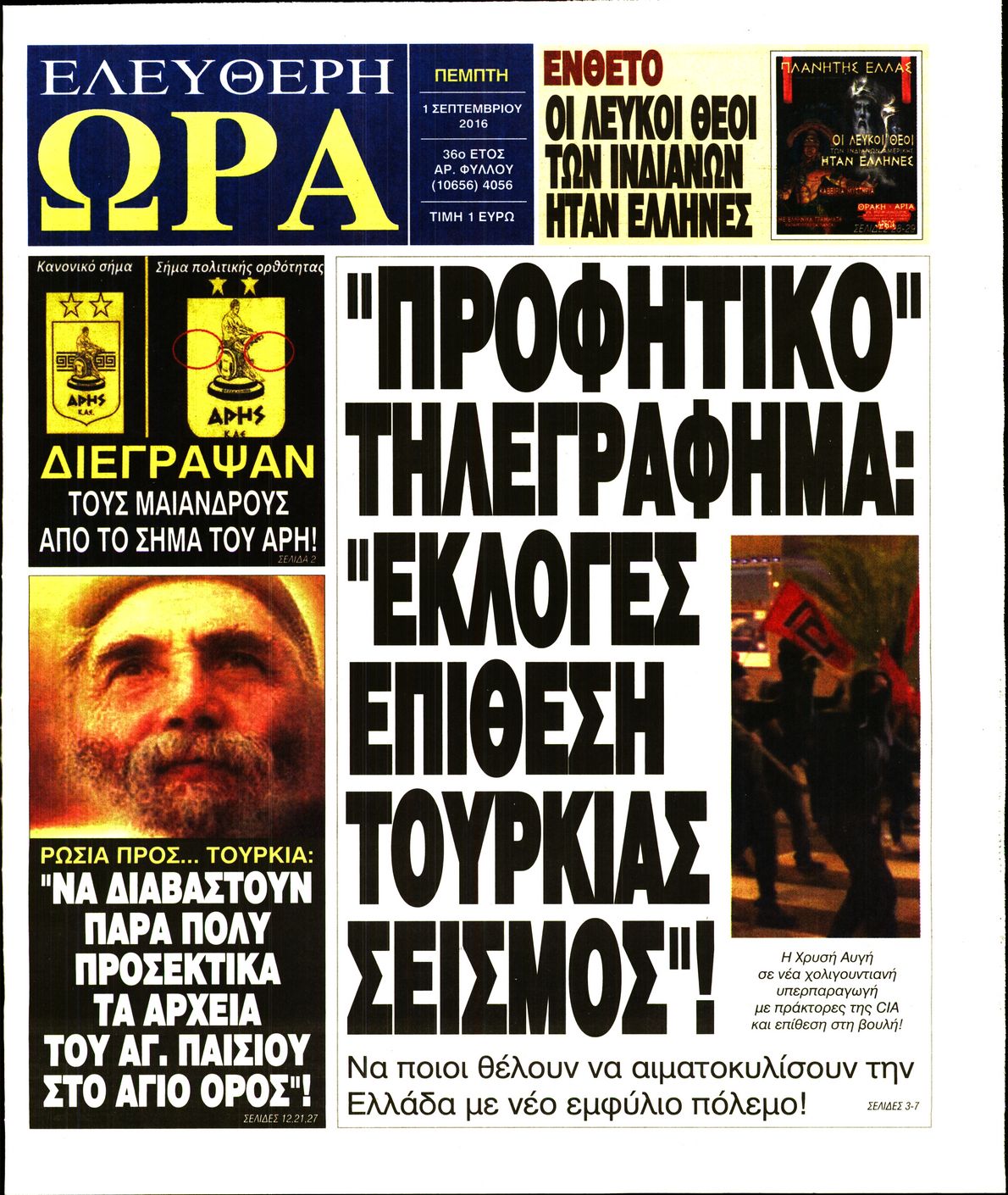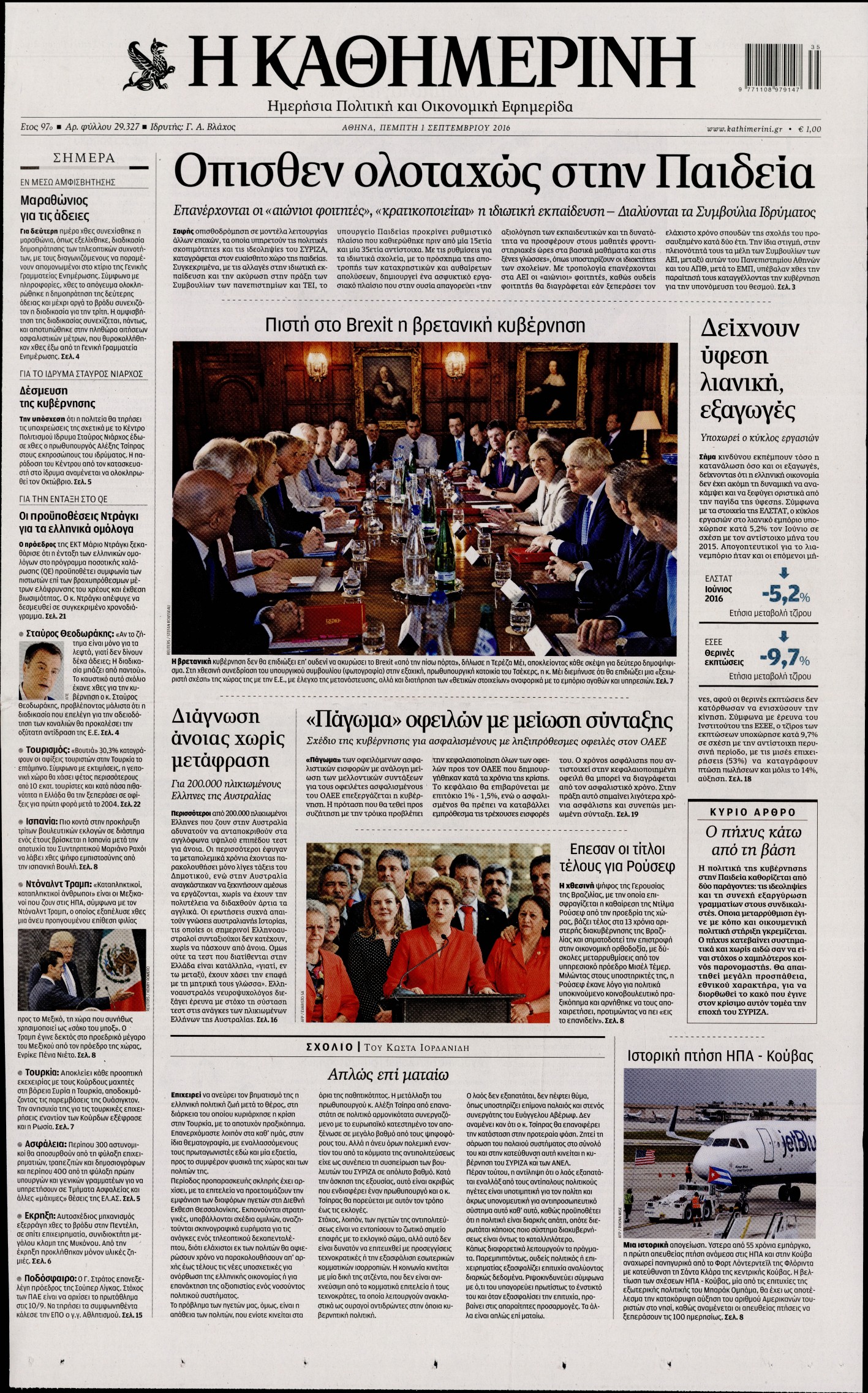 Οι πολιτικές εφημερίδες 1/9/2016 Enikos Newsroom 05:44, Πέμπτη 01 Σεπτεμβρίου 2016 Media Διαβάστε τα σημερινά πρωτοσέλιδα των πολιτικών εφημερίδων: ΠΟΛΙΤΙΚΕΣ ΕΦΗΜΕΡΙΔΕΣ ΠΡΩΤΟΣΕΛΙΔΑ Μοιράσου το: σχολίασε κι εσύ (0 σχόλια) Ακολουθήστε το enikos.gr στο Google News και μάθετε πρώτοι όλες τις ειδήσεις Δείτε όλες τις τελευταίες ειδήσεις από την Ελλάδα και τον Κόσμο στο enikos.gr Ειδήσεις Ροή Ειδήσεων 2 ώρες πριν Αυξάνουν την πίεση προς την κυβέρνηση οι αγρότες: Κλείνουν παρακαμπτήριους και ανοίγουν διόδια – Τι θα γίνει τις γιορτές 1 ώρα πριν ΟΠΕΚΕΠΕ: Προφυλακιστέος ο φερόμενος αρχηγός και ο λογιστής της εγκληματικής οργάνωσης 2 ώρες πριν Φοινικούντα: Το Σάββατο απολογείται ο 30χρονος γιος γνωστού επιχειρηματία της Πλάκας που παραδόθηκε – Όσα είπε στους αστυνομικούς και ο ρόλος του στο έγκλημα 2 ώρες πριν Μπορεί ο Μαδούρο να αντέξει τον αποκλεισμό του Τραμπ; Τι θα χρειαστεί η Ουάσινγκτον για να τον ανατρέψει 3 ώρες πριν Πρίγκιπας Ουίλιαμ – Κέιτ: Η νέα οικογενειακή φωτογραφία για τις Χριστουγεννιάτικες κάρτες του 2025 3 ώρες πριν Ύπνος: Η απλή βραδινή ρουτίνα για να προστατεύσετε τα μαλλιά σας από το κρύο κατά τη διάρκεια του χειμώνα 4 ώρες πριν Manifesting: Πώς να συναντήσετε τον σύντροφο της ζωής σας, ανάλογα με τον μήνα γέννησής σας 2 ημέρες πριν 20 χρόνια τα Χριστούγεννα ξεκινούν στα Public με μεγάλη ποικιλία σε δώρα! 2 ώρες πριν Αρχαιολόγοι ανακάλυψαν ρωμαϊκά τεχνουργήματα από μια πόλη που δεν υπήρξε ποτέ – Τα τρία εντυπωσιακά κτίρια και ο αμφορέας με τις… σαρδέλες 5 λεπτά πριν Σε ομάδες που συνδέονται με το ρωσικό κράτος αποδίδει η Δανία δύο κυβερνοεπιθέσεις που δέχθηκε 20 λεπτά πριν Βαθμολογία UEFA: Η Πολωνία προσπέρασε την Ελλάδα 36 λεπτά πριν Conference League: Οι ομάδες που προκρίθηκαν στους «16» και τα «ζευγαρώματα» στα νοκ άουτ 45 λεπτά πριν ΑΕΚ – Κραϊόβα 3-2: Επική ανατροπή και πρόκριση στους «16» του Conference League η Ένωση 1 ώρα πριν ΟΠΕΚΕΠΕ: Προφυλακιστέος ο φερόμενος αρχηγός και ο λογιστής της εγκληματικής οργάνωσης ENIKOS NETWORK Σε περίοδο αυξημένης δραστηριότητας η γρίπη στην Ελλάδα-Μέτρα προστασίας από τον ΕΟΔΥ Σκέφτεστε συνέχεια συζητήσεις που έχετε κάνει; Τι σημαίνει αυτό, σύμφωνα με ειδικό Στεγαστικό: Τι λέει η ΠΟΜΙΔΑ για τα νέα μέτρα που ανακοίνωσε ο Κυριάκος Μητσοτάκης Λαγκάρντ: Αισιόδοξη για την ανάπτυξη της Ευρωζώνης, αβέβαιη για τον πληθωρισμό Χαρτογραφώντας το «σημείο χωρίς επιστροφή»: Για πρώτη φορά αποκαλύπτεται με λεπτομέρεια το ακανθώδες όριο της ατμόσφαιρας τ... Η Google καταργεί τη λειτουργία «dark web report» – Πώς θα μπορούν οι χρήστες να διαγράφουν τα δεδομένα τους περισσότερα 17:45 , Πέμπτη 18 Δεκεμβρίου 2025 ROUK ZOUK: Εορταστικό επεισόδιο με καλεσμένους τους πρωταγωνιστές του «Γιατί ρε πατέρα» Το Σάββατο 20 Δεκεμβρίου στις 21:00, η Ζέτα Μακρυπούλια υποδέχεται εκλεκτούς ηθοποιούς που όλο... 17:20 , Πέμπτη 18 Δεκεμβρίου 2025 Άγιος έρωτας: Η Χριστίνα εξομολογείται στον πατέρα Νικόλαο, απόψε στις 21:00 στον Alpha Η Νότα αποφασίζει να εκδικηθεί τον Πέτρο και τον Στέφανο, για χάρη του Λούη, όμως τα πράγματα ... 16:50 , Πέμπτη 18 Δεκεμβρίου 2025 Να μ’ αγαπάς: Ζωή και Φωτεινή συμφιλιώνονται ως μάνα με κόρη, απόψε στις 20:00 Η ταυτότητα του Άγγελου αποκαλύπτεται στο νέο επεισόδιο της σειράς “Να μ’ αγαπάς... 15:52 , Πέμπτη 18 Δεκεμβρίου 2025 Το Σπίτι Δίπλα Στο Ποτάμι: Το καθηλωτικό τελευταίο επεισόδιο για το 2025 απόψε στις 22:30 Καθηλώνει το σημερινό επεισόδιο της σειράς “Το Σπίτι Δίπλα Στο Ποτάμι” που έρχεται... ΤΕΛΕΥΤΑΙΕΣ ΕΙΔΗΣΕΙΣ 5 λ