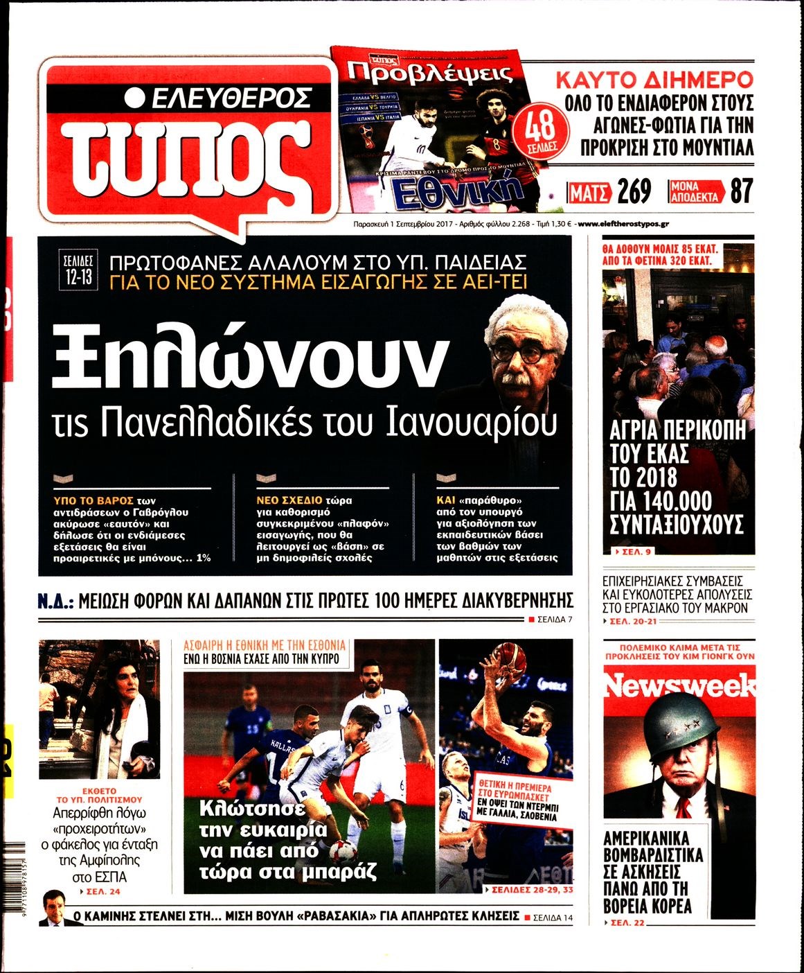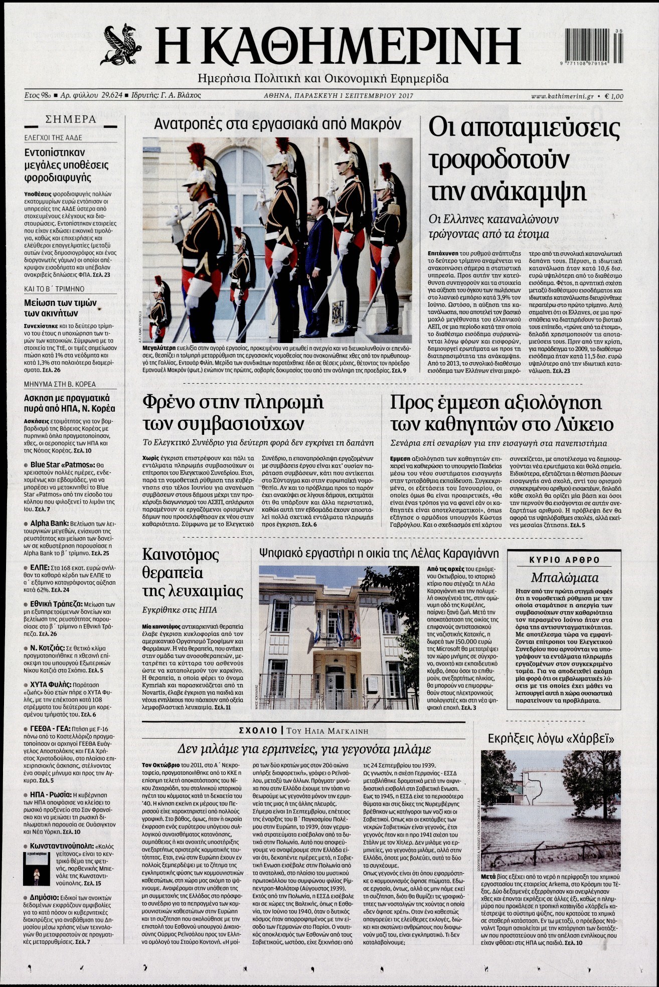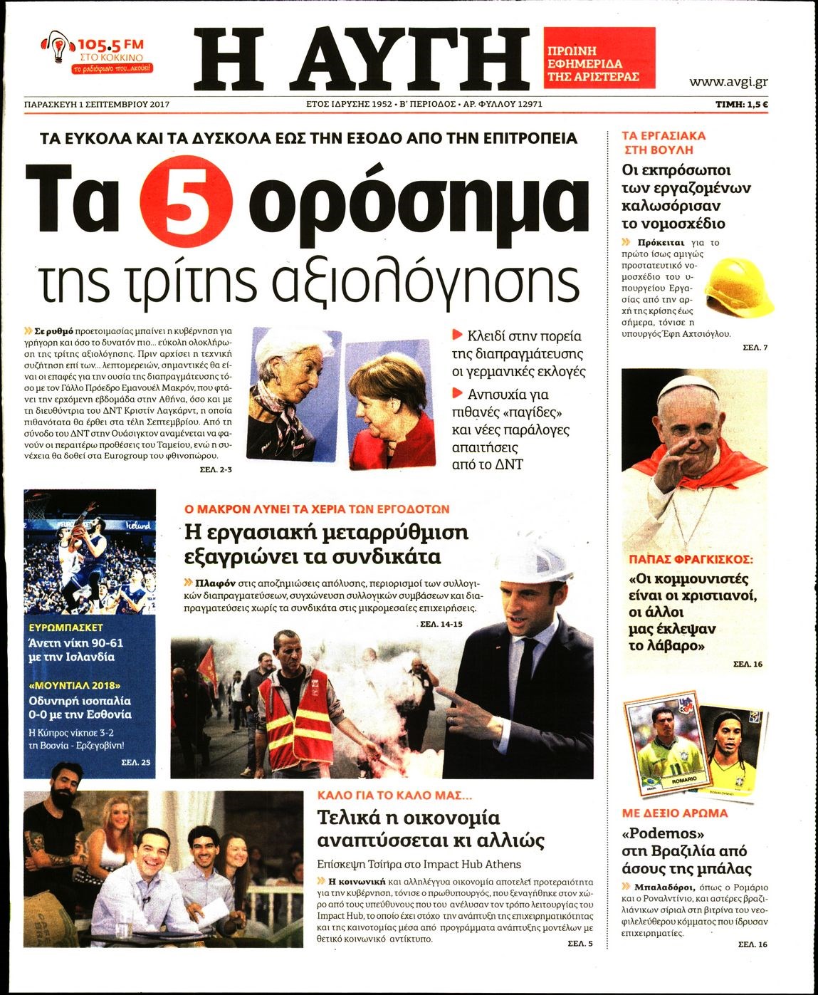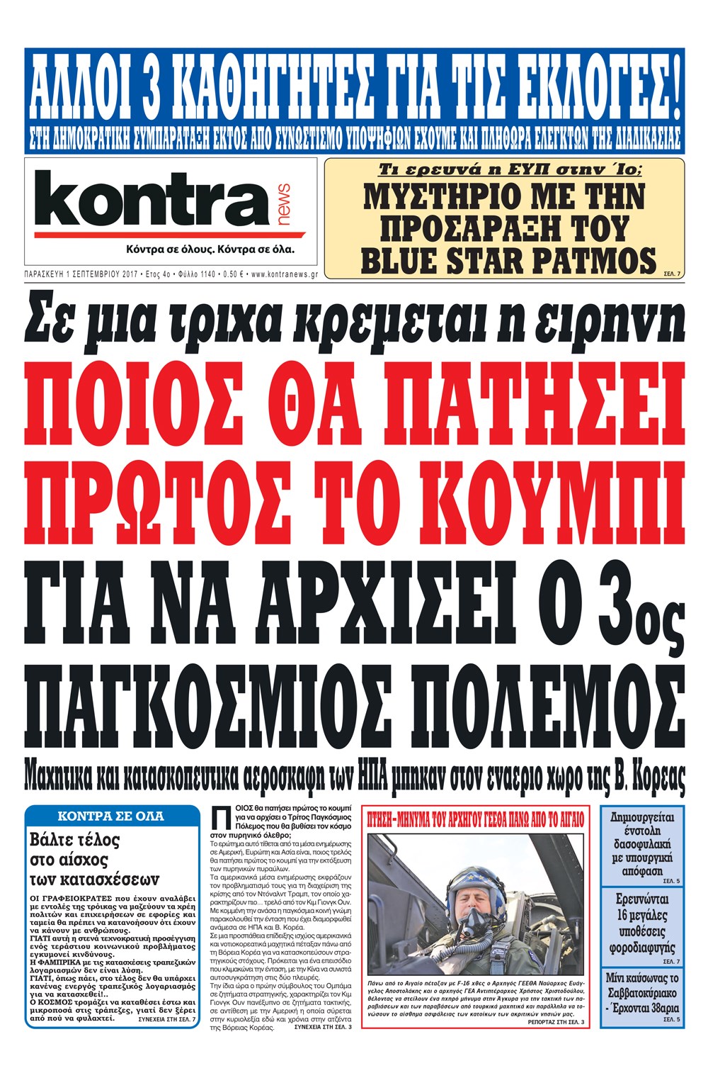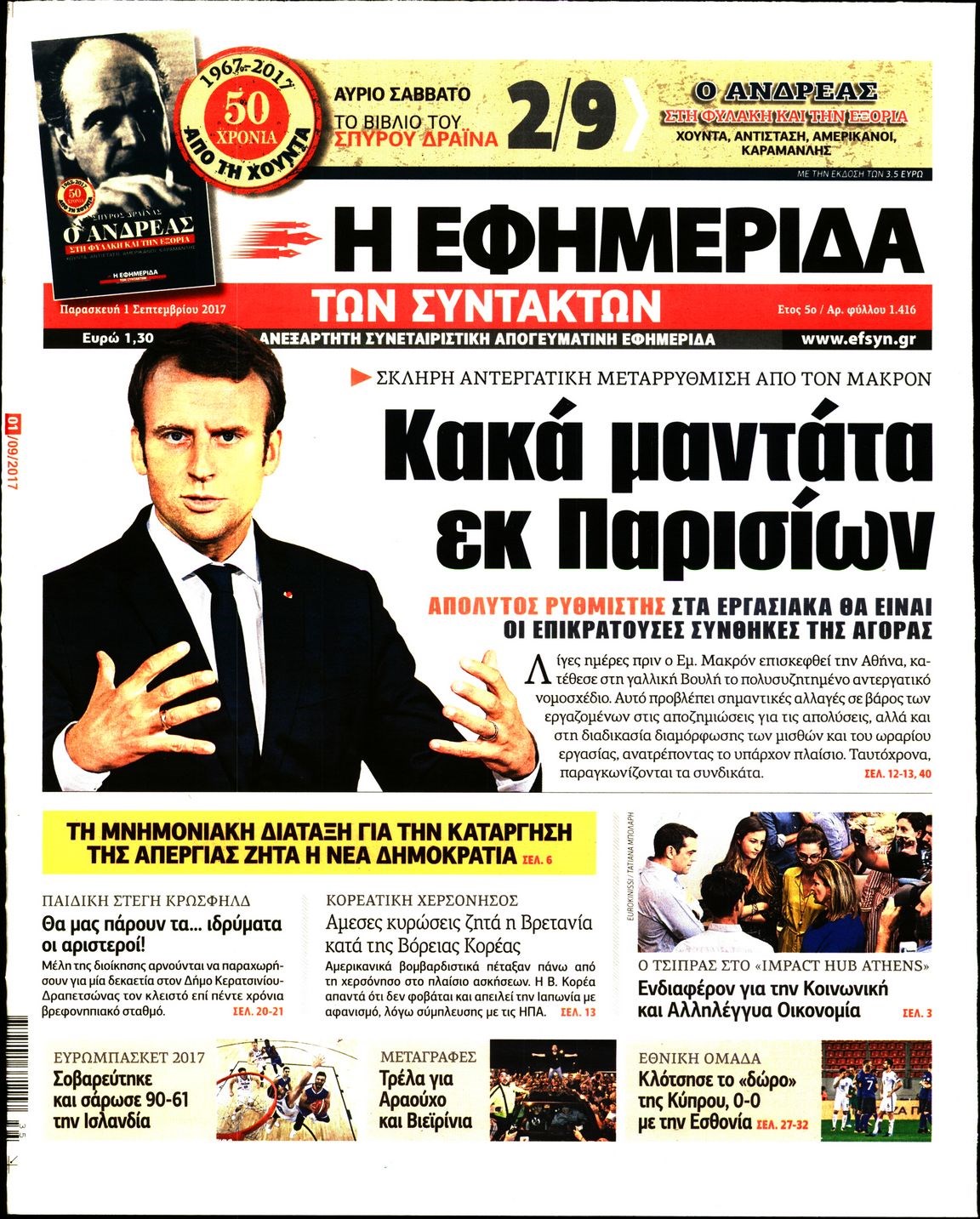 Οι πολιτικές εφημερίδες 1/9/2017 Enikos Newsroom 07:37, Παρασκευή 01 Σεπτεμβρίου 2017 Media Διαβάστε τα σημερινά πρωτοσέλιδα των πολιτικών εφημερίδων: ΠΟΛΙΤΙΚΕΣ ΕΦΗΜΕΡΙΔΕΣ ΠΡΩΤΟΣΕΛΙΔΑ Μοιράσου το: σχολίασε κι εσύ (0 σχόλια) Ακολουθήστε το enikos.gr στο Google News και μάθετε πρώτοι όλες τις ειδήσεις Δείτε όλες τις τελευταίες ειδήσεις από την Ελλάδα και τον Κόσμο στο enikos.gr Ειδήσεις Ροή Ειδήσεων 2 ώρες πριν Χριστούγεννα στα μπλόκα: Επιμένουν στις κινητοποιήσεις τους οι αγρότες – Ανοίγουν τα διόδια το Σαββατοκύριακο 3 ώρες πριν Ουκρανία: Η άνευ προηγουμένου επίθεση σε ρωσικό τάνκερ στη Μεσόγειο και το μήνυμα προς στον Πούτιν – Το «μακρύ χέρι» του Κιέβου 2 ώρες πριν Πούτιν: Τα μηνύματα σε Ευρώπη και ΝΑΤΟ από το μαραθώνιο «σόου» του – Η απαίτηση για «σεβασμό» και η ειρήνη «με τους όρους» της Μόσχας 3 ώρες πριν Τραμπ: Δεν αποκλείει την πιθανότητα ενός πολέμου στη Βενεζουέλα – «Ο Μαδούρο ξέρει καλύτερα από τον καθένα τι ακριβώς θέλω» 4 ώρες πριν Συνεχίζει να προκαλεί ο Μίτσκοσκι: «Για μένα το όνομα Μακεδονία είναι ιερό» 2 ώρες πριν Ανακαλύφθηκαν αρχαία χρυσά νομίσματα 2.200 ετών που απεικονίζουν τον θεό Απόλλωνα – Η άγνωστη σύνδεση με τον Φίλιππο Β΄ της Μακεδονίας 3 ώρες πριν Ύπνος: Μια κρυφή κατάσταση του εγκεφάλου πριν από τον ύπνο μπορεί να είναι το “κλειδί” για υψηλή ευφυΐα και δημιουργικότητα 4 ώρες πριν Αριθμολογία: Οι άνθρωποι που έχουν γεννηθεί αυτές τις 4 ημερομηνίες, συχνά παρεξηγούνται – «Η καλοσύνη τους κρύβει τεράστια δύναμη» 5 ώρες πριν Ξεχάστε το καθάρισμα το Σαββατοκύριακο: Ο «κανόνας των 20 λεπτών» που θα σας λύσει τα χέρια 10 λεπτά πριν Ουκρανία: Ολοκληρώθηκαν οι συνομιλίες με τους Αμερικανούς κι Ευρωπαίους διαπραγματευτές 25 λεπτά πριν Μπαρτσελόνα – Μπασκόνια 134-124: Οι «μπλαουγκράνα» πήραν το ματς της χρονιάς ύστερα από τρεις παρατάσεις 40 λεπτά πριν Φαίη Σκορδά: «Παλιότερα τα κομπλιμέντα τα προσπερνούσα, τώρα τα έχω ανάγκη» 56 λεπτά πριν Βασίλης Σπανούλης: Δεν εμφανίστηκε ούτε ένας δημοσιογράφος στην συνέντευξη Τύπου – «Καλησπέρα στον… κανέναν», δείτε βίντεο 1 ώρα πριν Πόλεμος στην Ουκρανία: Εφτά νεκροί από ρωσική πυραυλική επίθεση στο λιμάνι της Οδησσού ENIKOS NETWORK Το ΕΚΑΒ τιμήθηκε από την Ακαδημία Αθηνών για τα 40 χρόνια προσφοράς του Έχετε πραγματικά μεγάλη καρδιά; 10 χαρακτηριστικά όσων έχουν καλοσύνη Αναστολή μέτρων αναγκαστικής εκτέλεσης για κτηνοτρόφους που πλήττονται από την ευλογιά των αιγοπροβάτων Πλήρης επάρκεια προϊόντων στις λαϊκές της Αττικής, παρά τις αγροτικές κινητοποιήσεις – Τι απαντούν οι πωλητές Χαρτογραφώντας το «σημείο χωρίς επιστροφή»: Για πρώτη φορά αποκαλύπτεται με λεπτομέρεια το ακανθώδες όριο της ατμόσφαιρας τ... Η Google καταργεί τη λειτουργία «dark web report» – Πώς θα μπορούν οι χρήστες να διαγράφουν τα δεδομένα τους περισσότερα 22:42 , Παρασκευή 19 Δεκεμβρίου 2025 Γιώργος Γιαννόπουλος για “Το σόι σου”: “Είναι ευτυχία και ευλογία αυτή η σειρά” «Είναι ευτυχία και ευλογία η συγκυρία αυτής της σειράς», θα πει ο Γιώργος Γιαννόπουλος -ο αγαπ... 20:37 , Παρασκευή 19 Δεκεμβρίου 2025 Don’t Forget The Lyrics: Η Έλλη Κοκκίνου υποδέχεται 4 παίκτες που θα κάνουν τα πάντα για να μη χάσουν ούτε… μισή λέξη από τους στίχους Το «Don’t Forget The Lyrics» επιστρέφει απόψε, Παρασκευή 19 Δεκεμβρίου, στις 21:00 με νέο επει... 19:31 , Παρασκευή 19 Δεκεμβρίου 2025 GNTM: Απόψε ο μεγάλος τελικός για τους 4 φιναλίστ Έπειτα από μήνες γεμάτους μόδα, δημιουργία και έντονες αναμετρήσεις, το GNTM 2025 κορυφώνετ