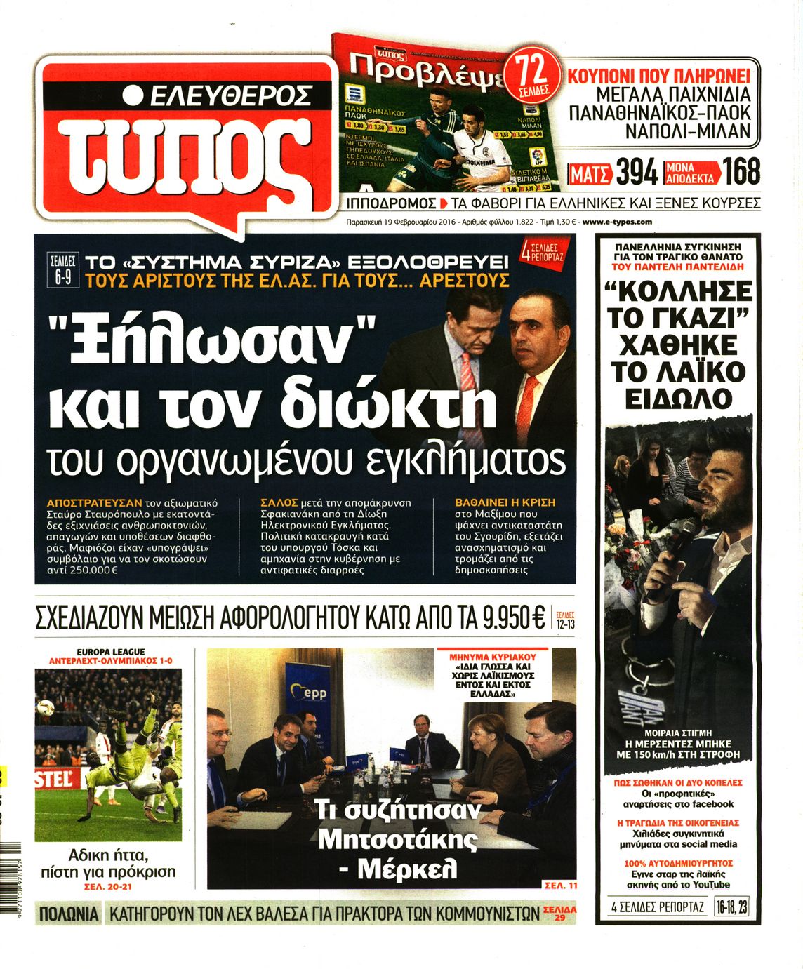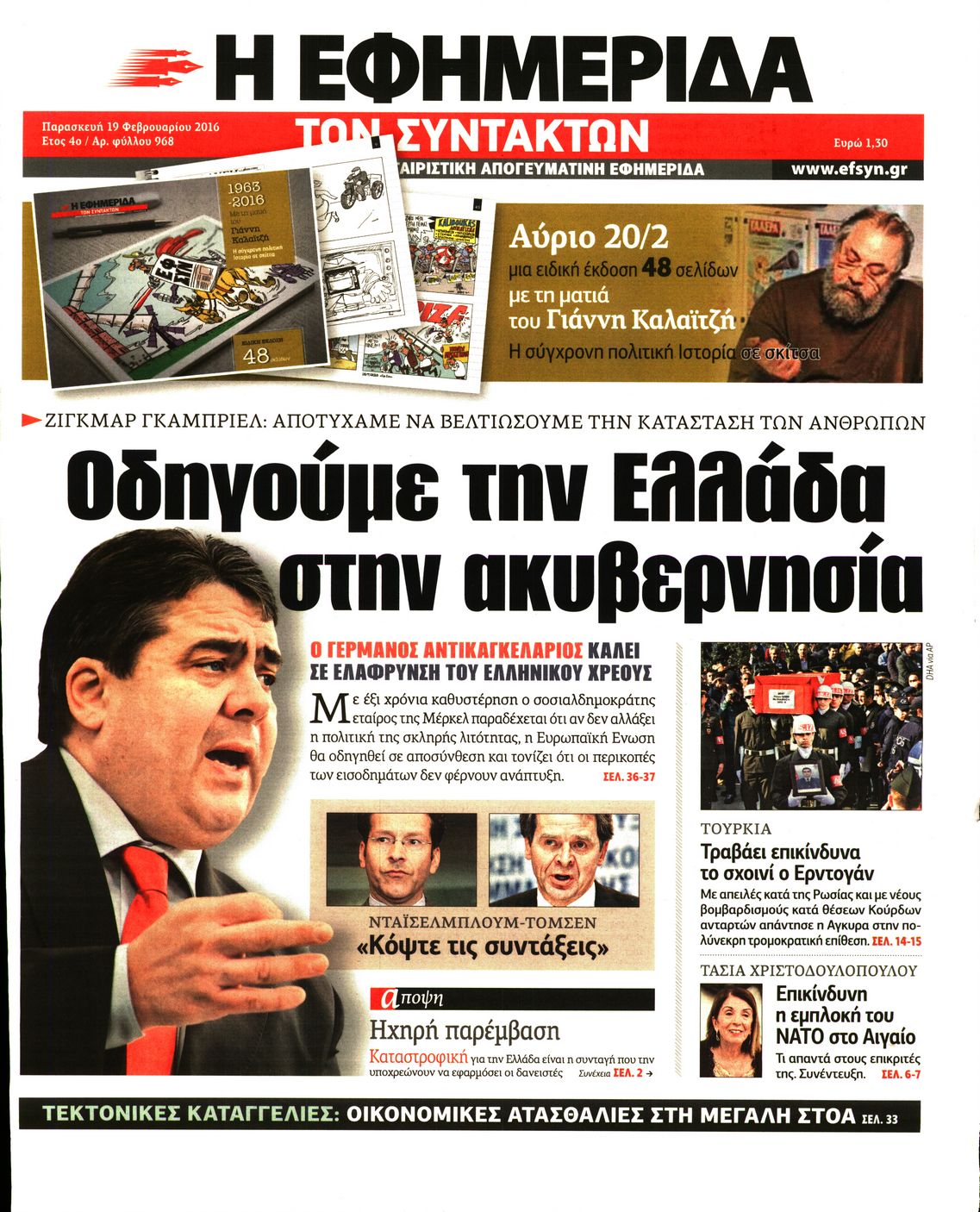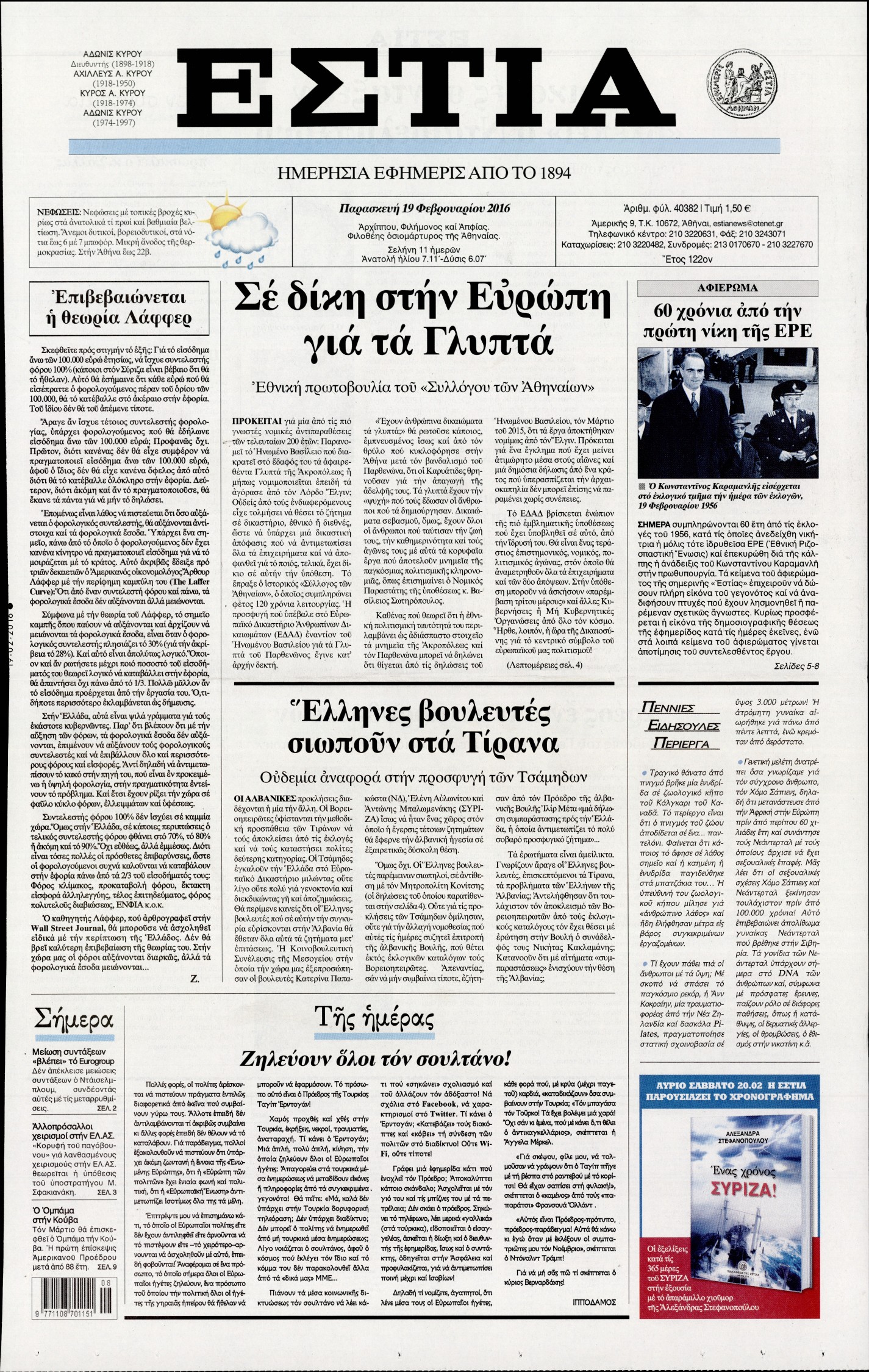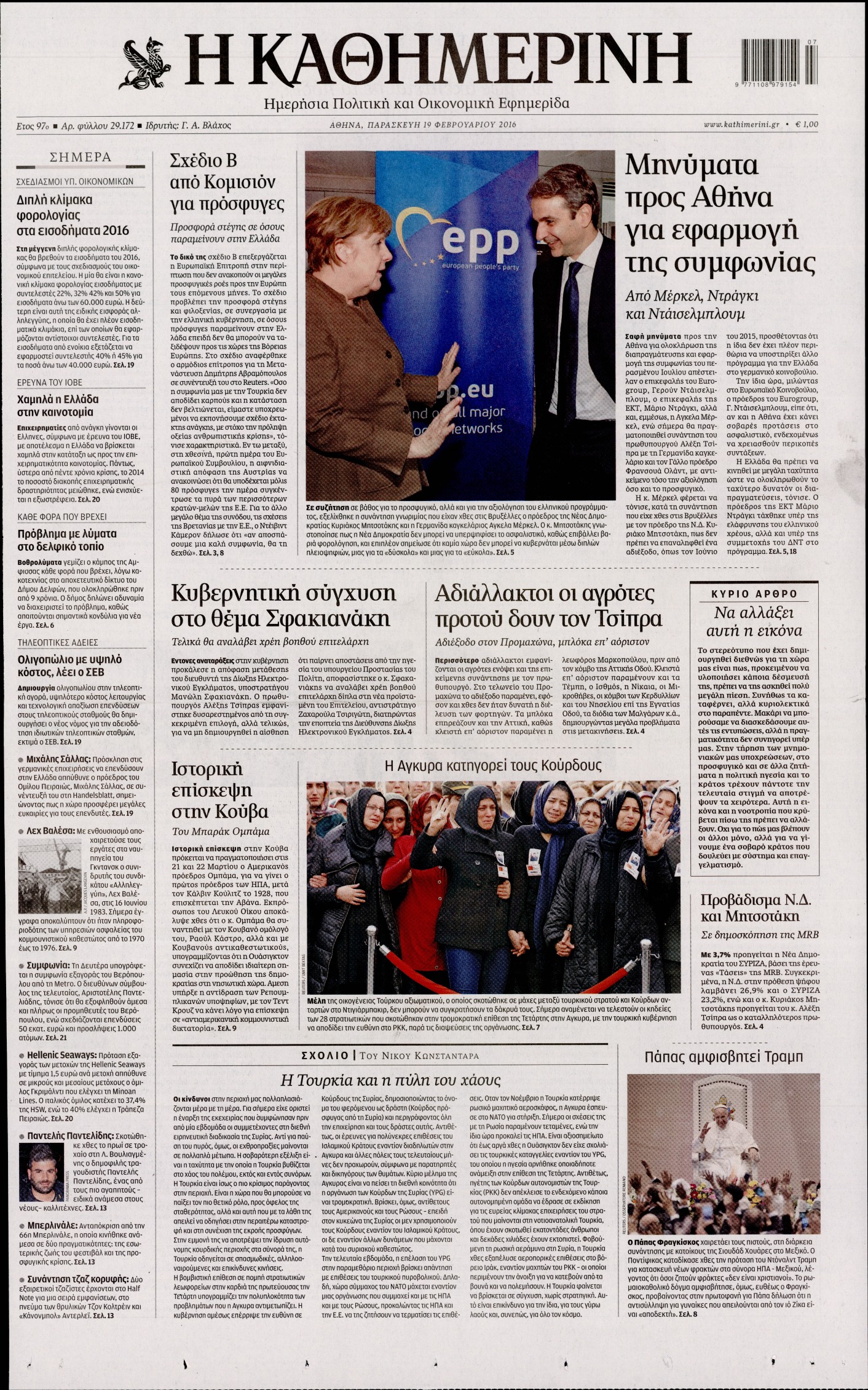 Oι πολιτικές εφημερίδες 19/2/2016 Enikos Newsroom 05:58, Παρασκευή 19 Φεβρουαρίου 2016 Media Διαβάστε τα σημερινά πρωτοσέλιδα των πολιτικών εφημερίδων: ΠΟΛΙΤΙΚΕΣ ΕΦΗΜΕΡΙΔΕΣ ΠΡΩΤΟΣΕΛΙΔΑ Μοιράσου το: σχολίασε κι εσύ (0 σχόλια) Ακολουθήστε το enikos.gr στο Google News και μάθετε πρώτοι όλες τις ειδήσεις Δείτε όλες τις τελευταίες ειδήσεις από την Ελλάδα και τον Κόσμο στο enikos.gr Ειδήσεις Ροή Ειδήσεων 8 ώρες πριν Χριστούγεννα στα μπλόκα: Επιμένουν στις κινητοποιήσεις τους οι αγρότες – Ανοίγουν τα διόδια το Σαββατοκύριακο 8 ώρες πριν Ουκρανία: Η άνευ προηγουμένου επίθεση σε ρωσικό τάνκερ στη Μεσόγειο και το μήνυμα προς στον Πούτιν – Το «μακρύ χέρι» του Κιέβου 7 ώρες πριν Πούτιν: Τα μηνύματα σε Ευρώπη και ΝΑΤΟ από το μαραθώνιο «σόου» του – Η απαίτηση για «σεβασμό» και η ειρήνη «με τους όρους» της Μόσχας 7 ώρες πριν ΗΠΑ: Η κυβέρνηση του Ντόναλντ Τραμπ άρχισε να δημοσιοποιεί τα αρχεία Έπσταϊν 7 ώρες πριν Άνω Λιόσια: Πυροβολισμοί σε επιχείρηση με χαλιά – Εντοπίστηκαν 10 κάλυκες 30 λεπτά πριν Αυγά: Πόσα μπορείτε να τρώτε την ημέρα με ασφάλεια για μέγιστη πρόσληψη πρωτεΐνης 59 λεπτά πριν Τα ζώδια σήμερα, Σάββατο 20 Δεκεμβρίου: Παρθένοι, το σύμπαν σας δίνει το κλειδί 7 ώρες πριν Ανακαλύφθηκαν αρχαία χρυσά νομίσματα 2.200 ετών που απεικονίζουν τον θεό Απόλλωνα – Η άγνωστη σύνδεση με τον Φίλιππο Β΄ της Μακεδονίας 8 ώρες πριν Ύπνος: Μια κρυφή κατάσταση του εγκεφάλου πριν από τον ύπνο μπορεί να είναι το “κλειδί” για υψηλή ευφυΐα και δημιουργικότητα 6 λεπτά πριν Κολομβία: Είκοσι χρόνια κάθειρξη σε πρώην ανώτερο αξιωματικό για 72 εκτελέσεις αμάχων 14 λεπτά πριν Οπτική ψευδαίσθηση: Μόνο αν είσαι ο Σέρλοκ Χολμς θα βρεις τον αριθμό «87» σε 7 δευτερόλεπτα 21 λεπτά πριν Σαρωτικοί οι έλεγχοι στους δρόμους ενόψει εορτών – Μπλόκα της τροχαίας σε κεντρικές αρτηρίες της Αττικής 30 λεπτά πριν Αυγά: Πόσα μπορείτε να τρώτε την ημέρα με ασφάλεια για μέγιστη πρόσληψη πρωτεΐνης 36 λεπτά πριν Σαν σήμερα 20 Δεκεμβρίου: Τα σημαντικότερα γεγονότα της ημέρας ENIKOS NETWORK Το ΕΚΑΒ τιμήθηκε από την Ακαδημία Αθηνών για τα 40 χρόνια προσφοράς του Έχετε πραγματικά μεγάλη καρδιά; 10 χαρακτηριστικά όσων έχουν καλοσύνη Αναστολή μέτρων αναγκαστικής εκτέλεσης για κτηνοτρόφους που πλήττονται από την ευλογιά των αιγοπροβάτων Πλήρης επάρκεια προϊόντων στις λαϊκές της Αττικής, παρά τις αγροτικές κινητοποιήσεις – Τι απαντούν οι πωλητές Χαρτογραφώντας το «σημείο χωρίς επιστροφή»: Για πρώτη φορά αποκαλύπτεται με λεπτομέρεια το ακανθώδες όριο της ατμόσφαιρας τ... Η Google καταργεί τη λειτουργία «dark web report» – Πώς θα μπορούν οι χρήστες να διαγράφουν τα δεδομένα τους περισσότερα 05:48 , Σάββατο 20 Δεκεμβρίου 2025 Οι οικονομικές εφημερίδες 20/12/2025 Διαβάστε τα πρωτοσέλιδα από τις οικονομικές εφημερίδες, σήμερα 20/12/2025. 05:43 , Σάββατο 20 Δεκεμβρίου 2025 Οι αθλητικές εφημερίδες 20/12/2025 Διαβάστε τα πρωτοσέλιδα από τις αθλητικές εφημερίδες, σήμερα 20/12/2025. 05:38 , Σάββατο 20 Δεκεμβρίου 2025 Οι πολιτικές εφημερίδες 20/12/2025 Διαβάστε τα πρωτοσέλιδα από τις πολιτικές εφημερίδες, σήμερα 20/12/2025. 04:20 , Σάββατο 20 Δεκεμβρίου 2025 Αγγελική Νικολούλη: Τα συλλυπητήρια για την απώλεια της Ειρήνης Μαρινάκη Τα συλληπητήρια στον πρόεδρο του Mega, τον Βαγγέλη Μαρινάκη, για την απώλεια της μητέρας του Ε... ΤΕΛΕΥΤΑΙΕΣ ΕΙΔΗΣΕΙΣ 6 λεπτά πριν Κολομβία: Είκοσι χρόνια κάθειρξη σε πρώην ανώτερο... 14 λεπτά πριν Οπτική ψευδαίσθηση: Μόνο αν είσαι ο Σέρλοκ Χολμς θα... 21 λεπτά πριν Σαρωτικοί οι έλεγχοι στους δ