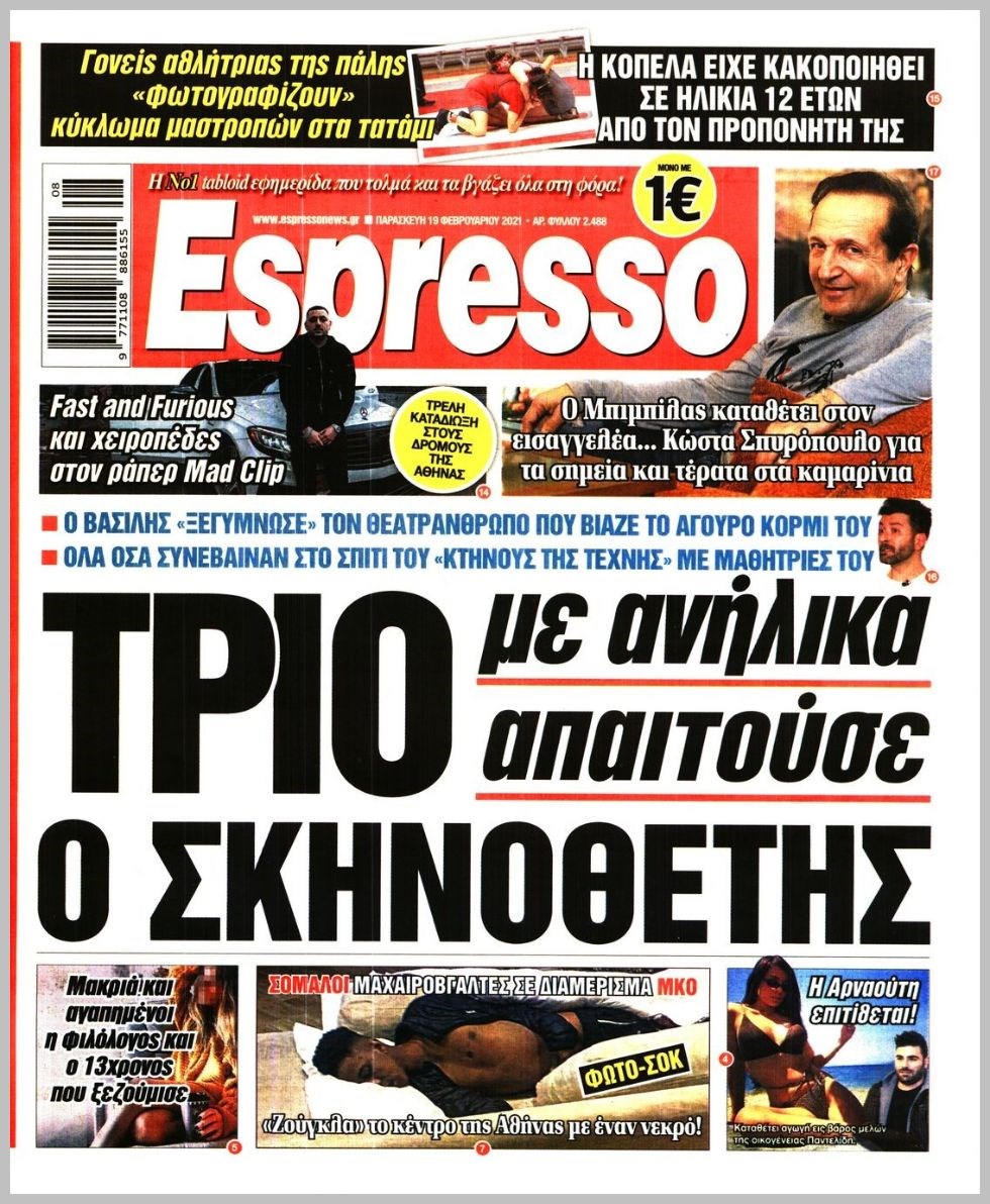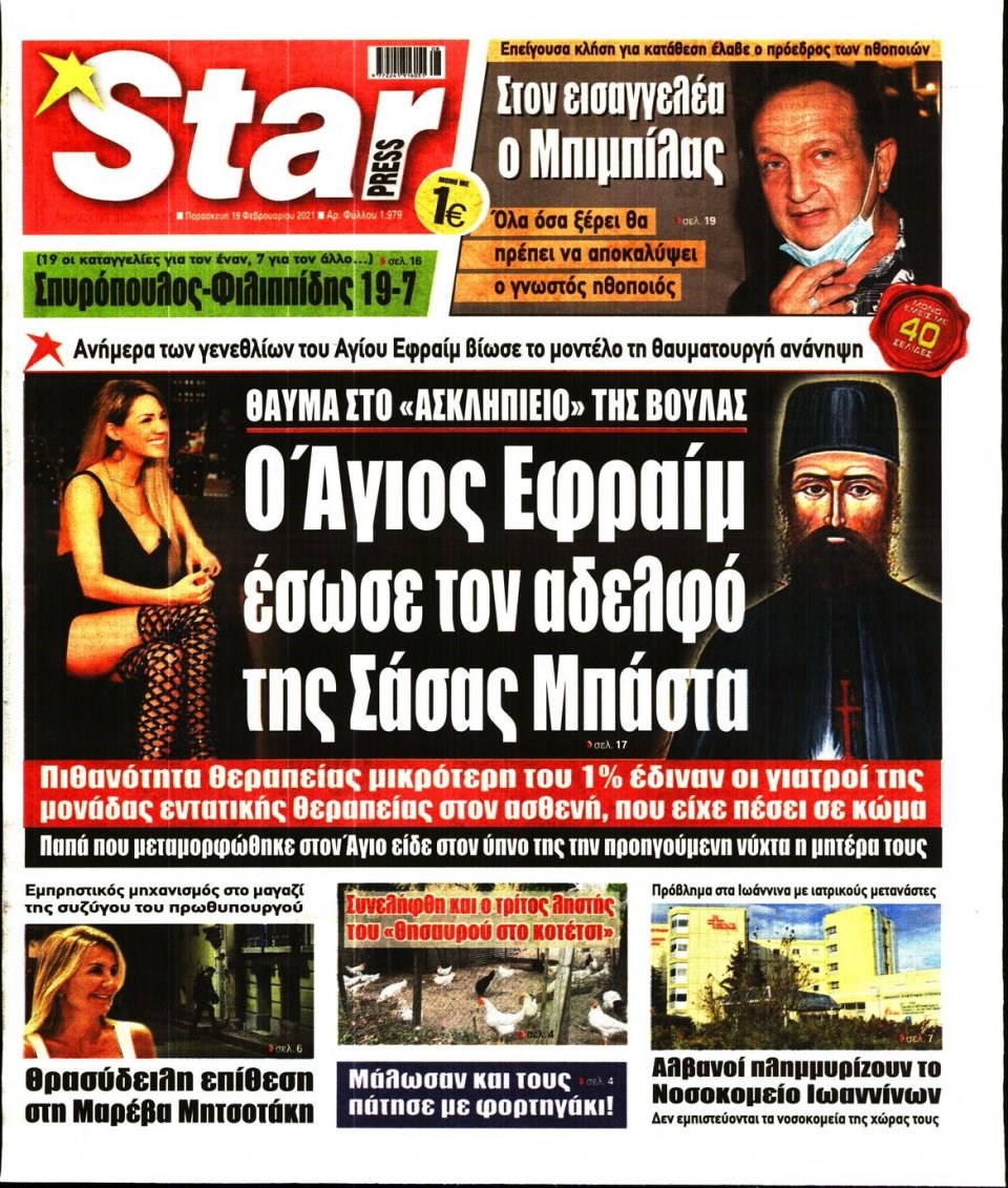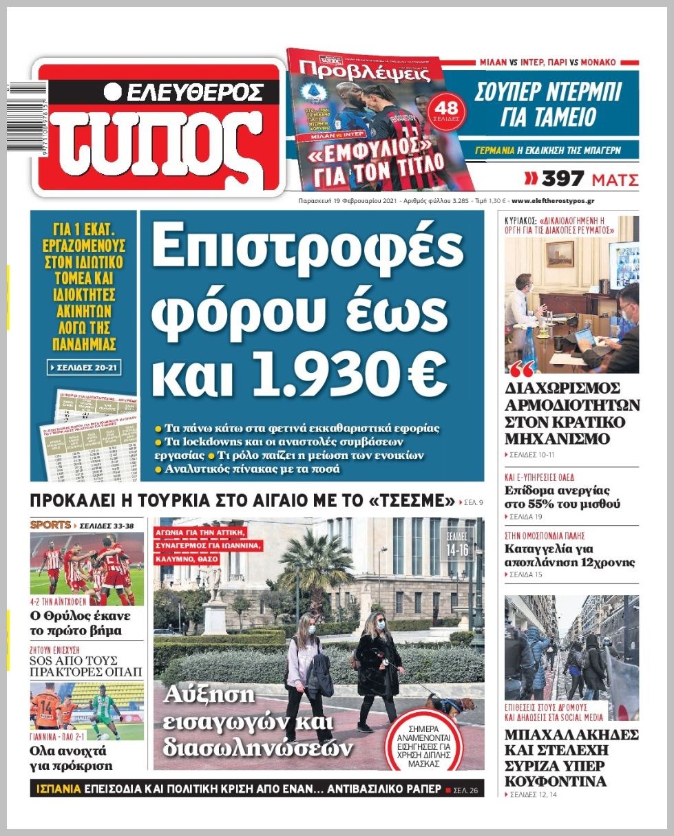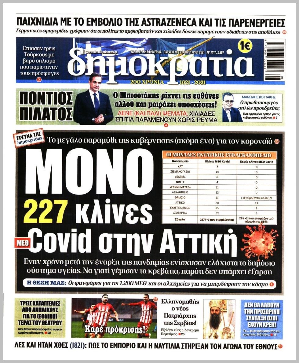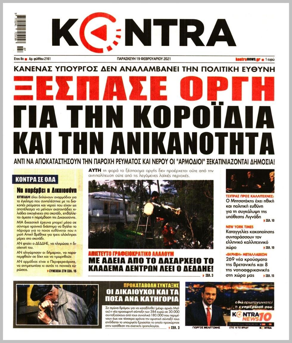 Οι πολιτικές εφημερίδες 19/2/2021 Διονύσης Νίκκας 06:12, Παρασκευή 19 Φεβρουαρίου 2021 Media Διαβάστε τα πρωτοσέλιδα των πολιτικών εφημερίδων… ΕΦΗΜΕΡΙΔΕΣ ΠΟΛΙΤΙΚΕΣ ΕΦΗΜΕΡΙΔΕΣ ΠΡΩΤΟΣΕΛΙΔΑ Μοιράσου το: σχολίασε κι εσύ (0 σχόλια) Ακολουθήστε το enikos.gr στο Google News και μάθετε πρώτοι όλες τις ειδήσεις Δείτε όλες τις τελευταίες ειδήσεις από την Ελλάδα και τον Κόσμο στο enikos.gr Ειδήσεις Ροή Ειδήσεων 6 ώρες πριν Χριστούγεννα στα μπλόκα: Επιμένουν στις κινητοποιήσεις τους οι αγρότες – Ανοίγουν τα διόδια το Σαββατοκύριακο 6 ώρες πριν Ουκρανία: Η άνευ προηγουμένου επίθεση σε ρωσικό τάνκερ στη Μεσόγειο και το μήνυμα προς στον Πούτιν – Το «μακρύ χέρι» του Κιέβου 5 ώρες πριν Πούτιν: Τα μηνύματα σε Ευρώπη και ΝΑΤΟ από το μαραθώνιο «σόου» του – Η απαίτηση για «σεβασμό» και η ειρήνη «με τους όρους» της Μόσχας 6 ώρες πριν Τραμπ: Δεν αποκλείει την πιθανότητα ενός πολέμου στη Βενεζουέλα – «Ο Μαδούρο ξέρει καλύτερα από τον καθένα τι ακριβώς θέλω» 7 ώρες πριν Συνεχίζει να προκαλεί ο Μίτσκοσκι: «Για μένα το όνομα Μακεδονία είναι ιερό» 5 ώρες πριν Ανακαλύφθηκαν αρχαία χρυσά νομίσματα 2.200 ετών που απεικονίζουν τον θεό Απόλλωνα – Η άγνωστη σύνδεση με τον Φίλιππο Β΄ της Μακεδονίας 6 ώρες πριν Ύπνος: Μια κρυφή κατάσταση του εγκεφάλου πριν από τον ύπνο μπορεί να είναι το “κλειδί” για υψηλή ευφυΐα και δημιουργικότητα 7 ώρες πριν Αριθμολογία: Οι άνθρωποι που έχουν γεννηθεί αυτές τις 4 ημερομηνίες, συχνά παρεξηγούνται – «Η καλοσύνη τους κρύβει τεράστια δύναμη» 8 ώρες πριν Ξεχάστε το καθάρισμα το Σαββατοκύριακο: Ο «κανόνας των 20 λεπτών» που θα σας λύσει τα χέρια 6 λεπτά πριν Βολιβία: Μαζική διαδηλώσεις εναντίον της κατάργησης των επιδοτήσεων των τιμών των καυσίμων 21 λεπτά πριν Φως στο Τούνελ: Έφτασε η ώρα της αλήθειας για την δολοφονία της χήρας του πρώην υπουργού στο Κολωνάκι 37 λεπτά πριν Ντόναλντ Τραμπ: Προστέθηκε το όνομά του στην πρόσοψη του Κέντρου Κένεντι – Οργισμένη αντίδραση των συγγενών του JFK 51 λεπτά πριν Ταμίλα Κουλίεβα: «Δεν θέλω να είμαι κάποια που πορεύεται συνεχώς με τις ίδιες αναφορές» 1 ώρα πριν Η Ελλάδα προσχωρεί στη Διεθνή Επιτροπή Αποζημιώσεων για την Ουκρανία ENIKOS NETWORK Το ΕΚΑΒ τιμήθηκε από την Ακαδημία Αθηνών για τα 40 χρόνια προσφοράς του Έχετε πραγματικά μεγάλη καρδιά; 10 χαρακτηριστικά όσων έχουν καλοσύνη Αναστολή μέτρων αναγκαστικής εκτέλεσης για κτηνοτρόφους που πλήττονται από την ευλογιά των αιγοπροβάτων Πλήρης επάρκεια προϊόντων στις λαϊκές της Αττικής, παρά τις αγροτικές κινητοποιήσεις – Τι απαντούν οι πωλητές Χαρτογραφώντας το «σημείο χωρίς επιστροφή»: Για πρώτη φορά αποκαλύπτεται με λεπτομέρεια το ακανθώδες όριο της ατμόσφαιρας τ... Η Google καταργεί τη λειτουργία «dark web report» – Πώς θα μπορούν οι χρήστες να διαγράφουν τα δεδομένα τους περισσότερα 02:50 , Σάββατο 20 Δεκεμβρίου 2025 GNTM: Η Ξένια Τσίρκοβα αναδείχθηκε μεγάλη νικήτρια και πήρε τις 50.000 ευρώ – Ποιος βρέθηκε σε απόσταση αναπνοής; Με φαντασμαγορικό τρόπο ολοκληρώθηκε το βράδυ της Παρασκευής ο μεγάλος τελικός του GNTM, μέσα ... 22:42 , Παρασκευή 19 Δεκεμβρίου 2025 Γιώργος Γιαννόπουλος για “Το σόι σου”: “Είναι ευτυχία και ευλογία αυτή η σειρά” «Είναι ευτυχία και ευλογία η συγκυρία αυτής της σειράς», θα πει ο Γιώργος Γιαννόπουλος -ο αγαπ... 20:37 , Παρασκευή 19 Δεκεμβρίου 2025 Don’t Forget The Lyrics: Η Έλλη Κοκκίνου υποδέχεται 4 παίκτες που θα κάνουν τα πάντα για να μη χάσουν ούτε… μισή λέξη από τους στίχους Το «Don’t Forget The Lyrics» ε