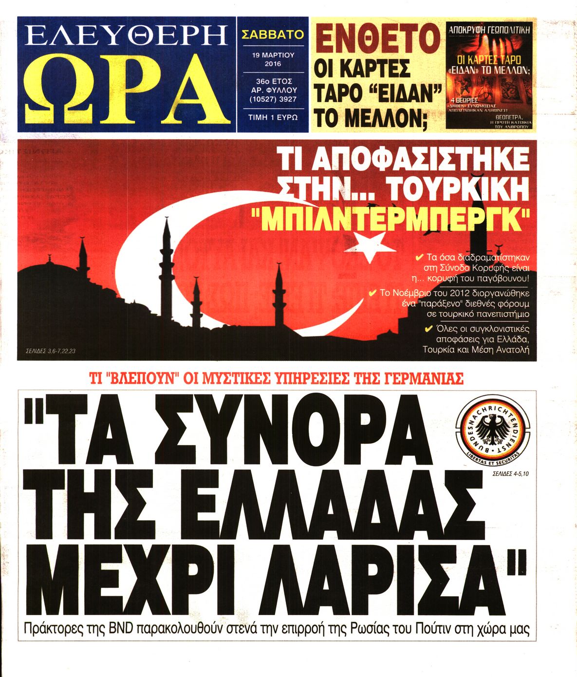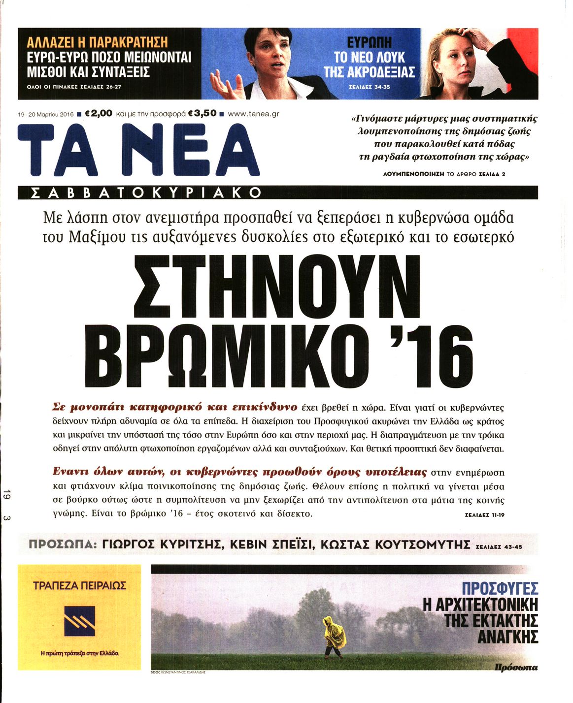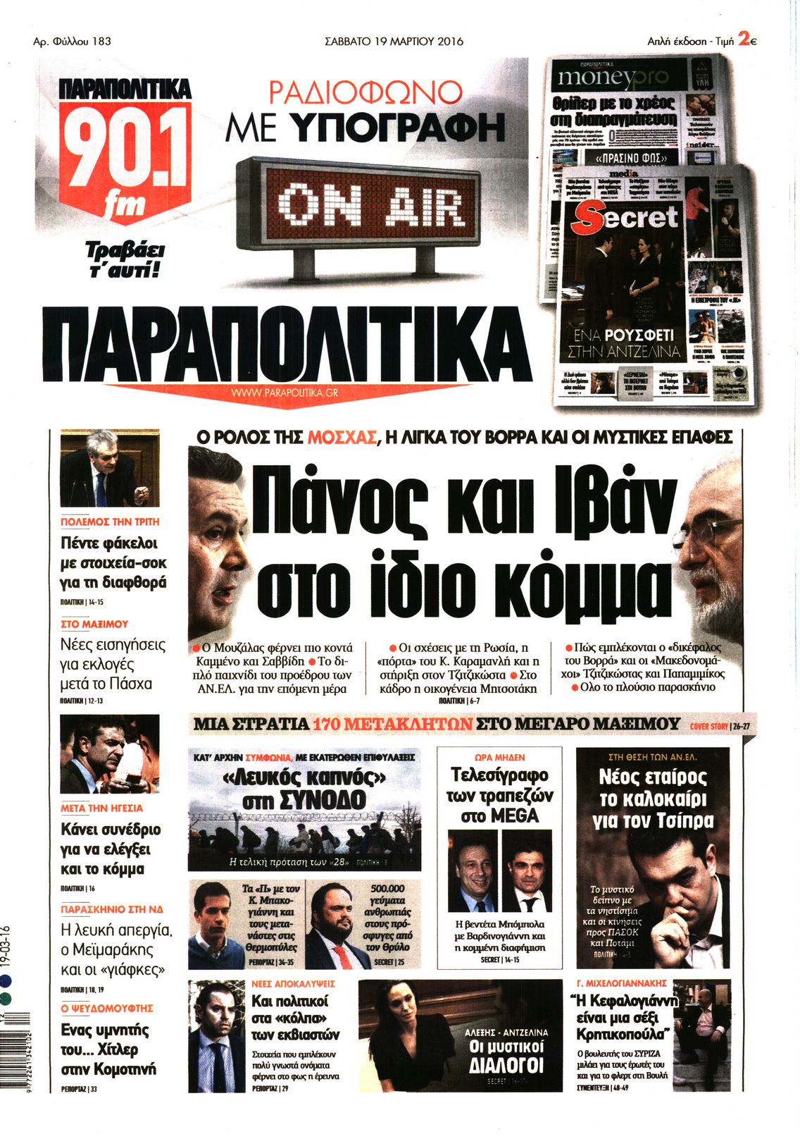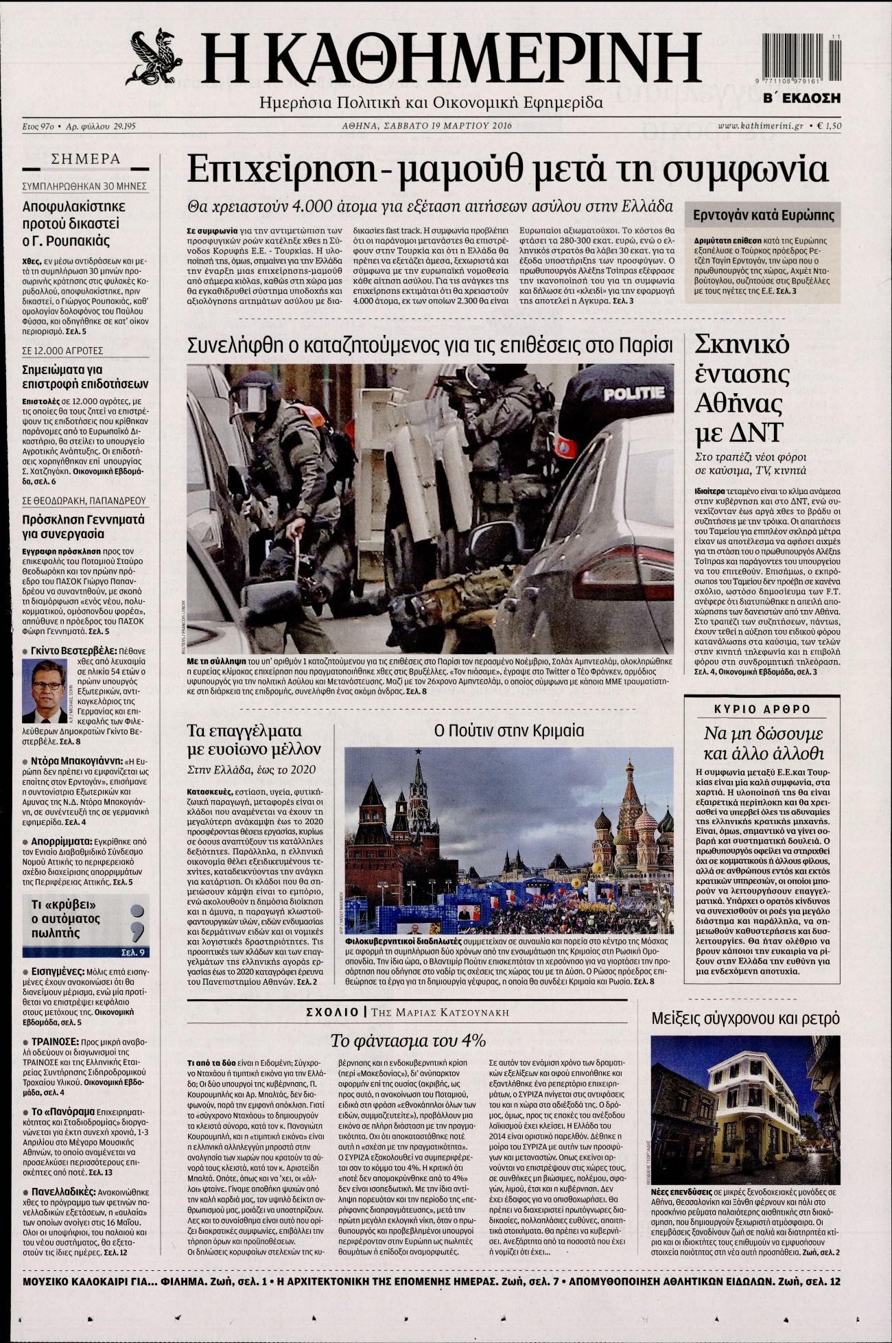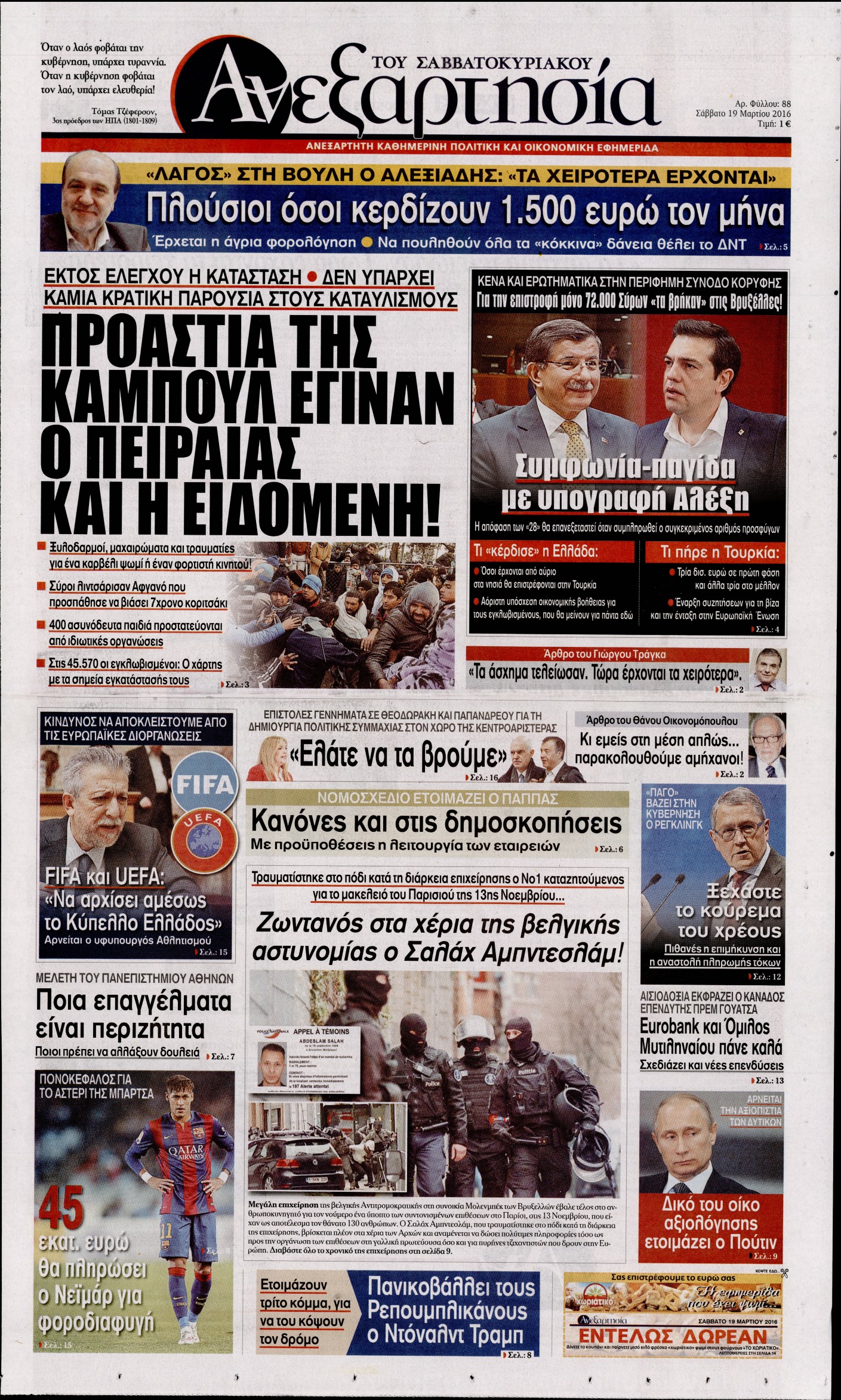 Οι πολιτικές εφημερίδες 19/3/2016 Enikos Newsroom 05:41, Σάββατο 19 Μαρτίου 2016 Media Διαβάστε τα σημερινά πρωτοσέλιδα των πολιτικών εφημερίδων: ΠΡΩΤΟΣΕΛΙΔΑ Μοιράσου το: σχολίασε κι εσύ (0 σχόλια) Ακολουθήστε το enikos.gr στο Google News και μάθετε πρώτοι όλες τις ειδήσεις Δείτε όλες τις τελευταίες ειδήσεις από την Ελλάδα και τον Κόσμο στο enikos.gr Ειδήσεις Ροή Ειδήσεων 3 ώρες πριν Χριστούγεννα στα μπλόκα: Επιμένουν στις κινητοποιήσεις τους οι αγρότες – Ανοίγουν τα διόδια το Σαββατοκύριακο 3 ώρες πριν Ουκρανία: Η άνευ προηγουμένου επίθεση σε ρωσικό τάνκερ στη Μεσόγειο και το μήνυμα προς στον Πούτιν – Το «μακρύ χέρι» του Κιέβου 2 ώρες πριν Πούτιν: Τα μηνύματα σε Ευρώπη και ΝΑΤΟ από το μαραθώνιο «σόου» του – Η απαίτηση για «σεβασμό» και η ειρήνη «με τους όρους» της Μόσχας 3 ώρες πριν Τραμπ: Δεν αποκλείει την πιθανότητα ενός πολέμου στη Βενεζουέλα – «Ο Μαδούρο ξέρει καλύτερα από τον καθένα τι ακριβώς θέλω» 4 ώρες πριν Συνεχίζει να προκαλεί ο Μίτσκοσκι: «Για μένα το όνομα Μακεδονία είναι ιερό» 2 ώρες πριν Ανακαλύφθηκαν αρχαία χρυσά νομίσματα 2.200 ετών που απεικονίζουν τον θεό Απόλλωνα – Η άγνωστη σύνδεση με τον Φίλιππο Β΄ της Μακεδονίας 3 ώρες πριν Ύπνος: Μια κρυφή κατάσταση του εγκεφάλου πριν από τον ύπνο μπορεί να είναι το “κλειδί” για υψηλή ευφυΐα και δημιουργικότητα 4 ώρες πριν Αριθμολογία: Οι άνθρωποι που έχουν γεννηθεί αυτές τις 4 ημερομηνίες, συχνά παρεξηγούνται – «Η καλοσύνη τους κρύβει τεράστια δύναμη» 5 ώρες πριν Ξεχάστε το καθάρισμα το Σαββατοκύριακο: Ο «κανόνας των 20 λεπτών» που θα σας λύσει τα χέρια 8 λεπτά πριν Συρία: Μαζικά πλήγματα των ΗΠΑ σε θέσεις του Ισλαμικού Κράτους – Χέγκσεθ: «Δεν είναι αρχή πολέμου, είναι μια δήλωση εκδίκησης» για το θάνατο των στρατιωτών μας 21 λεπτά πριν Ουκρανία: Ολοκληρώθηκαν οι συνομιλίες με τους Αμερικανούς κι Ευρωπαίους διαπραγματευτές 36 λεπτά πριν Μπαρτσελόνα – Μπασκόνια 134-124: Οι «μπλαουγκράνα» πήραν το ματς της χρονιάς ύστερα από τρεις παρατάσεις 51 λεπτά πριν Φαίη Σκορδά: «Παλιότερα τα κομπλιμέντα τα προσπερνούσα, τώρα τα έχω ανάγκη» 1 ώρα πριν Βασίλης Σπανούλης: Δεν εμφανίστηκε ούτε ένας δημοσιογράφος στην συνέντευξη Τύπου – «Καλησπέρα στον… κανέναν», δείτε βίντεο ENIKOS NETWORK Το ΕΚΑΒ τιμήθηκε από την Ακαδημία Αθηνών για τα 40 χρόνια προσφοράς του Έχετε πραγματικά μεγάλη καρδιά; 10 χαρακτηριστικά όσων έχουν καλοσύνη Αναστολή μέτρων αναγκαστικής εκτέλεσης για κτηνοτρόφους που πλήττονται από την ευλογιά των αιγοπροβάτων Πλήρης επάρκεια προϊόντων στις λαϊκές της Αττικής, παρά τις αγροτικές κινητοποιήσεις – Τι απαντούν οι πωλητές Χαρτογραφώντας το «σημείο χωρίς επιστροφή»: Για πρώτη φορά αποκαλύπτεται με λεπτομέρεια το ακανθώδες όριο της ατμόσφαιρας τ... Η Google καταργεί τη λειτουργία «dark web report» – Πώς θα μπορούν οι χρήστες να διαγράφουν τα δεδομένα τους περισσότερα 22:42 , Παρασκευή 19 Δεκεμβρίου 2025 Γιώργος Γιαννόπουλος για “Το σόι σου”: “Είναι ευτυχία και ευλογία αυτή η σειρά” «Είναι ευτυχία και ευλογία η συγκυρία αυτής της σειράς», θα πει ο Γιώργος Γιαννόπουλος -ο αγαπ... 20:37 , Παρασκευή 19 Δεκεμβρίου 2025 Don’t Forget The Lyrics: Η Έλλη Κοκκίνου υποδέχεται 4 παίκτες που θα κάνουν τα πάντα για να μη χάσουν ούτε… μισή λέξη από τους στίχους Το «Don’t Forget The Lyrics» επιστρέφει απόψε, Παρασκευή 19 Δεκεμβρίου, στις 21:00 με νέο επει... 19:31 , Παρασκευή 19 Δεκεμβρίου 2025 GNTM: Απόψε ο μεγάλος τελικός για τους 4 φιναλίστ Έπειτα από μήνες γεμάτους μόδα, δημιουργία κ