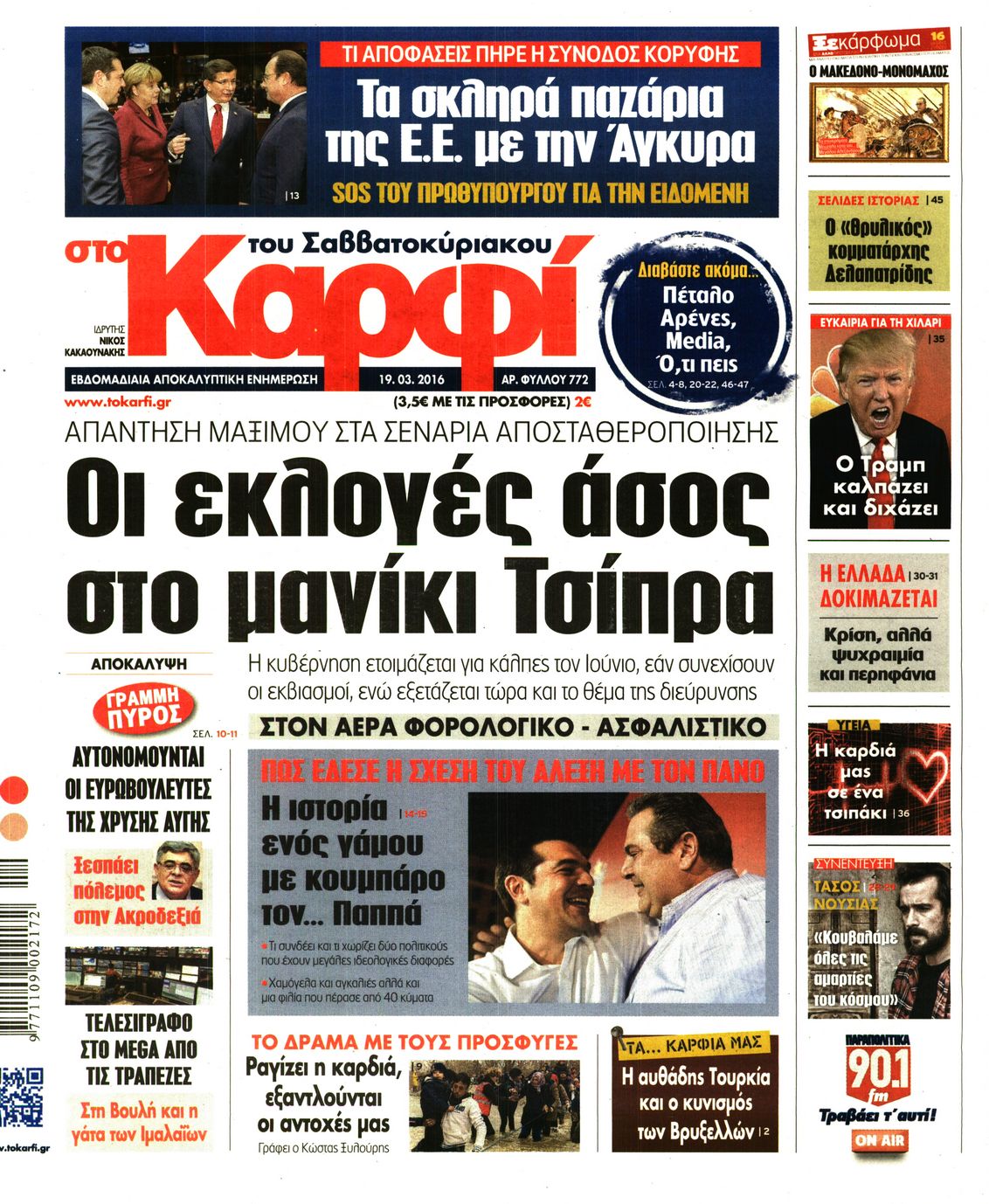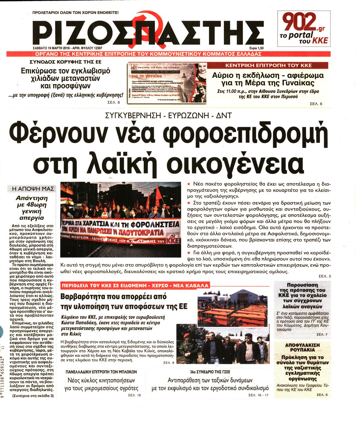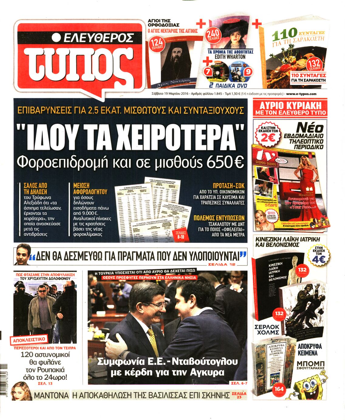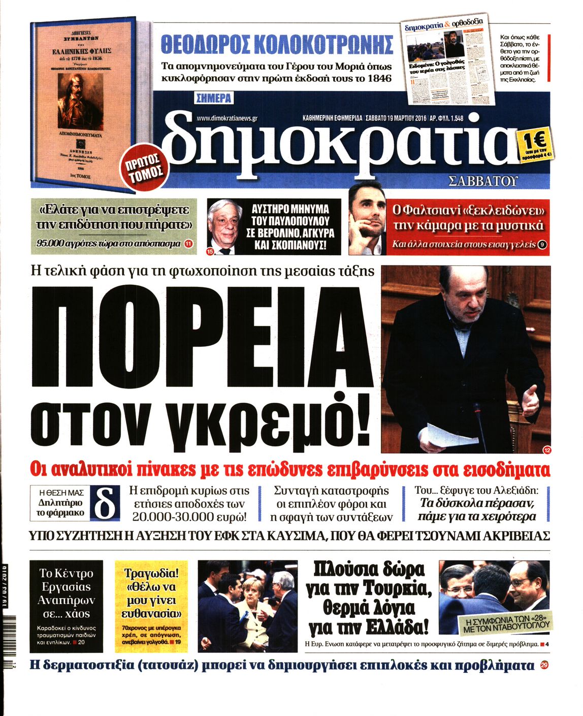 Οι πολιτικές εφημερίδες 19/3/2016 Enikos Newsroom 05:41, Σάββατο 19 Μαρτίου 2016 Media Διαβάστε τα σημερινά πρωτοσέλιδα των πολιτικών εφημερίδων: ΠΡΩΤΟΣΕΛΙΔΑ Μοιράσου το: σχολίασε κι εσύ (0 σχόλια) Ακολουθήστε το enikos.gr στο Google News και μάθετε πρώτοι όλες τις ειδήσεις Δείτε όλες τις τελευταίες ειδήσεις από την Ελλάδα και τον Κόσμο στο enikos.gr Ειδήσεις Ροή Ειδήσεων 3 ώρες πριν Χριστούγεννα στα μπλόκα: Επιμένουν στις κινητοποιήσεις τους οι αγρότες – Ανοίγουν τα διόδια το Σαββατοκύριακο 3 ώρες πριν Ουκρανία: Η άνευ προηγουμένου επίθεση σε ρωσικό τάνκερ στη Μεσόγειο και το μήνυμα προς στον Πούτιν – Το «μακρύ χέρι» του Κιέβου 2 ώρες πριν Πούτιν: Τα μηνύματα σε Ευρώπη και ΝΑΤΟ από το μαραθώνιο «σόου» του – Η απαίτηση για «σεβασμό» και η ειρήνη «με τους όρους» της Μόσχας 3 ώρες πριν Τραμπ: Δεν αποκλείει την πιθανότητα ενός πολέμου στη Βενεζουέλα – «Ο Μαδούρο ξέρει καλύτερα από τον καθένα τι ακριβώς θέλω» 4 ώρες πριν Συνεχίζει να προκαλεί ο Μίτσκοσκι: «Για μένα το όνομα Μακεδονία είναι ιερό» 2 ώρες πριν Ανακαλύφθηκαν αρχαία χρυσά νομίσματα 2.200 ετών που απεικονίζουν τον θεό Απόλλωνα – Η άγνωστη σύνδεση με τον Φίλιππο Β΄ της Μακεδονίας 3 ώρες πριν Ύπνος: Μια κρυφή κατάσταση του εγκεφάλου πριν από τον ύπνο μπορεί να είναι το “κλειδί” για υψηλή ευφυΐα και δημιουργικότητα 4 ώρες πριν Αριθμολογία: Οι άνθρωποι που έχουν γεννηθεί αυτές τις 4 ημερομηνίες, συχνά παρεξηγούνται – «Η καλοσύνη τους κρύβει τεράστια δύναμη» 5 ώρες πριν Ξεχάστε το καθάρισμα το Σαββατοκύριακο: Ο «κανόνας των 20 λεπτών» που θα σας λύσει τα χέρια 8 λεπτά πριν Συρία: Μαζικά πλήγματα των ΗΠΑ σε θέσεις του Ισλαμικού Κράτους – Χέγκσεθ: «Δεν είναι αρχή πολέμου, είναι μια δήλωση εκδίκησης» για το θάνατο των στρατιωτών μας 21 λεπτά πριν Ουκρανία: Ολοκληρώθηκαν οι συνομιλίες με τους Αμερικανούς κι Ευρωπαίους διαπραγματευτές 36 λεπτά πριν Μπαρτσελόνα – Μπασκόνια 134-124: Οι «μπλαουγκράνα» πήραν το ματς της χρονιάς ύστερα από τρεις παρατάσεις 51 λεπτά πριν Φαίη Σκορδά: «Παλιότερα τα κομπλιμέντα τα προσπερνούσα, τώρα τα έχω ανάγκη» 1 ώρα πριν Βασίλης Σπανούλης: Δεν εμφανίστηκε ούτε ένας δημοσιογράφος στην συνέντευξη Τύπου – «Καλησπέρα στον… κανέναν», δείτε βίντεο ENIKOS NETWORK Το ΕΚΑΒ τιμήθηκε από την Ακαδημία Αθηνών για τα 40 χρόνια προσφοράς του Έχετε πραγματικά μεγάλη καρδιά; 10 χαρακτηριστικά όσων έχουν καλοσύνη Αναστολή μέτρων αναγκαστικής εκτέλεσης για κτηνοτρόφους που πλήττονται από την ευλογιά των αιγοπροβάτων Πλήρης επάρκεια προϊόντων στις λαϊκές της Αττικής, παρά τις αγροτικές κινητοποιήσεις – Τι απαντούν οι πωλητές Χαρτογραφώντας το «σημείο χωρίς επιστροφή»: Για πρώτη φορά αποκαλύπτεται με λεπτομέρεια το ακανθώδες όριο της ατμόσφαιρας τ... Η Google καταργεί τη λειτουργία «dark web report» – Πώς θα μπορούν οι χρήστες να διαγράφουν τα δεδομένα τους περισσότερα 22:42 , Παρασκευή 19 Δεκεμβρίου 2025 Γιώργος Γιαννόπουλος για “Το σόι σου”: “Είναι ευτυχία και ευλογία αυτή η σειρά” «Είναι ευτυχία και ευλογία η συγκυρία αυτής της σειράς», θα πει ο Γιώργος Γιαννόπουλος -ο αγαπ... 20:37 , Παρασκευή 19 Δεκεμβρίου 2025 Don’t Forget The Lyrics: Η Έλλη Κοκκίνου υποδέχεται 4 παίκτες που θα κάνουν τα πάντα για να μη χάσουν ούτε… μισή λέξη από τους στίχους Το «Don’t Forget The Lyrics» επιστρέφει απόψε, Παρασκευή 19 Δεκεμβρίου, στις 21:00 με νέο επει... 19:31 , Παρασκευή 19 Δεκεμβρίου 2025 GNTM: Απόψε ο μεγάλος τελικός για τους 4 φιναλίστ Έπειτα από μήνες γεμάτους μόδα, δημιουργία κ
