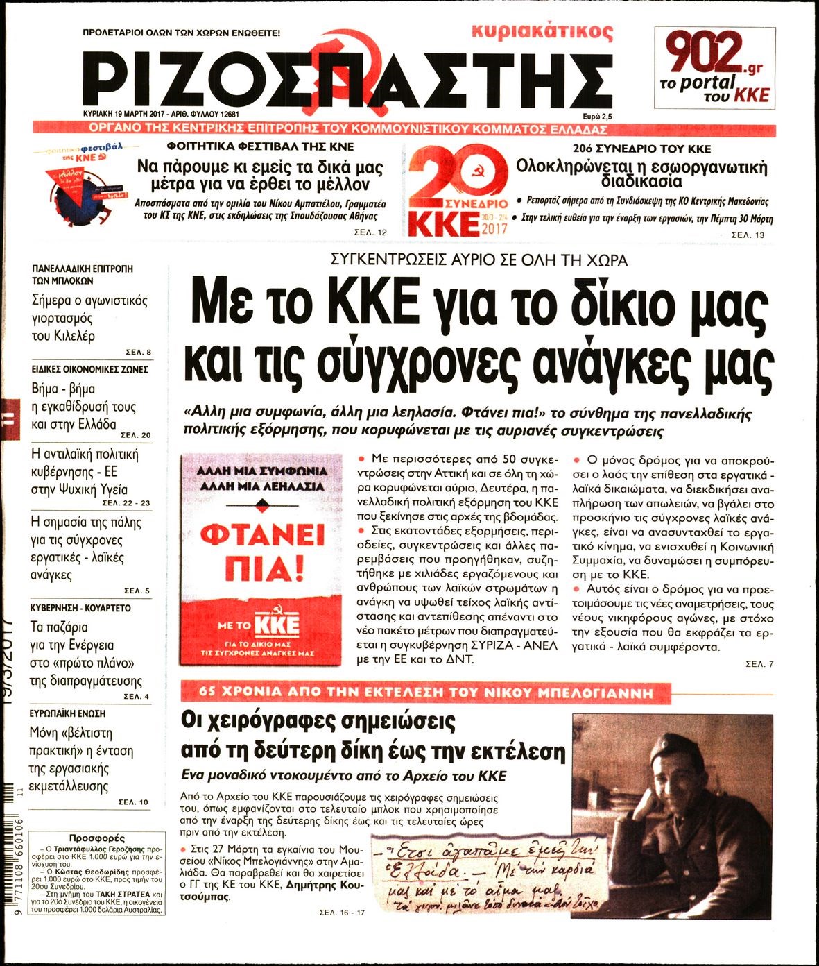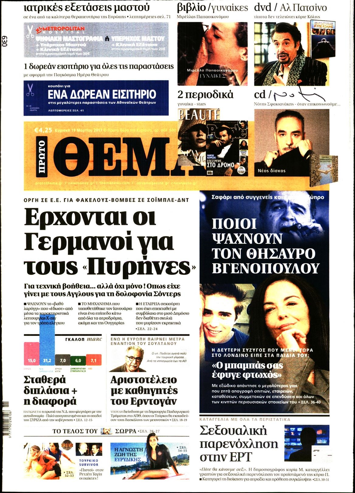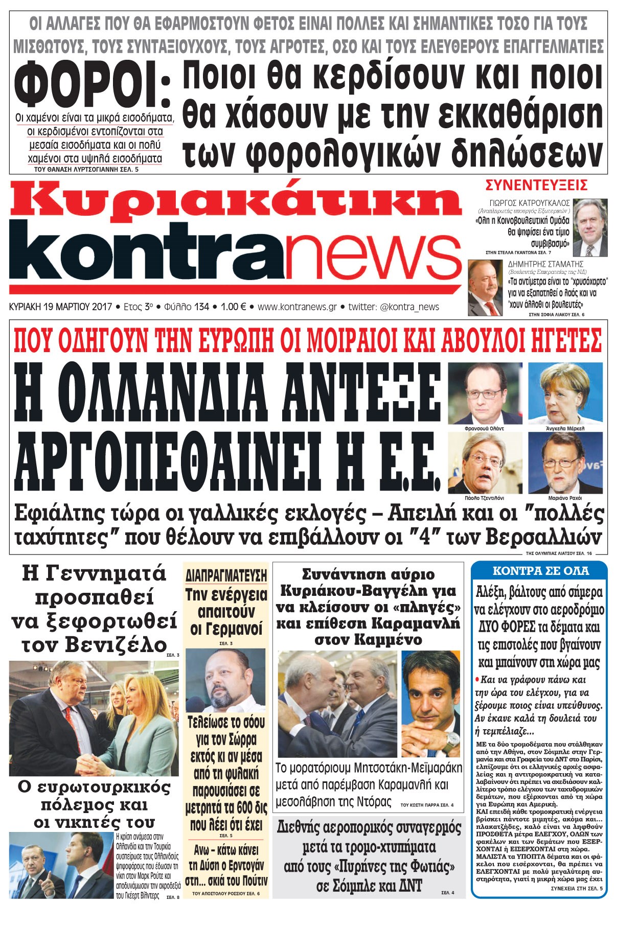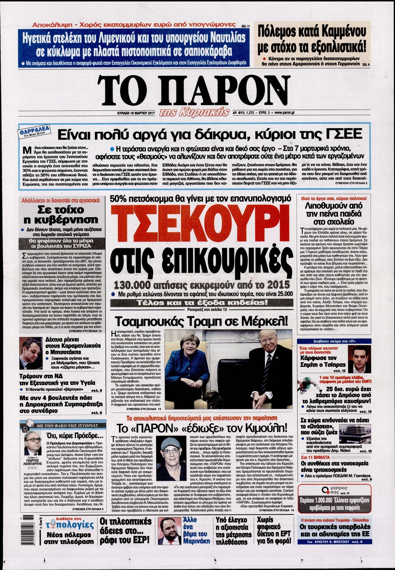 Οι πολιτικές εφημερίδες 19/3/2017 Enikos Newsroom 06:58, Κυριακή 19 Μαρτίου 2017 Media Διαβάστε τα σημερινά πρωτοσέλιδα των πολιτικών εφημερίδων: ΠΟΛΙΤΙΚΕΣ ΕΦΗΜΕΡΙΔΕΣ ΠΡΩΤΟΣΕΛΙΔΑ Μοιράσου το: σχολίασε κι εσύ (0 σχόλια) Ακολουθήστε το enikos.gr στο Google News και μάθετε πρώτοι όλες τις ειδήσεις Δείτε όλες τις τελευταίες ειδήσεις από την Ελλάδα και τον Κόσμο στο enikos.gr Ειδήσεις Ροή Ειδήσεων 6 ώρες πριν Εκτός ευρωομάδας ΣΥΡΙΖΑ ο Νίκος Παππάς μετά την επίθεση στον δημοσιογράφο Νίκο Γιαννόπουλο – Η μήνυση και οι νέες δηλώσεις 6 ώρες πριν «Αγριεύουν» οι αγρότες: «Δεν συντρέχει λόγος συνάντησης με τον πρωθυπουργό» – Ώρα αποφάσεων στη σύσκεψη της Πέμπτης 6 ώρες πριν Κυψέλη: Χωρίς την οικογένειά της δίπλα της απολογήθηκε η 16χρονη – «Της είχε επιτεθεί κάποιος για να την βιάσει, φοβήθηκε και κυκλοφορούσε με μαχαίρι» 6 ώρες πριν Politico: Το πρόβλημα της Ευρώπης δεν είναι το Βέλγιο αλλά ο Ντόναλντ Τραμπ 8 ώρες πριν Αλεξανδρούπολη: Πολυοργανική ανεπάρκεια λόγω υποσιτισμού η αιτία θανάτου του 3χρονου αγοριού 6 ώρες πριν Μυστήριο με τεράστιες κυκλικές πέτρες 200 κιλών – Ανακαλύφθηκαν τυχαία κατά τη διάρκεια οδικών έργων και κανείς δεν ξέρει από πού προέρχονται 7 ώρες πριν Ύπνος: Ειδικός εξηγεί τον πραγματικό λόγο που ξυπνάτε στις 4 τα ξημερώματα – Ο ρόλος των ορμονών και του κιρκάδιου ρυθμού 8 ώρες πριν Αριθμολογία: Οι άνθρωποι που έχουν γεννηθεί αυτές τις 4 ημερομηνίες, είναι τρυφεροί και αγαπούν ανιδιοτελώς 20 ώρες πριν 20 χρόνια τα Χριστούγεννα ξεκινούν στα Public με μεγάλη ποικιλία σε δώρα! 2 λεπτά πριν Αυστραλία: Κυβερνητική δέσμευση για αυστηρότερα μέτρα κατά της υποκίνησης μίσους 18 λεπτά πριν Ντόναλντ Τραμπ: Παρουσίασε τα επιτεύγματα της διακυβέρνησής του – Σκληρή κριτική στον Τζο Μπάιντεν 33 λεπτά πριν Κτηνοτρόφοι: Με δάκρυα στα μάτια ζουν τον εφιάλτη των άδειων στάβλων – «Καταστράφηκαν οι ζωές μας» 47 λεπτά πριν Νέο αμερικανικό πλήγμα σε σκάφος που φέρεται να μετέφερε ναρκωτικά στον Ειρηνικό – Τέσσερις νεκροί 1 ώρα πριν Αλ Τσαντίρι Νιουζ: «Λύγισε» ο Δημήτρης Λάλος για τον Δημήτρη Ήμελλο – «Τον μνημονεύω, να ‘ναι καλά εκεί που είναι» ENIKOS NETWORK Αϋπνία: Το κόλπο που θα σας βοηθήσει να κοιμηθείτε απόψε – Είναι απλό και έχει αποτέλεσμα 2,6 εκατομμύρια πολίτες έχουν ήδη εμβολιαστεί κατά της γρίπης ΕΛΣΤΑΤ: Τι δείχνουν τα νέα στοιχεία για τις ηλεκτρονικές παραγγελίες των επιχειρήσεων ΚΕΠΕ: Οι 3 διακριτές συμβολές των ΜμΕ και της μεταποίησης στην ελληνική οικονομία Χαρτογραφώντας το «σημείο χωρίς επιστροφή»: Για πρώτη φορά αποκαλύπτεται με λεπτομέρεια το ακανθώδες όριο της ατμόσφαιρας τ... Η Google καταργεί τη λειτουργία «dark web report» – Πώς θα μπορούν οι χρήστες να διαγράφουν τα δεδομένα τους περισσότερα 02:30 , Πέμπτη 18 Δεκεμβρίου 2025 Αλ Τσαντίρι Νιουζ: Η κόρη της Πάολα στο κοινό – Η ατάκα Λαζόπουλου που την έκανε να «κοκκινήσει» Γιορτινή διάθεση και ευχάριστες στιγμές γέμισε η αποψινή, τελευταία για το 2025, εκπομπή του «... 22:24 , Τετάρτη 17 Δεκεμβρίου 2025 Το Σπίτι Δίπλα Στο Ποτάμι: Σε κίνδυνο η υγεία του Απόστολου – Τι θα δούμε απόψε “Το Σπίτι Δίπλα στο Ποτάμι” ξετυλίγει το νήμα της ζωής των πέντε αδελφών με καταισ... 21:14 , Τετάρτη 17 Δεκεμβρίου 2025 Παιχνίδια Εκδίκησης: Θα καταφέρει ο Χρήστος να κλονίσει την εμπιστοσύνη της Μάγιας απέναντι στον Άγη; Τα «Παιχνίδια Εκδίκησης» έρχονται απόψε στις 22:30, στον Αντ1, με το τελευταίο επεισόδιο της χ... 20:57 , Τετάρτη 17 Δεκεμβρίου 2025 Άγιος Έρωτας: Η Χλόη καταθέτει ενα