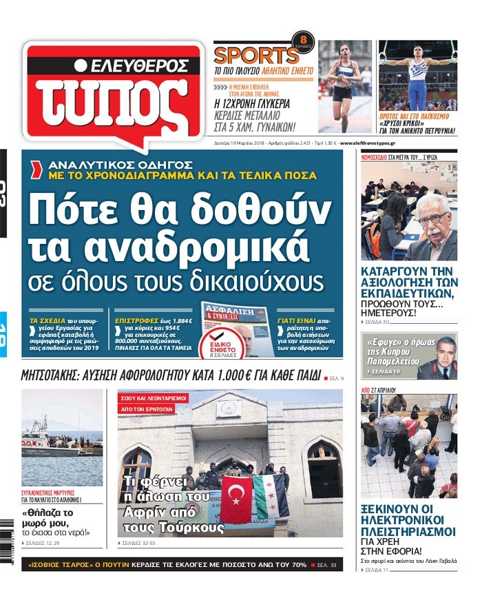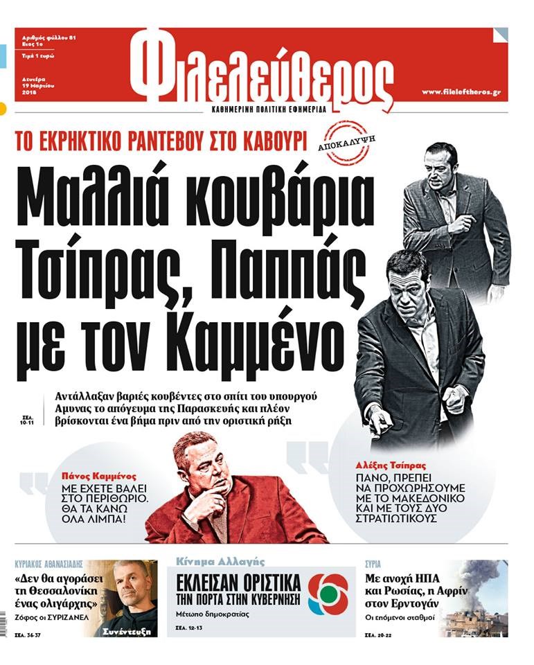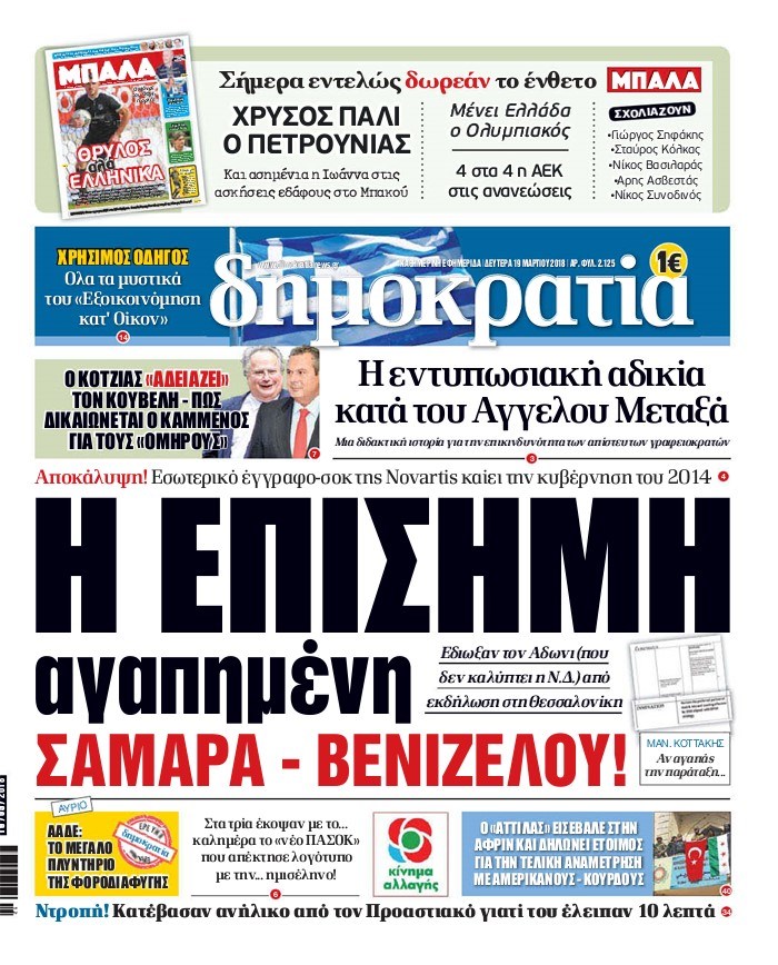 Οι πολιτικές εφημερίδες 19/3/2018 Κώστας Τεό 06:11, Δευτέρα 19 Μαρτίου 2018 Media Διαβάστε τα σημερινά πρωτοσέλιδα των πολιτικών εφημερίδων: ΠΟΛΙΤΙΚΕΣ ΕΦΗΜΕΡΙΔΕΣ ΠΡΩΤΟΣΕΛΙΔΑ Μοιράσου το: σχολίασε κι εσύ (0 σχόλια) Ακολουθήστε το enikos.gr στο Google News και μάθετε πρώτοι όλες τις ειδήσεις Δείτε όλες τις τελευταίες ειδήσεις από την Ελλάδα και τον Κόσμο στο enikos.gr Ειδήσεις Ροή Ειδήσεων 2 ώρες πριν Πώς δρούσε το κύκλωμα που διακινούσε ναρκωτικά σε σχολεία – Υπέβαλαν σε βασανιστήρια όσους δεν τηρούσαν τους «κανόνες πειθαρχίας» 2 ώρες πριν Αγρότες: Γιορτές στα μπλόκα με ανοιχτά διόδια – Δικογραφία στα Ιωάννινα για το σήκωμα των μπαρών 2 ώρες πριν Ζελένσκι: Οι Αμερικανοί πρότειναν συνάντηση Ουκρανίας, ΗΠΑ, Ρωσίας στο Μαϊάμι 1 ώρα πριν Αττική: Εξαρθρώθηκε εγκληματική οργάνωση που έκλεβε οχήματα, τα παραποιούσε και τα μεταπωλούσε σε πολίτες – Πώς δρούσε το κύκλωμα 48 λεπτά πριν Μικαέλα Μπέντχαους: Ο πρώτος άνθρωπος σε αναπηρικό αμαξίδιο που ταξίδεψε στο διάστημα – ΒΙΝΤΕΟ 2 ώρες πριν Η τύχη χαμογελά σε 3 ζώδια έως τις 28 Δεκεμβρίου – «Προσέξτε τις επιλογές σας και η επιμονή σας θα ανταμειφθεί» 7 ώρες πριν Διαιτολόγος αποκαλύπτει 9 πρωινές συνήθειες που «λιώνουν» το κοιλιακό λίπος – «Υποστηρίζουν την υγιεινή απώλεια βάρους» 3 ώρες πριν Μία ανεκμετάλλευτη πηγή θα μπορούσε να προσφέρει ανεξάντλητη ενέργεια – Οι επιστήμονες ίσως γνωρίζουν πώς να την ξεκλειδώσουν 10 ώρες πριν Enerwave: Το νέο «ρεύμα» στη λιανική ενέργειας που αλλάζει την εμπειρία του καταναλωτή 12 λεπτά πριν HOTΕΛ ΕΛVIRA: Η Ελβίρα μαθαίνει πως ο Χάρι μένει κρυφά στο ξενοδοχείο του Παντελή 21 λεπτά πριν Ερντογάν: «Δεν έχουμε βλέψεις στα εδάφη κανενός, αλλά δεν θα επιτρέψουμε να παραβιαστούν τα δικαιώματά μας» 31 λεπτά πριν Η Realnews στο www.pressreader.com 38 λεπτά πριν Νιούκαστλ – Τσέλσι 2-2: Αλύγιστοι οι Λονδρέζοι 48 λεπτά πριν Μικαέλα Μπέντχαους: Ο πρώτος άνθρωπος σε αναπηρικό αμαξίδιο που ταξίδεψε στο διάστημα – ΒΙΝΤΕΟ ENIKOS NETWORK Γιατί πρέπει να ζητάμε χάρες; Ποιο είναι το φαινόμενο Ben Franklin που κάνει τους άλλους να μας συμπαθούν Η αποχή από την αναπαραγωγή παρατείνει τη ζωή στα ζώα, σύμφωνα με μελέτη – Τι ισχύει για τους ανθρώπους; Η Realnews στο www.pressreader.com Τράπεζες: Πόσες ημέρες θα είναι κλειστές μέσα στις γιορτές Χαρτογραφώντας το «σημείο χωρίς επιστροφή»: Για πρώτη φορά αποκαλύπτεται με λεπτομέρεια το ακανθώδες όριο της ατμόσφαιρας τ... Η Google καταργεί τη λειτουργία «dark web report» – Πώς θα μπορούν οι χρήστες να διαγράφουν τα δεδομένα τους περισσότερα 18:19 , Σάββατο 20 Δεκεμβρίου 2025 HOTΕΛ ΕΛVIRA: Η Ελβίρα μαθαίνει πως ο Χάρι μένει κρυφά στο ξενοδοχείο του Παντελή Συνεχίζονται οι εκλογές για πρόεδρο, στο νέο επεισόδιο της κωμικής σειράς του MEGA, HOTΕΛ ΕΛVI... 14:04 , Σάββατο 20 Δεκεμβρίου 2025 Η Realnews αυτής της Κυριακής (21/12/2025) Με τίτλο: «Ασπίδα προστασίας για την Ελλάδα» κυκλοφορεί, αυτήν την Κυριακή, η Realnews. Σημαντ... 12:53 , Σάββατο 20 Δεκεμβρίου 2025 Να μ’ αγαπάς: Το παρελθόν έρχεται στο φως – Καταιγιστικές εξελίξεις στα τελευταία επεισόδια του 2025 Ο Άγγελος αποκαλύπτεται, η Φωτεινή ανησυχεί για τον Λευτέρη και η Ζωή έρχεται αντιμέτωπη με το... 11:41 , Σάββατο 20 Δεκεμβρίου 2025 «Η αγάπη δεν χάνεται ποτέ»: Η μικρού μήκους ταινία κινουμένων σχεδίων που θέτει ερωτήματα για τη ζωή και τον θάνατο Ο θάνατος είναι ένα από τα πιο σκληρά θέματα που καλείται να διαχειριστεί κάποιος στη διάρκεια... ΤΕΛΕΥΤΑΙΕΣ ΕΙΔΗΣΕΙΣ 12 λεπτά πριν HOTΕΛ ΕΛVIRA: Η Ελβίρα μαθαίνει πως ο Χάρι μένει κ