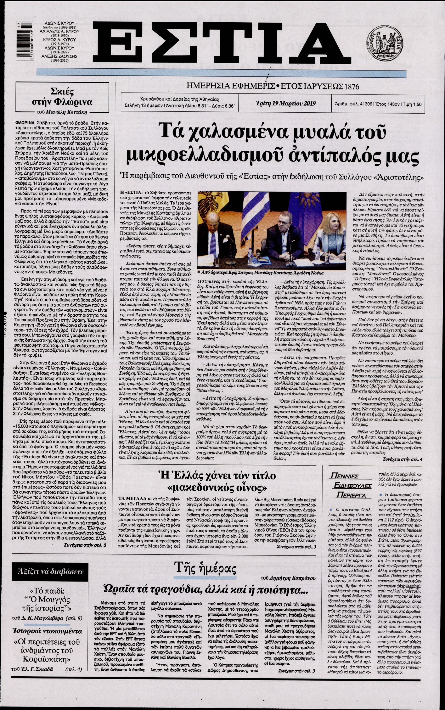 Οι πολιτικές εφημερίδες 19/3/2019 Enikos Newsroom 06:45, Τρίτη 19 Μαρτίου 2019 Media Διαβάστε τα πρωτοσέλιδα των πολιτικών εφημερίδων: ΠΟΛΙΤΙΚΕΣ ΕΦΗΜΕΡΙΔΕΣ ΠΡΩΤΟΣΕΛΙΔΑ Μοιράσου το: σχολίασε κι εσύ (0 σχόλια) Ακολουθήστε το enikos.gr στο Google News και μάθετε πρώτοι όλες τις ειδήσεις Δείτε όλες τις τελευταίες ειδήσεις από την Ελλάδα και τον Κόσμο στο enikos.gr Ειδήσεις Ροή Ειδήσεων 3 ώρες πριν Μητσοτάκης σε αγρότες: Είμαστε ανοιχτοί στον διάλογο, αλλά όχι στο παράλογο – Η διεκδίκηση αιτημάτων οφείλει να γίνεται με σεβασμό στο κοινωνικό σύνολο 2 ώρες πριν Κηφισιά: Δύο συλλήψεις για ληστεία με λεία 180.000 ευρώ – Βίντεο ντοκουμέντα από τη δράση των συλληφθέντων 4 ώρες πριν Γρίπη: «Καμπανάκι» από τους επιστήμονες για έξαρση κρουσμάτων στις γιορτές – Ποιοι κινδυνεύουν και πώς προστατευόμαστε 2 ώρες πριν Ρωσία: Δεν προετοιμάζεται συνάντηση Αμερικανών, Ρώσων και Ουκρανών απεσταλμένων, ανακοίνωσε το Κρεμλίνο 4 ώρες πριν Η οικογενειακή διαμάχη των Μπέκαμ: Το block από τον Μπρούκλιν και η απόφαση να περάσει τα Χριστούγεννα με τους δισεκατομμυριούχους γονείς της συζύγου του 4 ώρες πριν Τα άστρα ευνοούν σκανδαλωδώς 4 ζώδια – «Εμφανίζονται ξαφνικά ευκαιρίες γιατί αποφασίζετε να αφήσετε πίσω το παρελθόν» 3 ώρες πριν Προπονήτρια γυμναστικής που έχασε 9 κιλά αποκαλύπτει: «Αυτοί είναι οι 5 παράγοντες που εμποδίζουν την απώλεια βάρους» 2 ώρες πριν Οι άνθρωποι που στρώνουν το κρεβάτι τους κάθε πρωί, διαθέτουν αυτές τις 8 κρυφές δυνάμεις 1 ημέρα πριν Enerwave: Το νέο «ρεύμα» στη λιανική ενέργειας που αλλάζει την εμπειρία του καταναλωτή 4 λεπτά πριν Γαλάτσι: Rave πάρτι στα σκαλιά εκκλησίας με DJ και φωτορυθμικά – Βίντεο 7 λεπτά πριν Θεσσαλονίκη: Με Αγιοβασίληδες γέμισε ο Θερμαϊκός στο 5ο Santa SUP 16 λεπτά πριν Γρηγόρης Αρναούτογλου: «Δεν θέλω να ξαναπάω σε vidcast που θα το δείξει η τηλεόραση» 24 λεπτά πριν Ισραήλ: Πράσινο φως για τη δημιουργία 19 νέων οικισμών στη Δυτική Όχθη 32 λεπτά πριν Κρήτη: Συνελήφθη 53χρονος που είχε στο σπίτι του ρούχα με… διακριτικά της Αστυνομίας και του Πολεμικού Ναυτικού ENIKOS NETWORK Φοράτε ψηλοτάκουνα παπούτσια; Ποδίατροι συμβουλεύουν πόσο ψηλά επιτρέπεται να είναι και πώς να τα επιλέξετε Άσκηση: η «ασπίδα» του εγκεφάλου απέναντι στη γήρανση Χριστουγεννιάτικο τραπέζι: Πόσο θα αγοράσετε φέτος τη γαλοπούλα και το μοσχάρι – Πού κυμαίνονται οι τιμές για μελομακάρονα ... Φοροδιαφυγή: Πώς τα ψηφιακά εργαλεία άλλαξαν τα δεδομένα το 2025 και έφεραν δισεκατομμύρια στα ταμεία του Δημοσίου Χαρτογραφώντας το «σημείο χωρίς επιστροφή»: Για πρώτη φορά αποκαλύπτεται με λεπτομέρεια το ακανθώδες όριο της ατμόσφαιρας τ... Η Google καταργεί τη λειτουργία «dark web report» – Πώς θα μπορούν οι χρήστες να διαγράφουν τα δεδομένα τους περισσότερα 09:43 , Κυριακή 21 Δεκεμβρίου 2025 Το λάθος στην ταινία Die Hard που άφησε άναυδους τους θαυμαστές του Μπρους Γουίλις Ένας φανατικός των ταινιών άφησε άναυδους τους θαυμαστές του Die Hard, επισημαίνοντας τρία βασ... 08:13 , Κυριακή 21 Δεκεμβρίου 2025 Άγιος έρωτας: Ένας καταστροφικός σεισμός χτυπά τη Στέρνα Καταιγιστικές είναι οι εξελίξεις στα δυο τελευταία, συγκλονιστικά επεισόδια του 2025 της σειρά... 08:00 , Κυριακή 21 Δεκεμβρίου 2025 Σήμερα με τη Realnews: Ό,τι και αν αγοράσεις, σκανάρεις και κερδίζεις! Σήμερα με τη Realnews: Ό,τι και αν αγοράσεις, σκανάρεις και κερδίζεις! Με το PADU app, το κορυ... 07:00 , Κυριακή 21 Δεκεμβρίου 2025 Σήμερα με τη Realnews: Instyle, μαζί Drive και Realnews Geopolitics Σήμερα με τη Realnews: Instyle, μαζί Drive και Realnews Geopo