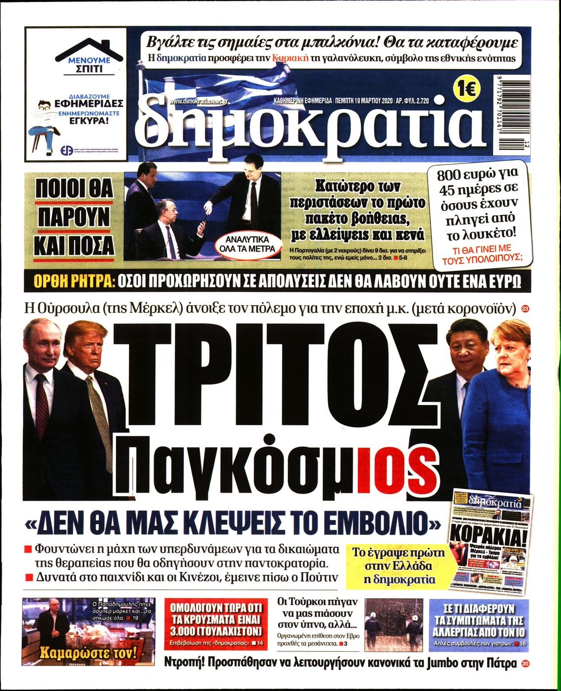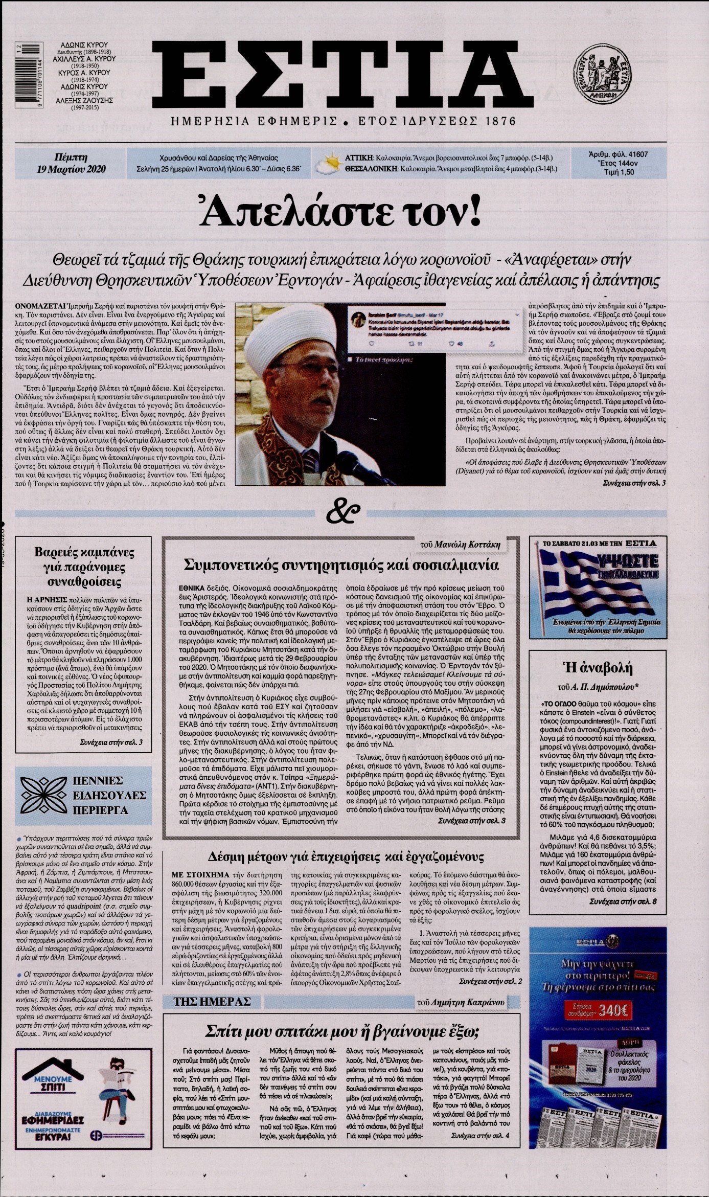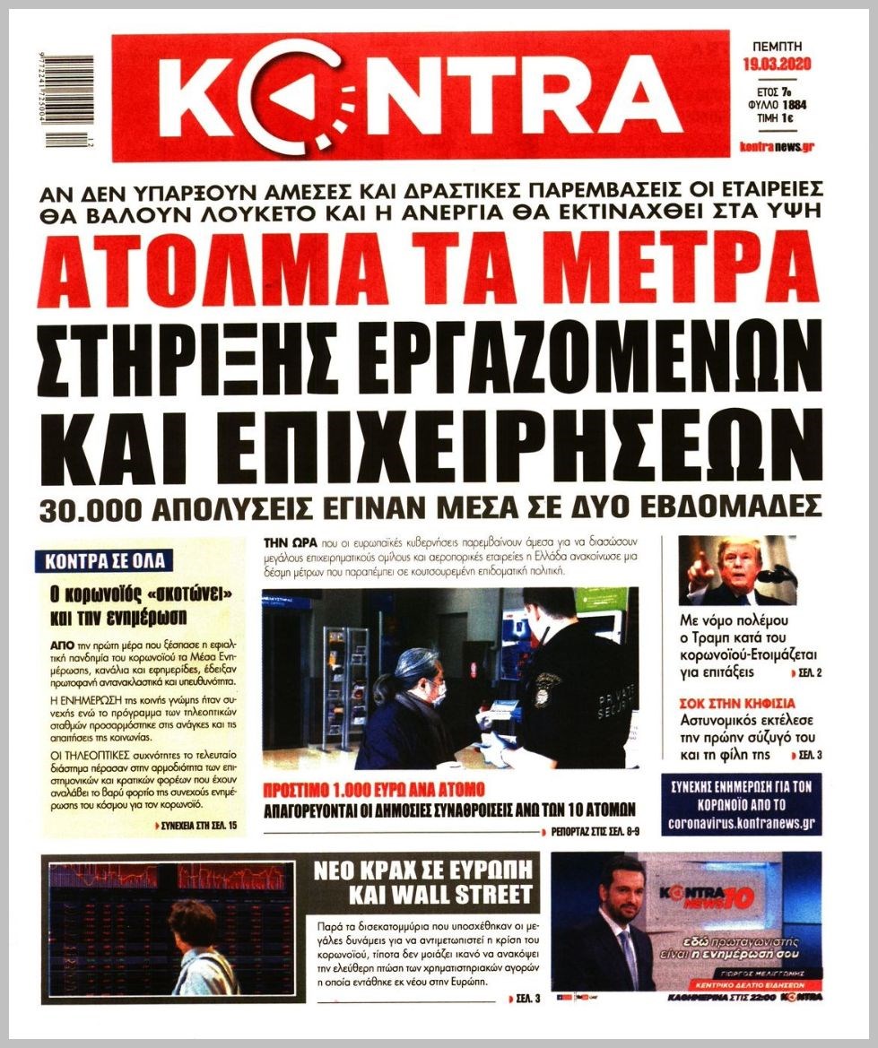Οι πολιτικές εφημερίδες 19/3/2020 Διονύσης Νίκκας 06:14, Πέμπτη 19 Μαρτίου 2020 Media Διαβάστε τα πρωτοσέλιδα των πολιτικών εφημερίδων… ΠΟΛΙΤΙΚΕΣ ΕΦΗΜΕΡΙΔΕΣ ΠΡΩΤΟΣΕΛΙΔΑ Μοιράσου το: σχολίασε κι εσύ (0 σχόλια) Ακολουθήστε το enikos.gr στο Google News και μάθετε πρώτοι όλες τις ειδήσεις Δείτε όλες τις τελευταίες ειδήσεις από την Ελλάδα και τον Κόσμο στο enikos.gr Ειδήσεις Ροή Ειδήσεων 5 ώρες πριν Χριστούγεννα στα μπλόκα: Επιμένουν στις κινητοποιήσεις τους οι αγρότες – Ανοίγουν τα διόδια το Σαββατοκύριακο 6 ώρες πριν Ουκρανία: Η άνευ προηγουμένου επίθεση σε ρωσικό τάνκερ στη Μεσόγειο και το μήνυμα προς στον Πούτιν – Το «μακρύ χέρι» του Κιέβου 5 ώρες πριν Πούτιν: Τα μηνύματα σε Ευρώπη και ΝΑΤΟ από το μαραθώνιο «σόου» του – Η απαίτηση για «σεβασμό» και η ειρήνη «με τους όρους» της Μόσχας 6 ώρες πριν Τραμπ: Δεν αποκλείει την πιθανότητα ενός πολέμου στη Βενεζουέλα – «Ο Μαδούρο ξέρει καλύτερα από τον καθένα τι ακριβώς θέλω» 6 ώρες πριν Συνεχίζει να προκαλεί ο Μίτσκοσκι: «Για μένα το όνομα Μακεδονία είναι ιερό» 5 ώρες πριν Ανακαλύφθηκαν αρχαία χρυσά νομίσματα 2.200 ετών που απεικονίζουν τον θεό Απόλλωνα – Η άγνωστη σύνδεση με τον Φίλιππο Β΄ της Μακεδονίας 6 ώρες πριν Ύπνος: Μια κρυφή κατάσταση του εγκεφάλου πριν από τον ύπνο μπορεί να είναι το “κλειδί” για υψηλή ευφυΐα και δημιουργικότητα 7 ώρες πριν Αριθμολογία: Οι άνθρωποι που έχουν γεννηθεί αυτές τις 4 ημερομηνίες, συχνά παρεξηγούνται – «Η καλοσύνη τους κρύβει τεράστια δύναμη» 8 ώρες πριν Ξεχάστε το καθάρισμα το Σαββατοκύριακο: Ο «κανόνας των 20 λεπτών» που θα σας λύσει τα χέρια 2 λεπτά πριν Φως στο Τούνελ: Έφτασε η ώρα της αλήθειας για την δολοφονία της χήρας του πρώην υπουργού στο Κολωνάκι 17 λεπτά πριν Ντόναλντ Τραμπ: Προστέθηκε το όνομά του στην πρόσοψη του Κέντρου Κένεντι – Οργισμένη αντίδραση των συγγενών του JFK 32 λεπτά πριν Ταμίλα Κουλίεβα: «Δεν θέλω να είμαι κάποια που πορεύεται συνεχώς με τις ίδιες αναφορές» 47 λεπτά πριν Η Ελλάδα προσχωρεί στη Διεθνή Επιτροπή Αποζημιώσεων για την Ουκρανία 1 ώρα πριν GNTM: Η Ξένια Τσίρκοβα αναδείχθηκε μεγάλη νικήτρια και πήρε τις 50.000 ευρώ – Ποιος βρέθηκε σε απόσταση αναπνοής; ENIKOS NETWORK Το ΕΚΑΒ τιμήθηκε από την Ακαδημία Αθηνών για τα 40 χρόνια προσφοράς του Έχετε πραγματικά μεγάλη καρδιά; 10 χαρακτηριστικά όσων έχουν καλοσύνη Αναστολή μέτρων αναγκαστικής εκτέλεσης για κτηνοτρόφους που πλήττονται από την ευλογιά των αιγοπροβάτων Πλήρης επάρκεια προϊόντων στις λαϊκές της Αττικής, παρά τις αγροτικές κινητοποιήσεις – Τι απαντούν οι πωλητές Χαρτογραφώντας το «σημείο χωρίς επιστροφή»: Για πρώτη φορά αποκαλύπτεται με λεπτομέρεια το ακανθώδες όριο της ατμόσφαιρας τ... Η Google καταργεί τη λειτουργία «dark web report» – Πώς θα μπορούν οι χρήστες να διαγράφουν τα δεδομένα τους περισσότερα 02:50 , Σάββατο 20 Δεκεμβρίου 2025 GNTM: Η Ξένια Τσίρκοβα αναδείχθηκε μεγάλη νικήτρια και πήρε τις 50.000 ευρώ – Ποιος βρέθηκε σε απόσταση αναπνοής; Με φαντασμαγορικό τρόπο ολοκληρώθηκε το βράδυ της Παρασκευής ο μεγάλος τελικός του GNTM, μέσα ... 22:42 , Παρασκευή 19 Δεκεμβρίου 2025 Γιώργος Γιαννόπουλος για “Το σόι σου”: “Είναι ευτυχία και ευλογία αυτή η σειρά” «Είναι ευτυχία και ευλογία η συγκυρία αυτής της σειράς», θα πει ο Γιώργος Γιαννόπουλος -ο αγαπ... 20:37 , Παρασκευή 19 Δεκεμβρίου 2025 Don’t Forget The Lyrics: Η Έλλη Κοκκίνου υποδέχεται 4 παίκτες που θα κάνουν τα πάντα για να μη χάσουν ούτε… μισή λέξη από τους στίχους Το «Don’t Forget The Lyrics» επι