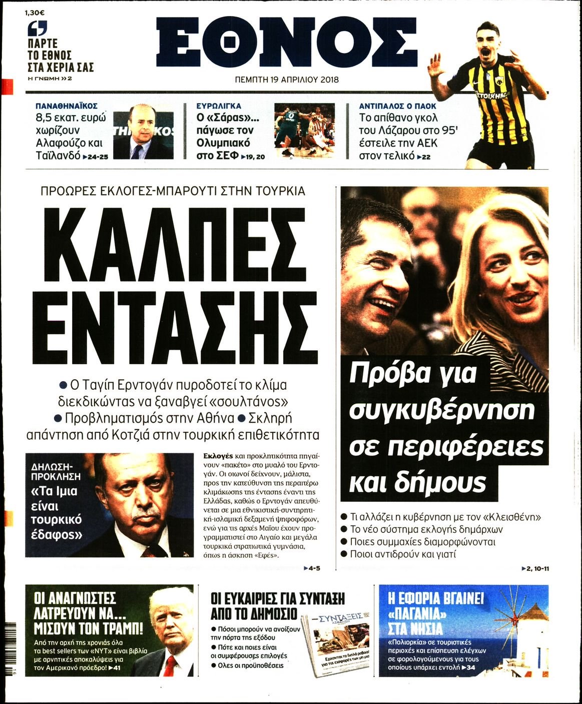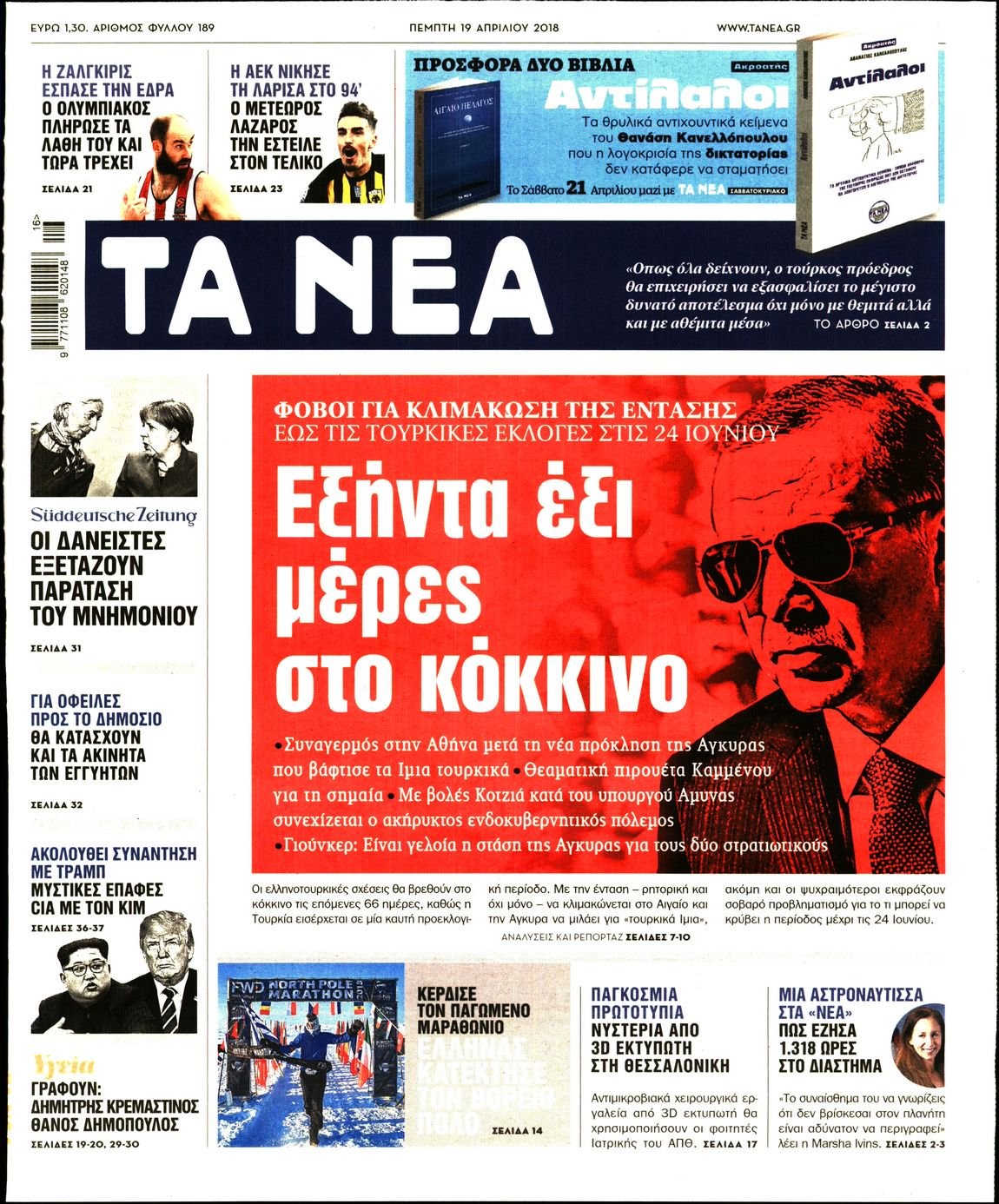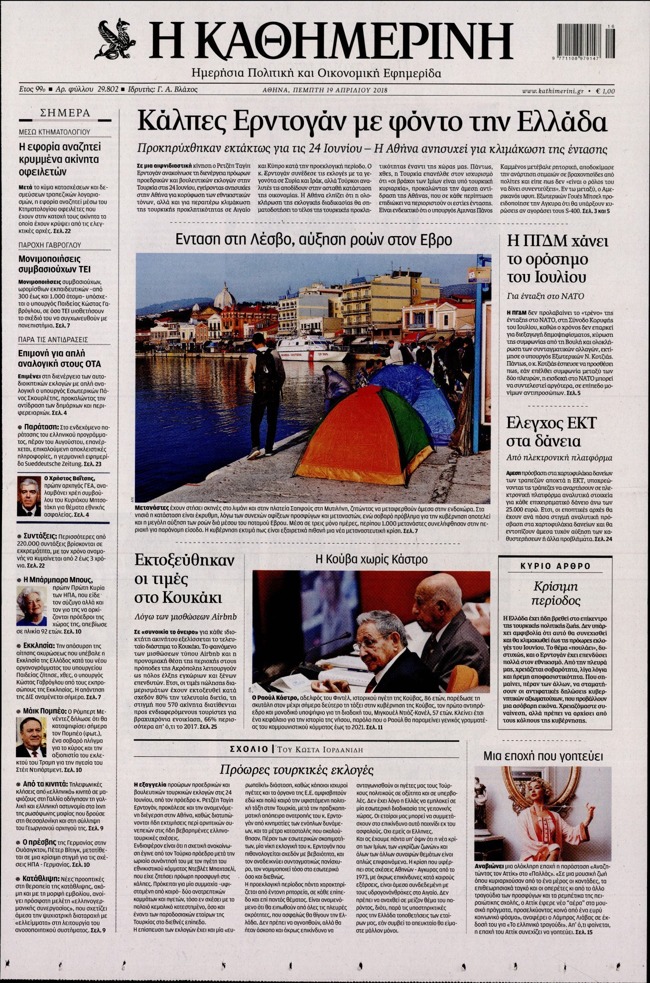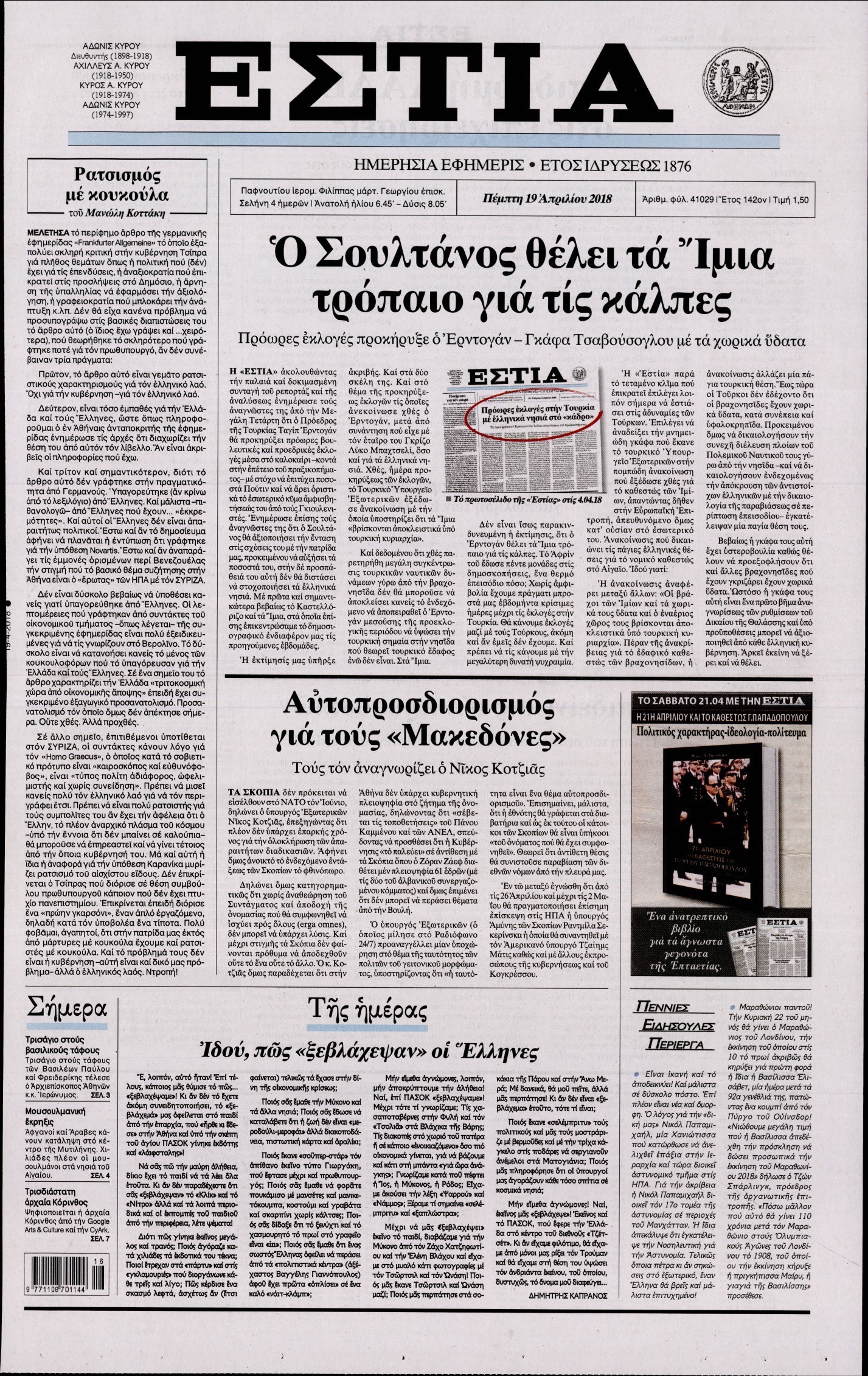 Οι πολιτικές εφημερίδες 19/4/2018 Enikos Newsroom 07:32, Πέμπτη 19 Απριλίου 2018 Media Διαβάστε τα σημερινά πρωτοσέλιδα των πολιτικών εφημερίδων: ΠΟΛΙΤΙΚΕΣ ΕΦΗΜΕΡΙΔΕΣ ΠΡΩΤΟΣΕΛΙΔΑ Μοιράσου το: σχολίασε κι εσύ (0 σχόλια) Ακολουθήστε το enikos.gr στο Google News και μάθετε πρώτοι όλες τις ειδήσεις Δείτε όλες τις τελευταίες ειδήσεις από την Ελλάδα και τον Κόσμο στο enikos.gr Ειδήσεις Ροή Ειδήσεων 7 λεπτά πριν Μπλόκα: Οι αγρότες σηκώνουν τις μπάρες σε διόδια για τους εκδρομείς των Χριστουγέννων και μοιράζουν προϊόντα – Βίντεο 44 λεπτά πριν Τσιάρας προς αγρότες: Τα μπλόκα και τα πείσματα δεν ωφελούν – Οι λύσεις περνούν μέσα από τον διάλογο 2 ώρες πριν Αρχεία Έπσταϊν: Οι συγκλονιστικές φωτογραφίες – Ο Μάικλ Τζάκσον, ο Μικ Τζάγκερ και ο Κέβιν Σπέισι ανάμεσα στους διάσημους που απεικονίζονται 3 ώρες πριν Νέες ταυτότητες: Μεγάλη αναμονή για ραντεβού στην Αττική – Τέλος τα ταξίδια εκτός Ελλάδος από τον Αύγουστο για όσους δεν έχουν αλλάξει 2 ώρες πριν Ινδία: Επτά ελέφαντες σκοτώθηκαν κατά τη σύγκρουση επιβατικού τρένου με κοπάδι 4 ώρες πριν Μία νέα «χρυσή» περίοδος αρχίζει για 3 ζώδια από σήμερα – «Μία αναπάντεχη ευκαιρία οδηγεί στην επιτυχία» 5 ώρες πριν Αγχώνεται για το χριστουγεννιάτικο δώρο που πήρε στην πλούσια σύντροφό του – «Φοβάμαι πως θα το βρει φθηνιάρικο, φοράει βραχιόλια Cartier» 2 ώρες πριν Διαιτολόγος αποκαλύπτει 9 πρωινές συνήθειες που «λιώνουν» το κοιλιακό λίπος – «Υποστηρίζουν την υγιεινή απώλεια βάρους» 3 ώρες πριν Οι 7 φράσεις που δεν λένε ποτέ οι συναισθηματικά έξυπνοι άνθρωποι κατά τη διάρκεια ενός καβγά 4 λεπτά πριν Πέτρου Ράλλη: Καρέ – καρέ η κλοπή αυτοκινήτου μέσα σε 2,5 λεπτά 7 λεπτά πριν Μπλόκα: Οι αγρότες σηκώνουν τις μπάρες σε διόδια για τους εκδρομείς των Χριστουγέννων και μοιράζουν προϊόντα – Βίντεο 11 λεπτά πριν Δημήτρης Ουγγαρέζος για τον καβγά του με την Κατερίνα Ζαρίφη: «Ήταν μια αυτανάφλεξη, όπως έγινε έφυγε» 19 λεπτά πριν Κικίλιας: «Ολοκληρώθηκαν πληρωμές 22,16 εκ. ευρώ για το μεταφορικό ισοδύναμο» 27 λεπτά πριν Πάτρα: Πέθανε 46χρονος έπειτα από λιποθυμικό επεισόδιο στο σπίτι του ENIKOS NETWORK Η αποχή από την αναπαραγωγή παρατείνει τη ζωή στα ζώα, σύμφωνα με μελέτη – Τι ισχύει για τους ανθρώπους; Σημαντικές επαφές στις ΗΠΑ είχε ο υπουργός Υγείας Άδωνις Γεωργιάδης Χειμερινές εκπτώσεις 2026: Πρεμιέρα στις 12 Ιανουαρίου – Πόσο θα διαρκέσουν και τι πρέπει να γνωρίζουν οι καταναλωτές Χρήστος Δήμας: Στα 2,5 εκατ. ευρώ την ημέρα το κόστος από το άνοιγμα των διοδίων από τους αγρότες – Θα αξιώσουν αποζημίωση ... Χαρτογραφώντας το «σημείο χωρίς επιστροφή»: Για πρώτη φορά αποκαλύπτεται με λεπτομέρεια το ακανθώδες όριο της ατμόσφαιρας τ... Η Google καταργεί τη λειτουργία «dark web report» – Πώς θα μπορούν οι χρήστες να διαγράφουν τα δεδομένα τους περισσότερα 12:53 , Σάββατο 20 Δεκεμβρίου 2025 Να μ’ αγαπάς: Το παρελθόν έρχεται στο φως – Καταιγιστικές εξελίξεις στα τελευταία επεισόδια του 2025 Ο Άγγελος αποκαλύπτεται, η Φωτεινή ανησυχεί για τον Λευτέρη και η Ζωή έρχεται αντιμέτωπη με το... 11:41 , Σάββατο 20 Δεκεμβρίου 2025 «Η αγάπη δεν χάνεται ποτέ»: Η μικρού μήκους ταινία κινουμένων σχεδίων που θέτει ερωτήματα για τη ζωή και τον θάνατο Ο θάνατος είναι ένα από τα πιο σκληρά θέματα που καλείται να διαχειριστεί κάποιος στη διάρκεια... 09:30 , Σάββατο 20 Δεκεμβρίου 2025 «Porto Leone: Στη γειτονιά με τα κόκκινα φανάρια» – Ο Χρόνης αποκαλύπτει στην Αλεξάνδρα το μυστικό για το παιδί της Λένας Η μεγάλη δραματική σειρ