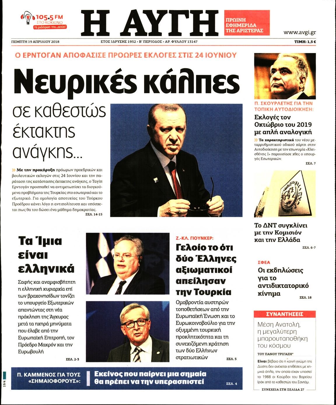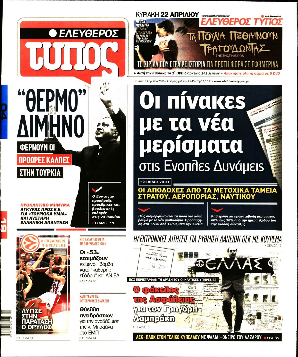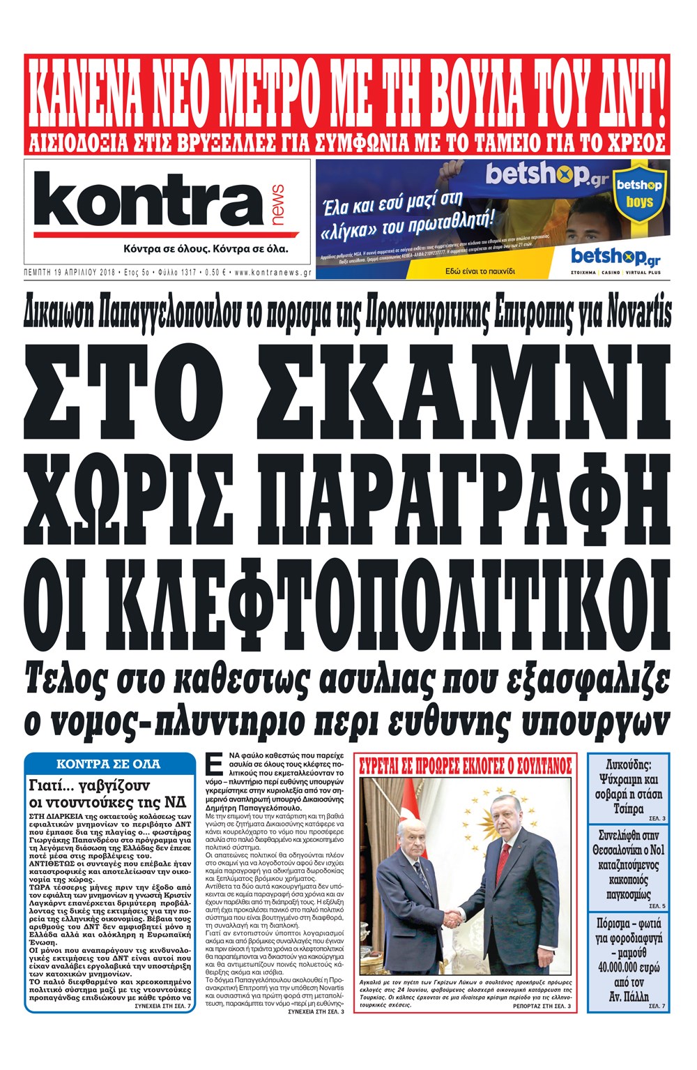 Οι πολιτικές εφημερίδες 19/4/2018 Enikos Newsroom 07:32, Πέμπτη 19 Απριλίου 2018 Media Διαβάστε τα σημερινά πρωτοσέλιδα των πολιτικών εφημερίδων: ΠΟΛΙΤΙΚΕΣ ΕΦΗΜΕΡΙΔΕΣ ΠΡΩΤΟΣΕΛΙΔΑ Μοιράσου το: σχολίασε κι εσύ (0 σχόλια) Ακολουθήστε το enikos.gr στο Google News και μάθετε πρώτοι όλες τις ειδήσεις Δείτε όλες τις τελευταίες ειδήσεις από την Ελλάδα και τον Κόσμο στο enikos.gr Ειδήσεις Ροή Ειδήσεων 7 λεπτά πριν Μπλόκα: Οι αγρότες σηκώνουν τις μπάρες σε διόδια για τους εκδρομείς των Χριστουγέννων και μοιράζουν προϊόντα – Βίντεο 44 λεπτά πριν Τσιάρας προς αγρότες: Τα μπλόκα και τα πείσματα δεν ωφελούν – Οι λύσεις περνούν μέσα από τον διάλογο 2 ώρες πριν Αρχεία Έπσταϊν: Οι συγκλονιστικές φωτογραφίες – Ο Μάικλ Τζάκσον, ο Μικ Τζάγκερ και ο Κέβιν Σπέισι ανάμεσα στους διάσημους που απεικονίζονται 3 ώρες πριν Νέες ταυτότητες: Μεγάλη αναμονή για ραντεβού στην Αττική – Τέλος τα ταξίδια εκτός Ελλάδος από τον Αύγουστο για όσους δεν έχουν αλλάξει 2 ώρες πριν Ινδία: Επτά ελέφαντες σκοτώθηκαν κατά τη σύγκρουση επιβατικού τρένου με κοπάδι 4 ώρες πριν Μία νέα «χρυσή» περίοδος αρχίζει για 3 ζώδια από σήμερα – «Μία αναπάντεχη ευκαιρία οδηγεί στην επιτυχία» 5 ώρες πριν Αγχώνεται για το χριστουγεννιάτικο δώρο που πήρε στην πλούσια σύντροφό του – «Φοβάμαι πως θα το βρει φθηνιάρικο, φοράει βραχιόλια Cartier» 2 ώρες πριν Διαιτολόγος αποκαλύπτει 9 πρωινές συνήθειες που «λιώνουν» το κοιλιακό λίπος – «Υποστηρίζουν την υγιεινή απώλεια βάρους» 3 ώρες πριν Οι 7 φράσεις που δεν λένε ποτέ οι συναισθηματικά έξυπνοι άνθρωποι κατά τη διάρκεια ενός καβγά 4 λεπτά πριν Πέτρου Ράλλη: Καρέ – καρέ η κλοπή αυτοκινήτου μέσα σε 2,5 λεπτά 7 λεπτά πριν Μπλόκα: Οι αγρότες σηκώνουν τις μπάρες σε διόδια για τους εκδρομείς των Χριστουγέννων και μοιράζουν προϊόντα – Βίντεο 11 λεπτά πριν Δημήτρης Ουγγαρέζος για τον καβγά του με την Κατερίνα Ζαρίφη: «Ήταν μια αυτανάφλεξη, όπως έγινε έφυγε» 19 λεπτά πριν Κικίλιας: «Ολοκληρώθηκαν πληρωμές 22,16 εκ. ευρώ για το μεταφορικό ισοδύναμο» 27 λεπτά πριν Πάτρα: Πέθανε 46χρονος έπειτα από λιποθυμικό επεισόδιο στο σπίτι του ENIKOS NETWORK Η αποχή από την αναπαραγωγή παρατείνει τη ζωή στα ζώα, σύμφωνα με μελέτη – Τι ισχύει για τους ανθρώπους; Σημαντικές επαφές στις ΗΠΑ είχε ο υπουργός Υγείας Άδωνις Γεωργιάδης Χειμερινές εκπτώσεις 2026: Πρεμιέρα στις 12 Ιανουαρίου – Πόσο θα διαρκέσουν και τι πρέπει να γνωρίζουν οι καταναλωτές Χρήστος Δήμας: Στα 2,5 εκατ. ευρώ την ημέρα το κόστος από το άνοιγμα των διοδίων από τους αγρότες – Θα αξιώσουν αποζημίωση ... Χαρτογραφώντας το «σημείο χωρίς επιστροφή»: Για πρώτη φορά αποκαλύπτεται με λεπτομέρεια το ακανθώδες όριο της ατμόσφαιρας τ... Η Google καταργεί τη λειτουργία «dark web report» – Πώς θα μπορούν οι χρήστες να διαγράφουν τα δεδομένα τους περισσότερα 12:53 , Σάββατο 20 Δεκεμβρίου 2025 Να μ’ αγαπάς: Το παρελθόν έρχεται στο φως – Καταιγιστικές εξελίξεις στα τελευταία επεισόδια του 2025 Ο Άγγελος αποκαλύπτεται, η Φωτεινή ανησυχεί για τον Λευτέρη και η Ζωή έρχεται αντιμέτωπη με το... 11:41 , Σάββατο 20 Δεκεμβρίου 2025 «Η αγάπη δεν χάνεται ποτέ»: Η μικρού μήκους ταινία κινουμένων σχεδίων που θέτει ερωτήματα για τη ζωή και τον θάνατο Ο θάνατος είναι ένα από τα πιο σκληρά θέματα που καλείται να διαχειριστεί κάποιος στη διάρκεια... 09:30 , Σάββατο 20 Δεκεμβρίου 2025 «Porto Leone: Στη γειτονιά με τα κόκκινα φανάρια» – Ο Χρόνης αποκαλύπτει στην Αλεξάνδρα το μυστικό για το παιδί της Λένας Η μεγάλη δραματική σειρ
