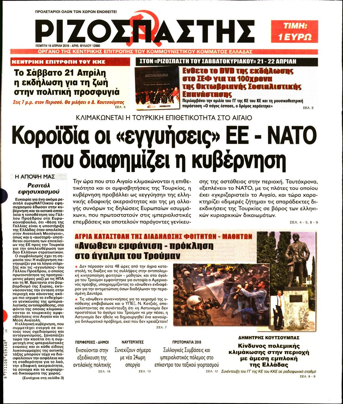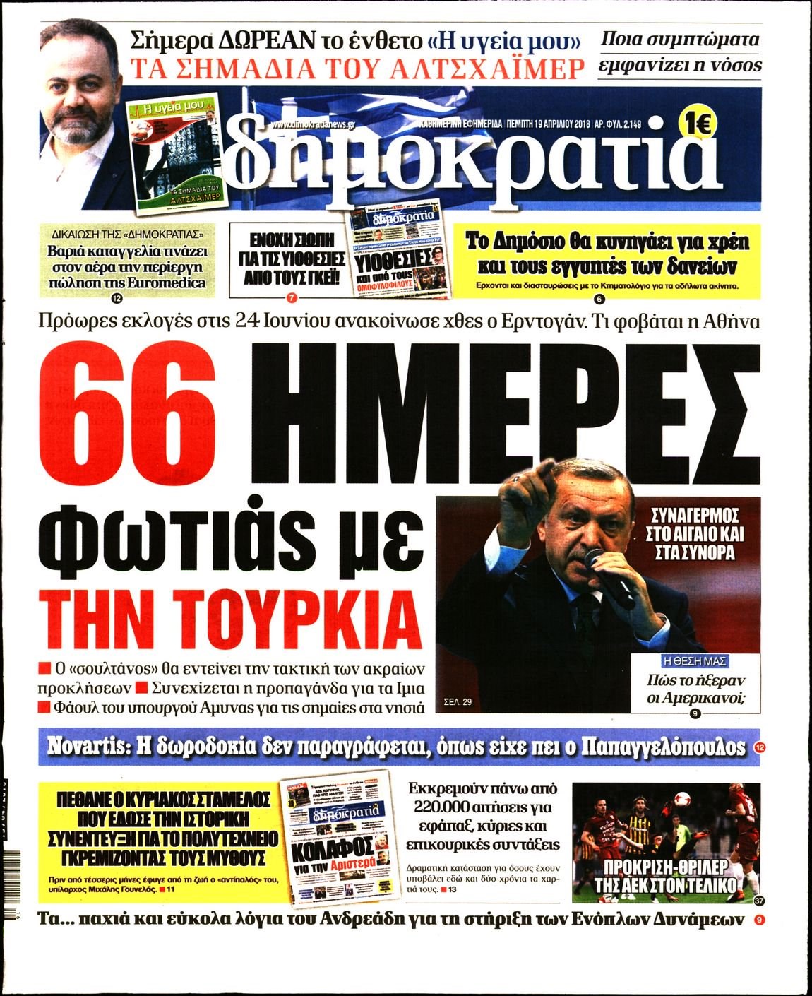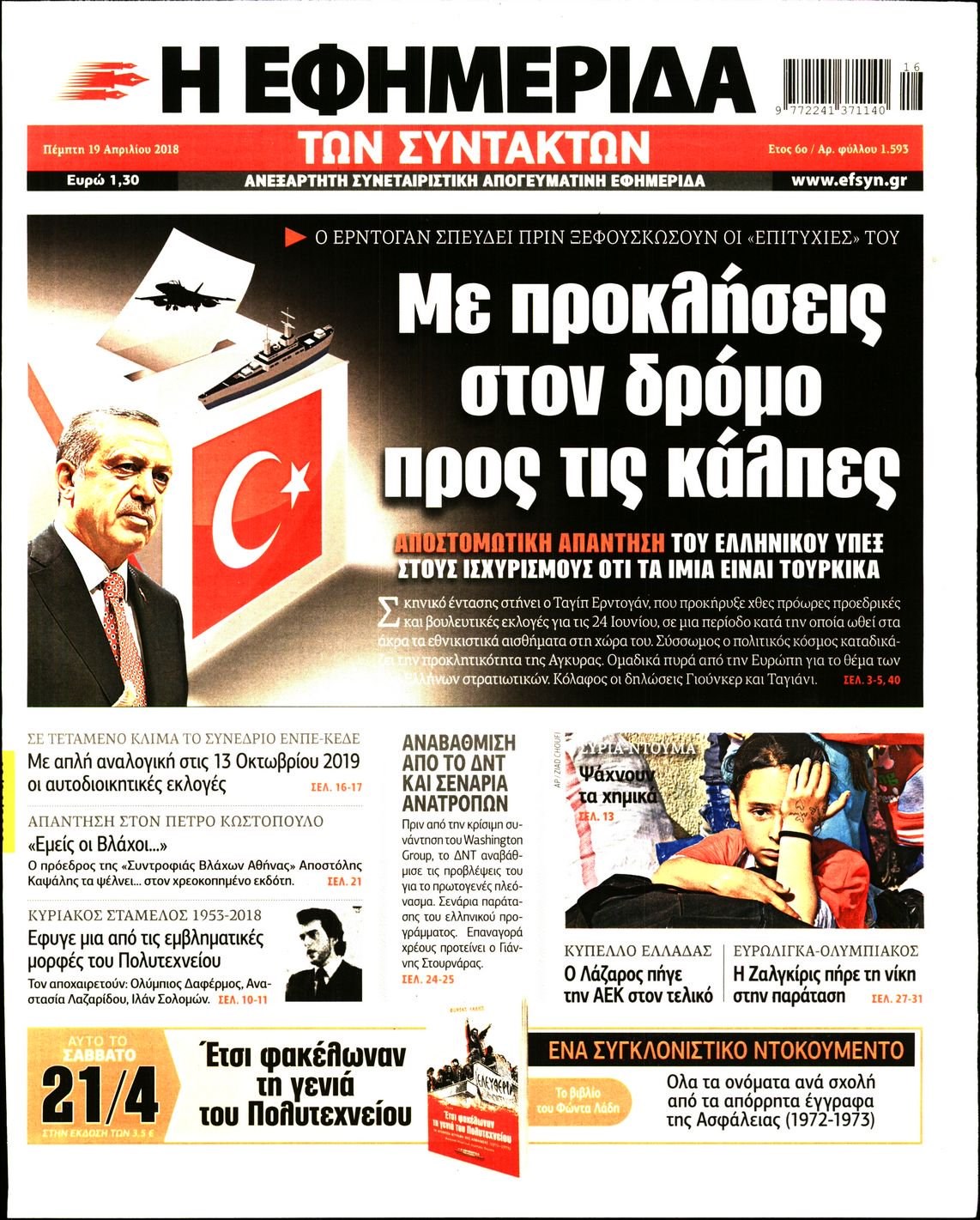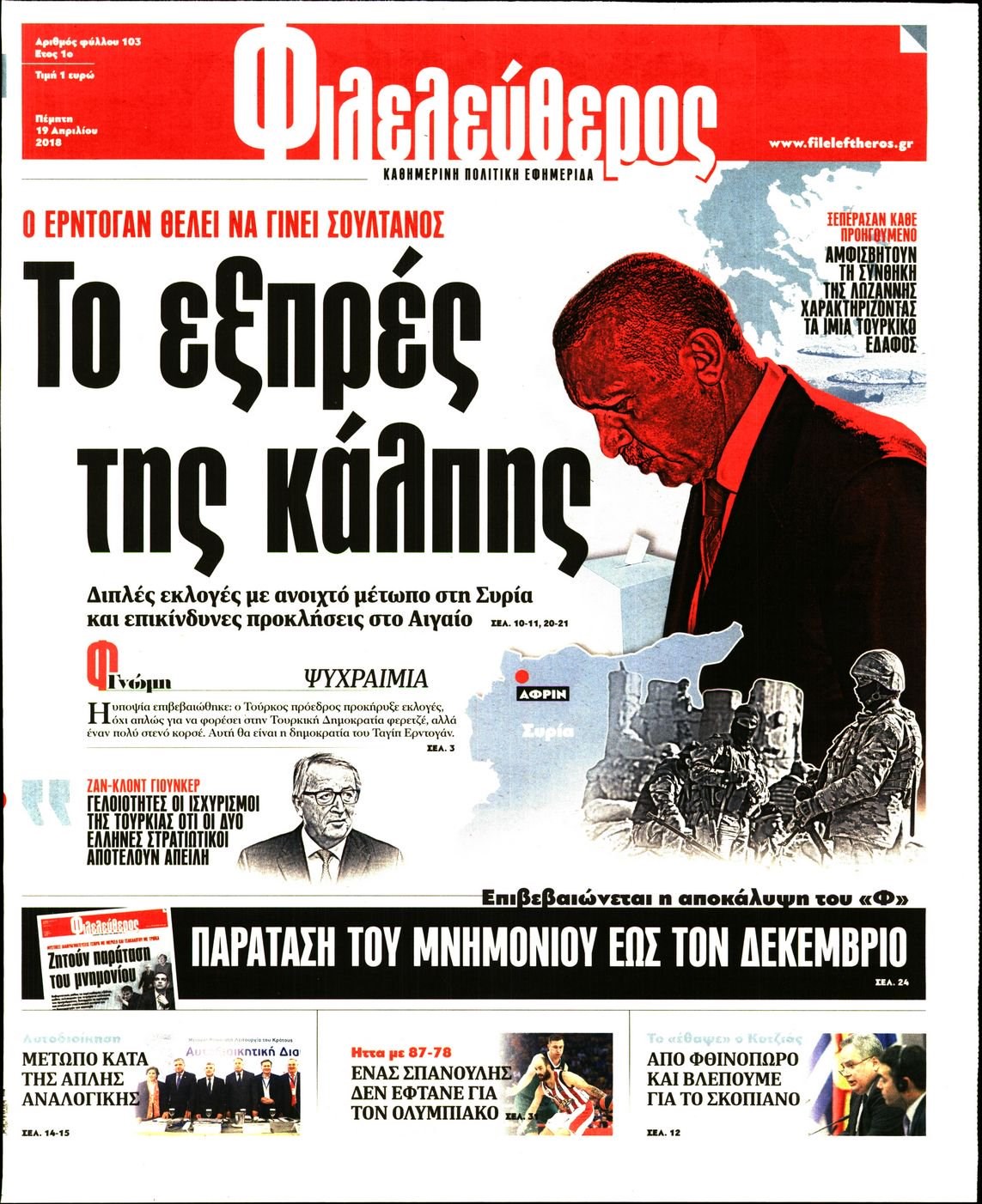 Οι πολιτικές εφημερίδες 19/4/2018 Enikos Newsroom 07:32, Πέμπτη 19 Απριλίου 2018 Media Διαβάστε τα σημερινά πρωτοσέλιδα των πολιτικών εφημερίδων: ΠΟΛΙΤΙΚΕΣ ΕΦΗΜΕΡΙΔΕΣ ΠΡΩΤΟΣΕΛΙΔΑ Μοιράσου το: σχολίασε κι εσύ (0 σχόλια) Ακολουθήστε το enikos.gr στο Google News και μάθετε πρώτοι όλες τις ειδήσεις Δείτε όλες τις τελευταίες ειδήσεις από την Ελλάδα και τον Κόσμο στο enikos.gr Ειδήσεις Ροή Ειδήσεων 7 λεπτά πριν Μπλόκα: Οι αγρότες σηκώνουν τις μπάρες σε διόδια για τους εκδρομείς των Χριστουγέννων και μοιράζουν προϊόντα – Βίντεο 44 λεπτά πριν Τσιάρας προς αγρότες: Τα μπλόκα και τα πείσματα δεν ωφελούν – Οι λύσεις περνούν μέσα από τον διάλογο 2 ώρες πριν Αρχεία Έπσταϊν: Οι συγκλονιστικές φωτογραφίες – Ο Μάικλ Τζάκσον, ο Μικ Τζάγκερ και ο Κέβιν Σπέισι ανάμεσα στους διάσημους που απεικονίζονται 3 ώρες πριν Νέες ταυτότητες: Μεγάλη αναμονή για ραντεβού στην Αττική – Τέλος τα ταξίδια εκτός Ελλάδος από τον Αύγουστο για όσους δεν έχουν αλλάξει 2 ώρες πριν Ινδία: Επτά ελέφαντες σκοτώθηκαν κατά τη σύγκρουση επιβατικού τρένου με κοπάδι 4 ώρες πριν Μία νέα «χρυσή» περίοδος αρχίζει για 3 ζώδια από σήμερα – «Μία αναπάντεχη ευκαιρία οδηγεί στην επιτυχία» 5 ώρες πριν Αγχώνεται για το χριστουγεννιάτικο δώρο που πήρε στην πλούσια σύντροφό του – «Φοβάμαι πως θα το βρει φθηνιάρικο, φοράει βραχιόλια Cartier» 2 ώρες πριν Διαιτολόγος αποκαλύπτει 9 πρωινές συνήθειες που «λιώνουν» το κοιλιακό λίπος – «Υποστηρίζουν την υγιεινή απώλεια βάρους» 3 ώρες πριν Οι 7 φράσεις που δεν λένε ποτέ οι συναισθηματικά έξυπνοι άνθρωποι κατά τη διάρκεια ενός καβγά 4 λεπτά πριν Πέτρου Ράλλη: Καρέ – καρέ η κλοπή αυτοκινήτου μέσα σε 2,5 λεπτά 7 λεπτά πριν Μπλόκα: Οι αγρότες σηκώνουν τις μπάρες σε διόδια για τους εκδρομείς των Χριστουγέννων και μοιράζουν προϊόντα – Βίντεο 11 λεπτά πριν Δημήτρης Ουγγαρέζος για τον καβγά του με την Κατερίνα Ζαρίφη: «Ήταν μια αυτανάφλεξη, όπως έγινε έφυγε» 19 λεπτά πριν Κικίλιας: «Ολοκληρώθηκαν πληρωμές 22,16 εκ. ευρώ για το μεταφορικό ισοδύναμο» 27 λεπτά πριν Πάτρα: Πέθανε 46χρονος έπειτα από λιποθυμικό επεισόδιο στο σπίτι του ENIKOS NETWORK Η αποχή από την αναπαραγωγή παρατείνει τη ζωή στα ζώα, σύμφωνα με μελέτη – Τι ισχύει για τους ανθρώπους; Σημαντικές επαφές στις ΗΠΑ είχε ο υπουργός Υγείας Άδωνις Γεωργιάδης Χειμερινές εκπτώσεις 2026: Πρεμιέρα στις 12 Ιανουαρίου – Πόσο θα διαρκέσουν και τι πρέπει να γνωρίζουν οι καταναλωτές Χρήστος Δήμας: Στα 2,5 εκατ. ευρώ την ημέρα το κόστος από το άνοιγμα των διοδίων από τους αγρότες – Θα αξιώσουν αποζημίωση ... Χαρτογραφώντας το «σημείο χωρίς επιστροφή»: Για πρώτη φορά αποκαλύπτεται με λεπτομέρεια το ακανθώδες όριο της ατμόσφαιρας τ... Η Google καταργεί τη λειτουργία «dark web report» – Πώς θα μπορούν οι χρήστες να διαγράφουν τα δεδομένα τους περισσότερα 12:53 , Σάββατο 20 Δεκεμβρίου 2025 Να μ’ αγαπάς: Το παρελθόν έρχεται στο φως – Καταιγιστικές εξελίξεις στα τελευταία επεισόδια του 2025 Ο Άγγελος αποκαλύπτεται, η Φωτεινή ανησυχεί για τον Λευτέρη και η Ζωή έρχεται αντιμέτωπη με το... 11:41 , Σάββατο 20 Δεκεμβρίου 2025 «Η αγάπη δεν χάνεται ποτέ»: Η μικρού μήκους ταινία κινουμένων σχεδίων που θέτει ερωτήματα για τη ζωή και τον θάνατο Ο θάνατος είναι ένα από τα πιο σκληρά θέματα που καλείται να διαχειριστεί κάποιος στη διάρκεια... 09:30 , Σάββατο 20 Δεκεμβρίου 2025 «Porto Leone: Στη γειτονιά με τα κόκκινα φανάρια» – Ο Χρόνης αποκαλύπτει στην Αλεξάνδρα το μυστικό για το παιδί της Λένας Η μεγάλη δραματική σειρ