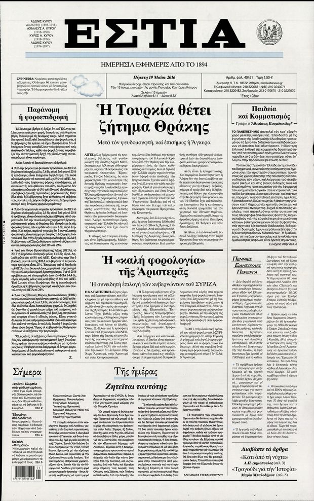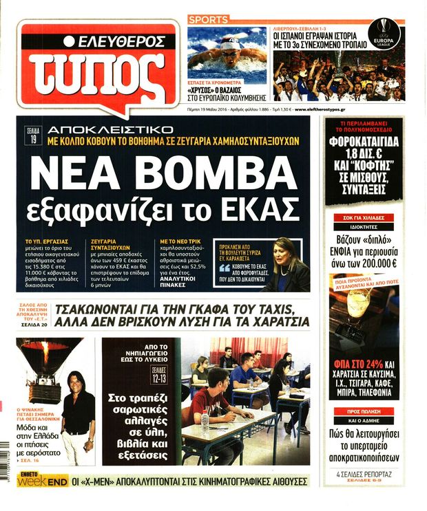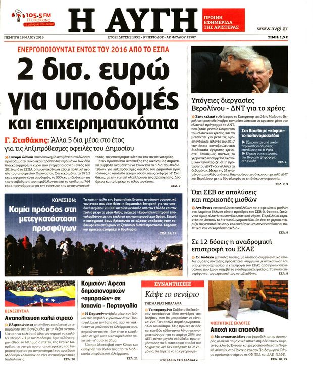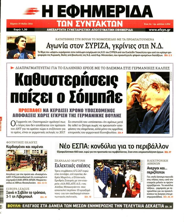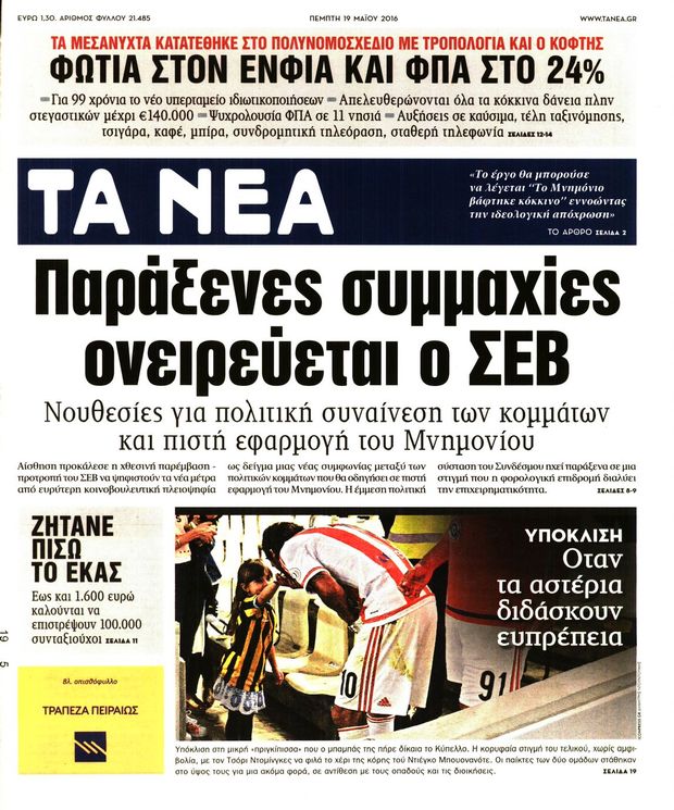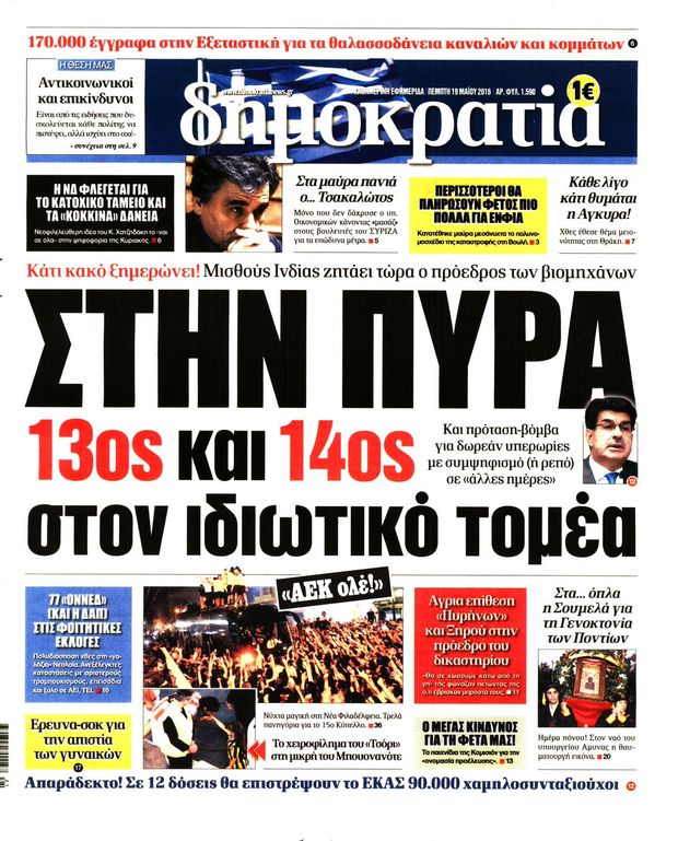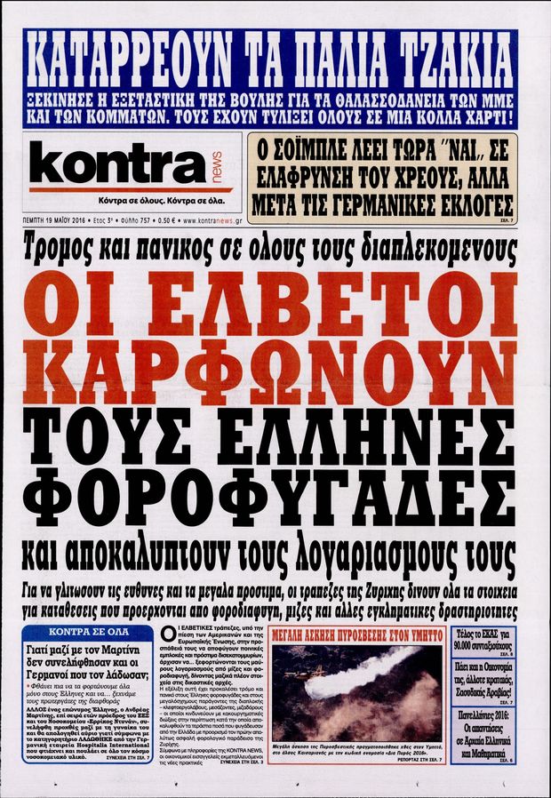 Oι πολιτικές εφημερίδες 19/5/2016 Enikos Newsroom 06:11, Πέμπτη 19 Μαΐου 2016 Media Διαβάστε τα σημερινά πρωτοσέλιδα των πολιτικών εφημερίδων: ΠΟΛΙΤΙΚΕΣ ΕΦΗΜΕΡΙΔΕΣ ΠΡΩΤΟΣΕΛΙΔΑ Μοιράσου το: σχολίασε κι εσύ (0 σχόλια) Ακολουθήστε το enikos.gr στο Google News και μάθετε πρώτοι όλες τις ειδήσεις Δείτε όλες τις τελευταίες ειδήσεις από την Ελλάδα και τον Κόσμο στο enikos.gr Ειδήσεις Ροή Ειδήσεων 1 ώρα πριν Υπόθεση Έπσταϊν: Το Υπουργείο Δικαιοσύνης δημοσιοποίησε μια σειρά από εξαιρετικά επεξεργασμένα αρχεία – «Λείπουν τα πιο σημαντικά έγγραφα», λένε οι Δημοκρατικοί 3 ώρες πριν Σαρωτικοί οι έλεγχοι στους δρόμους ενόψει εορτών – Μπλόκα της τροχαίας σε κεντρικές αρτηρίες της Αττικής 1 ώρα πριν ΟΝΕΧ – MEGATUGS: Ξεκίνησε η ναυπήγηση ρυμουλκών στην Ελλάδα – Προθάλαμος πολεμικών πλοίων – Δείτε φωτογραφίες και βίντεο 1 ώρα πριν Καιρός: Αλλαγή σκηνικού σήμερα με βροχές και πτώση της θερμοκρασίας – Οι προβλέψεις των μετεωρολόγων για τα Χριστούγεννα 10 ώρες πριν Χριστούγεννα στα μπλόκα: Επιμένουν στις κινητοποιήσεις τους οι αγρότες – Ανοίγουν τα διόδια το Σαββατοκύριακο 3 ώρες πριν Αυγά: Πόσα μπορείτε να τρώτε την ημέρα με ασφάλεια για μέγιστη πρόσληψη πρωτεΐνης 3 ώρες πριν Τα ζώδια σήμερα, Σάββατο 20 Δεκεμβρίου: Παρθένοι, το σύμπαν σας δίνει το κλειδί 3 ώρες πριν Οπτική ψευδαίσθηση: Μόνο αν είσαι ο Σέρλοκ Χολμς θα βρεις τον αριθμό «87» σε 7 δευτερόλεπτα 49 λεπτά πριν Αρχαιολόγοι ανακάλυψαν σε χωράφι απεικόνιση 600 ετών ενός Αγίου – Τα στοιχεία που δείχνουν ότι μαρτύρησε 1 λεπτό πριν Γιώργος Μαζωνάκης: Τη Δευτέρα η μήνυση του τραγουδιστή κατά του 22χρονου 10 λεπτά πριν Αμαλία Κωστοπούλου: Το μήνυμα για το χειρουργείο στο γόνατο – «Αυτός ο τραυματισμός μού στέρησε πολλά…» 17 λεπτά πριν Ο «χάρτης» με τις αυξήσεις και τις φοροελαφρύνσεις του 2026 – Ποιοι και πόσα κερδίζουν 25 λεπτά πριν Η τέλεια συνταγή για cookies με κομμάτια σοκολάτας 33 λεπτά πριν MyHealth App: Τα στοιχεία για τον Προσωπικό Βοηθό Υγείας Πολίτη – Τι ερωτήματα έγιναν μέσα σε 7 ημέρες ENIKOS NETWORK Πόσα κιλά παίρνουμε πραγματικά τα Χριστούγεννα, σύμφωνα με την επιστήμη – Πώς να το αποτρέψουμε; Το δημοφιλές ρόφημα που αυξάνει την πίεση πιο γρήγορα και από το αλάτι Mega χριστουγεννιάτικη φορολοταρία: «Κλείδωσε» η ημερομηνία για την κλήρωση – Ερωτήσεις και απαντήσεις Αναστολή μέτρων αναγκαστικής εκτέλεσης για κτηνοτρόφους που πλήττονται από την ευλογιά των αιγοπροβάτων Χαρτογραφώντας το «σημείο χωρίς επιστροφή»: Για πρώτη φορά αποκαλύπτεται με λεπτομέρεια το ακανθώδες όριο της ατμόσφαιρας τ... Η Google καταργεί τη λειτουργία «dark web report» – Πώς θα μπορούν οι χρήστες να διαγράφουν τα δεδομένα τους περισσότερα 08:14 , Σάββατο 20 Δεκεμβρίου 2025 Τρομεροί γονείς: Η Μαρία Καβογιάννη εισβάλλει στο σπίτι της οικογένειας Στεφανίδη Όσα θα δούμε στο νέο διπλό επεισόδιο της σειράς «Τρομεροί γονείς», σήμερα Σάββατο 20 Δεκεμβρίο... 05:48 , Σάββατο 20 Δεκεμβρίου 2025 Οι οικονομικές εφημερίδες 20/12/2025 Διαβάστε τα πρωτοσέλιδα από τις οικονομικές εφημερίδες, σήμερα 20/12/2025. 05:43 , Σάββατο 20 Δεκεμβρίου 2025 Οι αθλητικές εφημερίδες 20/12/2025 Διαβάστε τα πρωτοσέλιδα από τις αθλητικές εφημερίδες, σήμερα 20/12/2025. 05:38 , Σάββατο 20 Δεκεμβρίου 2025 Οι πολιτικές εφημερίδες 20/12/2025 Διαβάστε τα πρωτοσέλιδα από τις πολιτικές εφημερίδες, σήμερα 20/12/2025. ΤΕΛΕΥΤΑΙΕΣ ΕΙΔΗΣΕΙΣ 10 λεπτά πριν Αμαλία Κωστοπούλου: Το μήνυμα για το χειρουργείο στο... 17 λεπτά πριν Ο «χάρτης» με τις αυξήσεις και τις φοροελαφρύνσεις... 25 λεπ