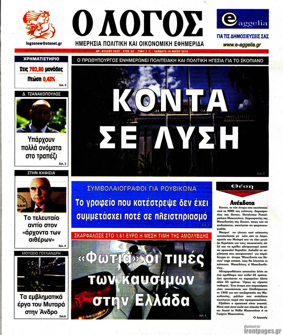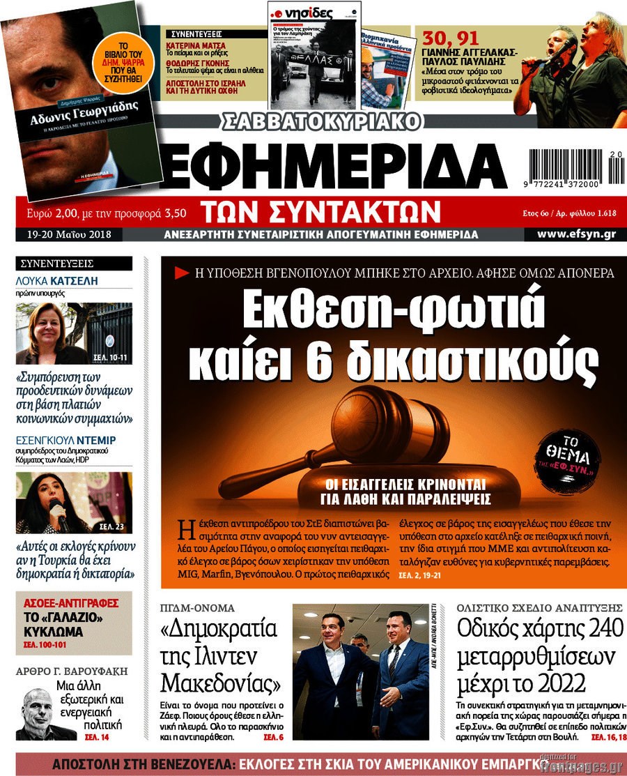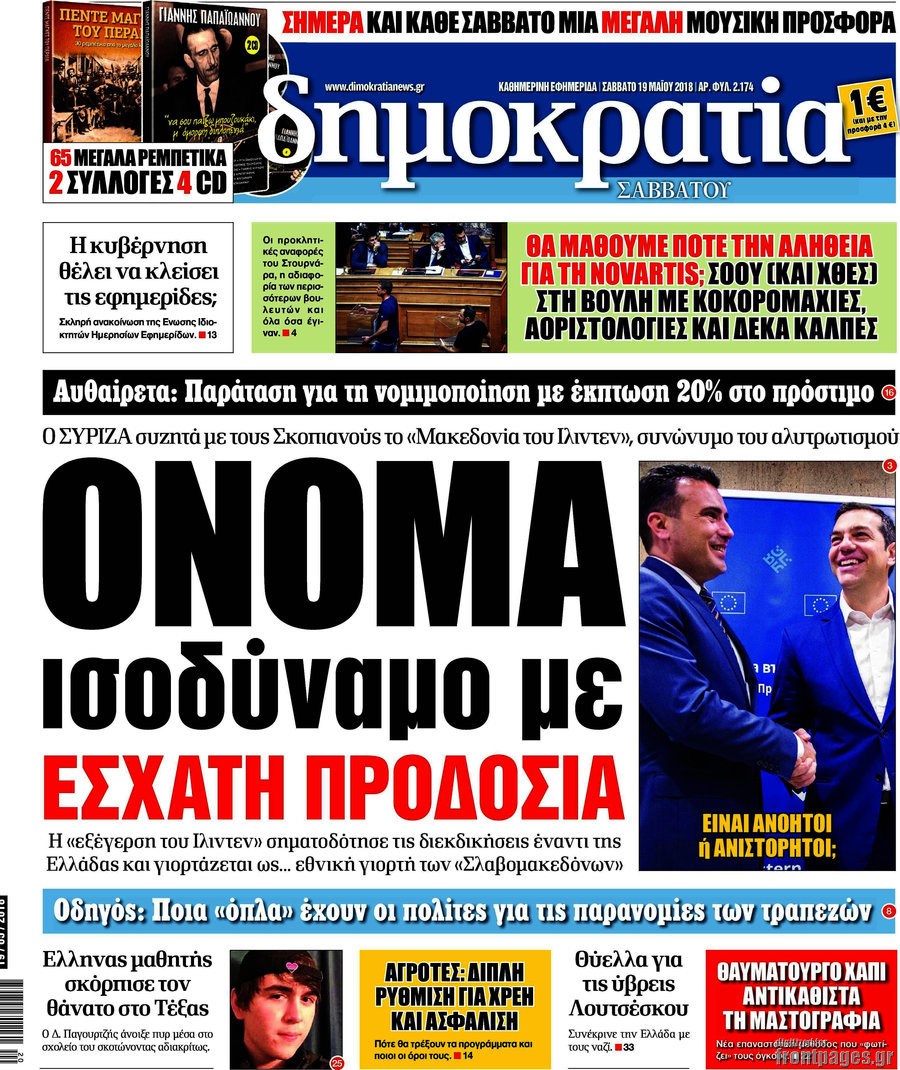 Οι πολιτικές εφημερίδες 19/5/2018 Enikos Newsroom 06:03, Σάββατο 19 Μαΐου 2018 Media Διαβάστε τα σημερινά πρωτοσέλιδα των πολιτικών εφημερίδων: ΠΟΛΙΤΙΚΕΣ ΕΦΗΜΕΡΙΔΕΣ Μοιράσου το: σχολίασε κι εσύ (0 σχόλια) Ακολουθήστε το enikos.gr στο Google News και μάθετε πρώτοι όλες τις ειδήσεις Δείτε όλες τις τελευταίες ειδήσεις από την Ελλάδα και τον Κόσμο στο enikos.gr Ειδήσεις Ροή Ειδήσεων 21 λεπτά πριν Ζελένσκι: Μόνο οι ΗΠΑ και ο Τραμπ μπορούν να πιέσουν τη Ρωσία να βάλει τέλος στον πόλεμο 40 λεπτά πριν Φοινικούντα: Προφυλακιστέος ο 30χρονος για συνέργεια στη διπλή δολοφονία – Και άλλα πρόσωπα στο «μικροσκόπιο» 2 ώρες πριν Κυριάκος Μητσοτάκης: Στην Ιερουσαλήμ την Τρίτη ο Πρωθυπουργός για την τριμερή Ελλάδας, Κύπρου, Ισραήλ – Θα συναντηθεί και με τον Αμπάς 5 ώρες πριν Πώς δρούσε το κύκλωμα που διακινούσε ναρκωτικά σε σχολεία – Υπέβαλαν σε βασανιστήρια όσους δεν τηρούσαν τους «κανόνες πειθαρχίας» 1 ώρα πριν Πάπας Λέων: Όταν έχει αϋπνίες επενδύει παραγωγικά τον χρόνο του – Ποιο παιχνίδι παίζει στο κινητό 31 λεπτά πριν Αριθμολογία: Ο αριθμός του φύλακα αγγέλου σας, με βάση τον μήνα γέννησής σας – «Έτσι σας στέλνει σημάδια το σύμπαν» 2 ώρες πριν Πώς να απαλλαγείτε από τη μυρωδιά του τηγανητού φαγητού: Το μυστικό βρίσκεται στην κουζίνα σας 3 ώρες πριν Μήπως οι γιορτές σας δεν είναι τόσο τέλειες; 7 χριστουγεννιάτικες συνήθειες που μαρτυρούν ότι μια οικογένεια είναι δυσλειτουργική 13 ώρες πριν Enerwave: Το νέο «ρεύμα» στη λιανική ενέργειας που αλλάζει την εμπειρία του καταναλωτή 14 λεπτά πριν Εριέττα Μανούρη: «Έχω νιώσει ανταγωνισμό από άντρες, μύθος αυτό που λένε για τις γυναίκες» 21 λεπτά πριν Ζελένσκι: Μόνο οι ΗΠΑ και ο Τραμπ μπορούν να πιέσουν τη Ρωσία να βάλει τέλος στον πόλεμο 31 λεπτά πριν Αριθμολογία: Ο αριθμός του φύλακα αγγέλου σας, με βάση τον μήνα γέννησής σας – «Έτσι σας στέλνει σημάδια το σύμπαν» 40 λεπτά πριν Φοινικούντα: Προφυλακιστέος ο 30χρονος για συνέργεια στη διπλή δολοφονία – Και άλλα πρόσωπα στο «μικροσκόπιο» 51 λεπτά πριν Super League: Ο Σιαμπάνης «κατέβασε ρολά» και ο Βόλος νίκησε 1-0 τον Παναιτωλικό ENIKOS NETWORK Οι γυναίκες αποκαλύπτουν το πιο ελκυστικό πράγμα που μπορεί να κάνει ένας άνδρας Ομορφιά και αντιγήρανση: Ειδικοί μιλούν για συσκευές περιποίησης του δέρματος Εφορία: 7 αλλαγές σε δηλώσεις και ελέγχους ακινήτων – Όλα όσα πρέπει να γνωρίζετε Πορτοκαλί τιμολόγια ρεύματος: Τα σημεία που πρέπει να προσέξουν οι καταναλωτές – Πότε θα εφαρμοστούν Χαρτογραφώντας το «σημείο χωρίς επιστροφή»: Για πρώτη φορά αποκαλύπτεται με λεπτομέρεια το ακανθώδες όριο της ατμόσφαιρας τ... Η Google καταργεί τη λειτουργία «dark web report» – Πώς θα μπορούν οι χρήστες να διαγράφουν τα δεδομένα τους περισσότερα 20:30 , Σάββατο 20 Δεκεμβρίου 2025 Αυτή την Κυριακή με τη Realnews: Instyle, μαζί Drive και Realnews Geopolitics Αυτή την Κυριακή με τη Realnews: Instyle, μαζί Drive και Realnews Geopolitics Instyle Η Άννα Ρ... 20:28 , Σάββατο 20 Δεκεμβρίου 2025 Ο ΑΝΤ1 γεμίζει τις γιορτές με μουσική – Ποιους καλλιτέχνες θα απολαύσουμε Φέτος στον ΑΝΤ1 γιορτάζουμε τις νύχτες μας παρέα με αγαπημένους καλλιτέχνες και μεγάλες μουσι... 18:19 , Σάββατο 20 Δεκεμβρίου 2025 HOTΕΛ ΕΛVIRA: Η Ελβίρα μαθαίνει πως ο Χάρι μένει κρυφά στο ξενοδοχείο του Παντελή Συνεχίζονται οι εκλογές για πρόεδρο, στο νέο επεισόδιο της κωμικής σειράς του MEGA, HOTΕΛ ΕΛVI... 14:04 , Σάββατο 20 Δεκεμβρίου 2025 Η Realnews αυτής της Κυριακής (21/12/2025) Με τίτλο: «Ασπίδα προστασίας για την Ελλάδα» κυκλοφορεί, αυτήν την Κυριακή, η Realnews. Σημαντ... ΤΕΛΕ