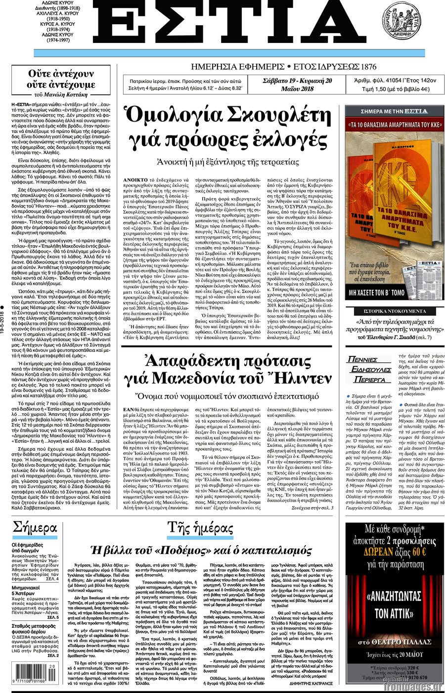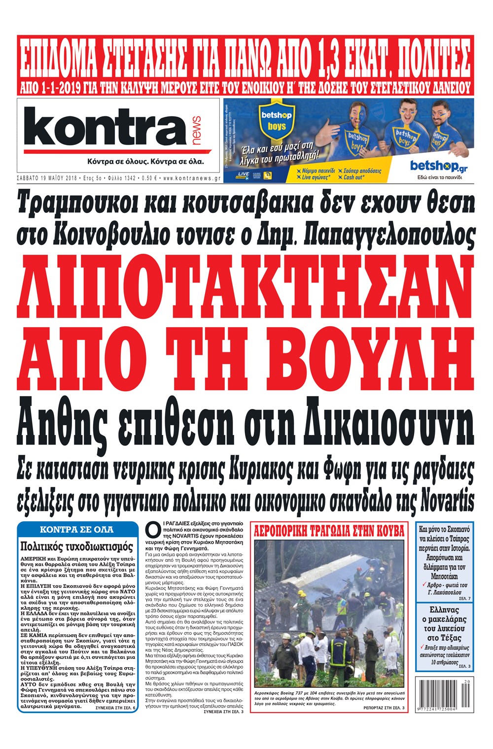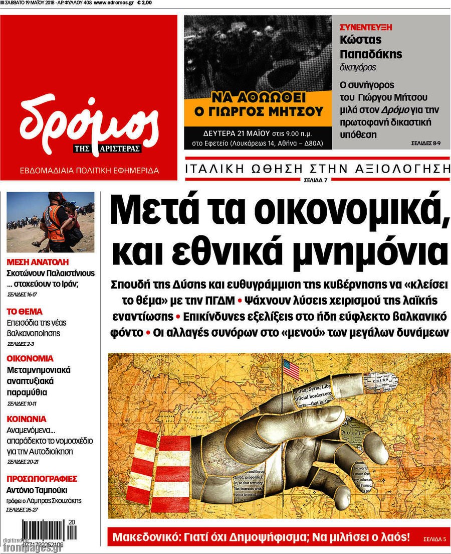 Οι πολιτικές εφημερίδες 19/5/2018 Enikos Newsroom 06:03, Σάββατο 19 Μαΐου 2018 Media Διαβάστε τα σημερινά πρωτοσέλιδα των πολιτικών εφημερίδων: ΠΟΛΙΤΙΚΕΣ ΕΦΗΜΕΡΙΔΕΣ Μοιράσου το: σχολίασε κι εσύ (0 σχόλια) Ακολουθήστε το enikos.gr στο Google News και μάθετε πρώτοι όλες τις ειδήσεις Δείτε όλες τις τελευταίες ειδήσεις από την Ελλάδα και τον Κόσμο στο enikos.gr Ειδήσεις Ροή Ειδήσεων 21 λεπτά πριν Ζελένσκι: Μόνο οι ΗΠΑ και ο Τραμπ μπορούν να πιέσουν τη Ρωσία να βάλει τέλος στον πόλεμο 40 λεπτά πριν Φοινικούντα: Προφυλακιστέος ο 30χρονος για συνέργεια στη διπλή δολοφονία – Και άλλα πρόσωπα στο «μικροσκόπιο» 2 ώρες πριν Κυριάκος Μητσοτάκης: Στην Ιερουσαλήμ την Τρίτη ο Πρωθυπουργός για την τριμερή Ελλάδας, Κύπρου, Ισραήλ – Θα συναντηθεί και με τον Αμπάς 5 ώρες πριν Πώς δρούσε το κύκλωμα που διακινούσε ναρκωτικά σε σχολεία – Υπέβαλαν σε βασανιστήρια όσους δεν τηρούσαν τους «κανόνες πειθαρχίας» 1 ώρα πριν Πάπας Λέων: Όταν έχει αϋπνίες επενδύει παραγωγικά τον χρόνο του – Ποιο παιχνίδι παίζει στο κινητό 31 λεπτά πριν Αριθμολογία: Ο αριθμός του φύλακα αγγέλου σας, με βάση τον μήνα γέννησής σας – «Έτσι σας στέλνει σημάδια το σύμπαν» 2 ώρες πριν Πώς να απαλλαγείτε από τη μυρωδιά του τηγανητού φαγητού: Το μυστικό βρίσκεται στην κουζίνα σας 3 ώρες πριν Μήπως οι γιορτές σας δεν είναι τόσο τέλειες; 7 χριστουγεννιάτικες συνήθειες που μαρτυρούν ότι μια οικογένεια είναι δυσλειτουργική 13 ώρες πριν Enerwave: Το νέο «ρεύμα» στη λιανική ενέργειας που αλλάζει την εμπειρία του καταναλωτή 14 λεπτά πριν Εριέττα Μανούρη: «Έχω νιώσει ανταγωνισμό από άντρες, μύθος αυτό που λένε για τις γυναίκες» 21 λεπτά πριν Ζελένσκι: Μόνο οι ΗΠΑ και ο Τραμπ μπορούν να πιέσουν τη Ρωσία να βάλει τέλος στον πόλεμο 31 λεπτά πριν Αριθμολογία: Ο αριθμός του φύλακα αγγέλου σας, με βάση τον μήνα γέννησής σας – «Έτσι σας στέλνει σημάδια το σύμπαν» 40 λεπτά πριν Φοινικούντα: Προφυλακιστέος ο 30χρονος για συνέργεια στη διπλή δολοφονία – Και άλλα πρόσωπα στο «μικροσκόπιο» 51 λεπτά πριν Super League: Ο Σιαμπάνης «κατέβασε ρολά» και ο Βόλος νίκησε 1-0 τον Παναιτωλικό ENIKOS NETWORK Οι γυναίκες αποκαλύπτουν το πιο ελκυστικό πράγμα που μπορεί να κάνει ένας άνδρας Ομορφιά και αντιγήρανση: Ειδικοί μιλούν για συσκευές περιποίησης του δέρματος Εφορία: 7 αλλαγές σε δηλώσεις και ελέγχους ακινήτων – Όλα όσα πρέπει να γνωρίζετε Πορτοκαλί τιμολόγια ρεύματος: Τα σημεία που πρέπει να προσέξουν οι καταναλωτές – Πότε θα εφαρμοστούν Χαρτογραφώντας το «σημείο χωρίς επιστροφή»: Για πρώτη φορά αποκαλύπτεται με λεπτομέρεια το ακανθώδες όριο της ατμόσφαιρας τ... Η Google καταργεί τη λειτουργία «dark web report» – Πώς θα μπορούν οι χρήστες να διαγράφουν τα δεδομένα τους περισσότερα 20:30 , Σάββατο 20 Δεκεμβρίου 2025 Αυτή την Κυριακή με τη Realnews: Instyle, μαζί Drive και Realnews Geopolitics Αυτή την Κυριακή με τη Realnews: Instyle, μαζί Drive και Realnews Geopolitics Instyle Η Άννα Ρ... 20:28 , Σάββατο 20 Δεκεμβρίου 2025 Ο ΑΝΤ1 γεμίζει τις γιορτές με μουσική – Ποιους καλλιτέχνες θα απολαύσουμε Φέτος στον ΑΝΤ1 γιορτάζουμε τις νύχτες μας παρέα με αγαπημένους καλλιτέχνες και μεγάλες μουσι... 18:19 , Σάββατο 20 Δεκεμβρίου 2025 HOTΕΛ ΕΛVIRA: Η Ελβίρα μαθαίνει πως ο Χάρι μένει κρυφά στο ξενοδοχείο του Παντελή Συνεχίζονται οι εκλογές για πρόεδρο, στο νέο επεισόδιο της κωμικής σειράς του MEGA, HOTΕΛ ΕΛVI... 14:04 , Σάββατο 20 Δεκεμβρίου 2025 Η Realnews αυτής της Κυριακής (21/12/2025) Με τίτλο: «Ασπίδα προστασίας για την Ελλάδα» κυκλοφορεί, αυτήν την Κυριακή, η Realnews. Σημαντ... ΤΕΛΕ