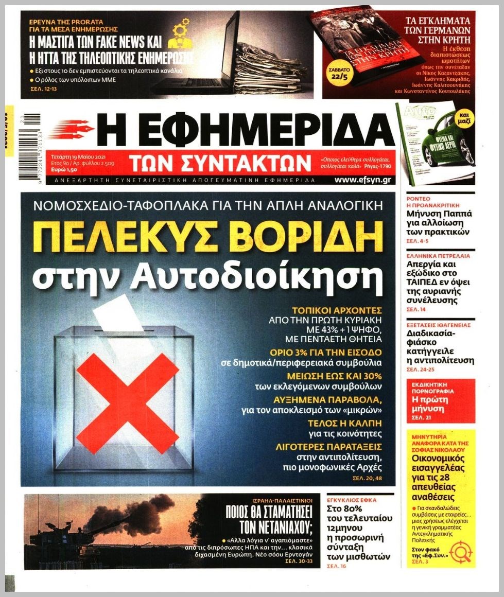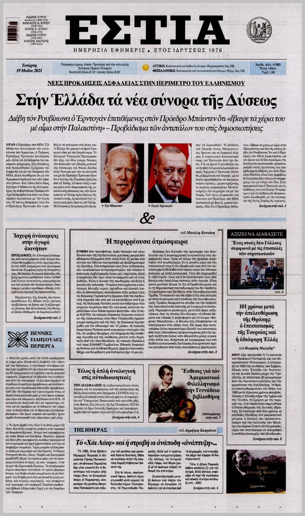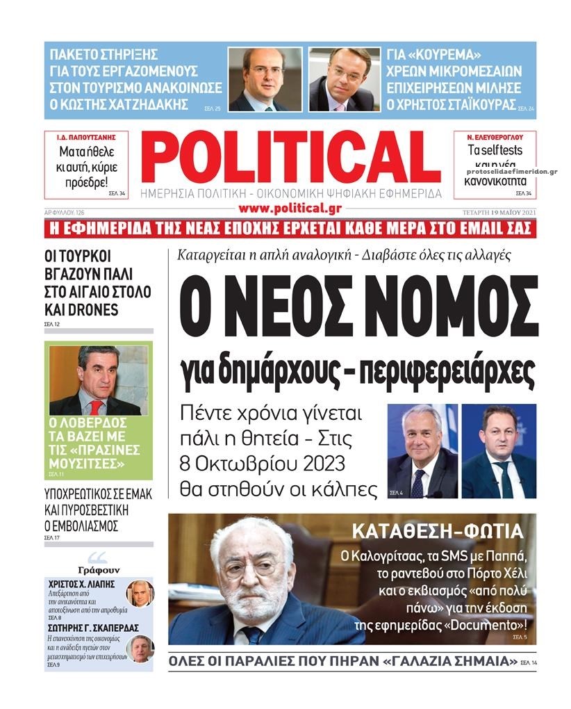 Οι πολιτικές εφημερίδες 19/5/2021 Διονύσης Νίκκας 06:13, Τετάρτη 19 Μαΐου 2021 Media Διαβάστε τα πρωτοσέλιδα των πολιτικών εφημερίδων… ΕΦΗΜΕΡΙΔΕΣ ΠΡΩΤΟΣΕΛΙΔΑ Μοιράσου το: σχολίασε κι εσύ (0 σχόλια) Ακολουθήστε το enikos.gr στο Google News και μάθετε πρώτοι όλες τις ειδήσεις Δείτε όλες τις τελευταίες ειδήσεις από την Ελλάδα και τον Κόσμο στο enikos.gr Ειδήσεις Ροή Ειδήσεων 3 ώρες πριν Αγροτικές κινητοποιήσεις: Εκτροπές κυκλοφορίας στο εθνικό οδικό δίκτυο – Δείτε χάρτες της ΕΛ.ΑΣ. 2 ώρες πριν Καιρός: Ψυχρή εισβολή με βουτιά της θερμοκρασίας τις επόμενες ώρες – Δείτε σε χάρτες πού θα χιονίσει, οι προβλέψεις για την Αττική 2 ώρες πριν Βρετανία: «Σταδιακή επανέναρξη» της σιδηροδρομικής κυκλοφορίας στη σήραγγα της Μάγχης 4 ώρες πριν Σέρρες: Πληροφορίες ότι εντοπίστηκε σημείωμα σε σακάκι του 45χρονου πυροσβέστη που αγνοείται – Τα ευρήματα από το smartwatch 55 λεπτά πριν Ιταλία: Μητέρα και κόρη πέθαναν από τροφική δηλητηρίαση στο εορταστικό τραπέζι 1 ώρα πριν Τα 5 ζώδια που θα δουν τις μετοχές τους να εκτοξεύονται το 2026 – «Θα είναι μία χρονιά γεμάτη ευκαιρίες για οικονομική επιτυχία» 5 ώρες πριν Άνδρας που έχασε πάνω από 45 κιλά αποκαλύπτει: «Αυτή η αλλαγή στον τρόπο ζωής μου είχε τον μεγαλύτερο αντίκτυπο» 6 ώρες πριν Οι άνθρωποι που προτιμούν να μένουν στο σπίτι την παραμονή Πρωτοχρονιάς, έχουν συνήθως αυτά τα 8 χαρακτηριστικά 2 ώρες πριν Ο «Παγετώνας της Αποκάλυψης» βρίσκεται πιο κοντά από ποτέ στην ολική κατάρρευση – Σήμα κινδύνου από επιστήμονες για το «τέρας» που απειλεί τον πλανήτη 7 λεπτά πριν Μαρινάκης για αγροτικές κινητοποιήσεις: Κανένα κράτος, καμία αστυνομία δεν έχει τη δυνατότητα να ρυμουλκήσει 4.000-5.000 τρακτέρ 12 λεπτά πριν Δήμος Αθηναίων: Τα έκτακτα μέτρα που λαμβάνονται λόγω των χαμηλών θερμοκρασιών 18 λεπτά πριν Τουρκία: 357 συλλήψεις σε μεγάλης κλίμακας επιχειρήσεις κατά του Ισλαμικού Κράτους 25 λεπτά πριν Κουίζ για την παλιά Αθήνα: Αναγνωρίζετε την περιοχή; Είναι από τις πιο γνωστές 30 λεπτά πριν Χανιά: Στο νοσοκομείο με δηλητηρίαση 2 εργαζόμενοι της καθαριότητας που εισέπνευσαν τοξικές ουσίες ENIKOS NETWORK Οι τρεις βασικοί άξονες της υγείας για το 2026-Έρχονται 5.000 προσλήψεις Το αρχείο του επιστήμονα Γεωργίου Παπανικολάου που ανακάλυψε το «Τεστ Παπ» στο Ίδρυμα Μιχάλης Κακογιάννης ΕΛΣΤΑΤ: Οριακά αυξημένος ο γενικός δείκτης τιμών παραγωγού στη βιομηχανία τον Νοέμβριο – Δείτε αναλυτικά τα στοιχεία Ρεύμα: Κάτω από τα επίπεδα των 100 ευρώ ανά μεγαβατώρα η τιμή του στην Ελλάδα- Τι θα ισχύσει για τα πράσινα τιμολόγια Ιανου... Ο Google Assistant θα παραμείνει λίγο περισσότερο για ορισμένους χρήστες Android Τεστ προσωπικότητας: Το βάζο που θα επιλέξετε αποκαλύπτει πώς λύνετε προβλήματα στη ζωή σας περισσότερα 16:43 , Τρίτη 30 Δεκεμβρίου 2025 Finos Film: Η κινηματογραφική ανασκόπηση για το 2025 – «Να θυμηθούμε όμορφες ψυχές, και να μοιραστούμε ευχές…» Σε λίγες ώρες και αυτή η χρονιά θα είναι παρελθόν. Εύκολο ή δύσκολο, χαρούμενο ή στενάχωρο, με... 10:13 , Τρίτη 30 Δεκεμβρίου 2025 Την Κυριακή με τη Realnews: Δωροεπιταγή 10€ Την Κυριακή με τη Realnews: Δωροεπιταγή 10€ Δωροεπιταγή αξίας 10€ για αγορές άνω των 60€ από τ... 08:00 , Τρίτη 30 Δεκεμβρίου 2025 Την Κυριακή με τη Realnews: Ό,τι και αν αγοράσεις, σκανάρεις και κερδίζεις! Την Κυριακή με τη Realnews: Ό,τι και αν αγοράσεις, σκανάρεις και κερδίζεις! Με το PADU app, το... 07:16 , Τρίτη 30 Δεκεμβρίου 2025 Οι αθλητικές μεταδόσεις 30/12/2025 Τα ματς Μαρούσι – Παναθηναϊκός για τη GBL και Μπουργκ – Πανιώνιος, 