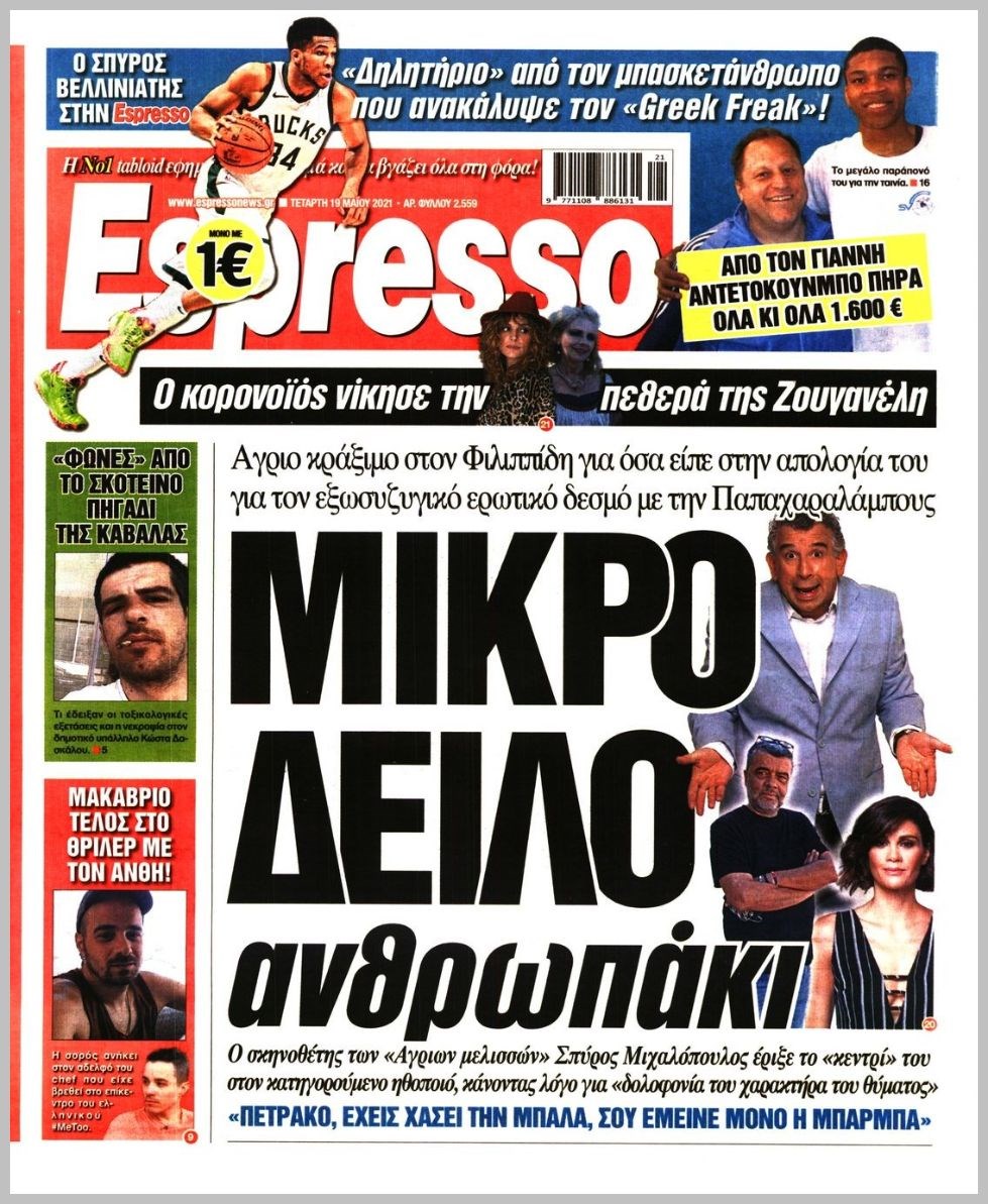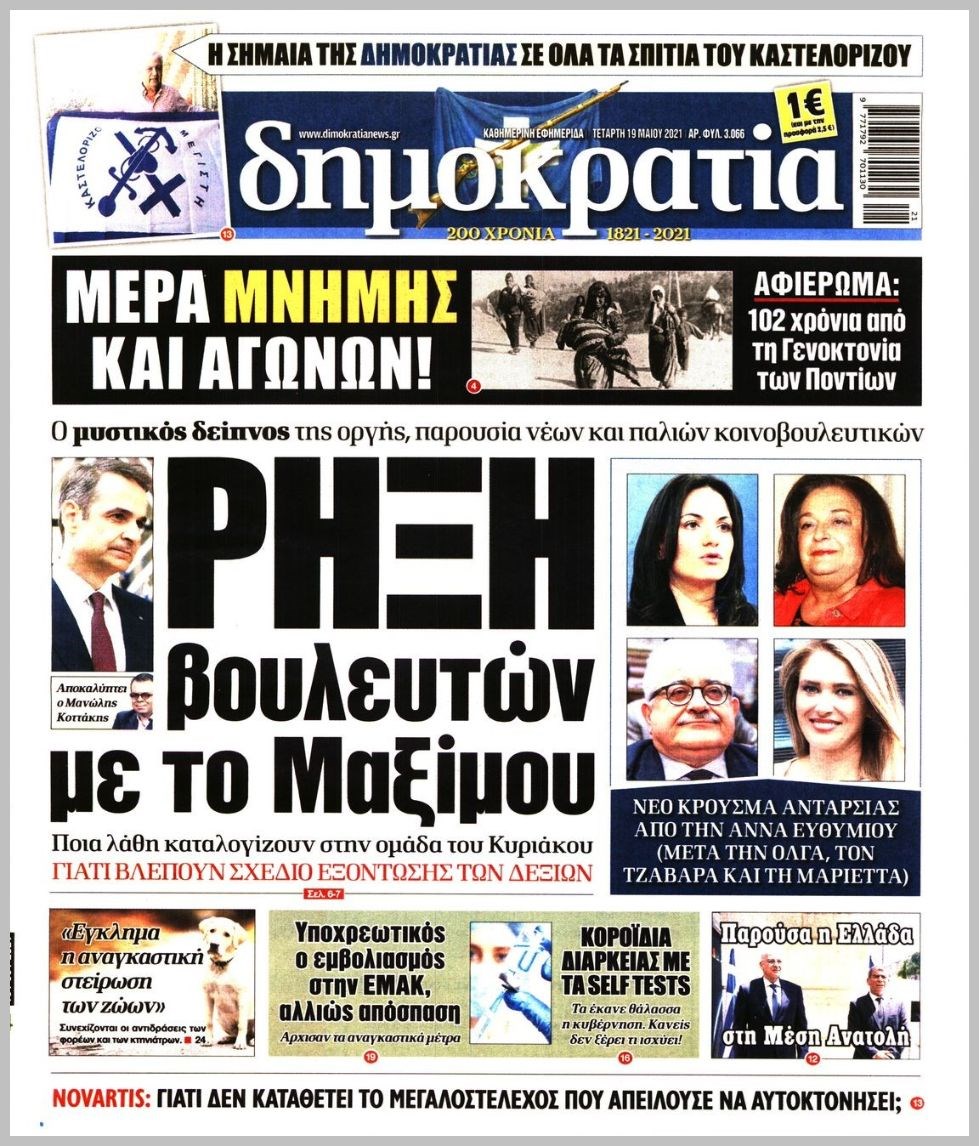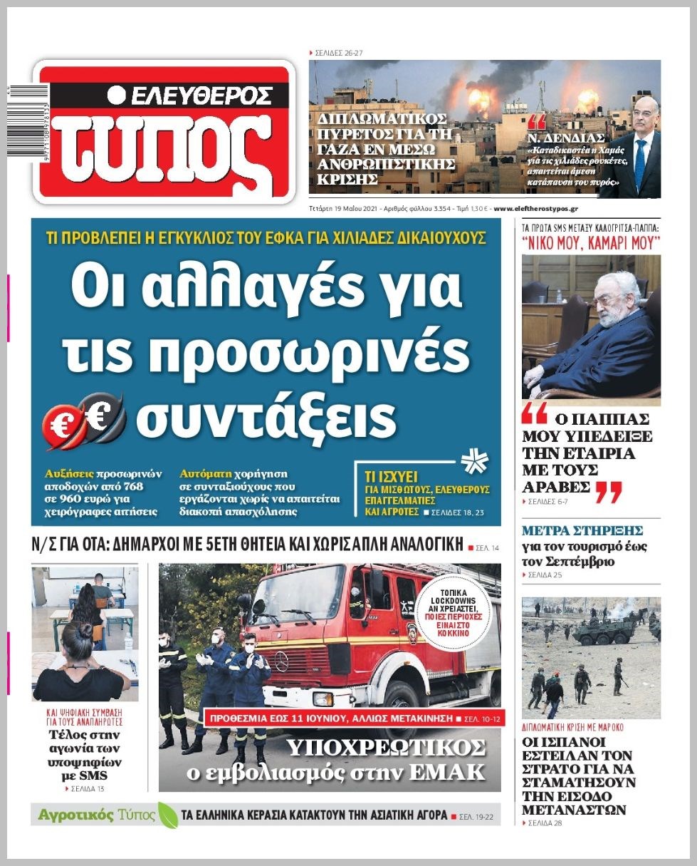 Οι πολιτικές εφημερίδες 19/5/2021 Διονύσης Νίκκας 06:13, Τετάρτη 19 Μαΐου 2021 Media Διαβάστε τα πρωτοσέλιδα των πολιτικών εφημερίδων… ΕΦΗΜΕΡΙΔΕΣ ΠΡΩΤΟΣΕΛΙΔΑ Μοιράσου το: σχολίασε κι εσύ (0 σχόλια) Ακολουθήστε το enikos.gr στο Google News και μάθετε πρώτοι όλες τις ειδήσεις Δείτε όλες τις τελευταίες ειδήσεις από την Ελλάδα και τον Κόσμο στο enikos.gr Ειδήσεις Ροή Ειδήσεων 3 ώρες πριν Αγροτικές κινητοποιήσεις: Εκτροπές κυκλοφορίας στο εθνικό οδικό δίκτυο – Δείτε χάρτες της ΕΛ.ΑΣ. 2 ώρες πριν Καιρός: Ψυχρή εισβολή με βουτιά της θερμοκρασίας τις επόμενες ώρες – Δείτε σε χάρτες πού θα χιονίσει, οι προβλέψεις για την Αττική 2 ώρες πριν Βρετανία: «Σταδιακή επανέναρξη» της σιδηροδρομικής κυκλοφορίας στη σήραγγα της Μάγχης 4 ώρες πριν Σέρρες: Πληροφορίες ότι εντοπίστηκε σημείωμα σε σακάκι του 45χρονου πυροσβέστη που αγνοείται – Τα ευρήματα από το smartwatch 55 λεπτά πριν Ιταλία: Μητέρα και κόρη πέθαναν από τροφική δηλητηρίαση στο εορταστικό τραπέζι 1 ώρα πριν Τα 5 ζώδια που θα δουν τις μετοχές τους να εκτοξεύονται το 2026 – «Θα είναι μία χρονιά γεμάτη ευκαιρίες για οικονομική επιτυχία» 5 ώρες πριν Άνδρας που έχασε πάνω από 45 κιλά αποκαλύπτει: «Αυτή η αλλαγή στον τρόπο ζωής μου είχε τον μεγαλύτερο αντίκτυπο» 6 ώρες πριν Οι άνθρωποι που προτιμούν να μένουν στο σπίτι την παραμονή Πρωτοχρονιάς, έχουν συνήθως αυτά τα 8 χαρακτηριστικά 2 ώρες πριν Ο «Παγετώνας της Αποκάλυψης» βρίσκεται πιο κοντά από ποτέ στην ολική κατάρρευση – Σήμα κινδύνου από επιστήμονες για το «τέρας» που απειλεί τον πλανήτη 7 λεπτά πριν Μαρινάκης για αγροτικές κινητοποιήσεις: Κανένα κράτος, καμία αστυνομία δεν έχει τη δυνατότητα να ρυμουλκήσει 4.000-5.000 τρακτέρ 12 λεπτά πριν Δήμος Αθηναίων: Τα έκτακτα μέτρα που λαμβάνονται λόγω των χαμηλών θερμοκρασιών 18 λεπτά πριν Τουρκία: 357 συλλήψεις σε μεγάλης κλίμακας επιχειρήσεις κατά του Ισλαμικού Κράτους 25 λεπτά πριν Κουίζ για την παλιά Αθήνα: Αναγνωρίζετε την περιοχή; Είναι από τις πιο γνωστές 30 λεπτά πριν Χανιά: Στο νοσοκομείο με δηλητηρίαση 2 εργαζόμενοι της καθαριότητας που εισέπνευσαν τοξικές ουσίες ENIKOS NETWORK Οι τρεις βασικοί άξονες της υγείας για το 2026-Έρχονται 5.000 προσλήψεις Το αρχείο του επιστήμονα Γεωργίου Παπανικολάου που ανακάλυψε το «Τεστ Παπ» στο Ίδρυμα Μιχάλης Κακογιάννης ΕΛΣΤΑΤ: Οριακά αυξημένος ο γενικός δείκτης τιμών παραγωγού στη βιομηχανία τον Νοέμβριο – Δείτε αναλυτικά τα στοιχεία Ρεύμα: Κάτω από τα επίπεδα των 100 ευρώ ανά μεγαβατώρα η τιμή του στην Ελλάδα- Τι θα ισχύσει για τα πράσινα τιμολόγια Ιανου... Ο Google Assistant θα παραμείνει λίγο περισσότερο για ορισμένους χρήστες Android Τεστ προσωπικότητας: Το βάζο που θα επιλέξετε αποκαλύπτει πώς λύνετε προβλήματα στη ζωή σας περισσότερα 16:43 , Τρίτη 30 Δεκεμβρίου 2025 Finos Film: Η κινηματογραφική ανασκόπηση για το 2025 – «Να θυμηθούμε όμορφες ψυχές, και να μοιραστούμε ευχές…» Σε λίγες ώρες και αυτή η χρονιά θα είναι παρελθόν. Εύκολο ή δύσκολο, χαρούμενο ή στενάχωρο, με... 10:13 , Τρίτη 30 Δεκεμβρίου 2025 Την Κυριακή με τη Realnews: Δωροεπιταγή 10€ Την Κυριακή με τη Realnews: Δωροεπιταγή 10€ Δωροεπιταγή αξίας 10€ για αγορές άνω των 60€ από τ... 08:00 , Τρίτη 30 Δεκεμβρίου 2025 Την Κυριακή με τη Realnews: Ό,τι και αν αγοράσεις, σκανάρεις και κερδίζεις! Την Κυριακή με τη Realnews: Ό,τι και αν αγοράσεις, σκανάρεις και κερδίζεις! Με το PADU app, το... 07:16 , Τρίτη 30 Δεκεμβρίου 2025 Οι αθλητικές μεταδόσεις 30/12/2025 Τα ματς Μαρούσι – Παναθηναϊκός για τη GBL και Μπουργκ – Πανιώνιος, 