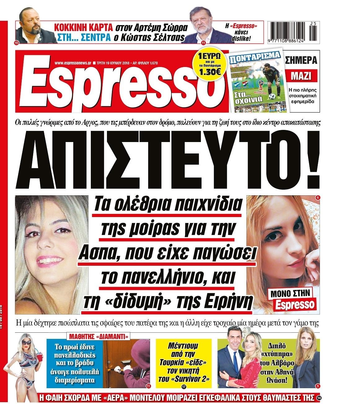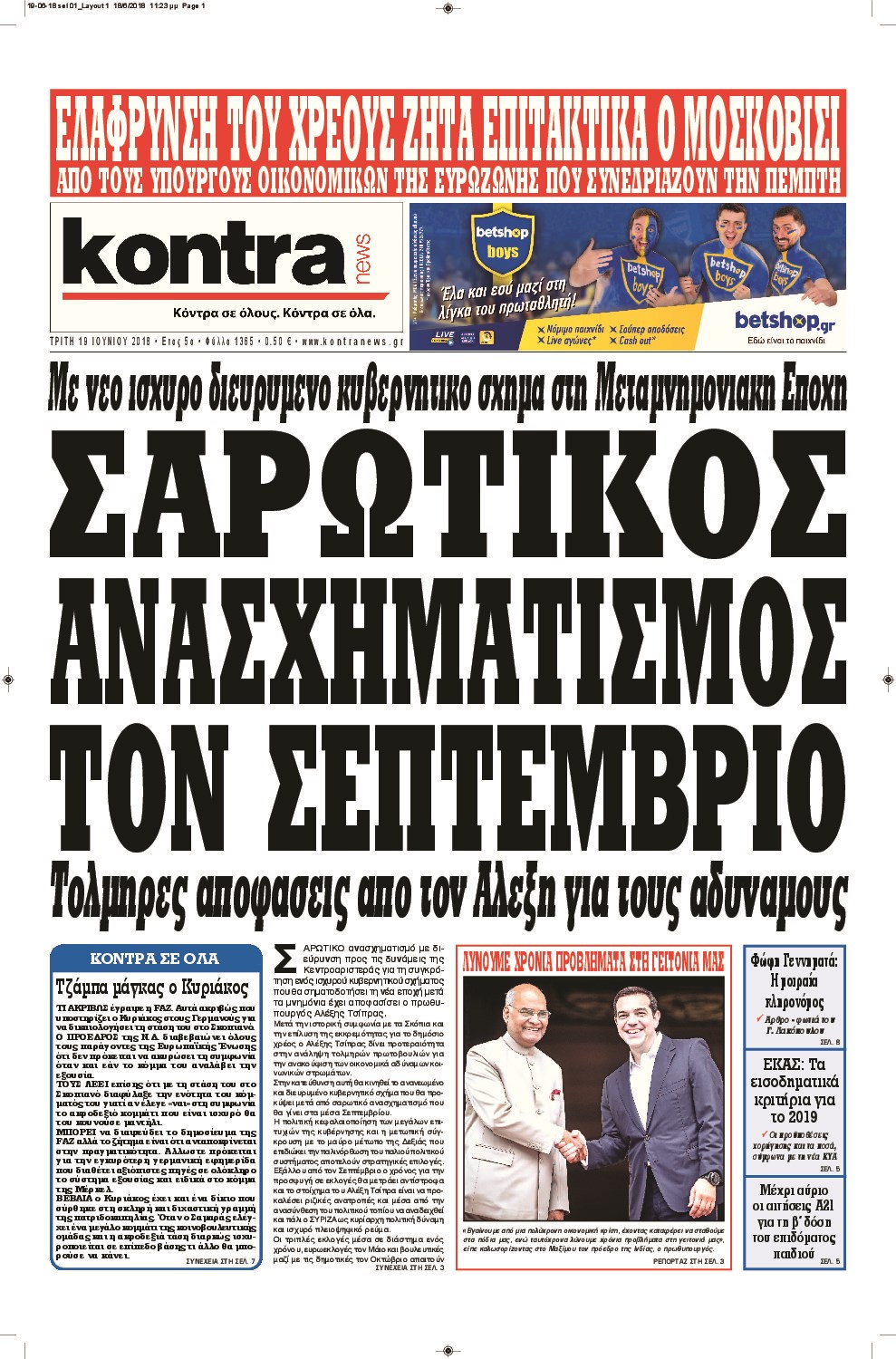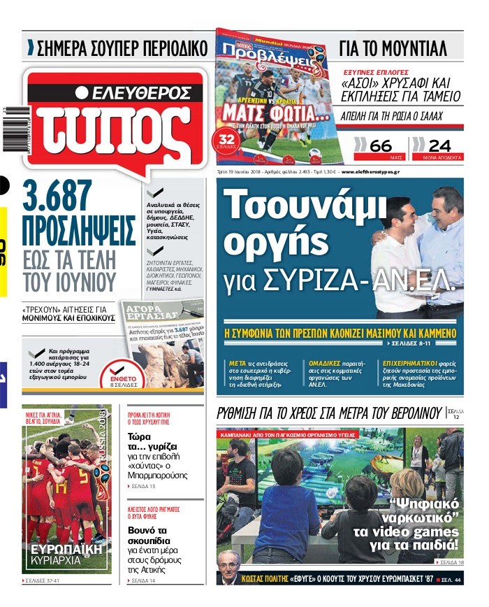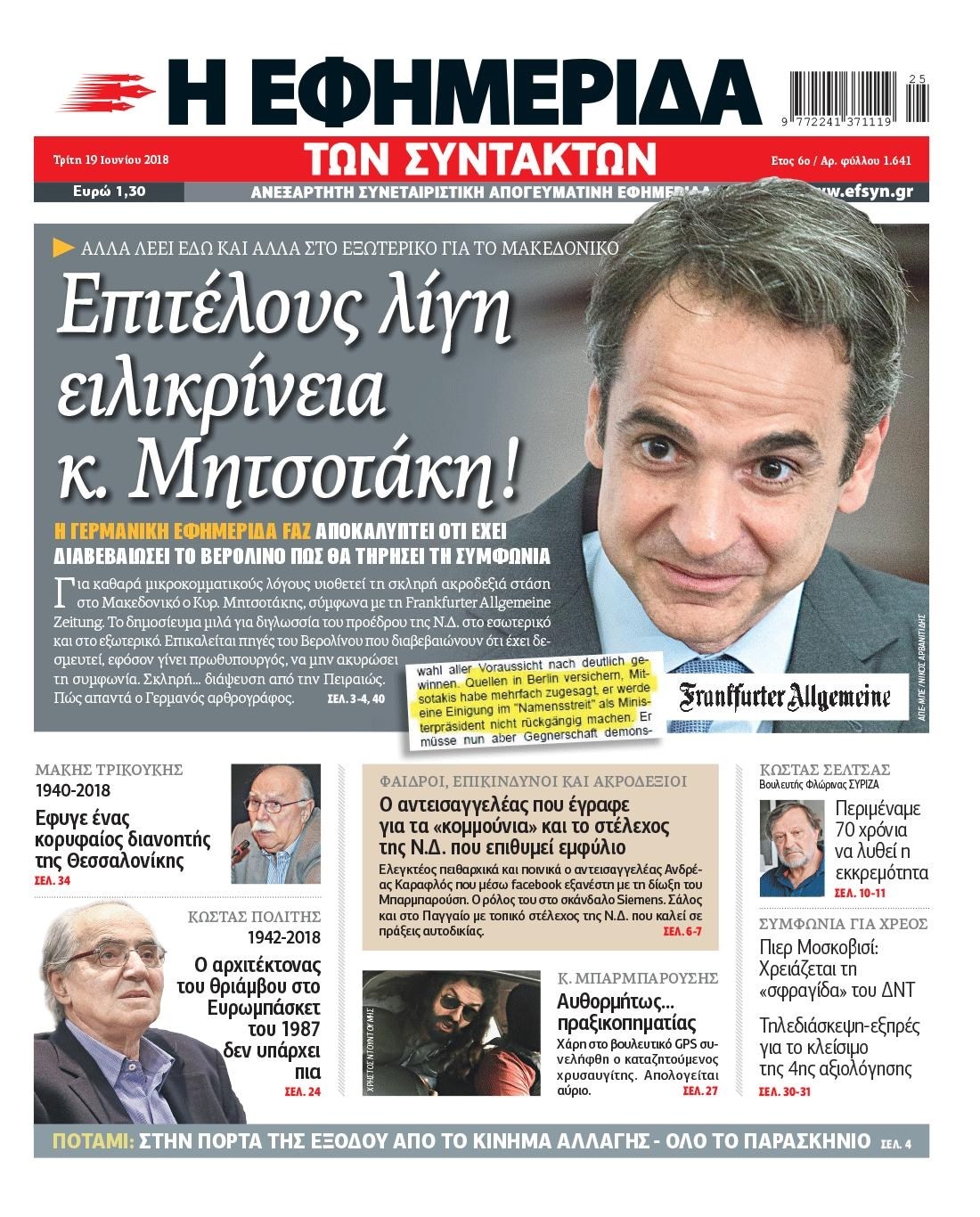Οι πολιτικές εφημερίδες 19/6/2018 Enikos Newsroom 06:11, Τρίτη 19 Ιουνίου 2018 Media Διαβάστε τα σημερινά πρωτοσέλιδα των πολιτικών εφημερίδων. ΠΟΛΙΤΙΚΕΣ ΕΦΗΜΕΡΙΔΕΣ Μοιράσου το: σχολίασε κι εσύ (0 σχόλια) Ακολουθήστε το enikos.gr στο Google News και μάθετε πρώτοι όλες τις ειδήσεις Δείτε όλες τις τελευταίες ειδήσεις από την Ελλάδα και τον Κόσμο στο enikos.gr Ειδήσεις Ροή Ειδήσεων 1 ώρα πριν Υπόθεση Έπσταϊν: Το Υπουργείο Δικαιοσύνης δημοσιοποίησε μια σειρά από εξαιρετικά επεξεργασμένα αρχεία – «Λείπουν τα πιο σημαντικά έγγραφα», λένε οι Δημοκρατικοί 37 λεπτά πριν Ο «χάρτης» με τις αυξήσεις και τις φοροελαφρύνσεις του 2026 – Ποιοι και πόσα κερδίζουν 11 ώρες πριν Χριστούγεννα στα μπλόκα: Επιμένουν στις κινητοποιήσεις τους οι αγρότες – Ανοίγουν τα διόδια το Σαββατοκύριακο 2 ώρες πριν ΟΝΕΧ – MEGATUGS: Ξεκίνησε η ναυπήγηση ρυμουλκών στην Ελλάδα – Προθάλαμος πολεμικών πλοίων – Δείτε φωτογραφίες και βίντεο 2 ώρες πριν Καιρός: Αλλαγή σκηνικού σήμερα με βροχές και πτώση της θερμοκρασίας – Οι προβλέψεις των μετεωρολόγων για τα Χριστούγεννα 3 ώρες πριν Αυγά: Πόσα μπορείτε να τρώτε την ημέρα με ασφάλεια για μέγιστη πρόσληψη πρωτεΐνης 4 ώρες πριν Τα ζώδια σήμερα, Σάββατο 20 Δεκεμβρίου: Παρθένοι, το σύμπαν σας δίνει το κλειδί 3 ώρες πριν Οπτική ψευδαίσθηση: Μόνο αν είσαι ο Σέρλοκ Χολμς θα βρεις τον αριθμό «87» σε 7 δευτερόλεπτα 1 ώρα πριν Αρχαιολόγοι ανακάλυψαν σε χωράφι απεικόνιση 600 ετών ενός Αγίου – Τα στοιχεία που δείχνουν ότι μαρτύρησε 9 λεπτά πριν Παιδική υπέρταση: Μια σιωπηλή απειλή που αυξάνεται διεθνώς 10 λεπτά πριν Αγχώνεται για το χριστουγεννιάτικο δώρο που πήρε στην πλούσια σύντροφό του – «Φοβάμαι πως θα το βρει φθηνιάρικο, φοράει βραχιόλια Cartier» 16 λεπτά πριν Enerwave: Το νέο «ρεύμα» στη λιανική ενέργειας που αλλάζει την εμπειρία του καταναλωτή 21 λεπτά πριν Γιώργος Μαζωνάκης: Τη Δευτέρα η μήνυση του τραγουδιστή κατά του 22χρονου 30 λεπτά πριν Αμαλία Κωστοπούλου: Το μήνυμα για το χειρουργείο στο γόνατο – «Αυτός ο τραυματισμός μού στέρησε πολλά…» ENIKOS NETWORK Πόσα κιλά παίρνουμε πραγματικά τα Χριστούγεννα, σύμφωνα με την επιστήμη – Πώς να το αποτρέψουμε; Το δημοφιλές ρόφημα που αυξάνει την πίεση πιο γρήγορα και από το αλάτι Mega χριστουγεννιάτικη φορολοταρία: «Κλείδωσε» η ημερομηνία για την κλήρωση – Ερωτήσεις και απαντήσεις Αναστολή μέτρων αναγκαστικής εκτέλεσης για κτηνοτρόφους που πλήττονται από την ευλογιά των αιγοπροβάτων Χαρτογραφώντας το «σημείο χωρίς επιστροφή»: Για πρώτη φορά αποκαλύπτεται με λεπτομέρεια το ακανθώδες όριο της ατμόσφαιρας τ... Η Google καταργεί τη λειτουργία «dark web report» – Πώς θα μπορούν οι χρήστες να διαγράφουν τα δεδομένα τους περισσότερα 08:14 , Σάββατο 20 Δεκεμβρίου 2025 Τρομεροί γονείς: Η Μαρία Καβογιάννη εισβάλλει στο σπίτι της οικογένειας Στεφανίδη Όσα θα δούμε στο νέο διπλό επεισόδιο της σειράς «Τρομεροί γονείς», σήμερα Σάββατο 20 Δεκεμβρίο... 05:48 , Σάββατο 20 Δεκεμβρίου 2025 Οι οικονομικές εφημερίδες 20/12/2025 Διαβάστε τα πρωτοσέλιδα από τις οικονομικές εφημερίδες, σήμερα 20/12/2025. 05:43 , Σάββατο 20 Δεκεμβρίου 2025 Οι αθλητικές εφημερίδες 20/12/2025 Διαβάστε τα πρωτοσέλιδα από τις αθλητικές εφημερίδες, σήμερα 20/12/2025. 05:38 , Σάββατο 20 Δεκεμβρίου 2025 Οι πολιτικές εφημερίδες 20/12/2025 Διαβάστε τα πρωτοσέλιδα από τις πολιτικές εφημερίδες, σήμερα 20/12/2025. ΤΕΛΕΥΤΑΙΕΣ ΕΙΔΗΣΕΙΣ 9 λεπτά πριν Παιδική υπέρταση: Μια σιωπηλή απειλή που αυξάνεται... 10 λεπτά πριν Αγχώνεται για το χριστουγεννιάτικο δώρο 